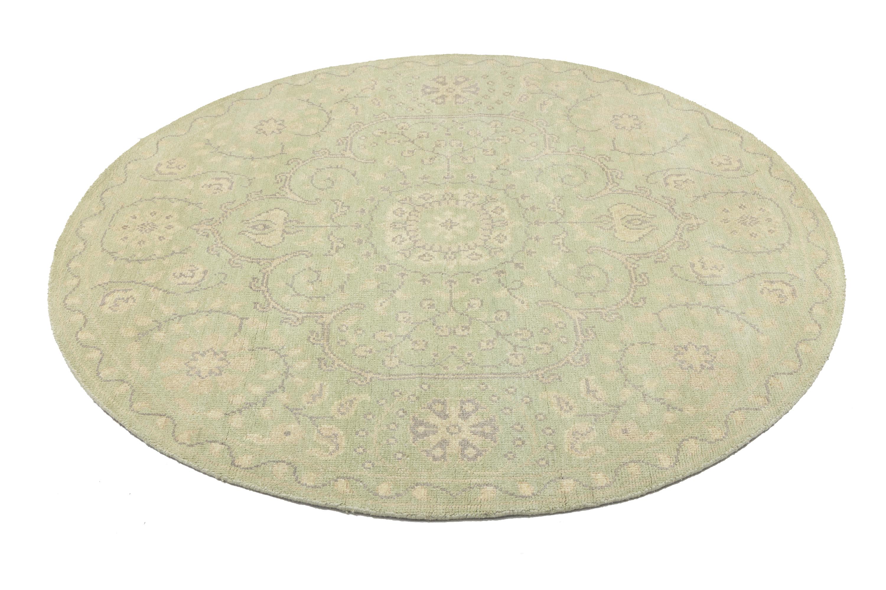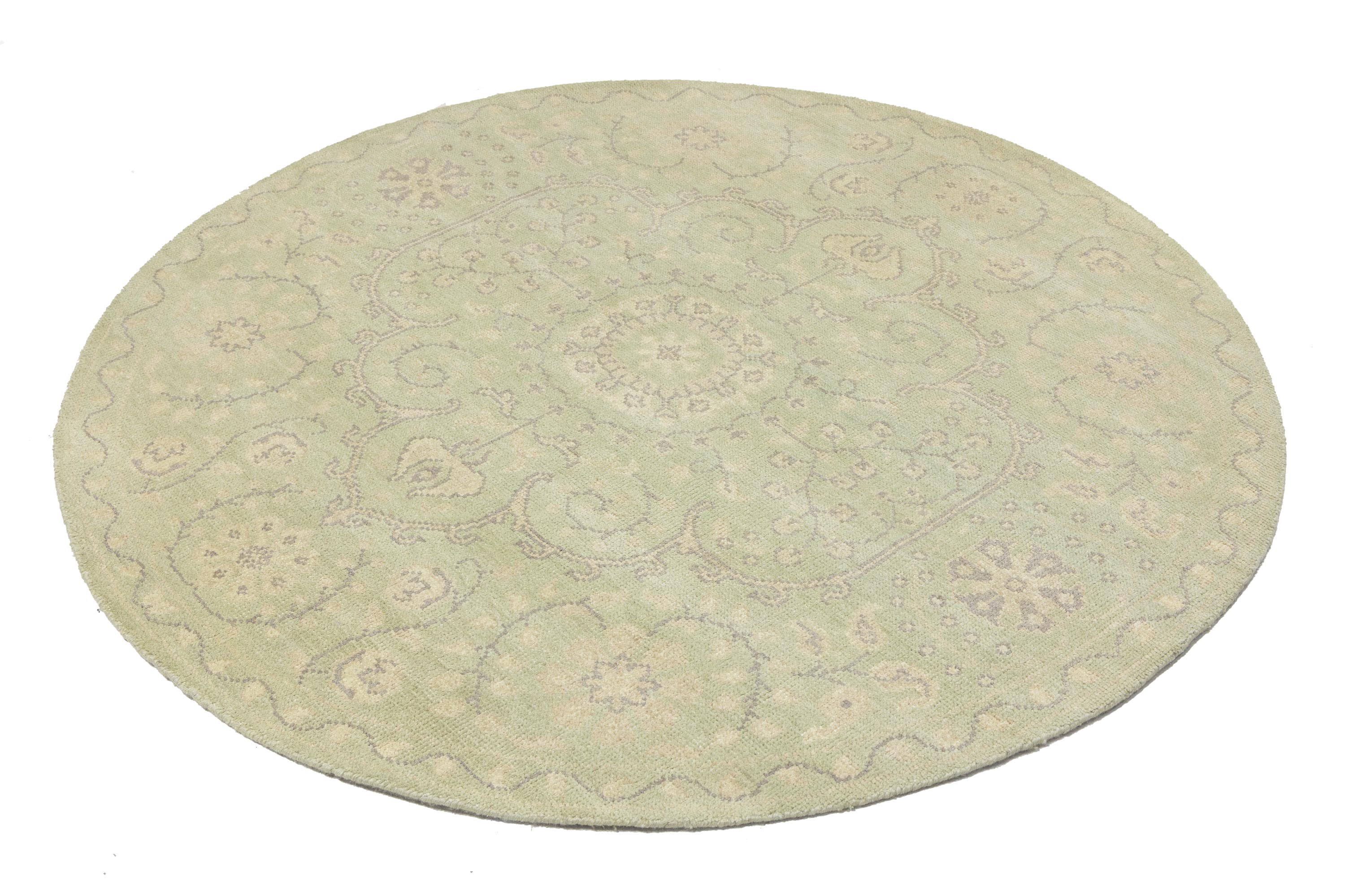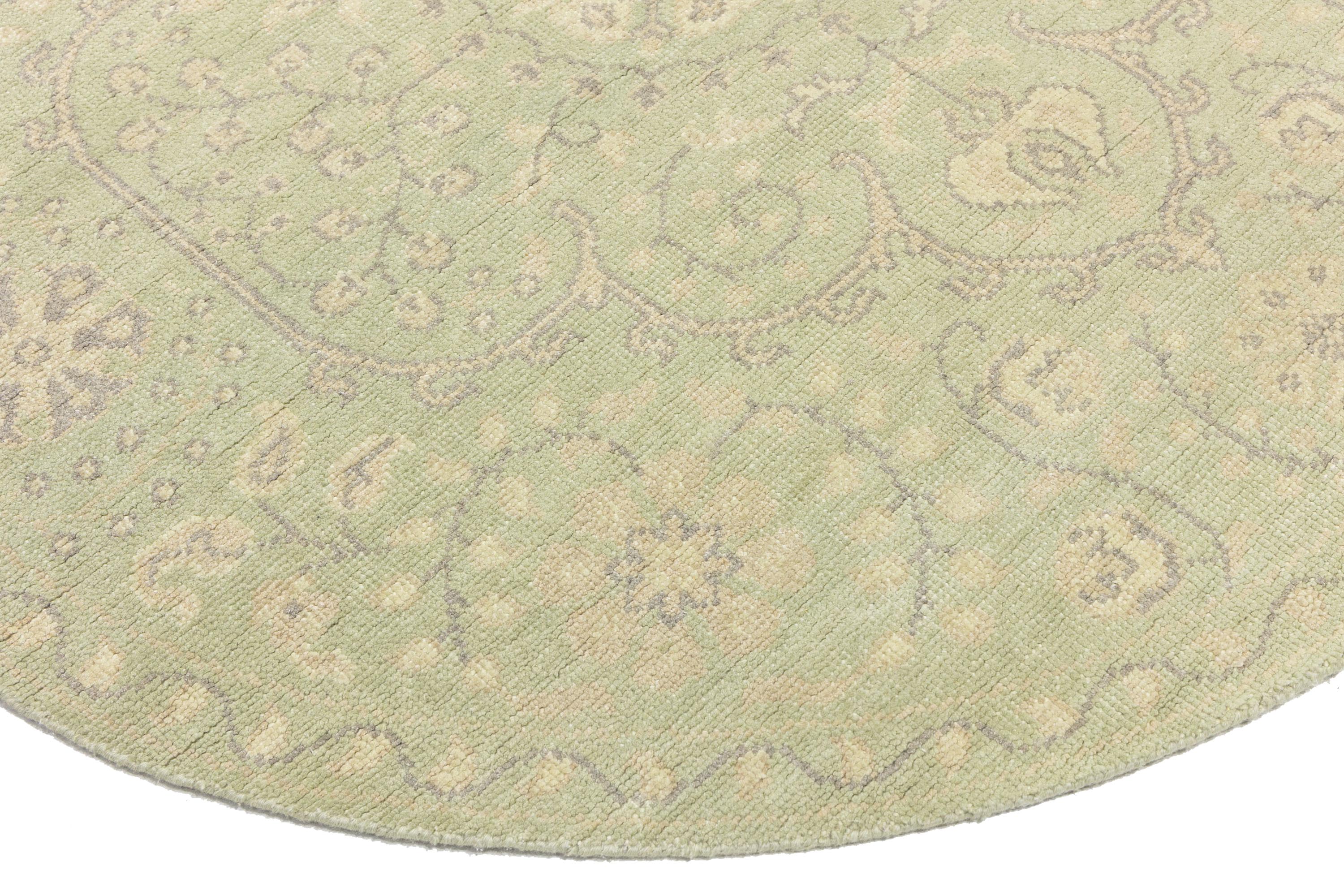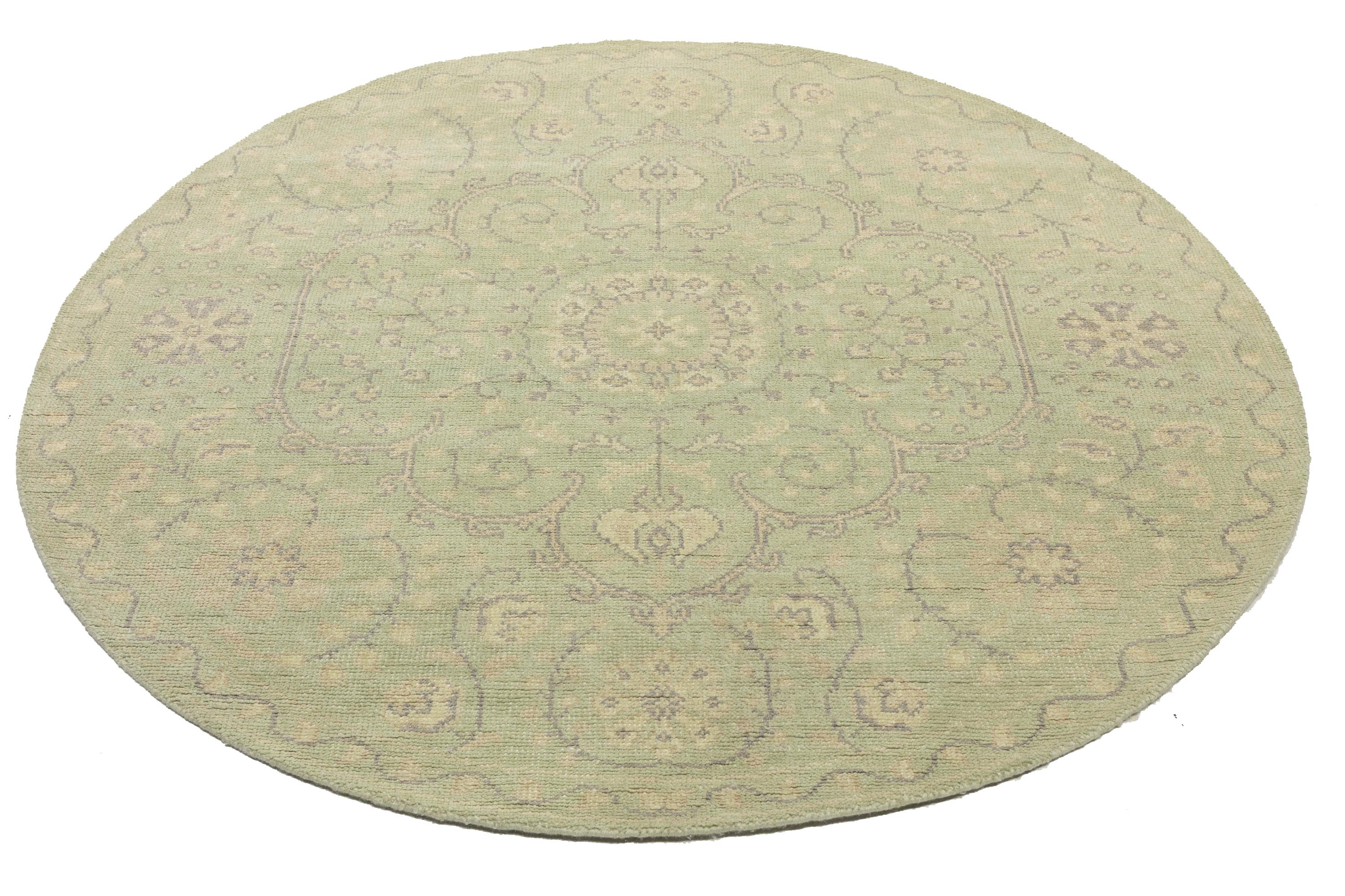 Muted Light Green Floral 6X6 Transitional Oriental Round Rug