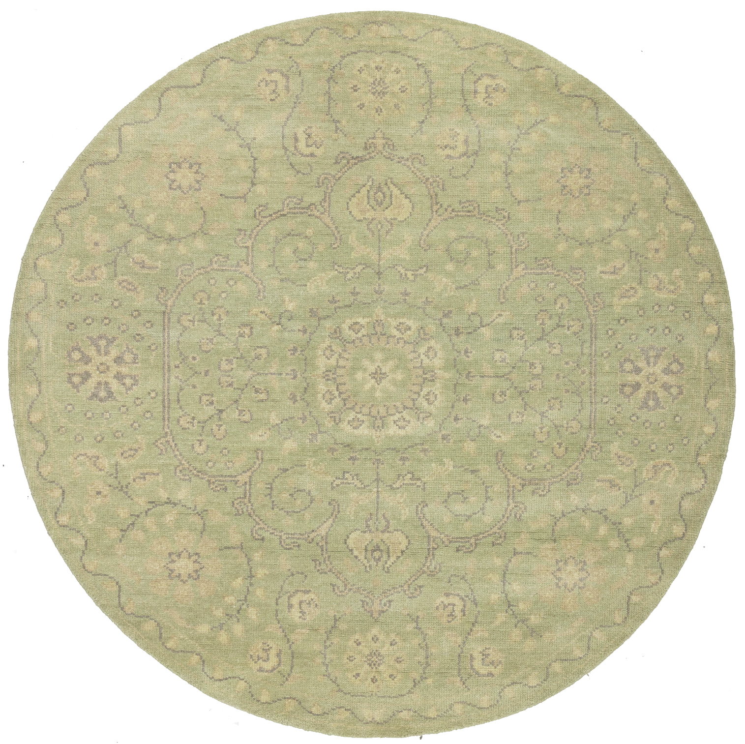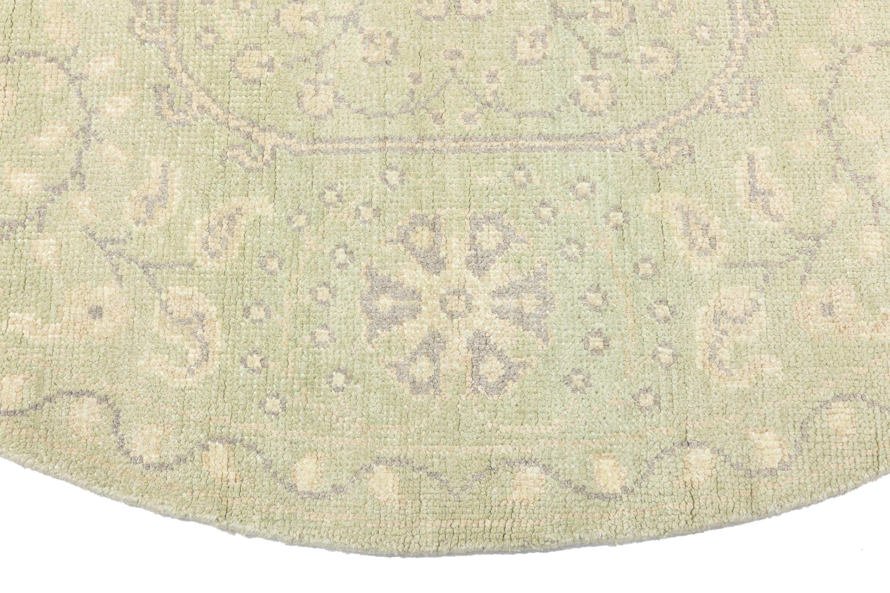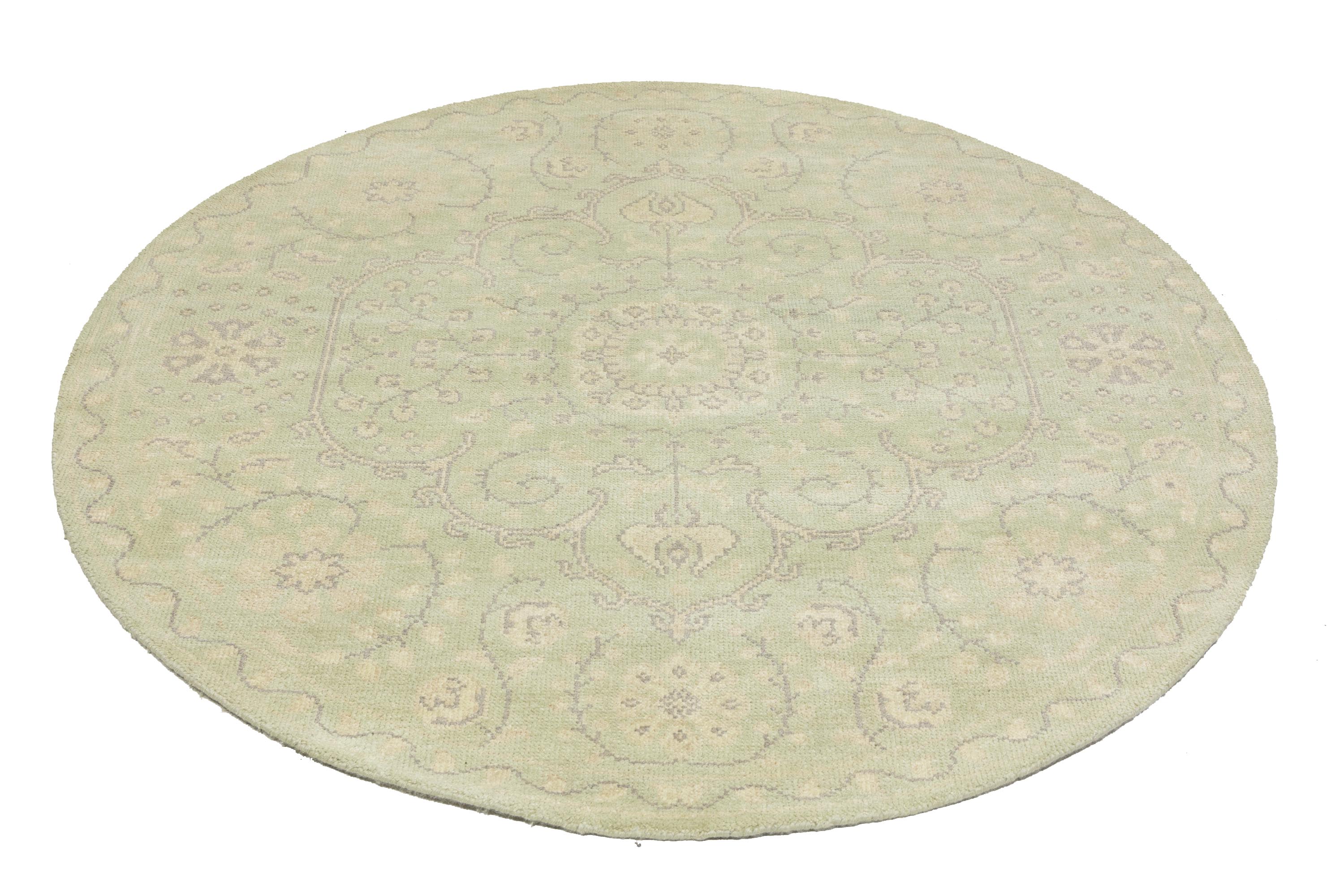 Muted Light Green Floral 6X6 Transitional Oriental Round Rug