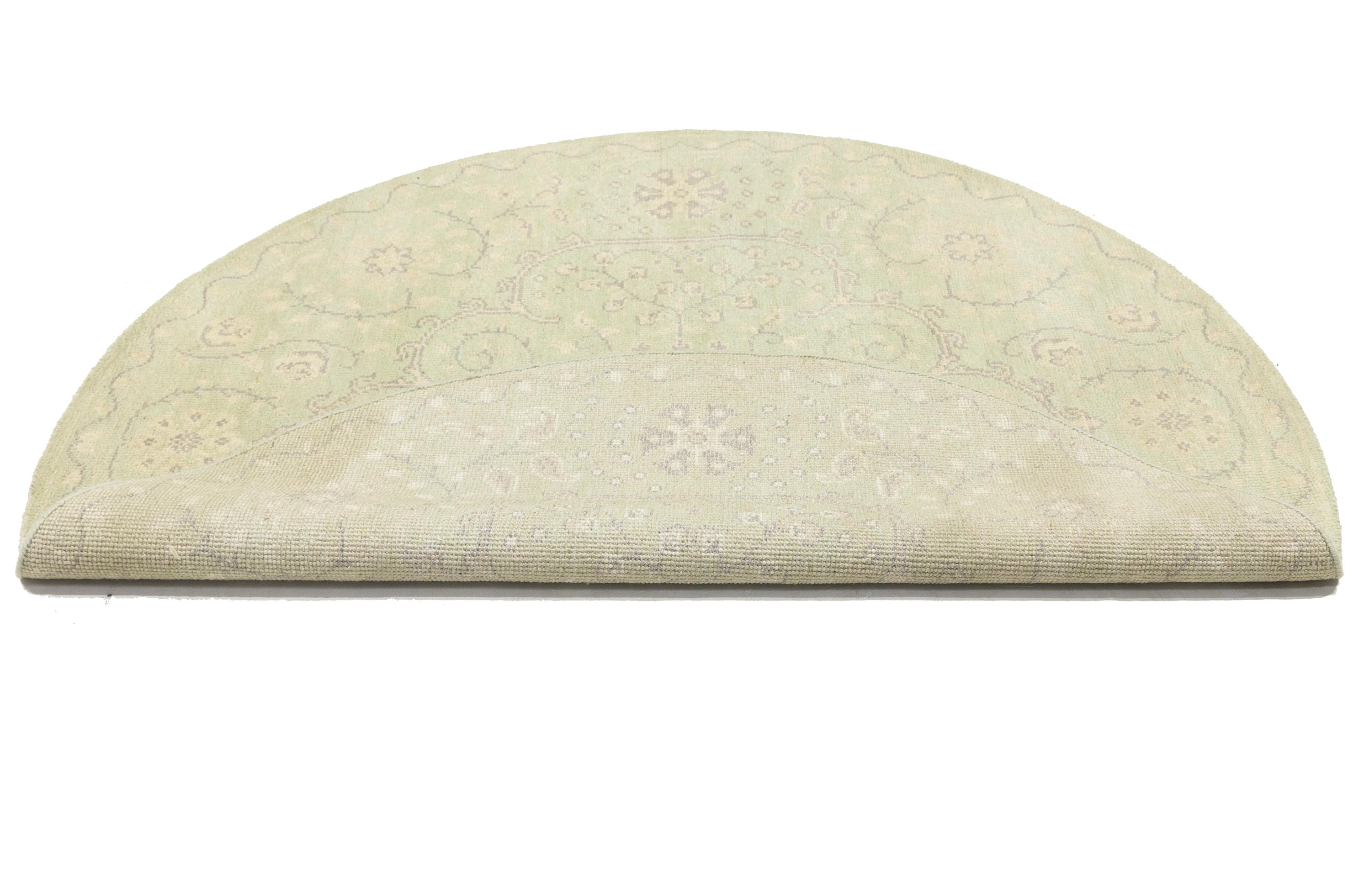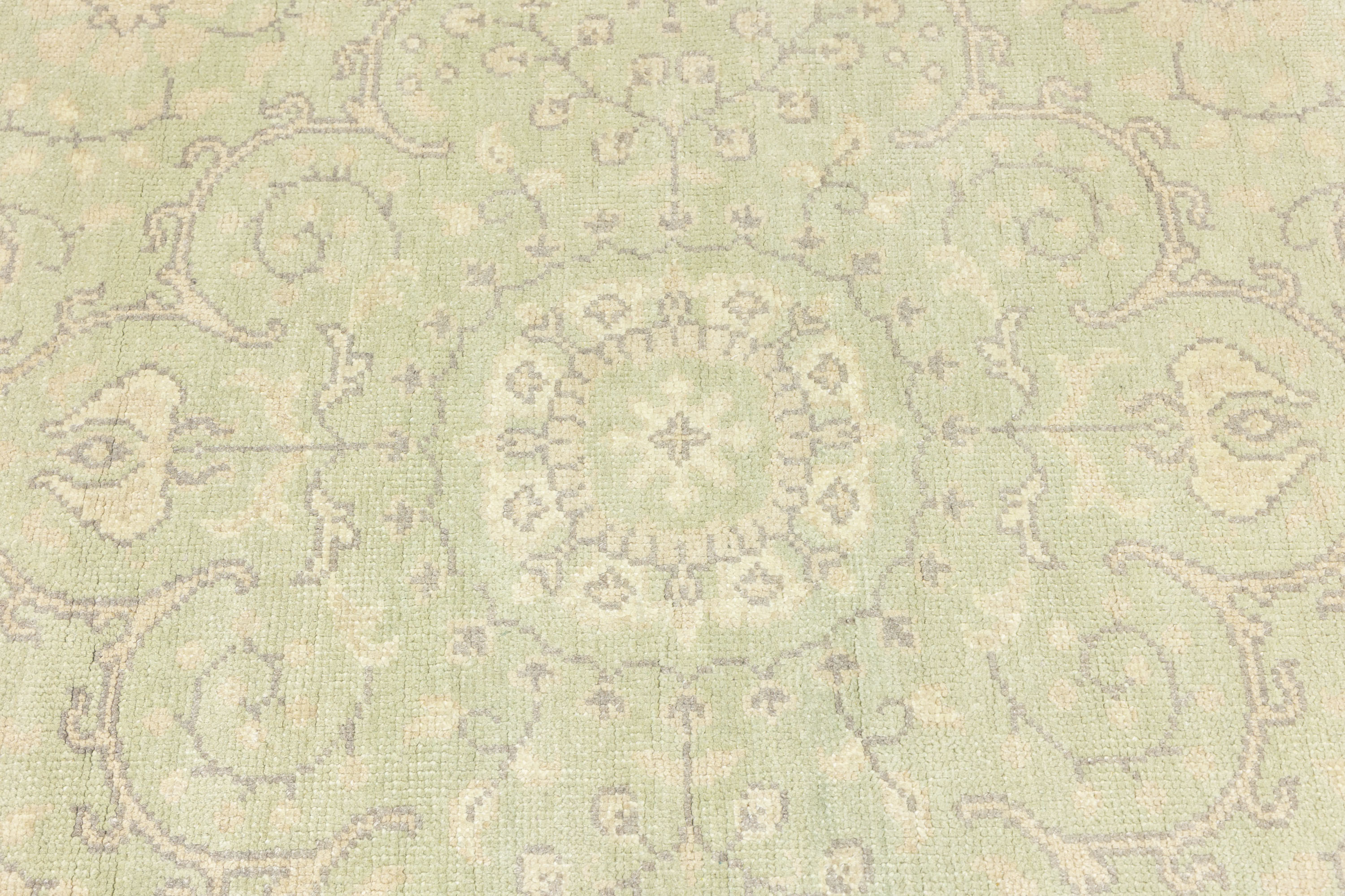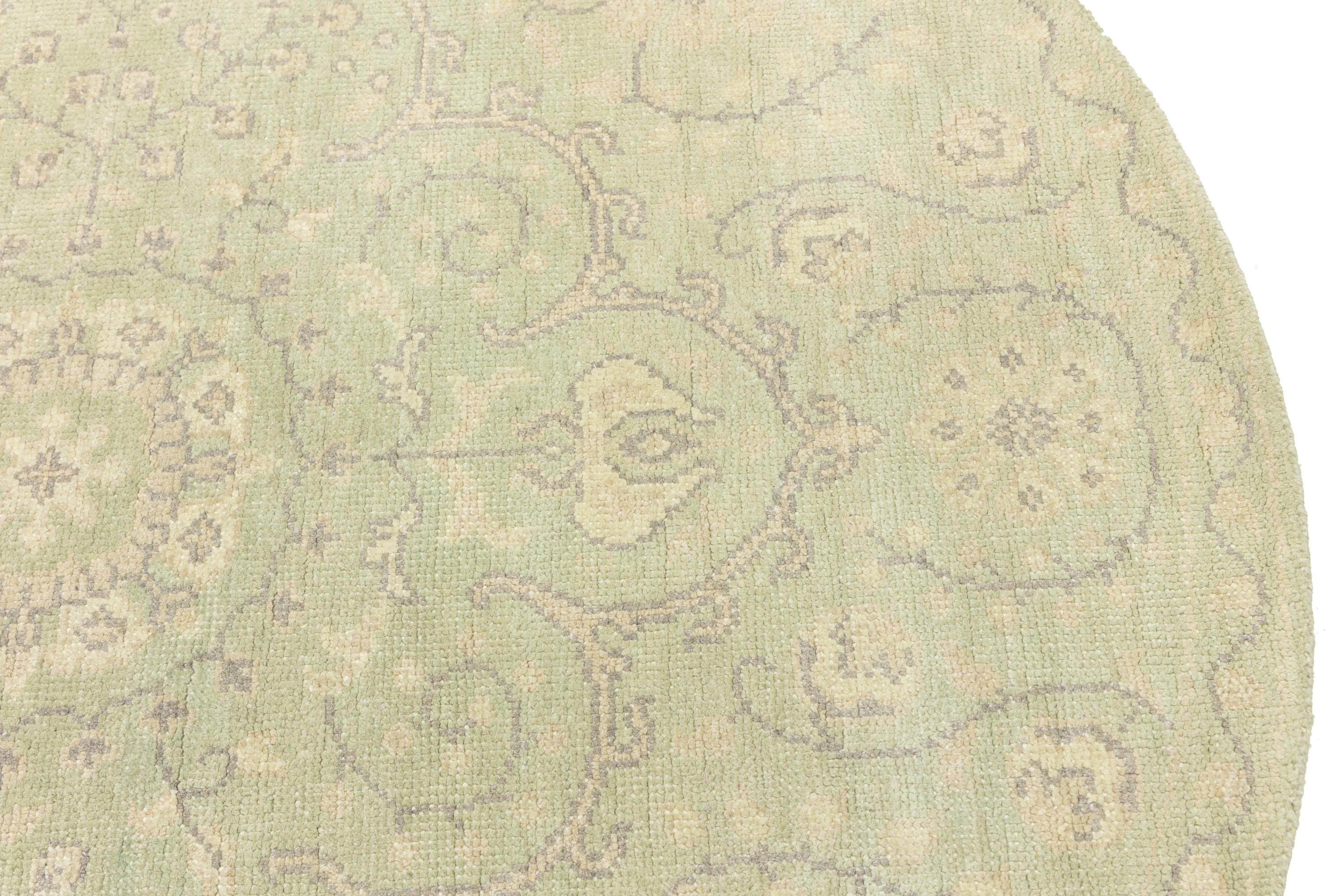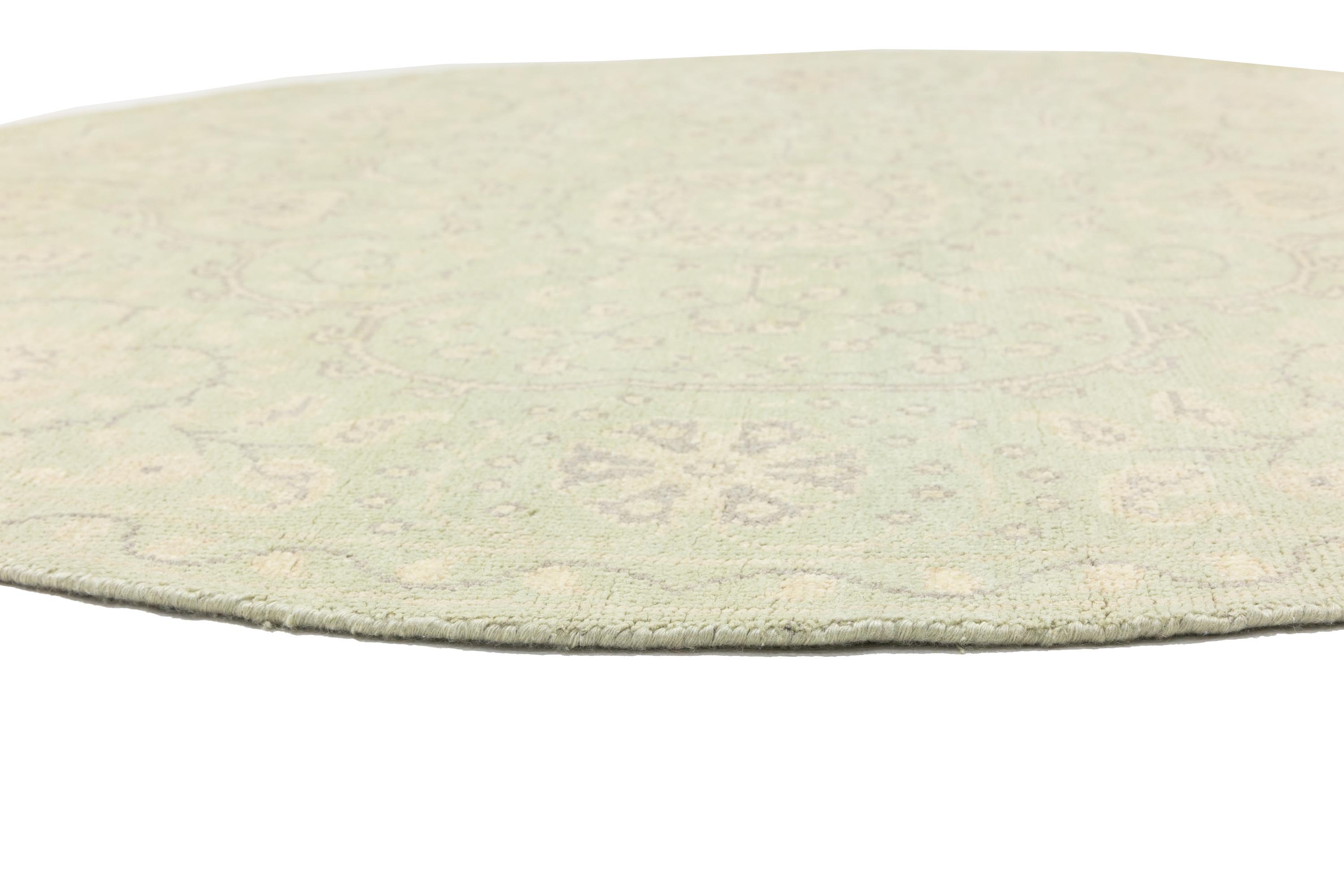 Muted Light Green Floral 6X6 Transitional Oriental Round Rug