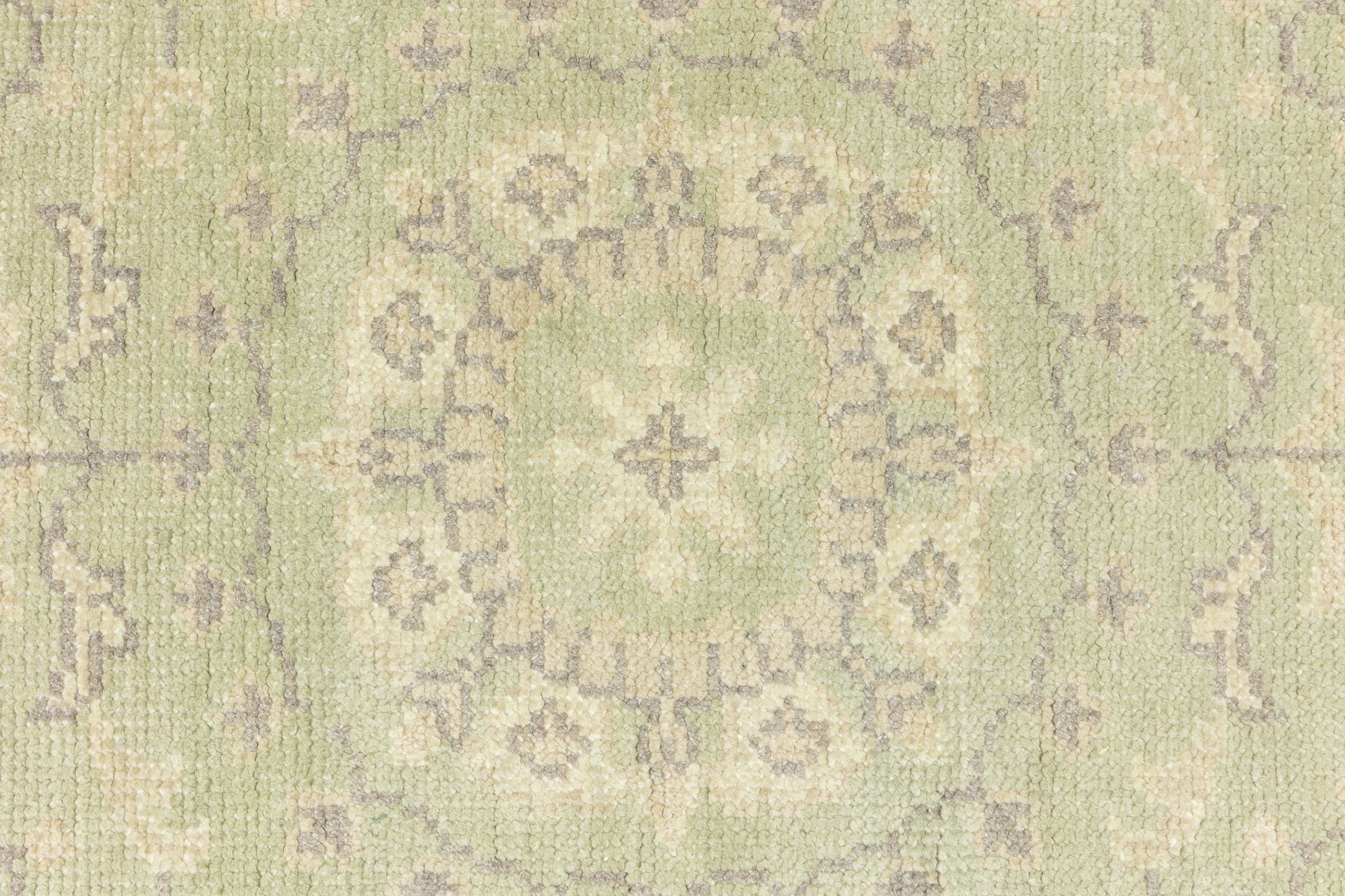 This genuine 6X6 light green new Oriental rug was made by the hands of gifted weavers inspired by a variety of spectacular artistic designs, to recreate the aged look of the original piece with a richness of color and ornately patterned background field. What set this vintage style Oriental area rug from the others are the material and dye used (wool pile and cotton foundation), knot count, ancient designs, fantastic grades, and its regional historical connection: it has deep roots, from the story of the people who produced it to the meaning of the symbols and colors displayed across its canvas that have been praised for centuries. This Indian home décor carpet will be completely cozy and inviting that never will go out of style! Also, this Oriental rug would be among your most valuable treasures, it is a great investment that accrues value over time, and it will last for generations because was woven with high-quality, all-natural wool. Environmentally friendly, opulent yet affordable; this rug will give you a thorough amount of character to help define your living space with elegance and warmth that will capture the eyes and attention of your audience (homeowners, designers, decorators, family and friends). OT-11837