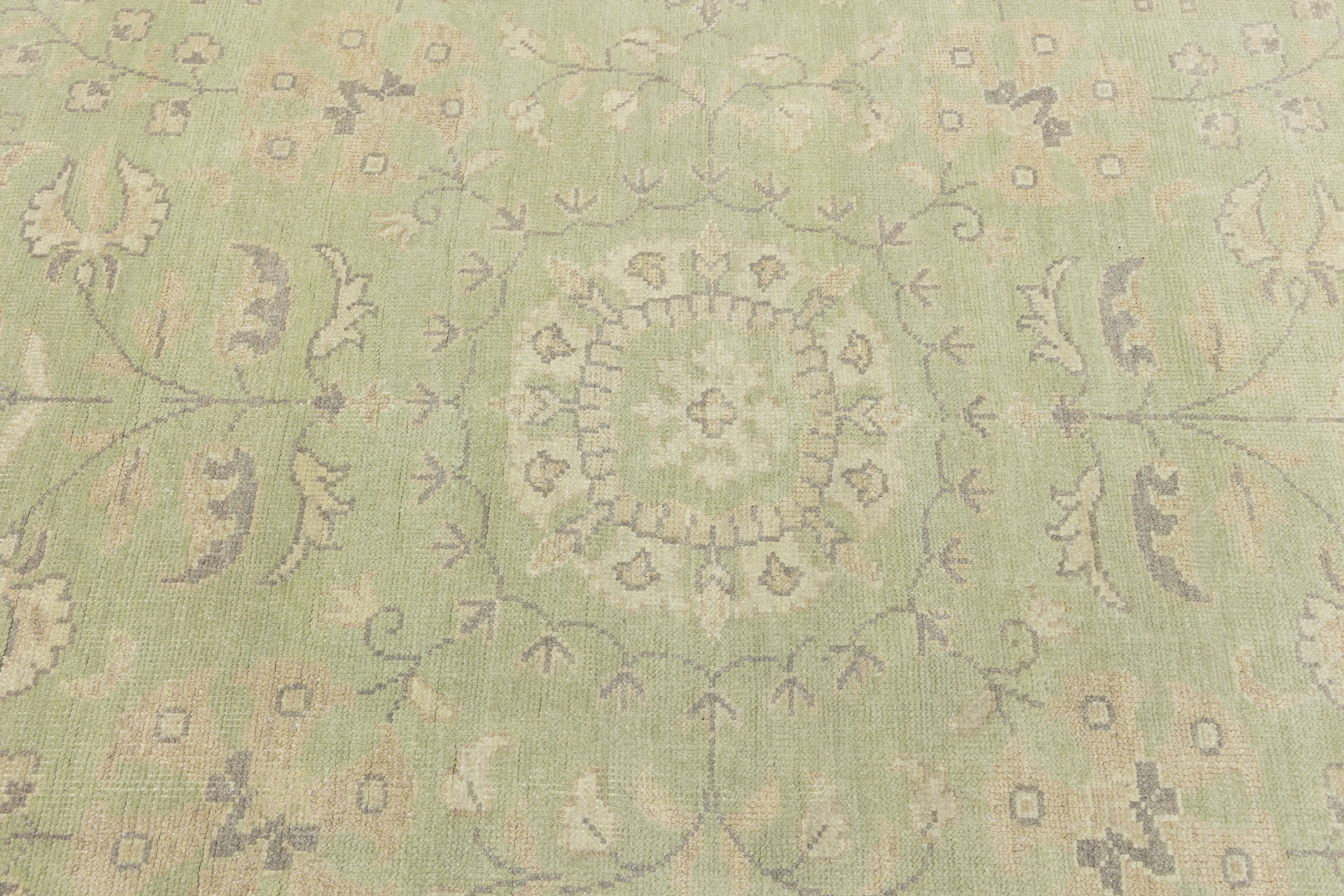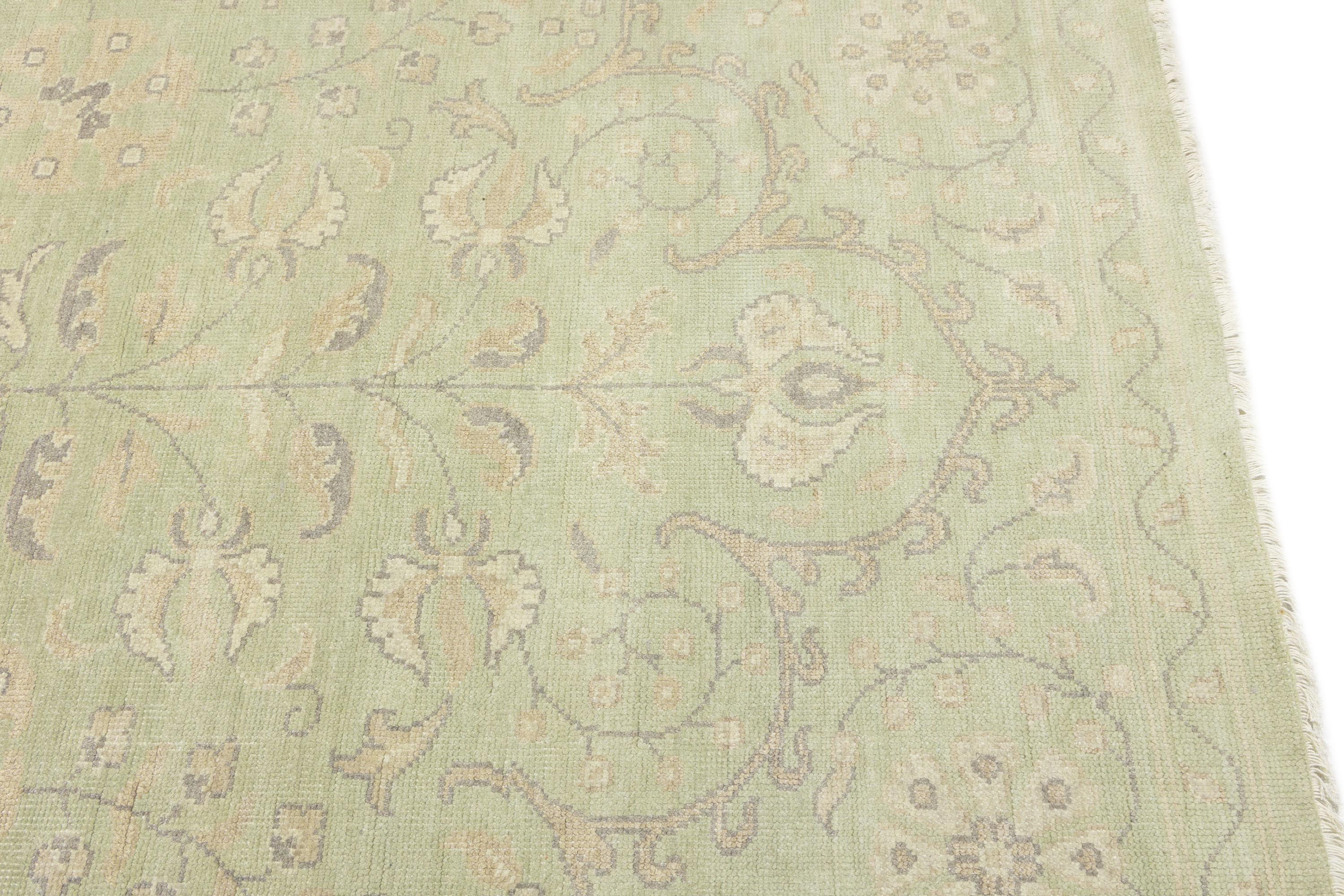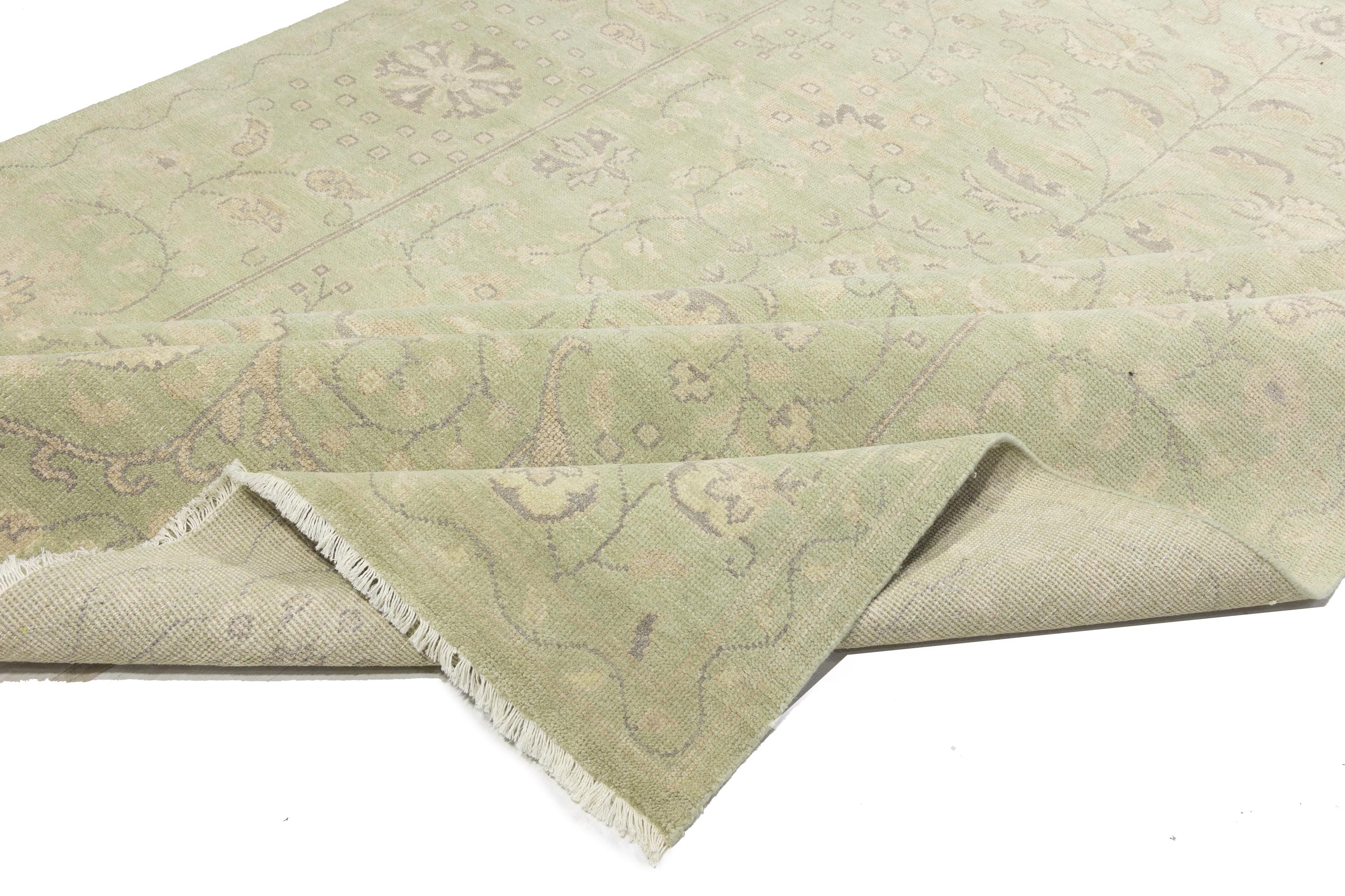Muted Light Green Floral 9x12 Transitional Oriental Rug