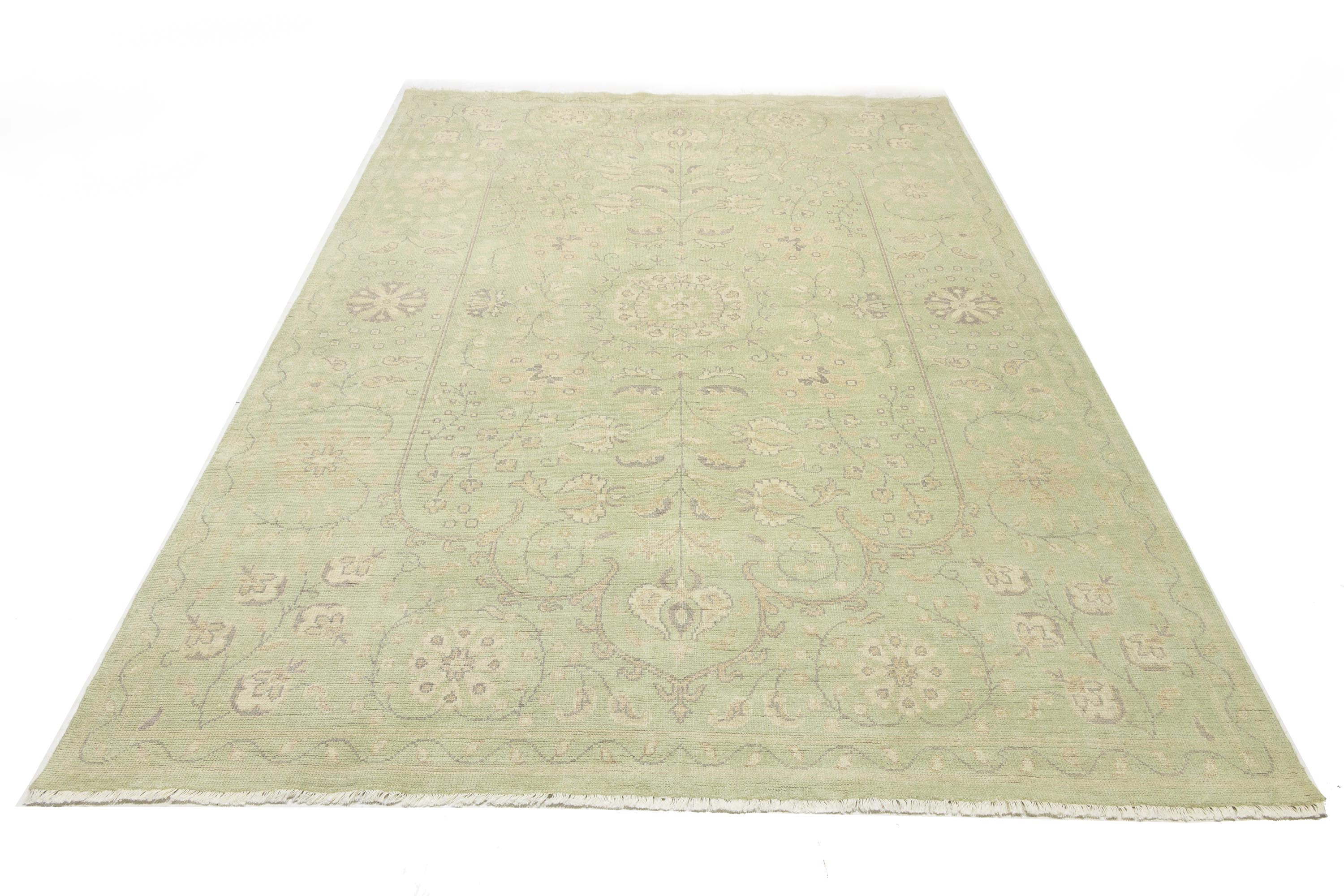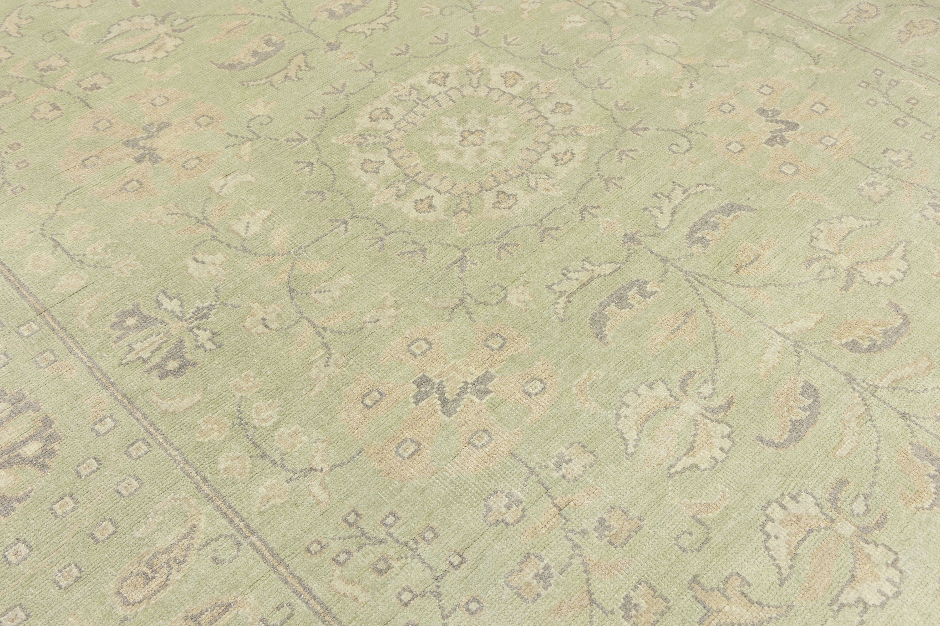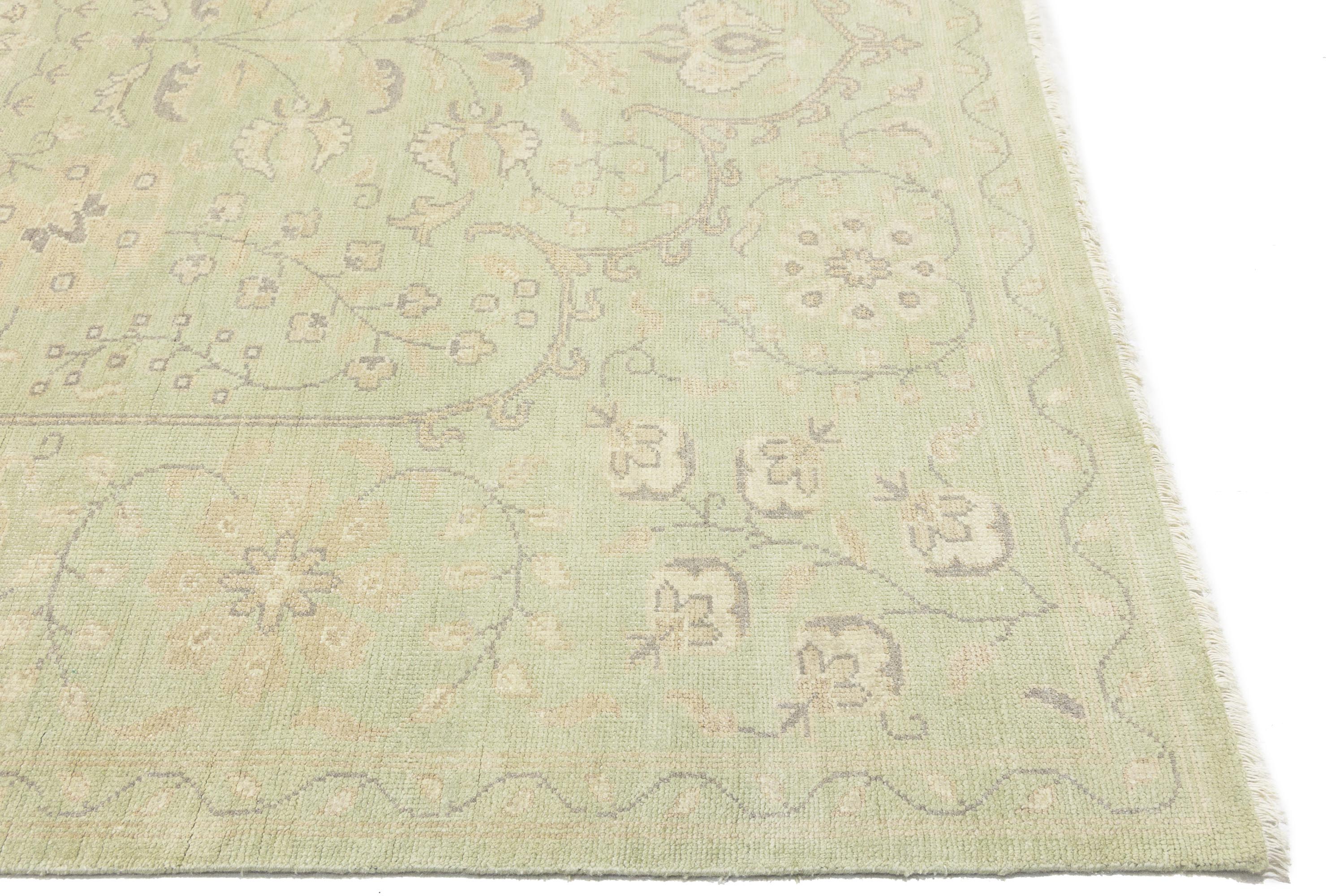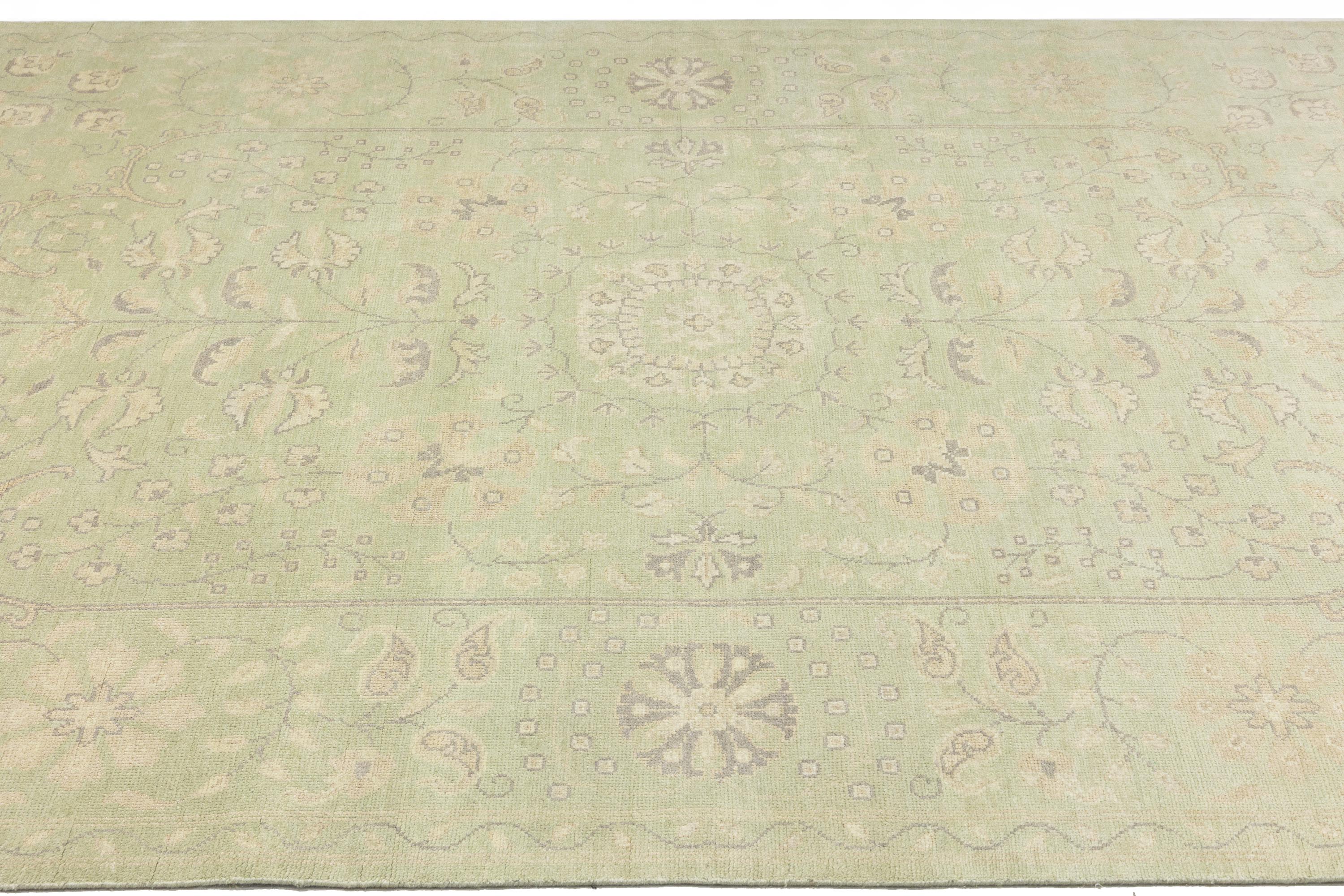 Muted Light Green Floral 9x12 Transitional Oriental Rug