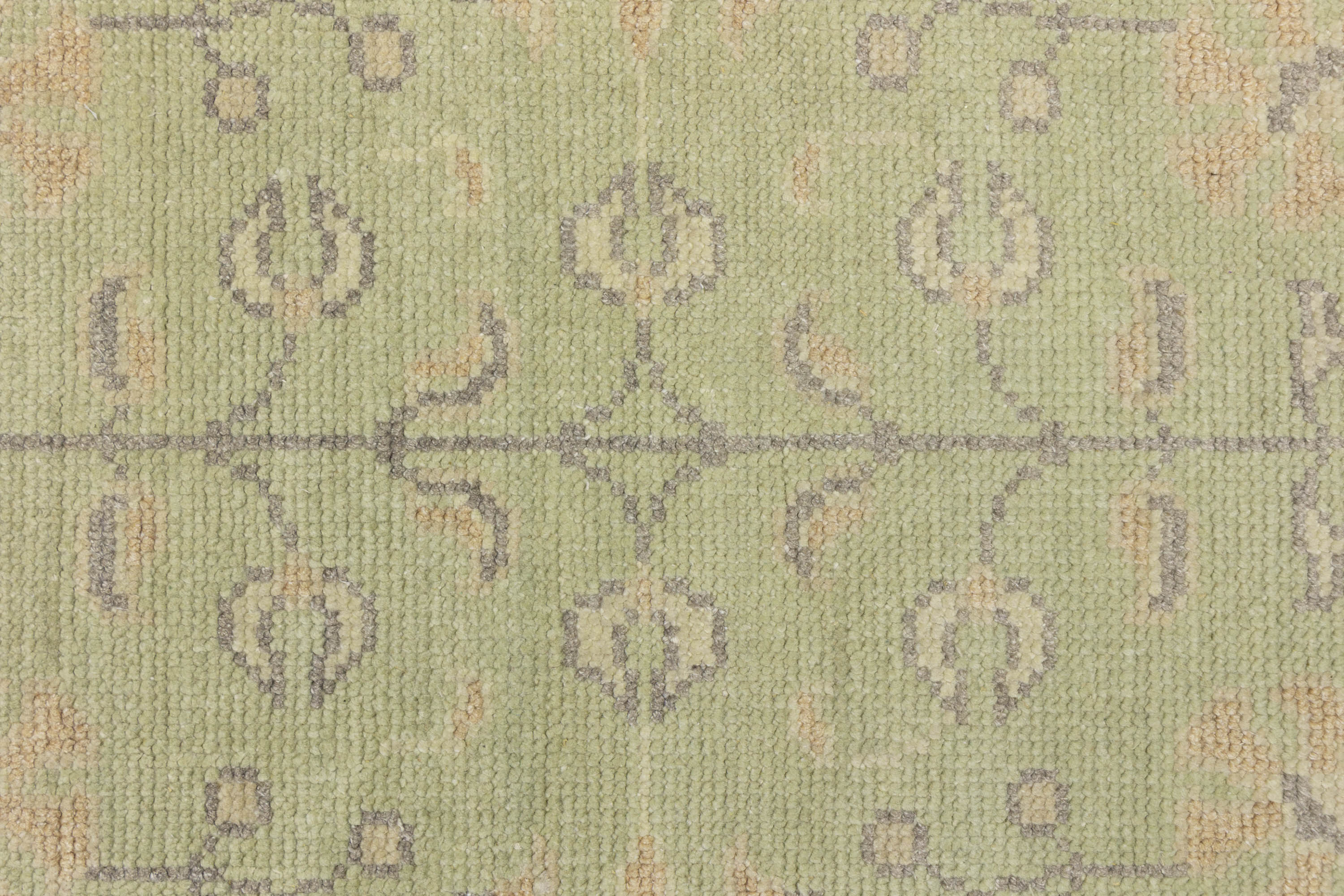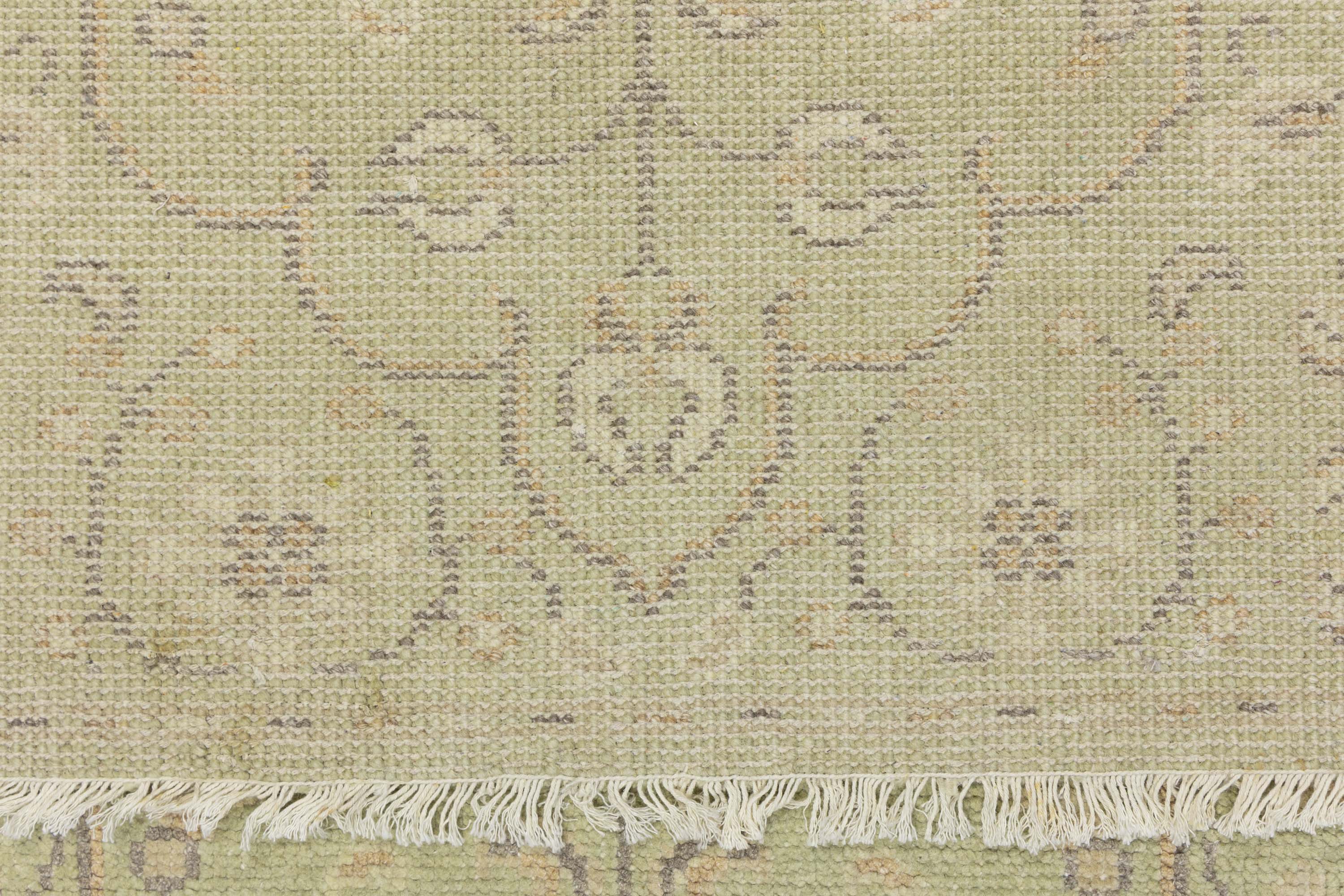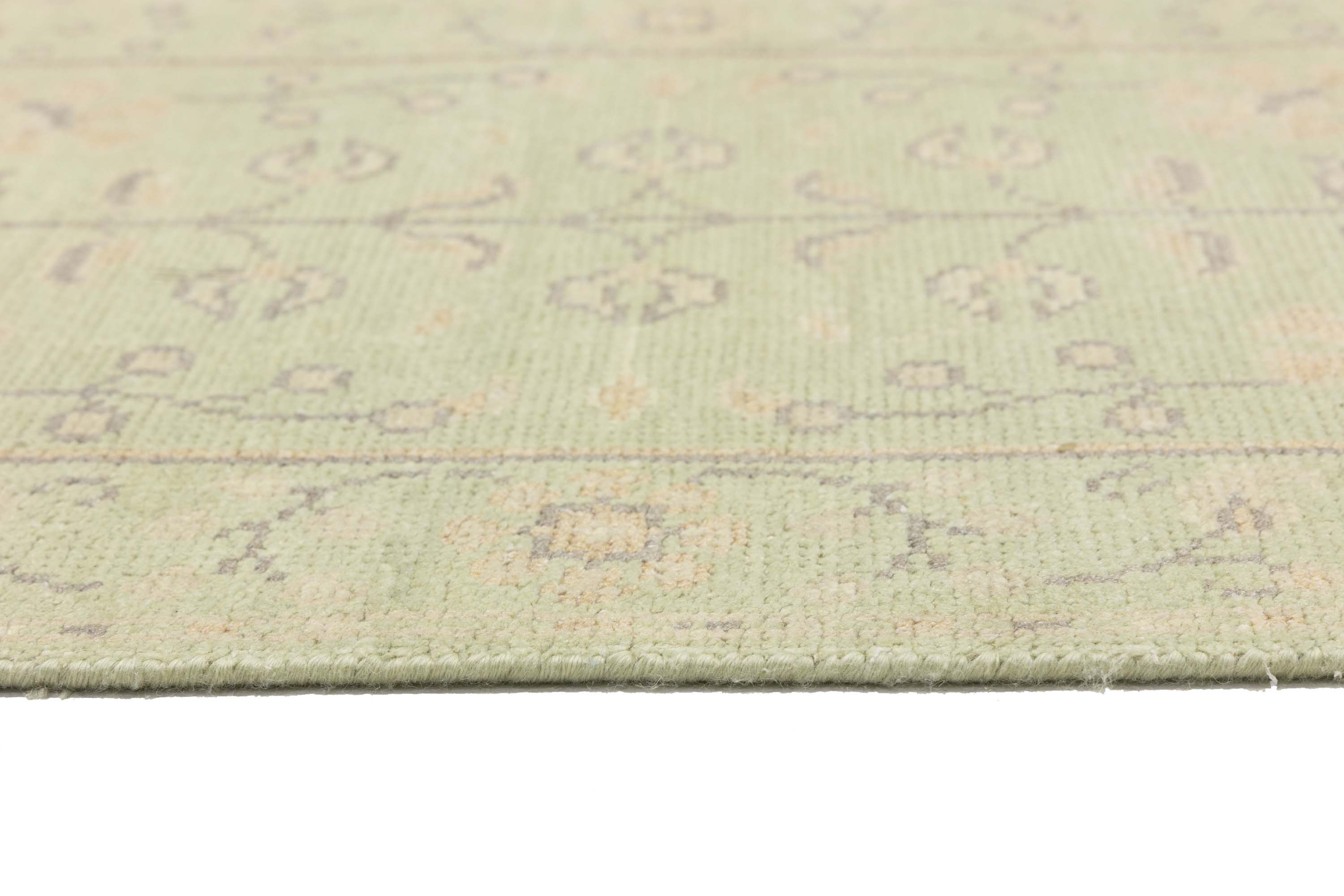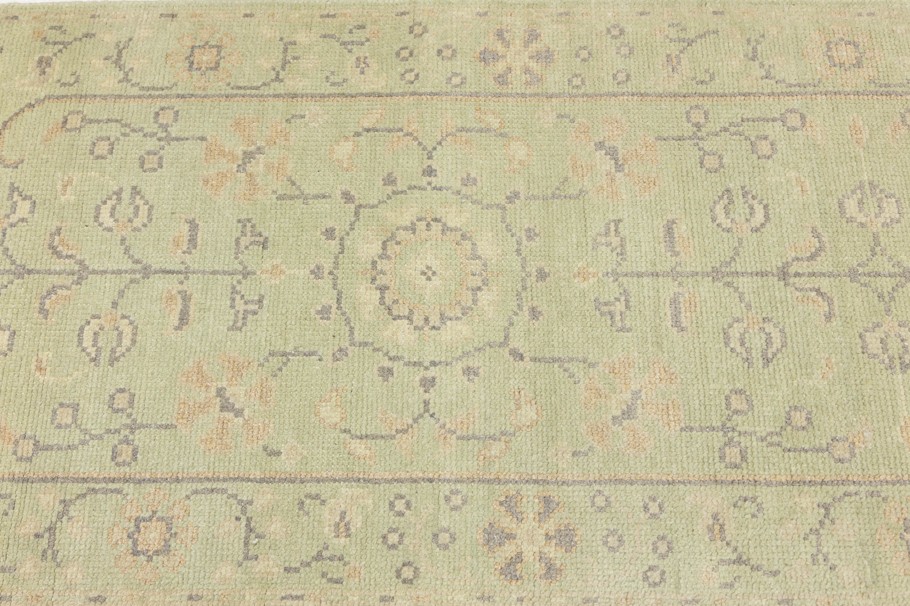 This original 2'6X7'10 light green new Oriental runner was made by the hands of talented weavers influenced by a variety of gorgeous symmetrical artistic designs, to recreate the aged look of the unique piece with a richness of color and very balanced background field. What set this vintage style Oriental area runner from the others are the material and dye used (wool pile and cotton foundation), knot count, antique designs, fantastic grades, and its regional historical connection: it has deep roots, from the story of the people who produced it to the meaning of the symbols and colors displayed across its canvas that have been praised for centuries. This Indian home décor carpet will be completely cozy and inviting that never will go out of style! Also, this Oriental rug would be among your most valuable treasures, it is a great investment that accrues value over time, and it will last a lifetime because was woven with high-quality, all-natural wool. Eco-friendly, opulent yet affordable; this runner will give you an extra pop of character to help define your home environment with sophistication and warmth that will capture the eyes and attention of your audience (homeowners, designers, decorators, family and friends).