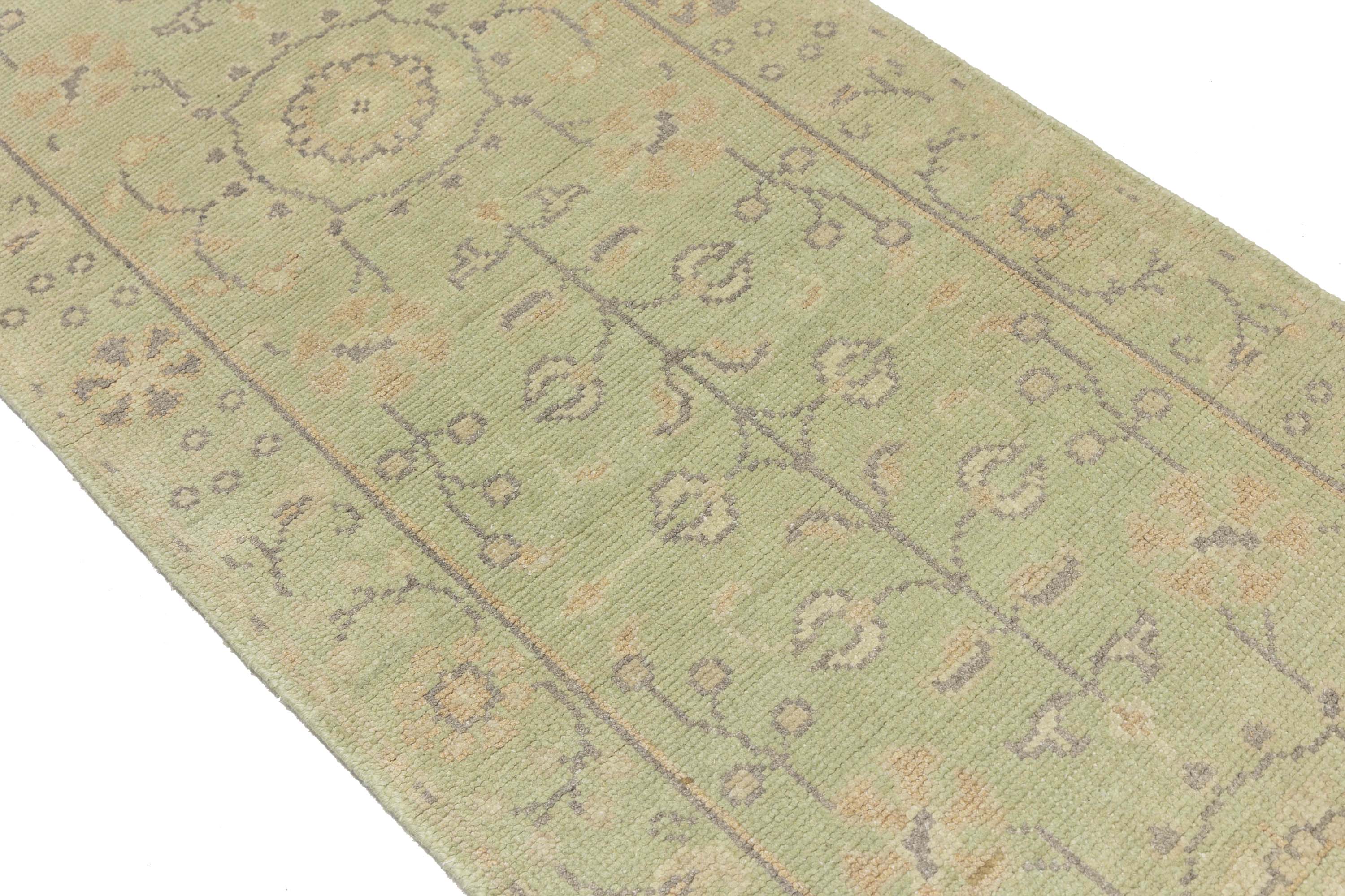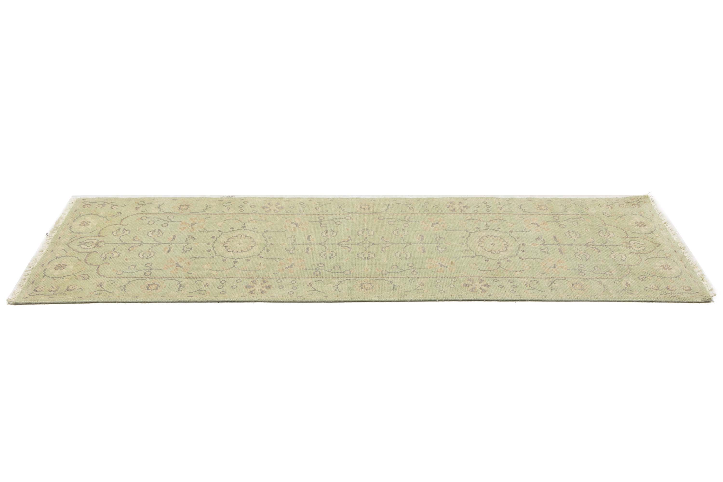Muted Light Green Floral Transitional 2'6X7'10 Oriental Runner Rug