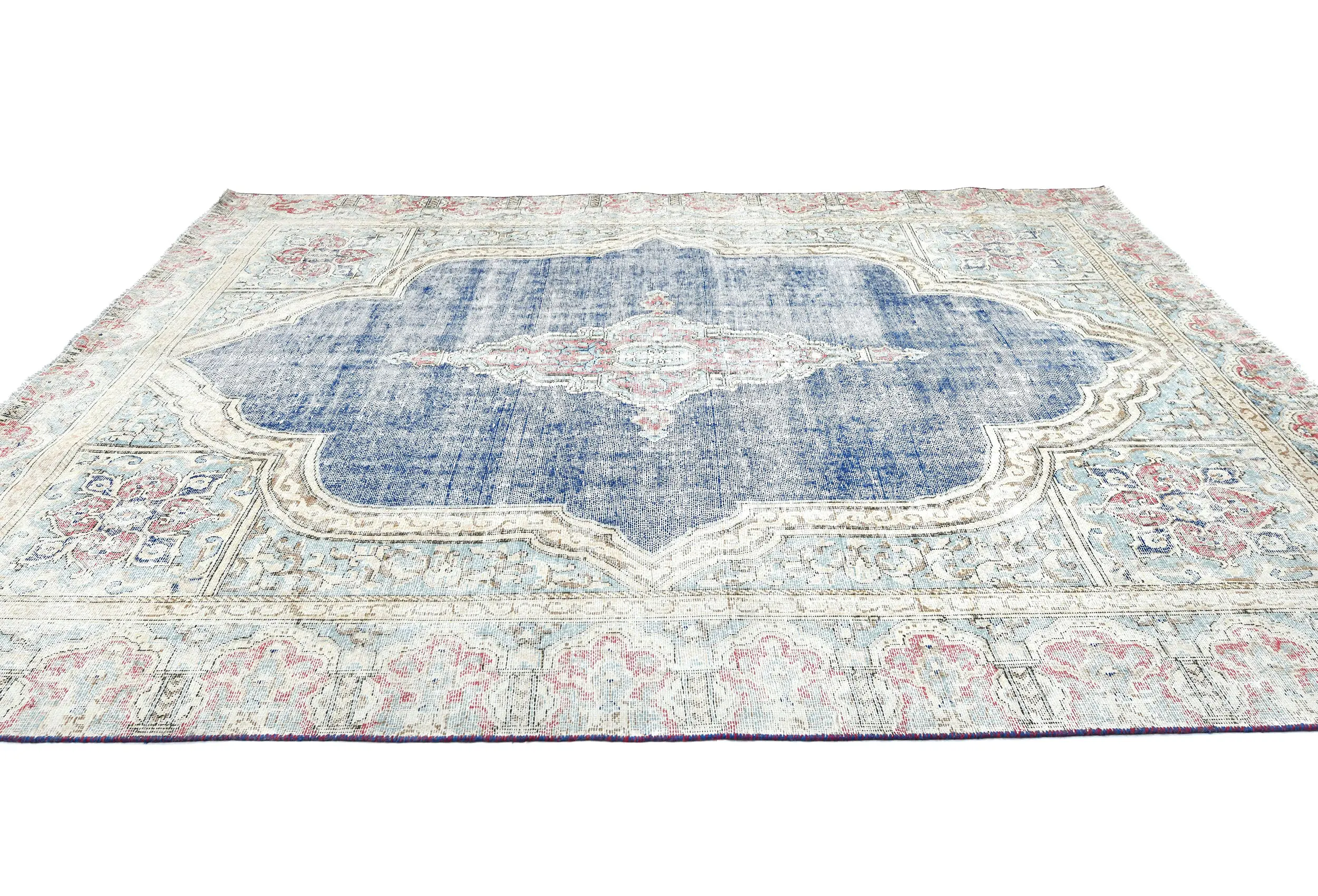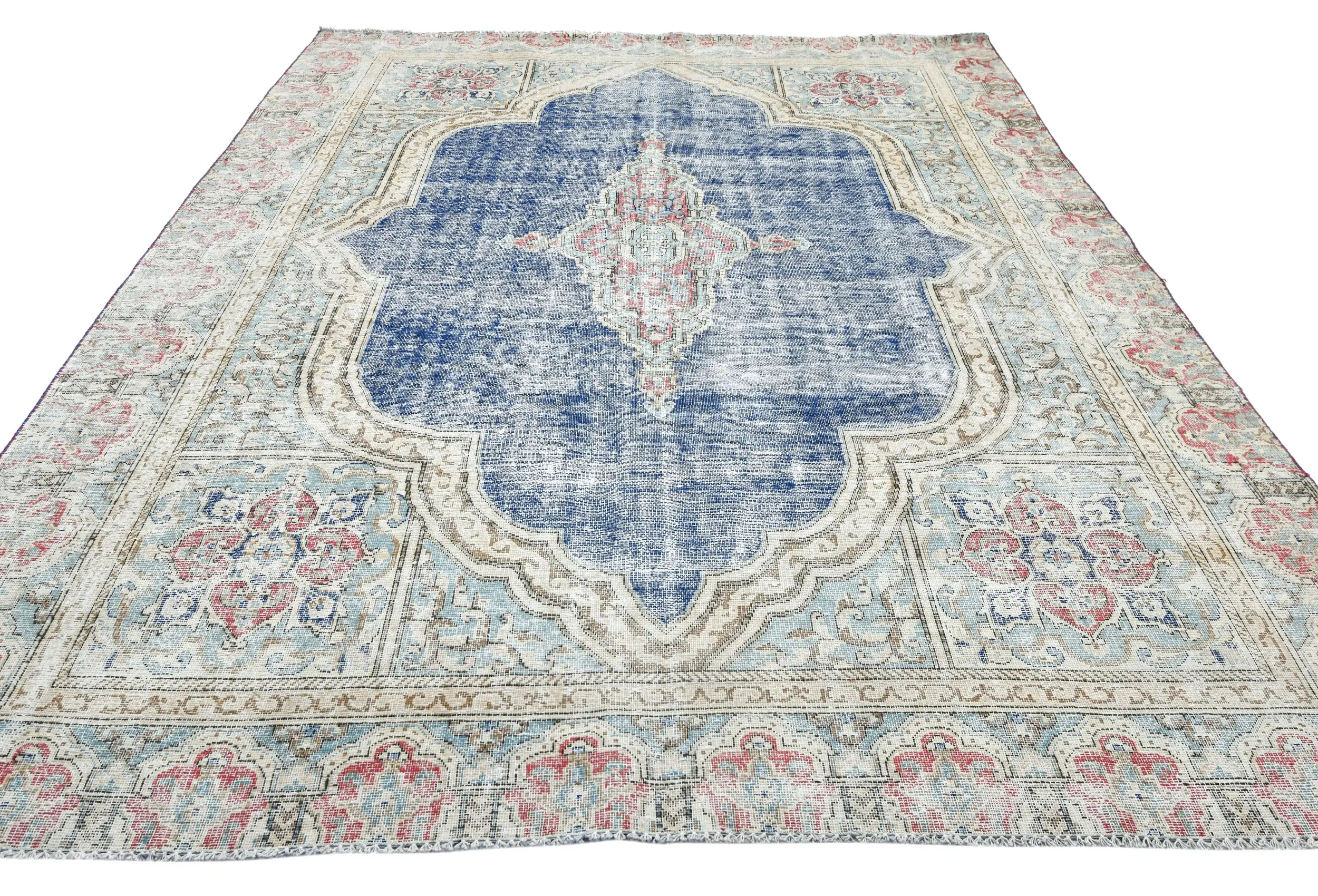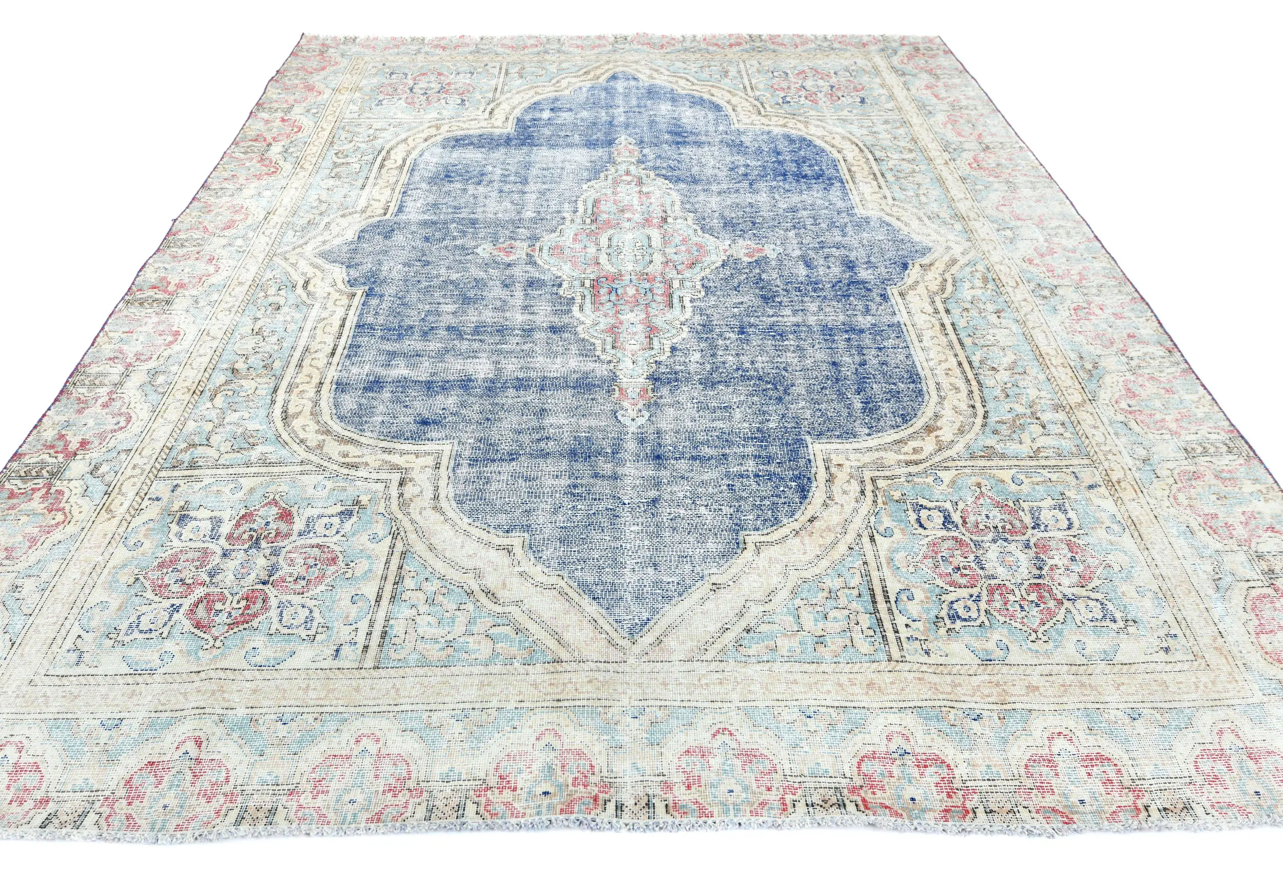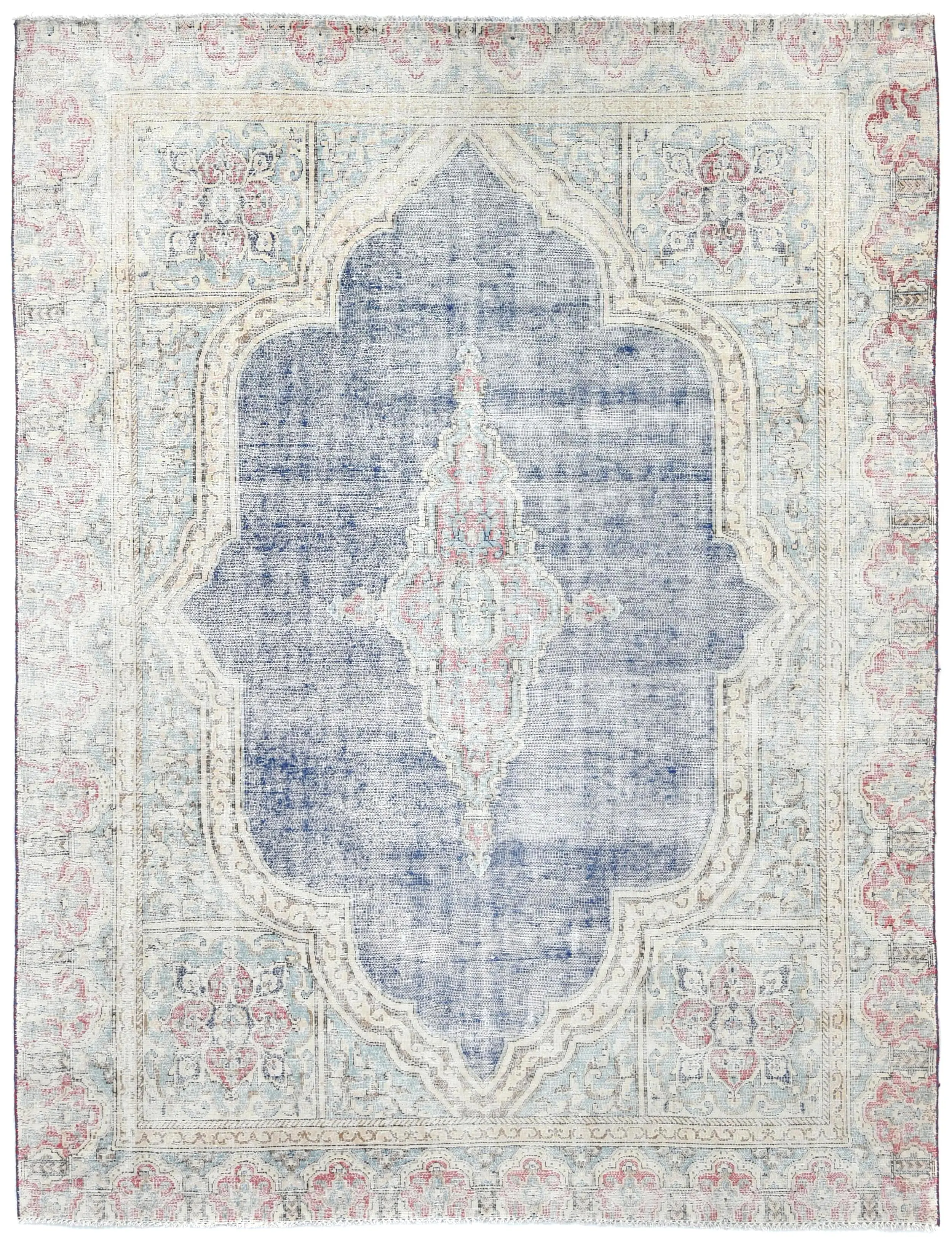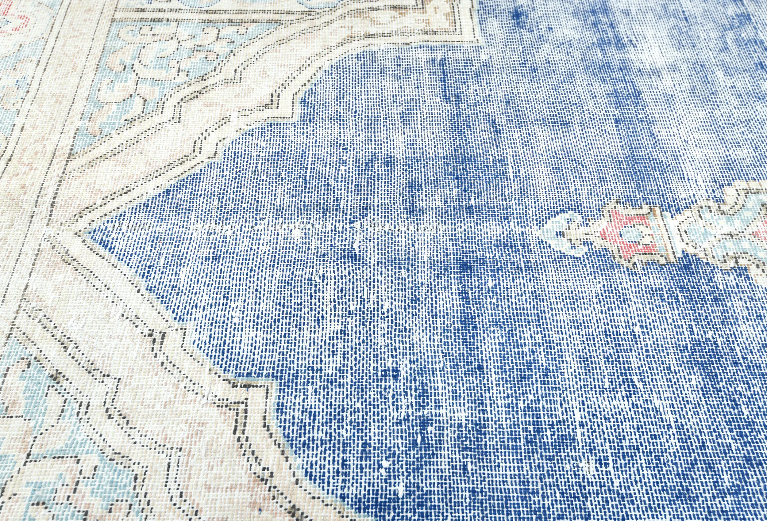 Muted Navy Blue Floral 7X9 Distressed Vintage Oriental Rug