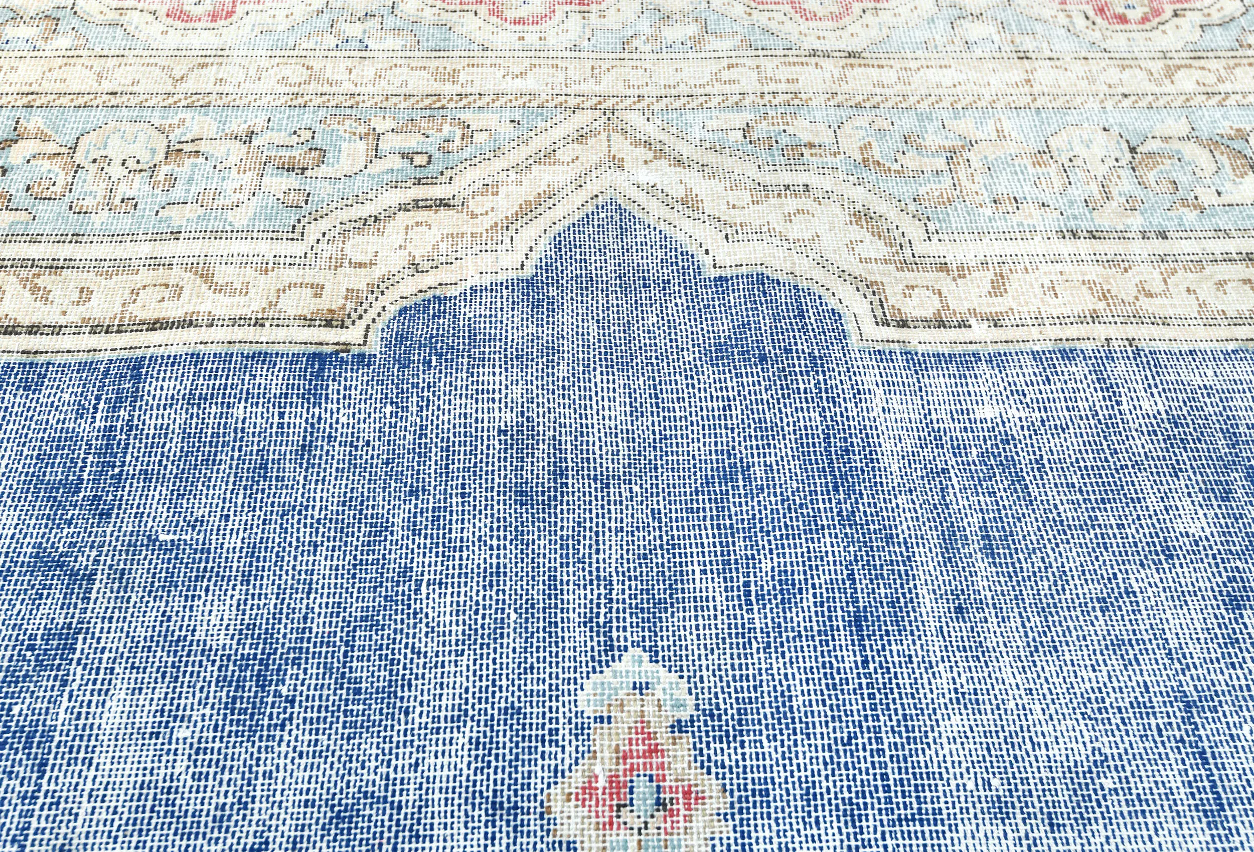 This authentic 7X9 navy blue vintage Oriental rug was finely knotted by the hands of weavers influenced by a variety of amazing artistic designs, to recreate the aged look of the exceptional piece with a richness of color and embellished background field. What set this tribal Oriental area rug from the others are the material and dye used (wool pile and cotton foundation), knot count, antique designs, fantastic grades, and its regional historical connection: it has deep roots, from the story of the people who produced it to the meaning of the symbols and colors displayed across its canvas that have been praised for centuries. This home décor carpet will be completely cozy and inviting that never will go out of style! Also, this Oriental rug would be among your most valuable treasures, it is a great investment that increase in value over time, and it will last a lifetime because was woven with high-quality, all-natural wool; it won’t rip, tear, or shed. Eco-friendly, opulent yet affordable; this Persian rug will give you an extra pop of character to help define your home environment with luxury and warmth that will capture the eyes and attention of your audience (homeowners, designers, decorators, family and friends).