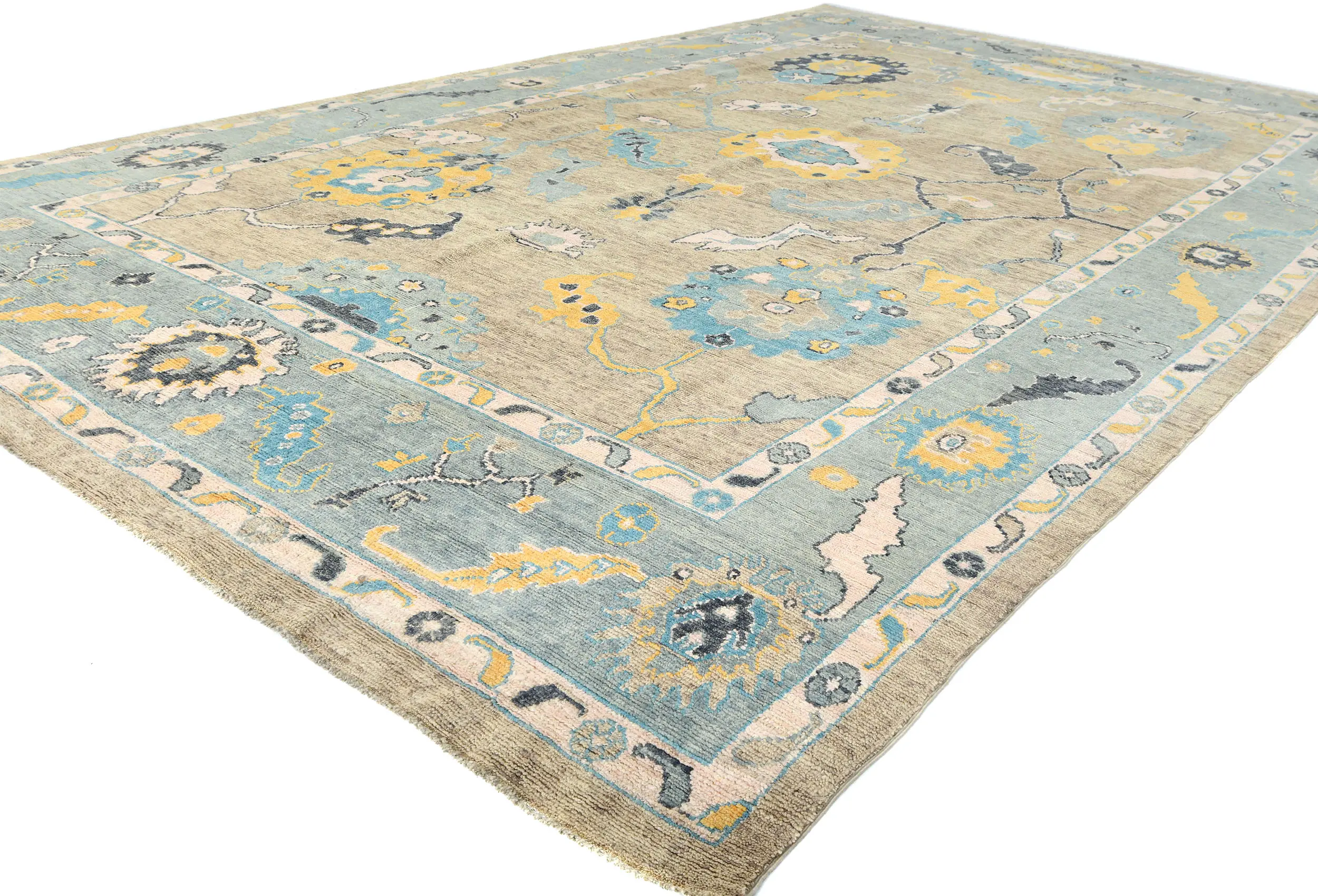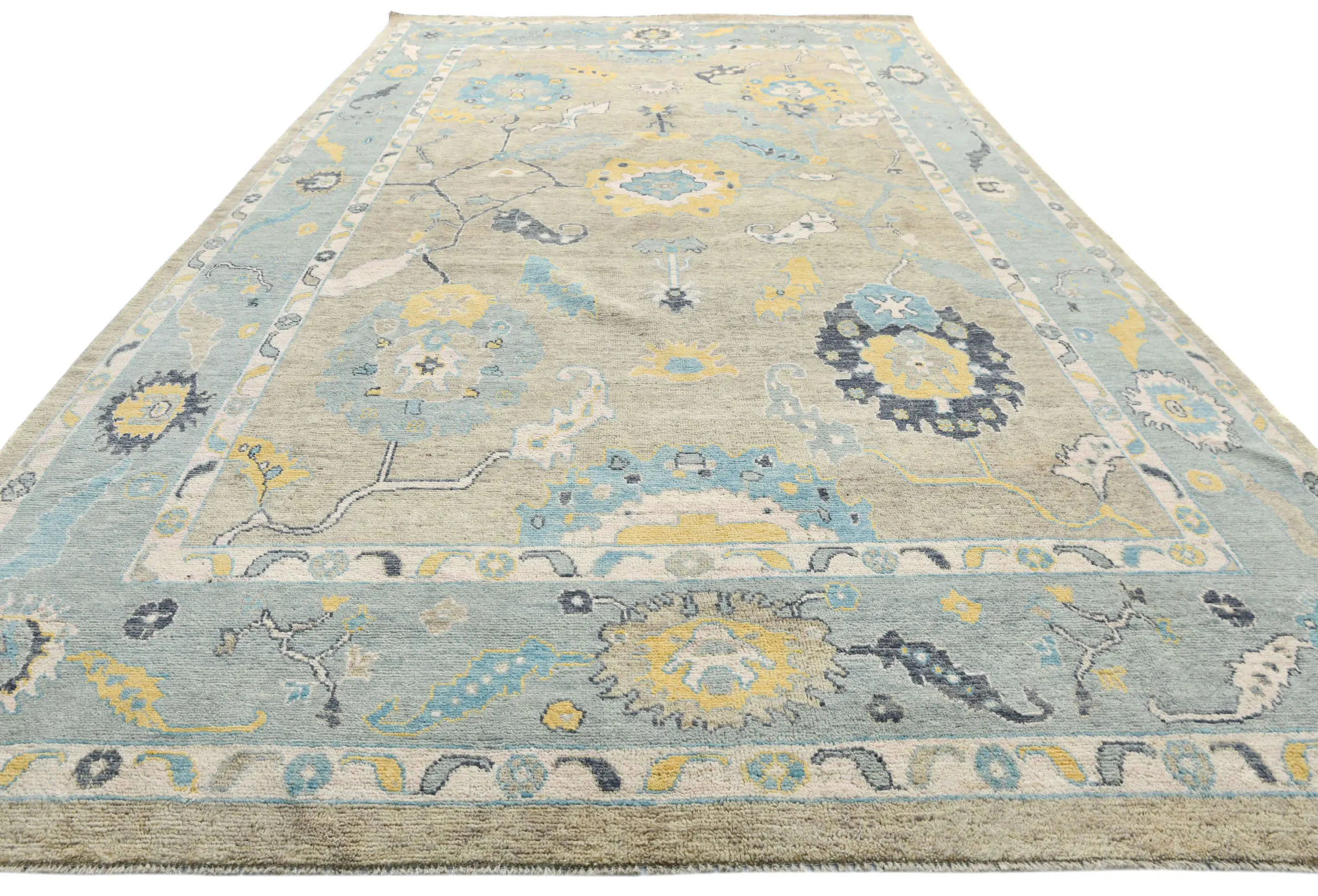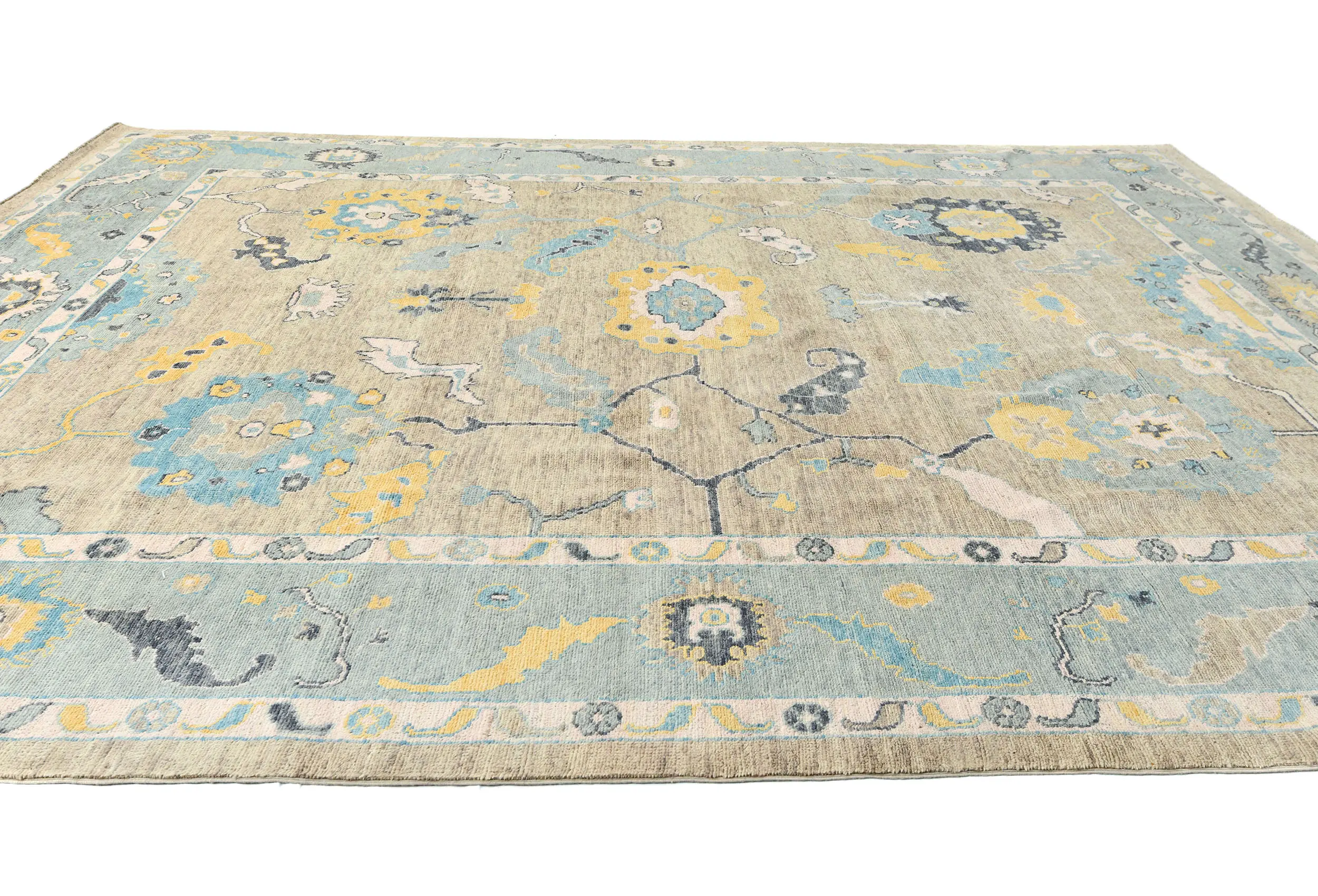 Muted Pastel Brown Floral 10X14 Transitional Oushak Oriental Rug