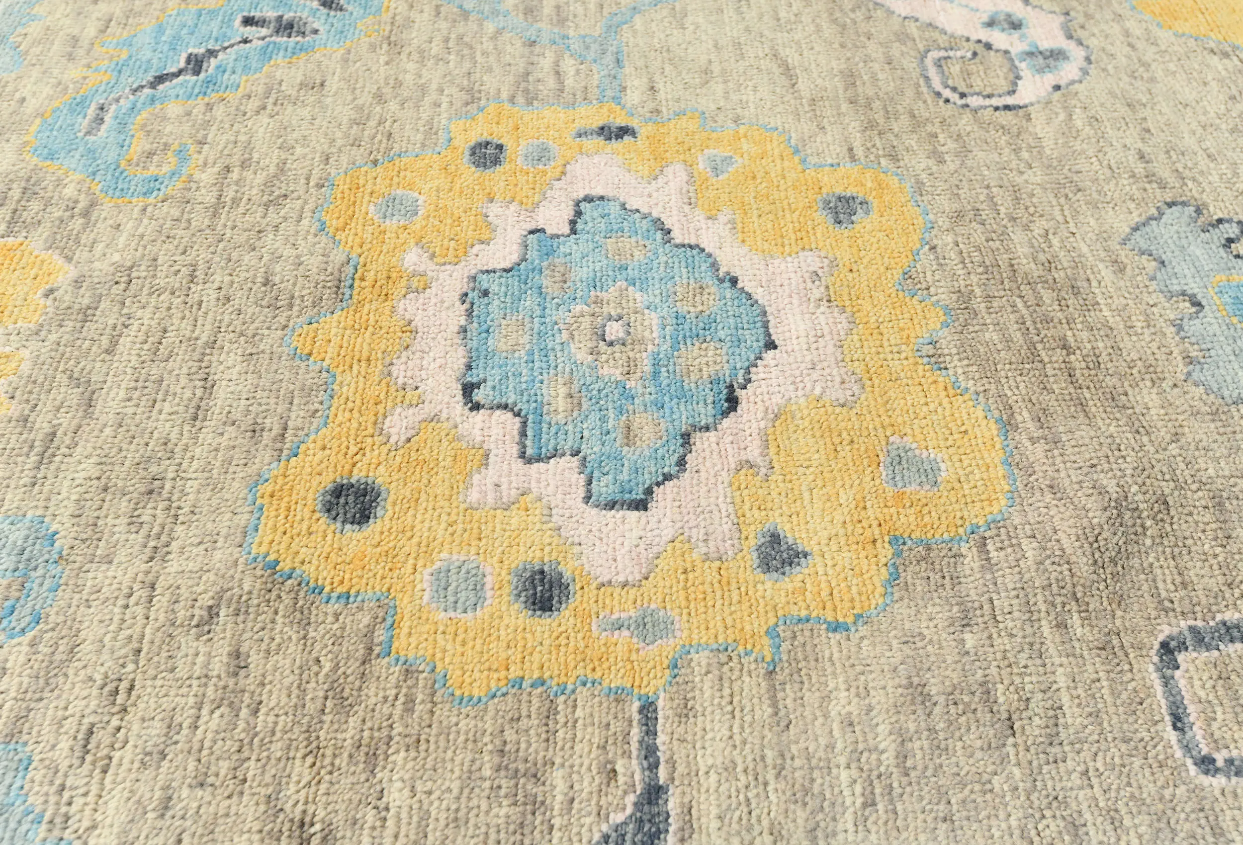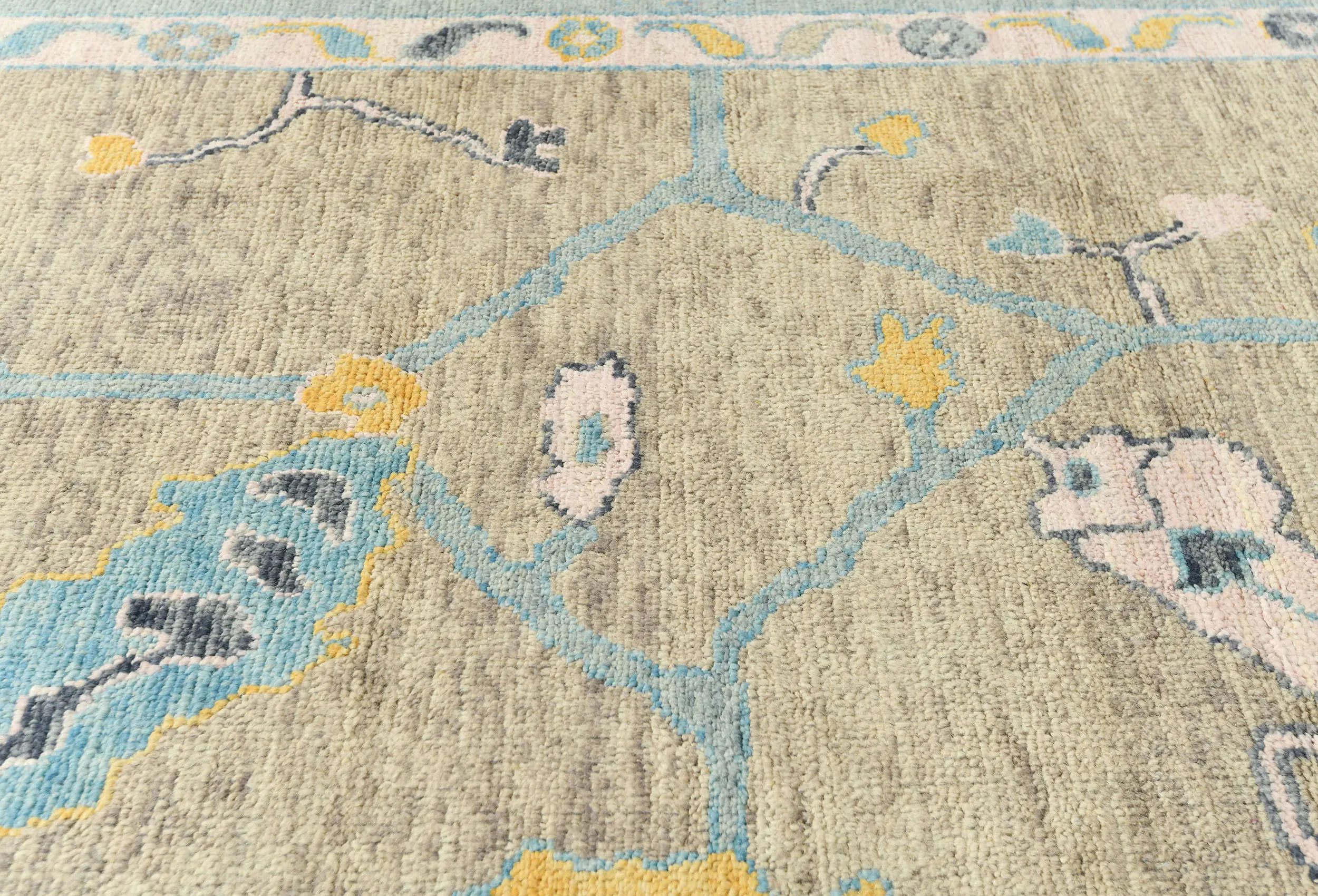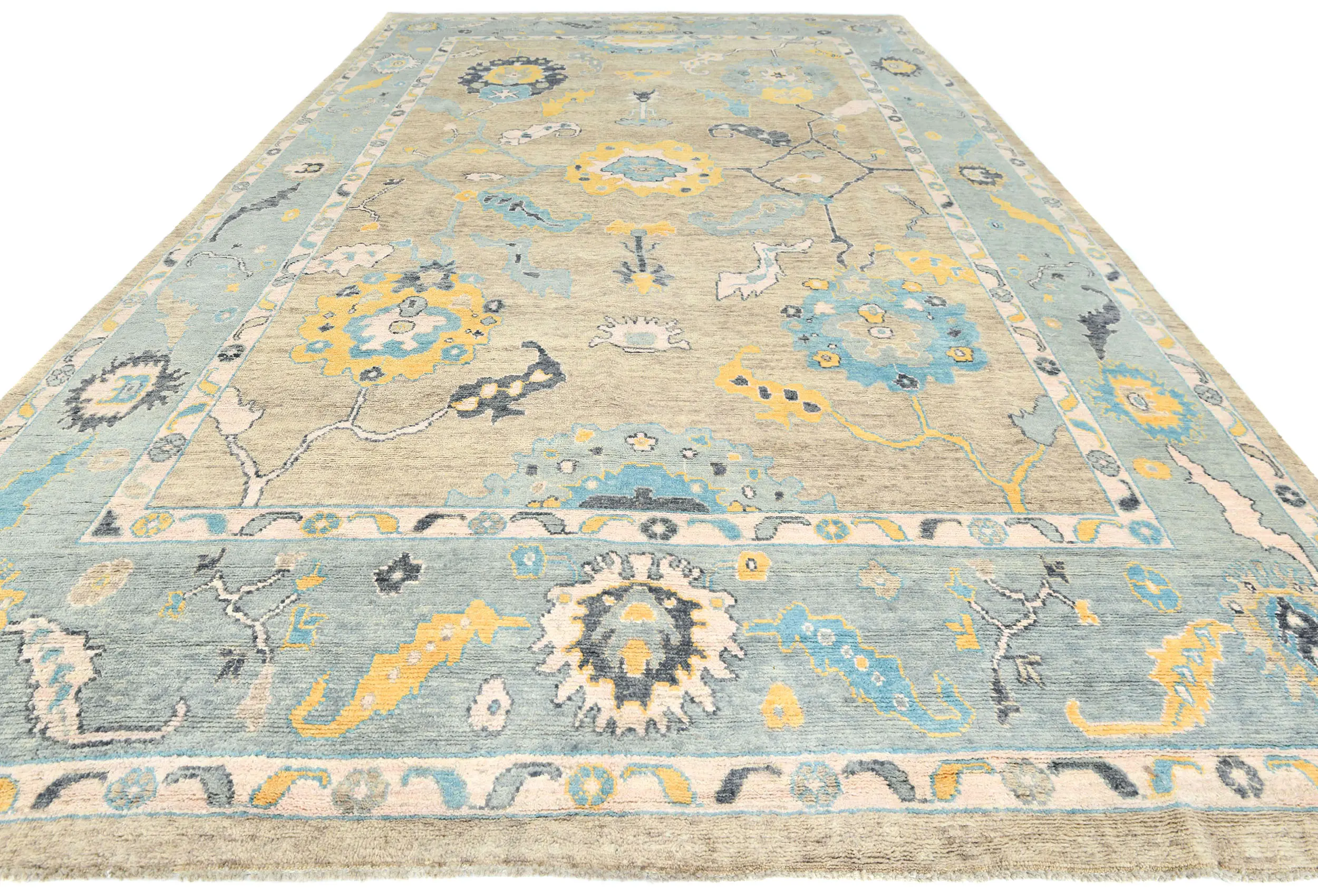 Muted Pastel Brown Floral 10X14 Transitional Oushak Oriental Rug