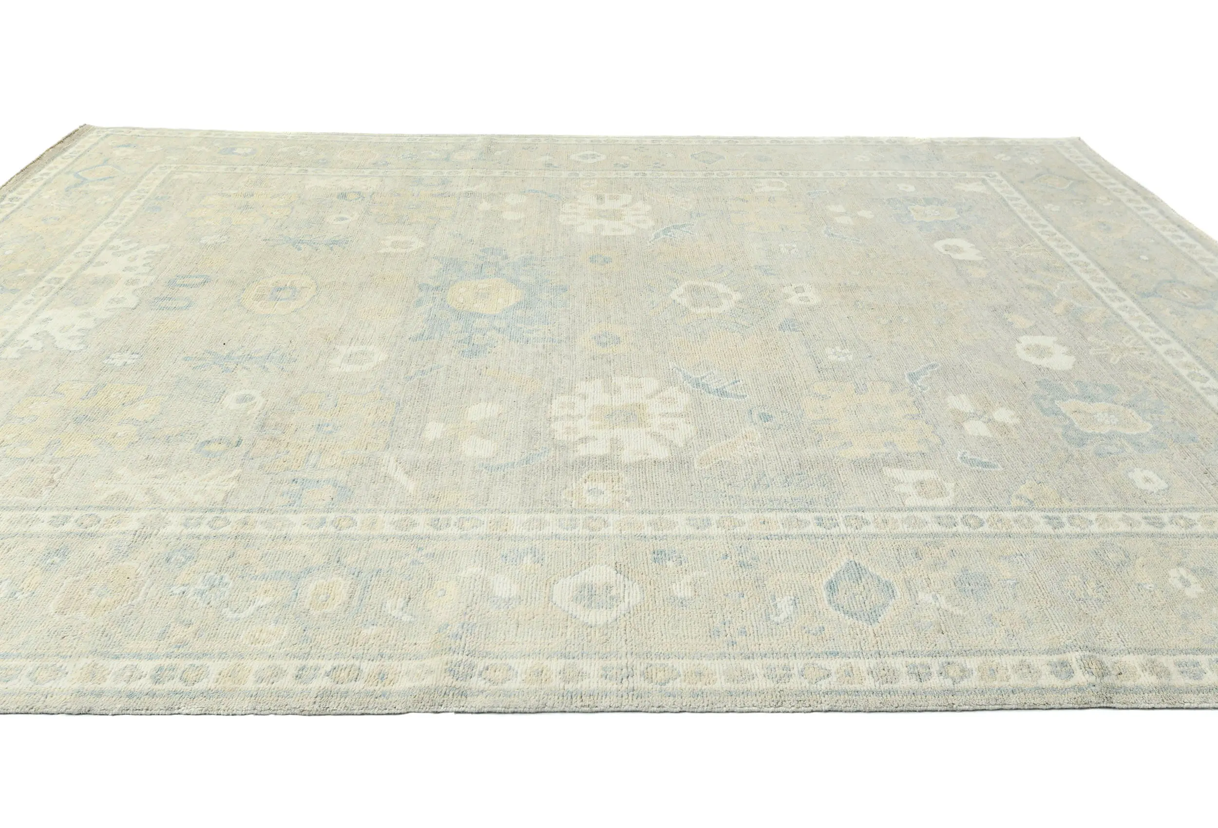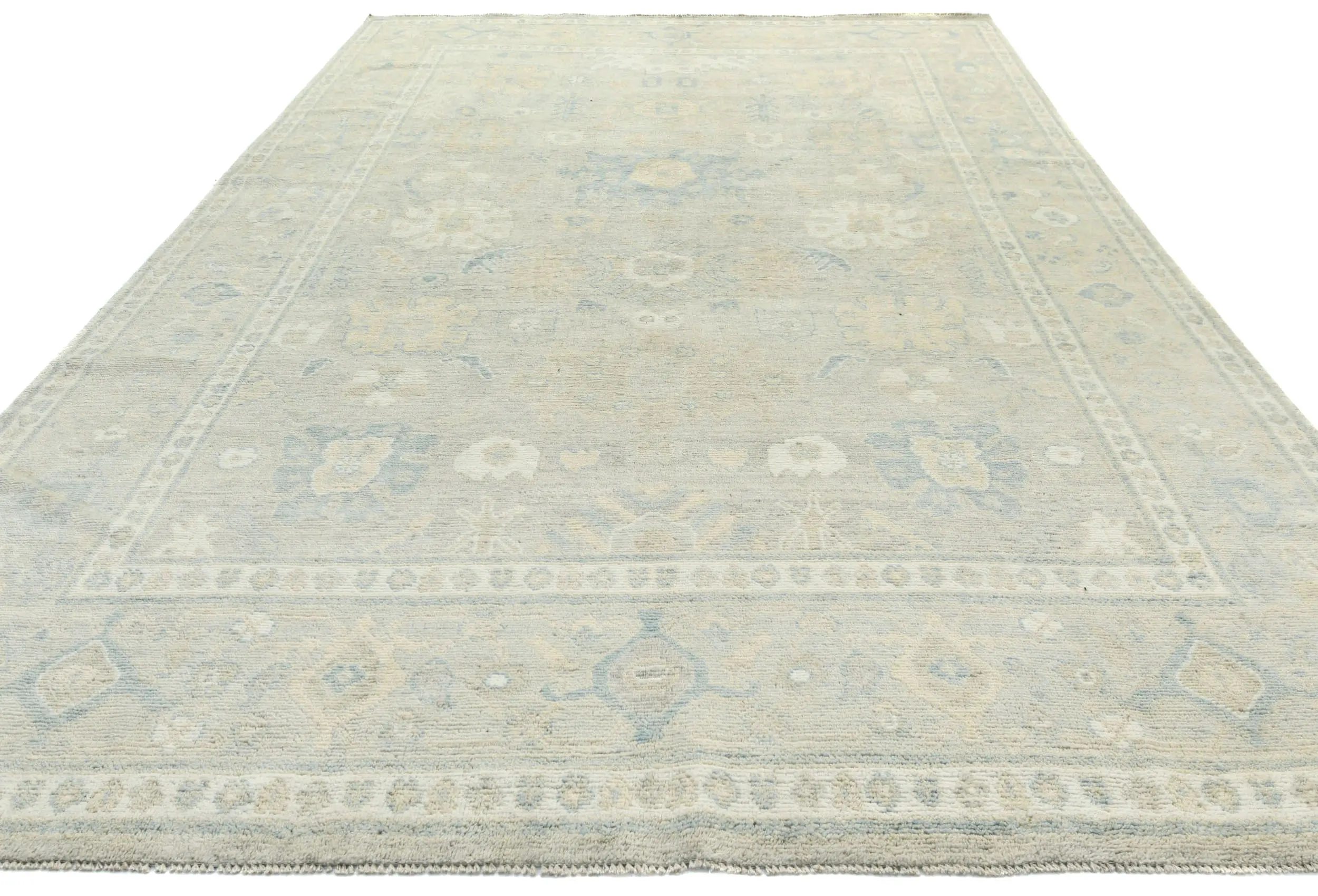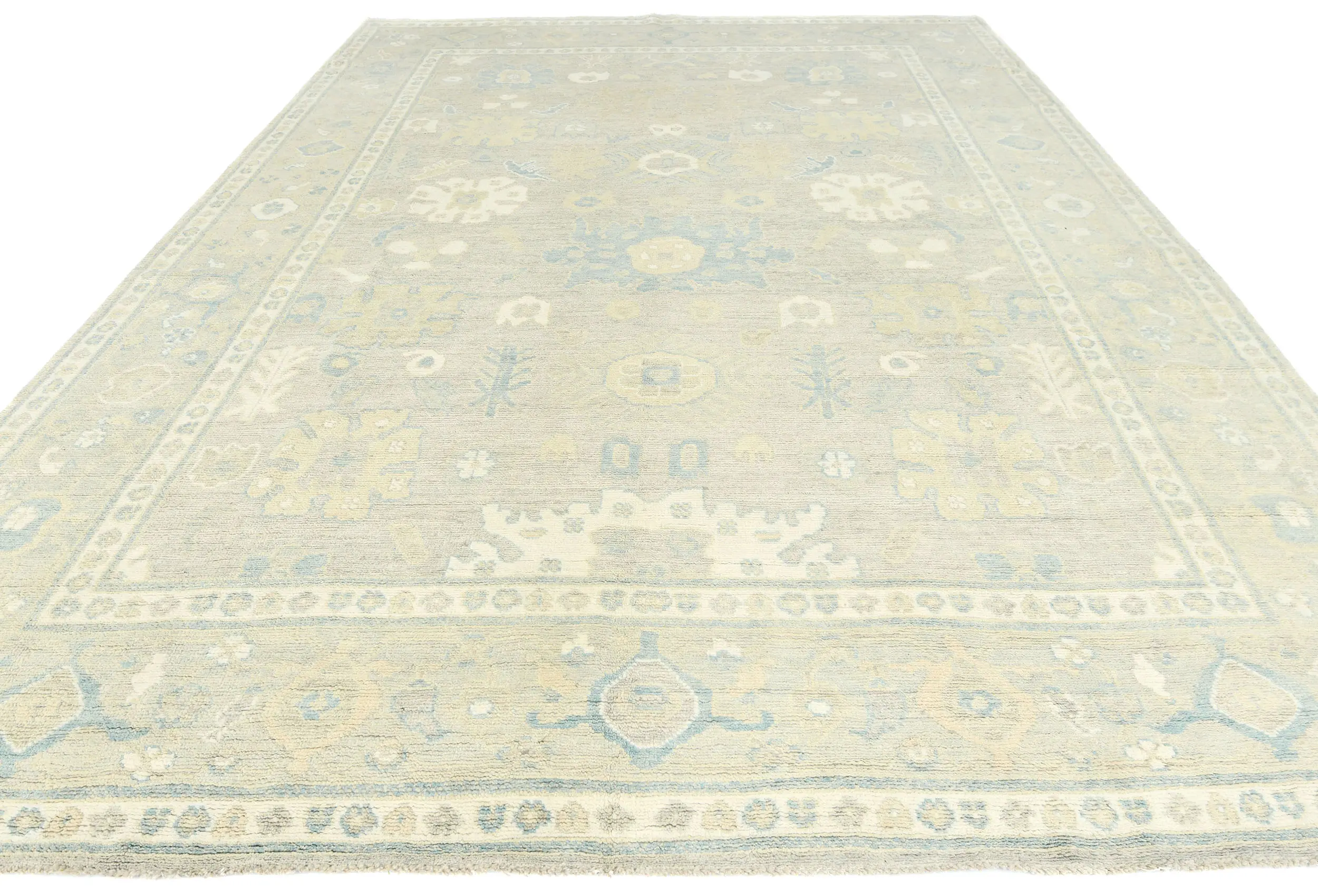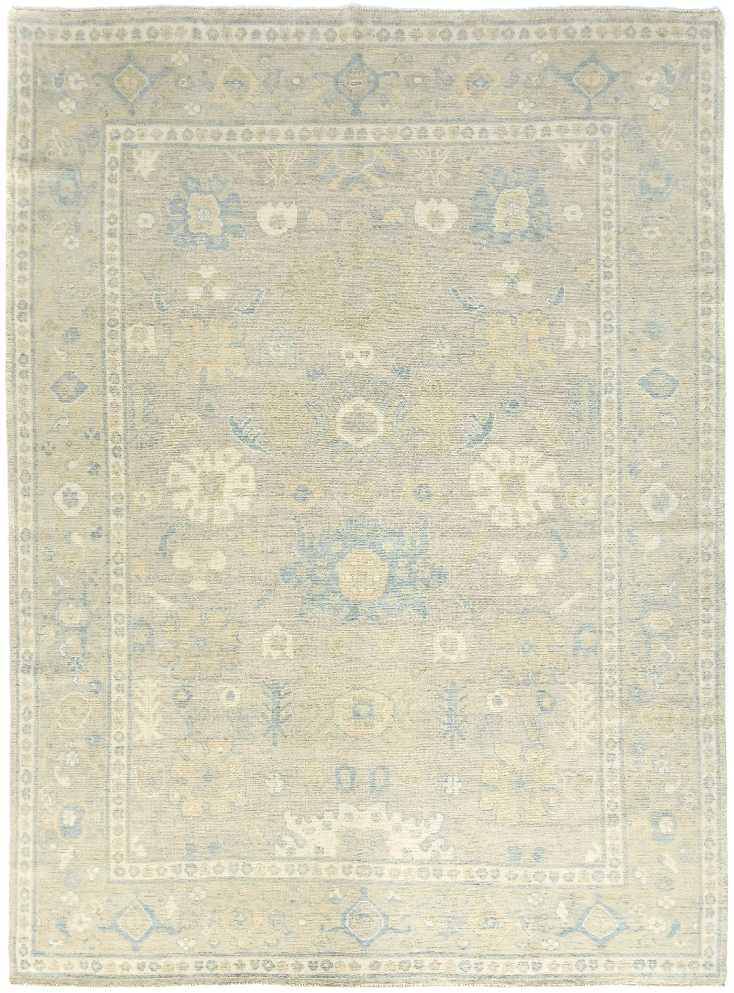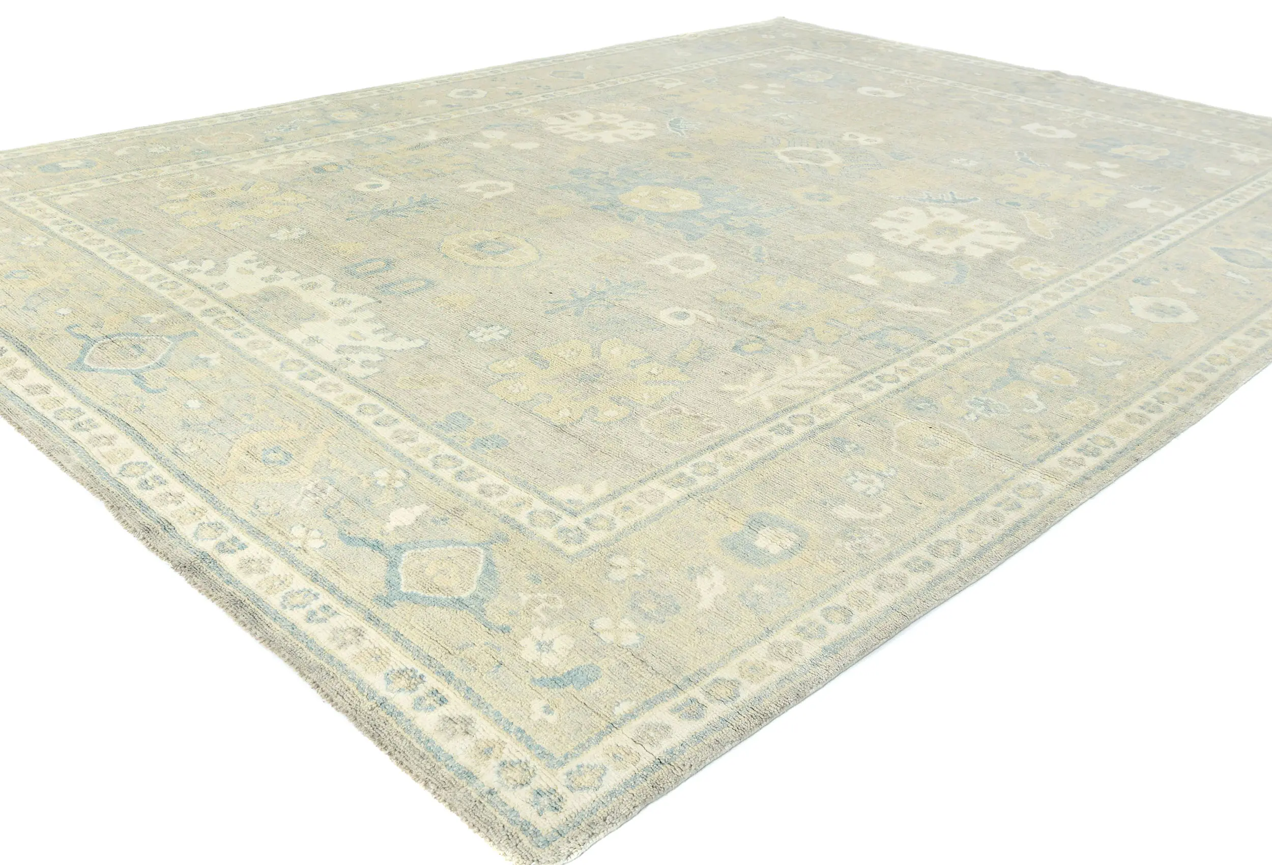 Muted Pastel Brown Floral Distressed 9X12 Oushak Chobi Oriental Rug