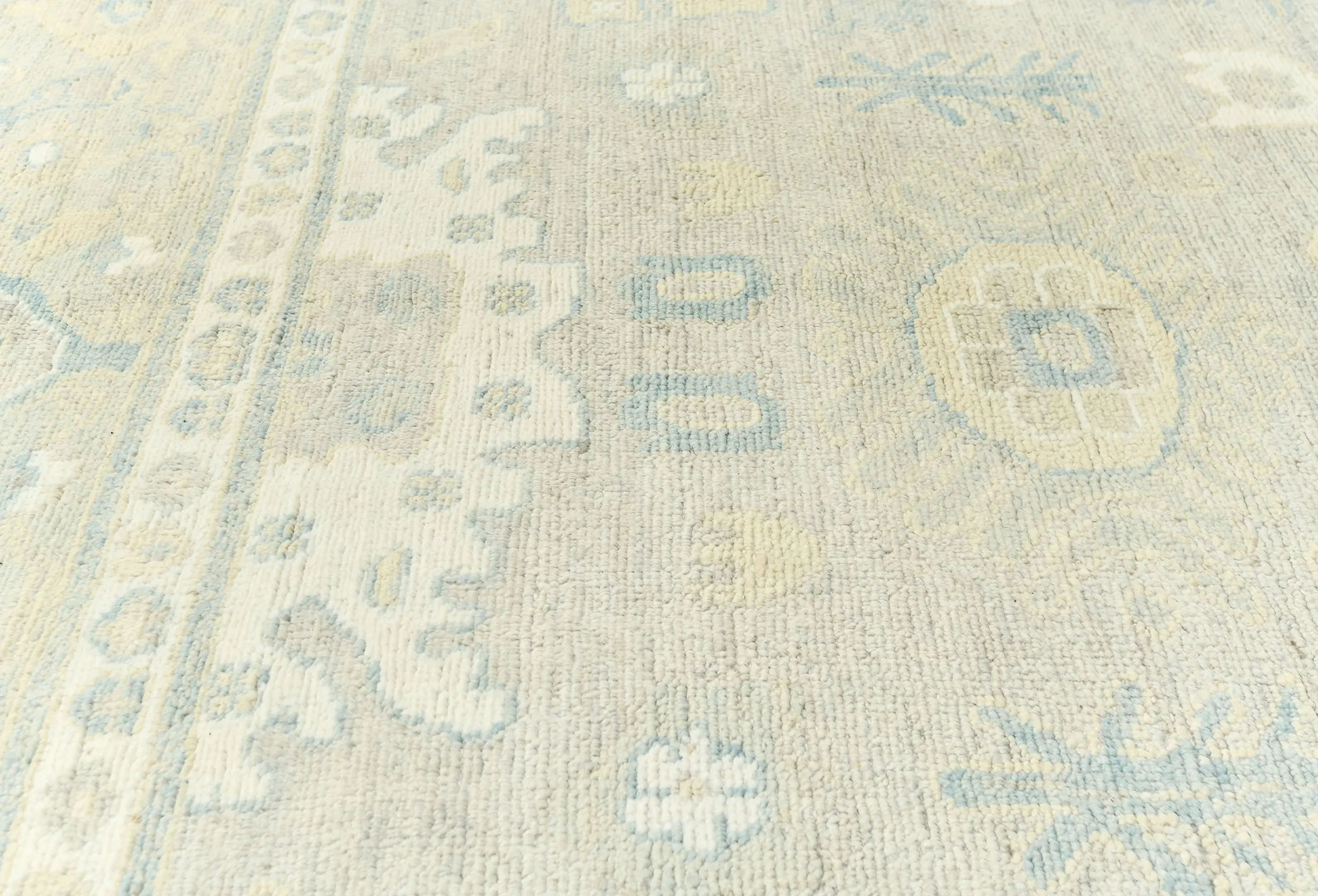 This authentic 9X12 Pastel Brown new Oriental rug was crafted by the hands of skilled weavers enthused by a variety of lovely artistic designs, to recreate the aged look of the unique piece with a richness of color and beautifully elaborated background field. What set this vintage style Oriental area rug from the others are the material and dye used (wool pile and cotton foundation), knot count, ancient designs, fantastic grades, and its regional historical connection: it has deep roots, from the story of the people who produced it to the meaning of the symbols and colors displayed across its canvas that have been praised for centuries. This Indian home décor carpet will be completely cozy and inviting that never will go out of style! Also, this Oriental rug would be among your most valuable treasures, it is a great investment that increase in value over time, and it will last for generations because was woven with high-quality, all-natural wool. Environmentally friendly, opulent yet affordable; this rug will give you a thorough amount of character to help define your living space with sophistication and warmth that will capture the eyes and attention of your audience (homeowners, designers, decorators, family and friends).