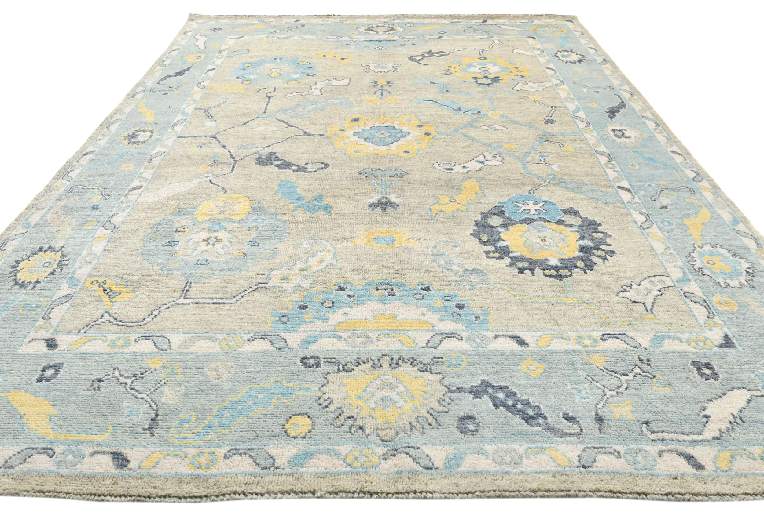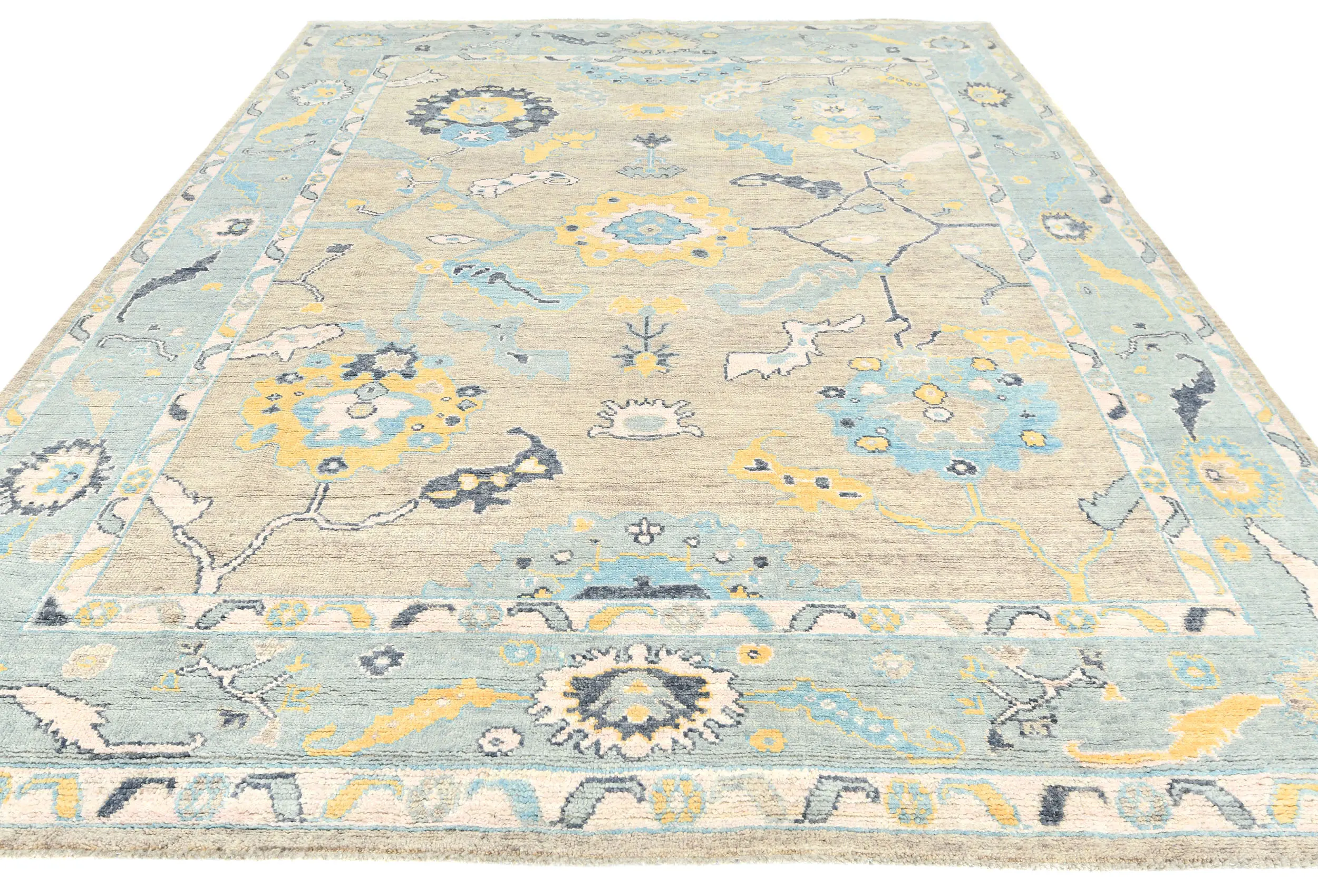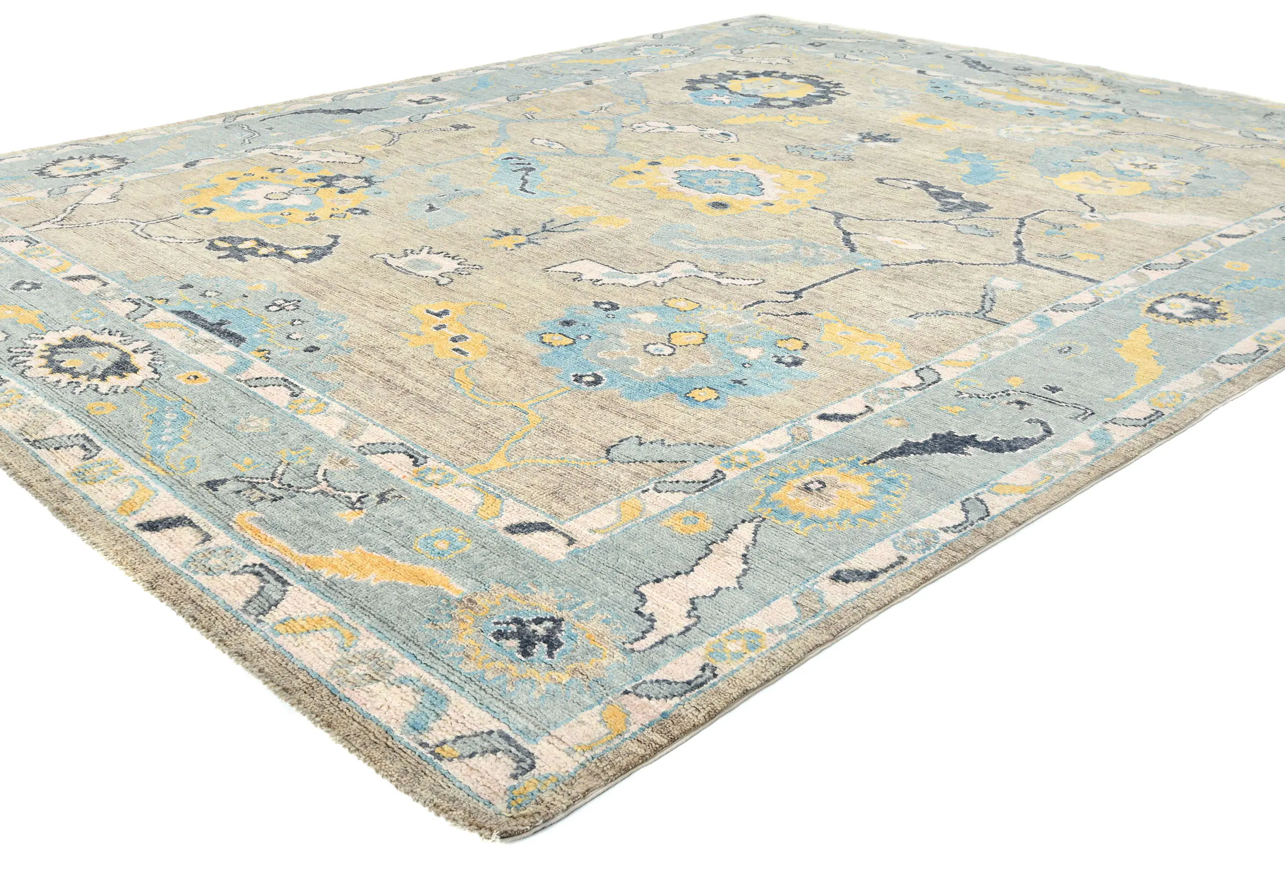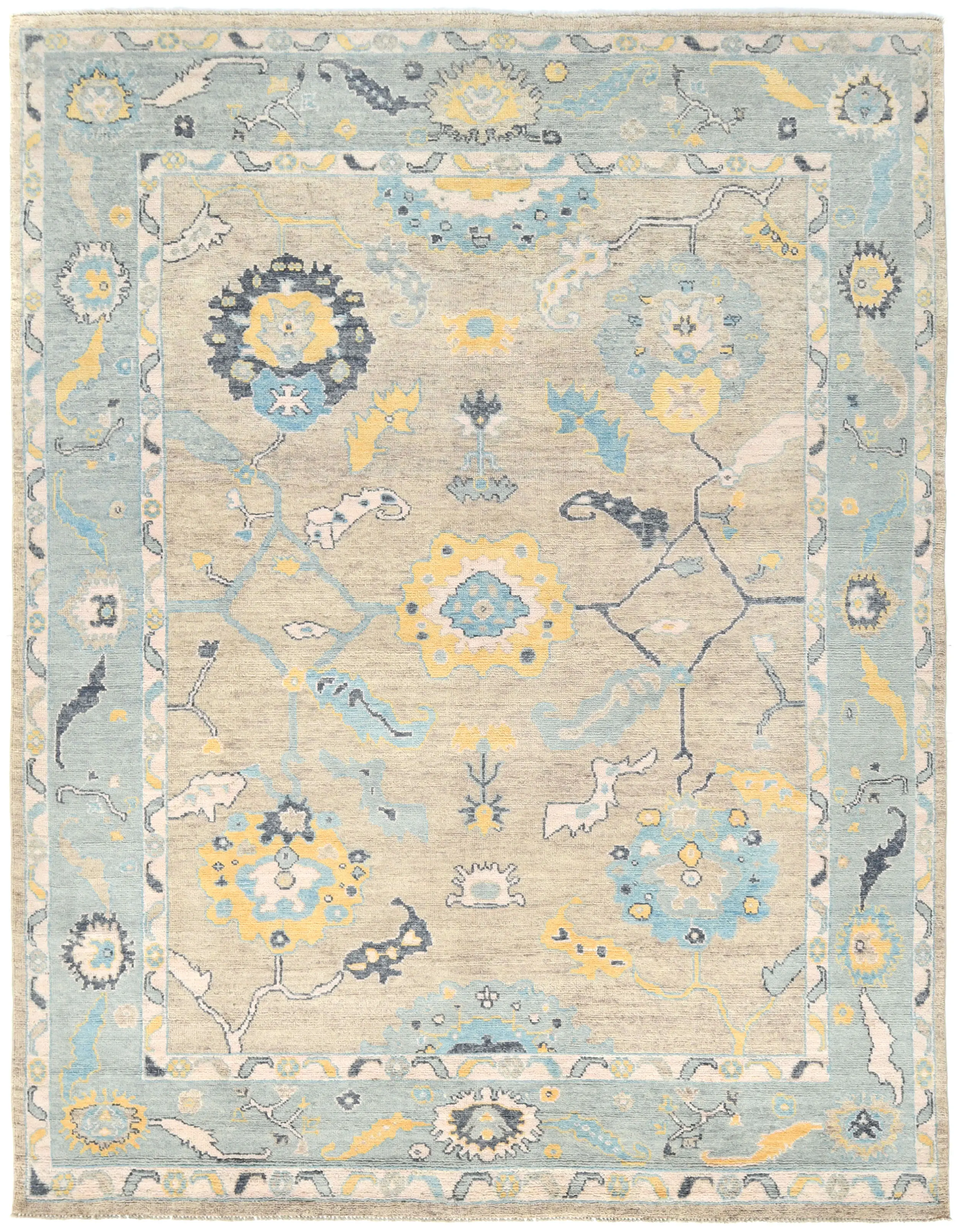 Muted Pastel Brown Transitional Floral 8X10 Oushak Oriental Rug