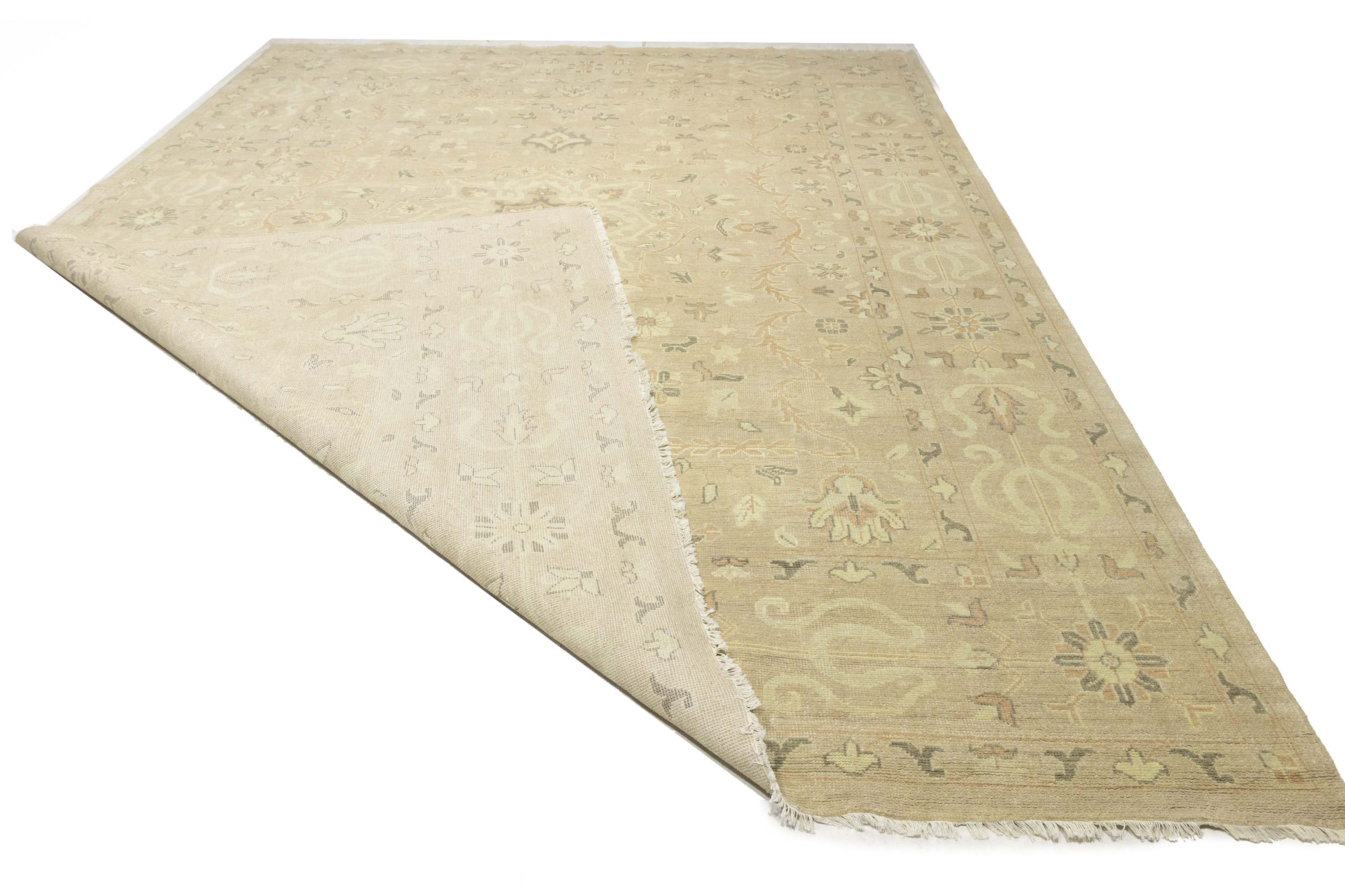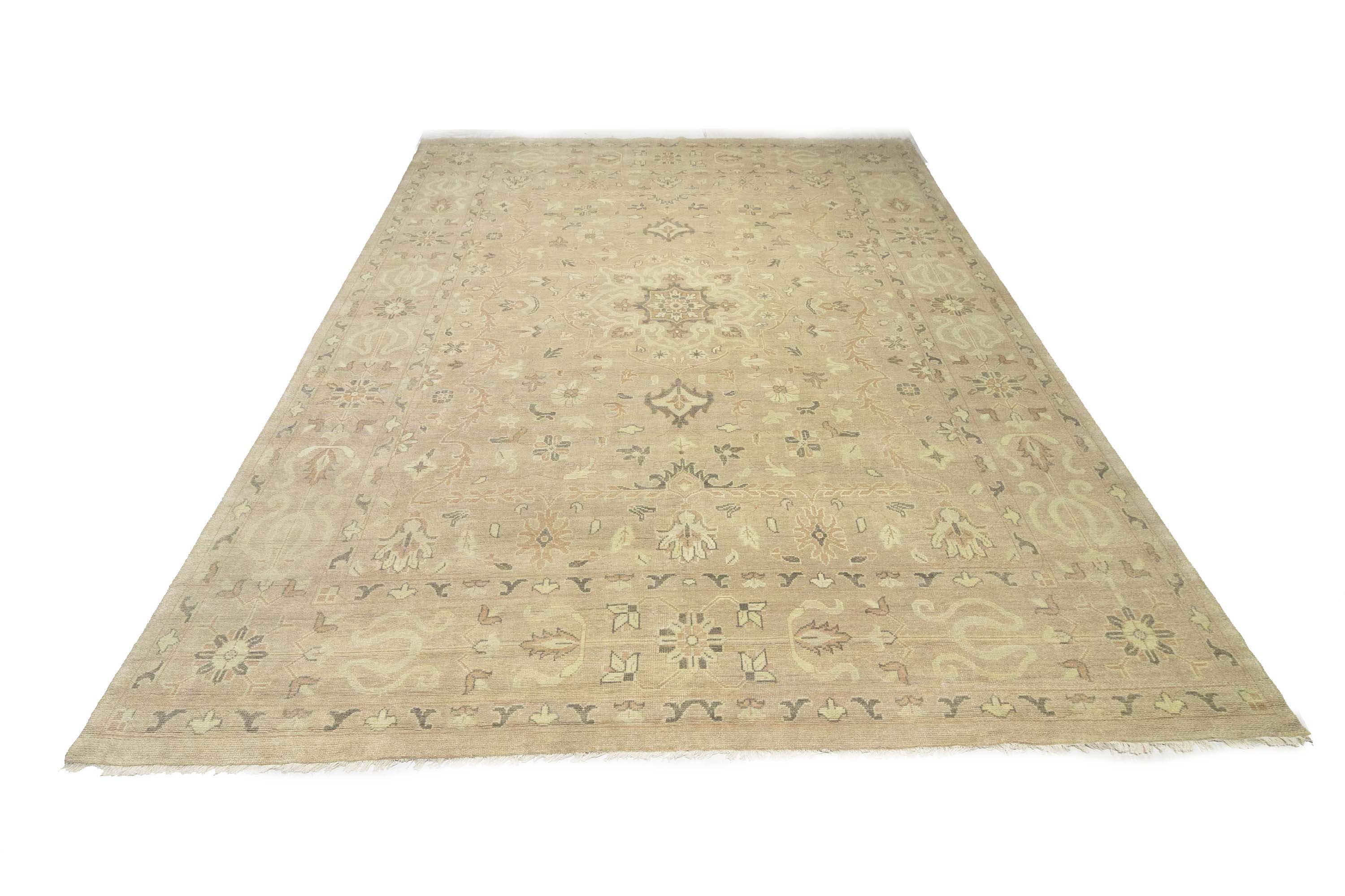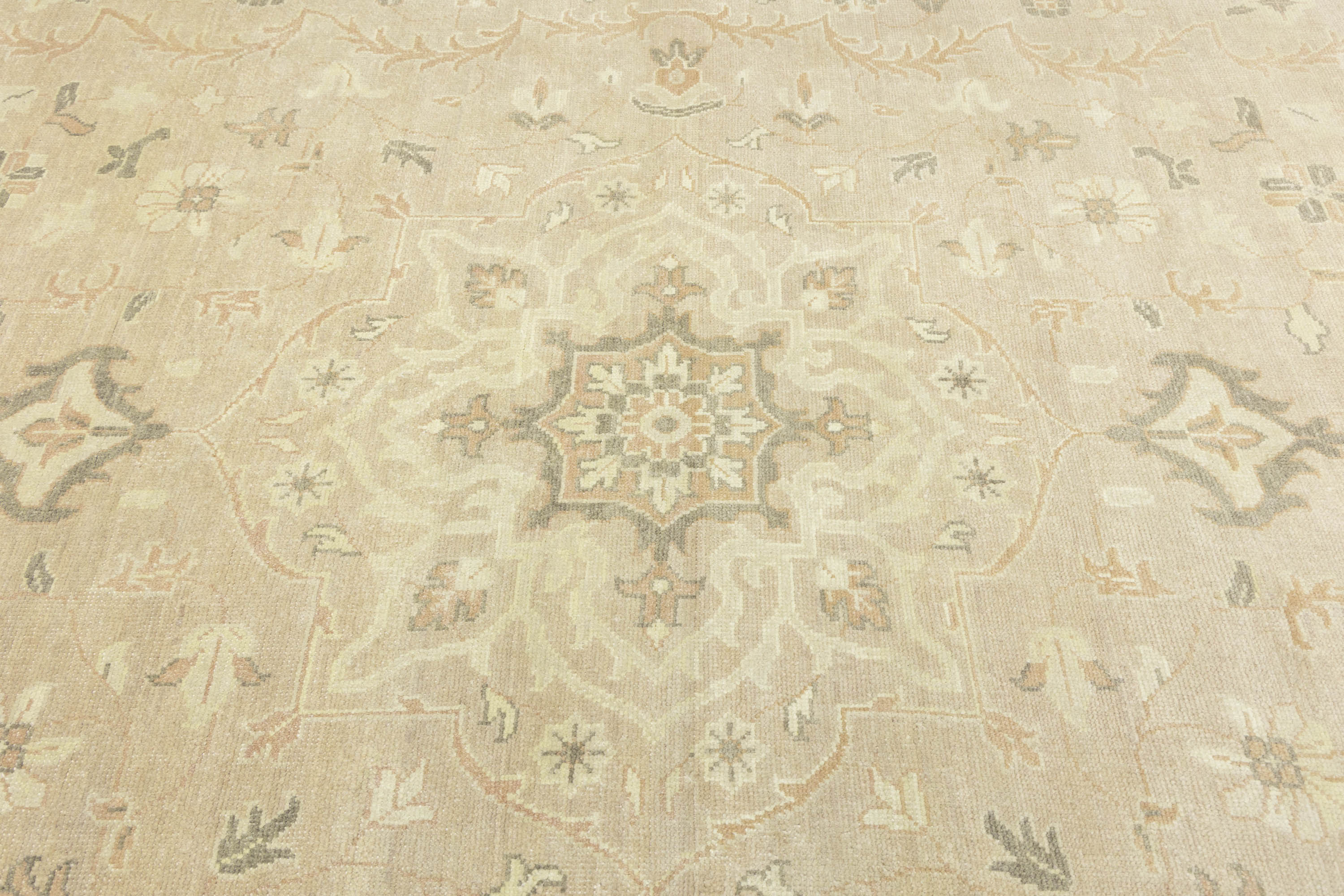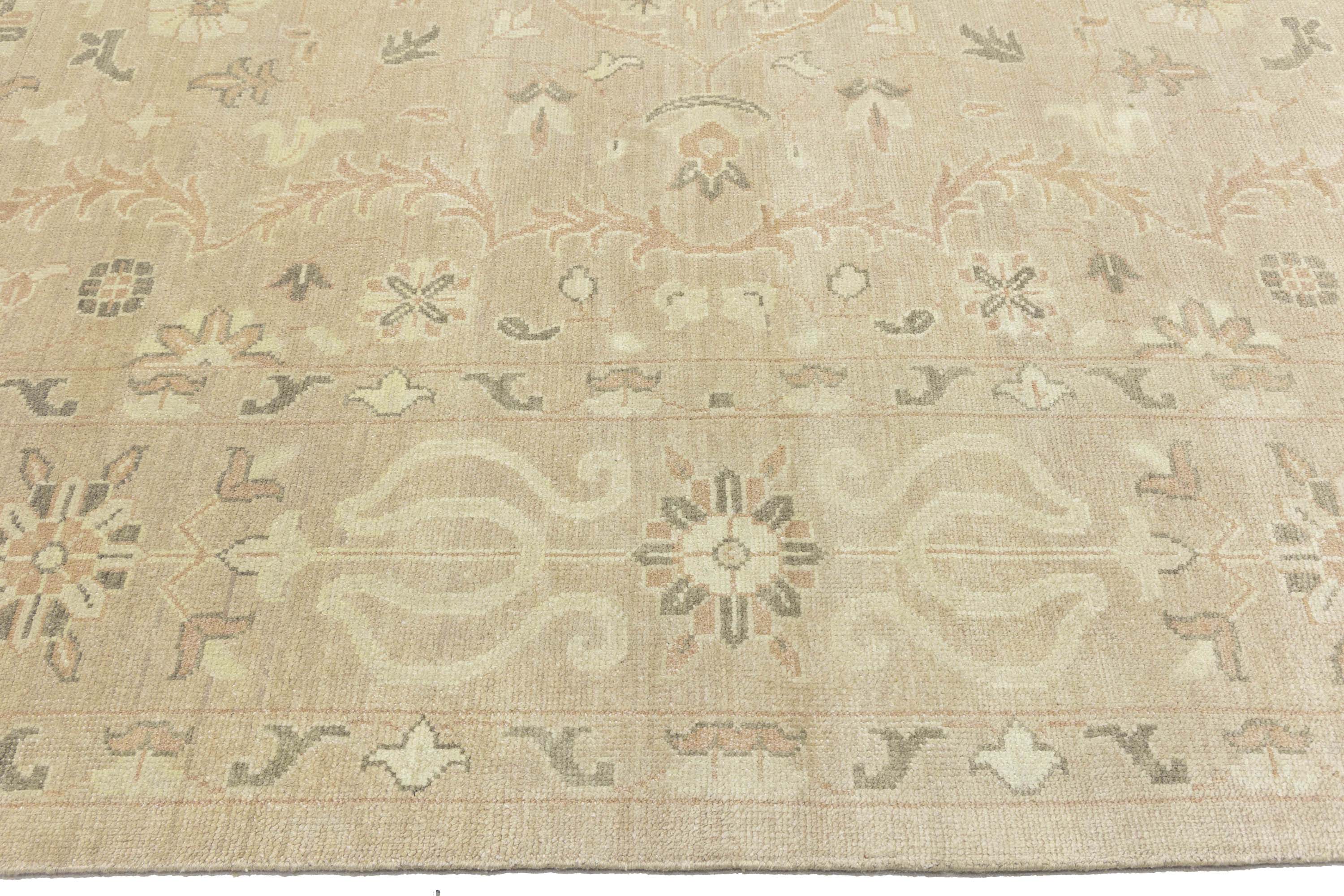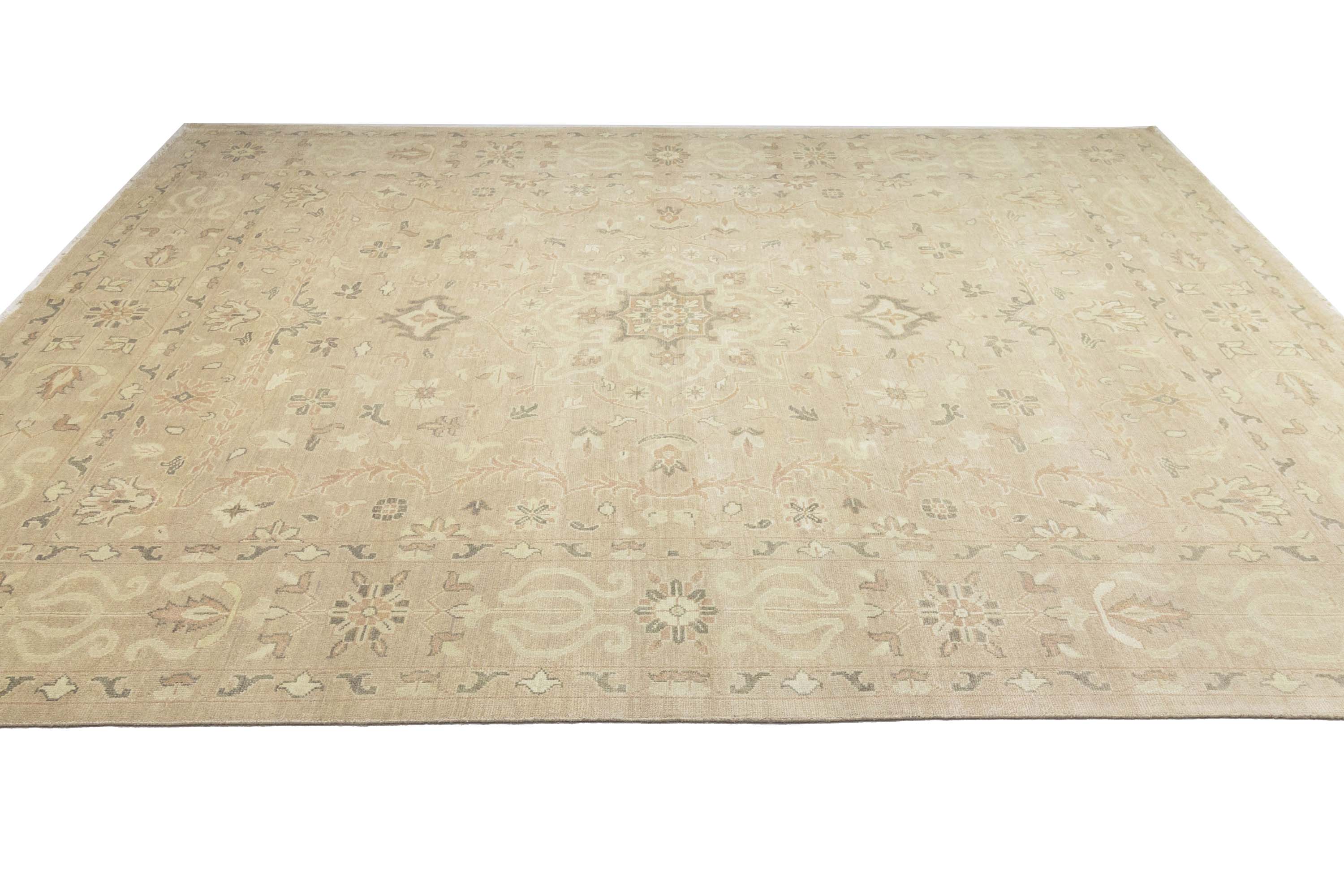 Muted Pinkish Beige Floral 12x15 Transitional Oriental Area Rug