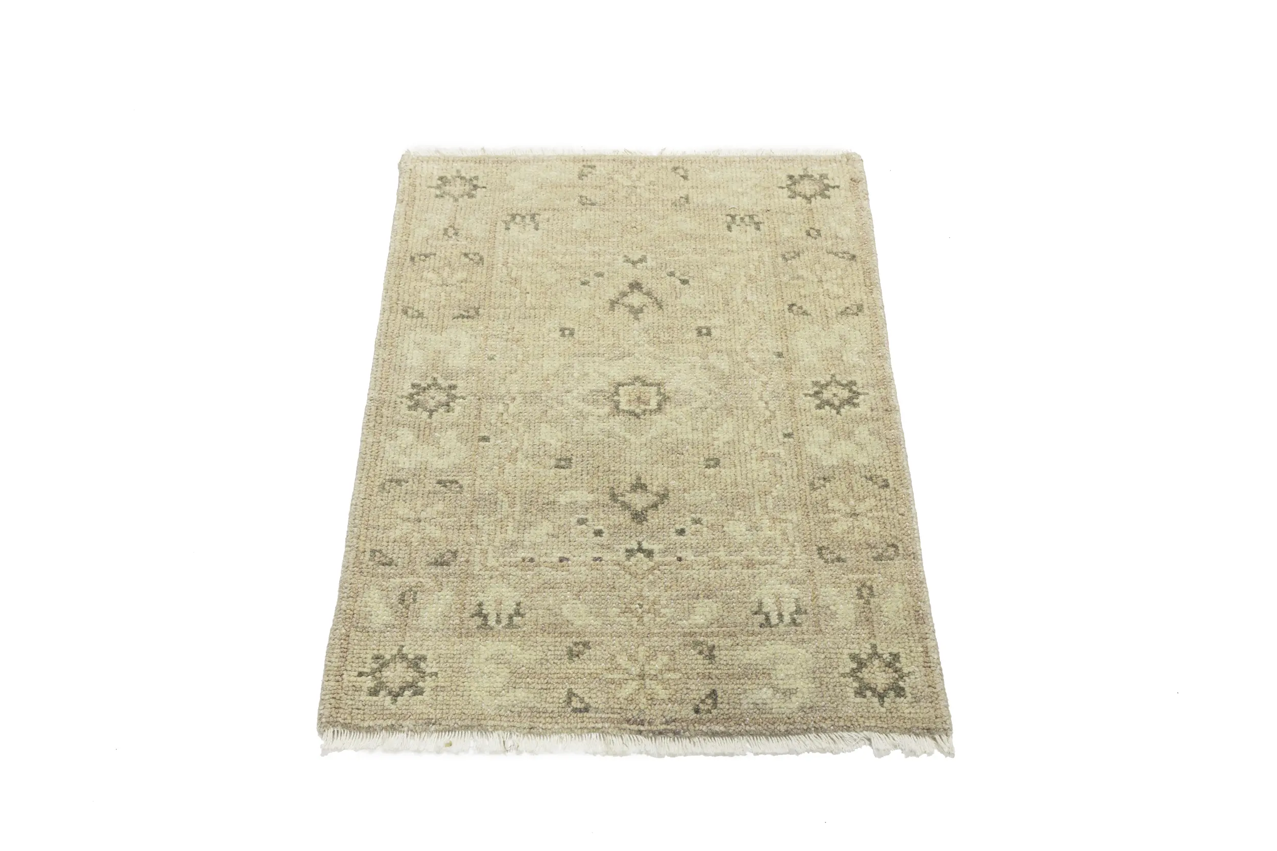 This genuine 2X3 beige new Oriental rug was made by the hands of gifted weavers inspired by a variety of spectacular artistic designs, to recreate the aged look of the original piece with a richness of color and ornately patterned background field. What set this vintage style Oriental area rug from the others are the material and dye used (wool pile and cotton foundation), knot count, ancient designs, fantastic grades, and its regional historical connection: it has deep roots, from the story of the people who produced it to the meaning of the symbols and colors displayed across its canvas that have been praised for centuries. This Indian home décor carpet will be completely cozy and inviting that never will go out of style! Also, this Oriental rug would be among your most valuable treasures, it is a great investment that accrues value over time, and it will last for generations because was woven with high-quality, all-natural wool. Environmentally friendly, opulent yet affordable; this rug will give you a thorough amount of character to help define your living space with elegance and warmth that will capture the eyes and attention of your audience (homeowners, designers, decorators, family and friends).