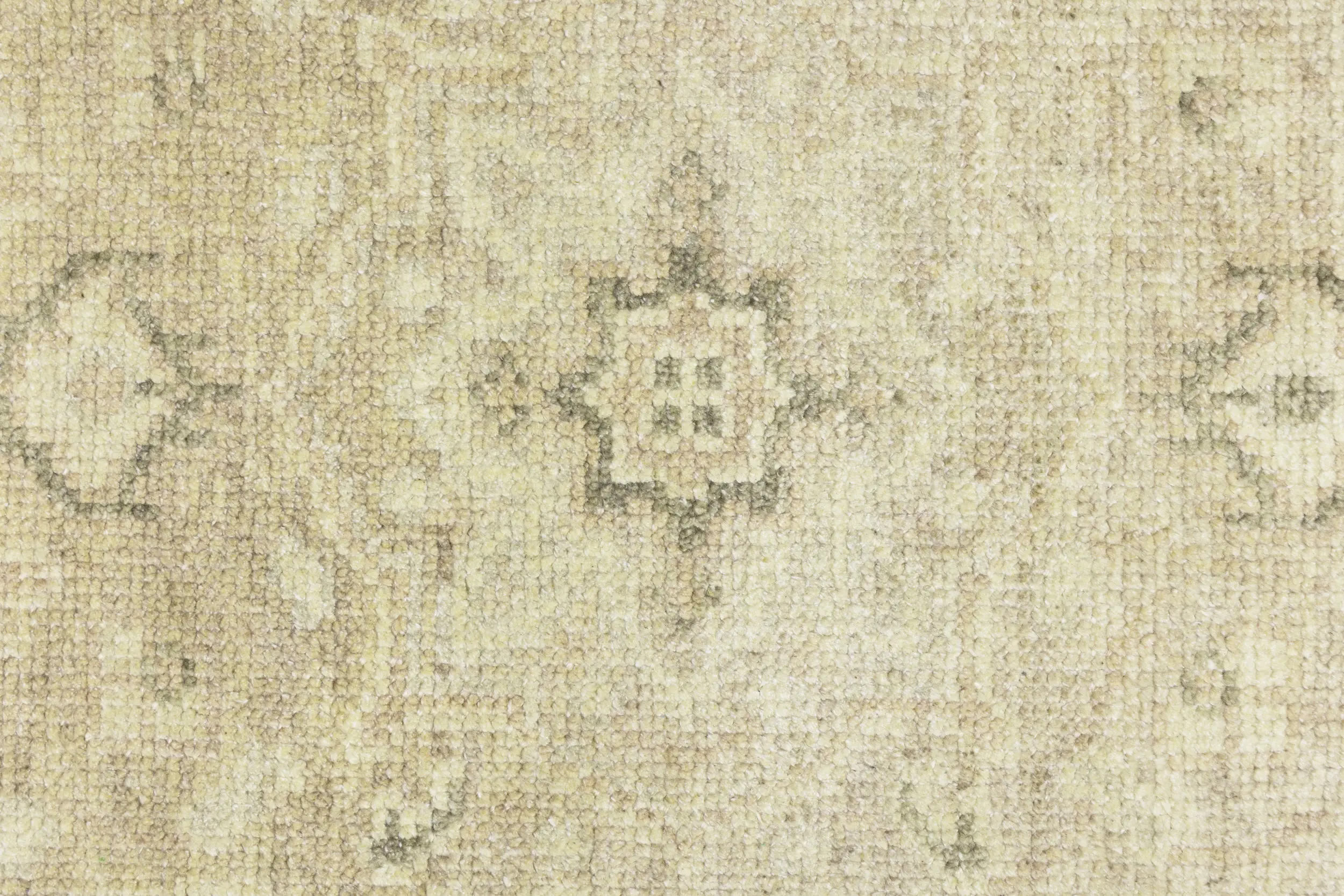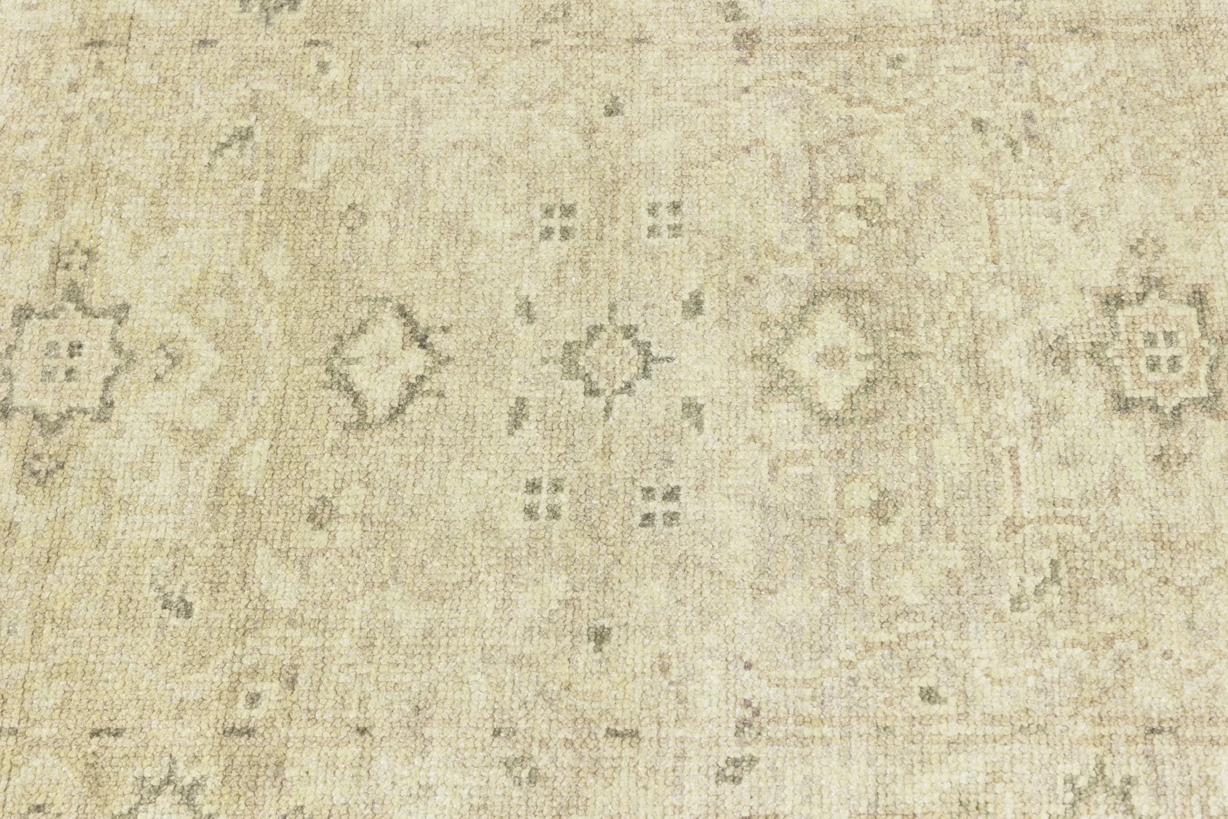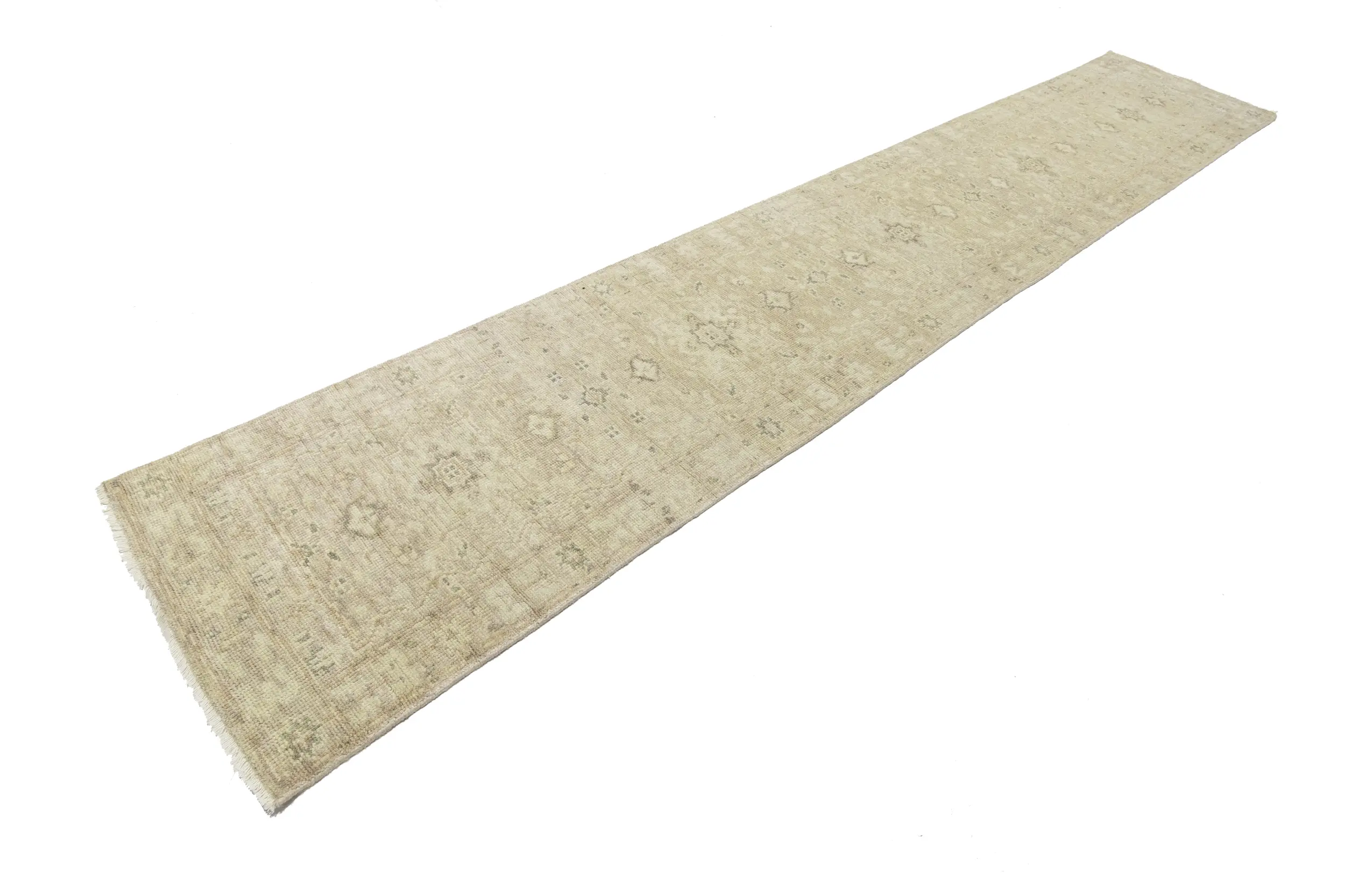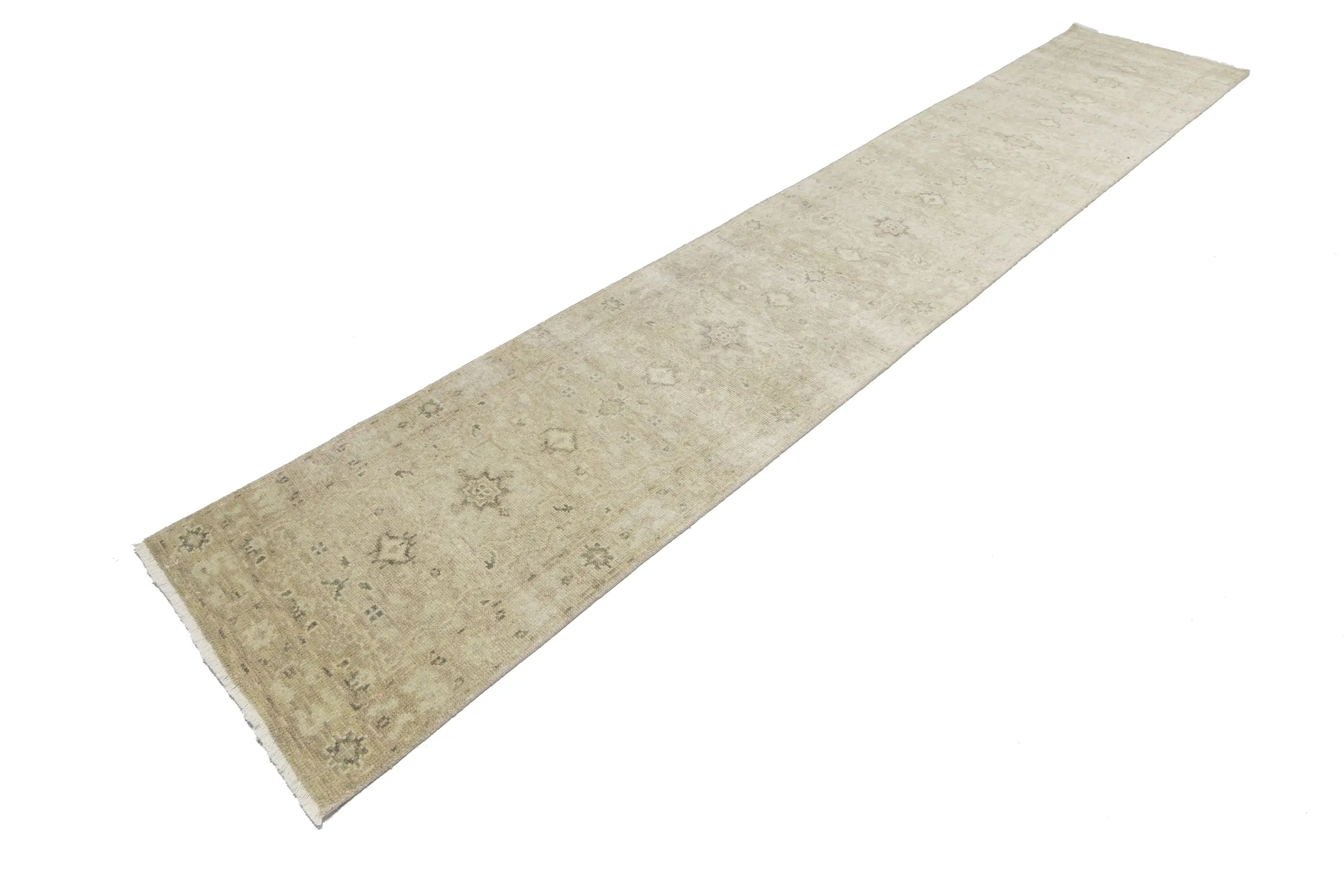 This genuine 3X14 beige new Oriental runner was made by the hands of gifted weavers inspired by a variety of spectacular artistic designs, to recreate the aged look of the original piece with a richness of color and ornately patterned background field. What set this vintage style Oriental area runner from the others are the material and dye used (wool pile and cotton foundation), knot count, ancient designs, fantastic grades, and its regional historical connection: it has deep roots, from the story of the people who produced it to the meaning of the symbols and colors displayed across its canvas that have been praised for centuries. This Indian home décor carpet will be completely cozy and inviting that never will go out of style! Also, this Oriental rug would be among your most valuable treasures, it is a great investment that accrues value over time, and it will last for generations because was woven with high-quality, all-natural wool. Environmentally friendly, opulent yet affordable; this runner will give you a thorough amount of character to help define your living space with elegance and warmth that will capture the eyes and attention of your audience (homeowners, designers, decorators, family and friends).