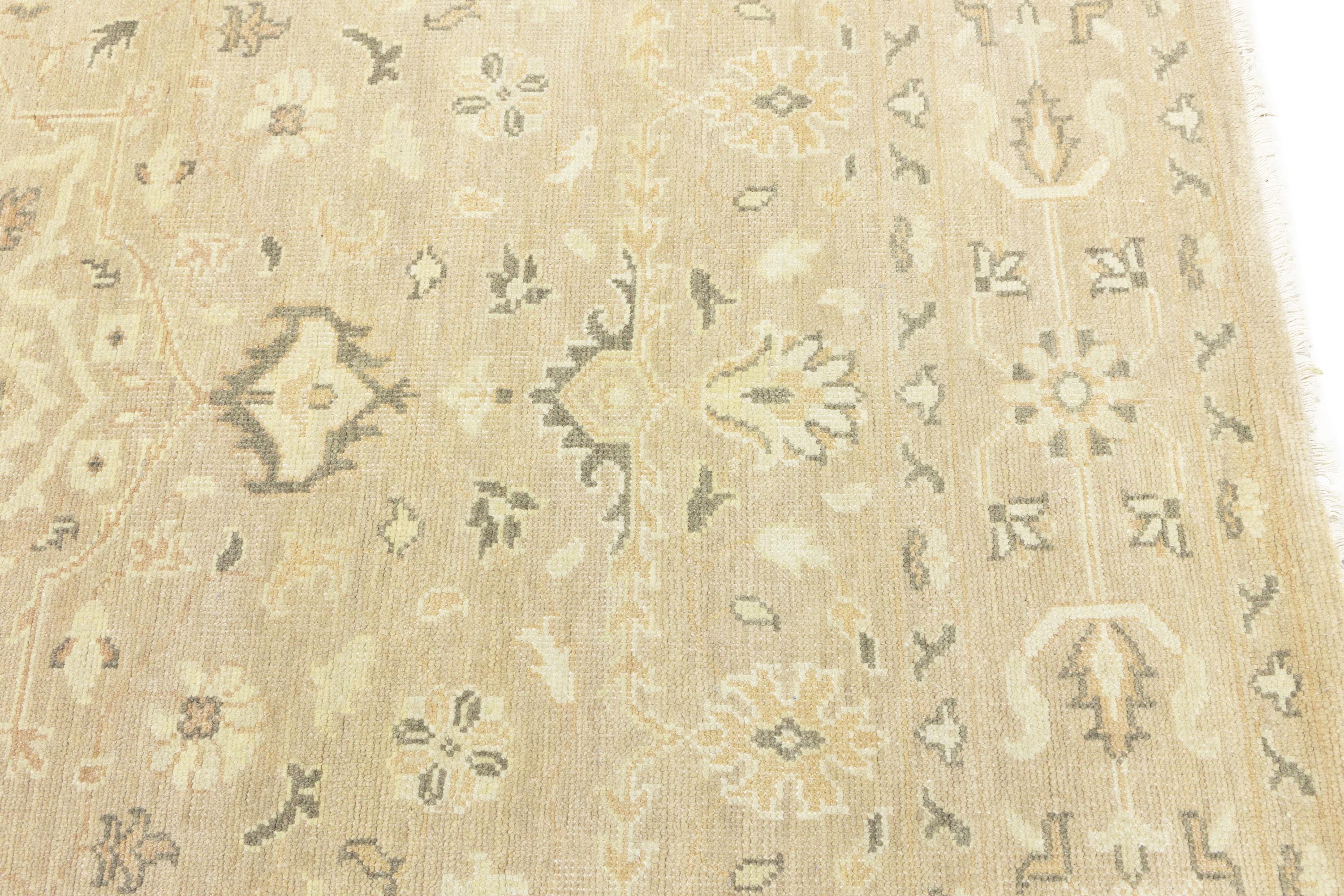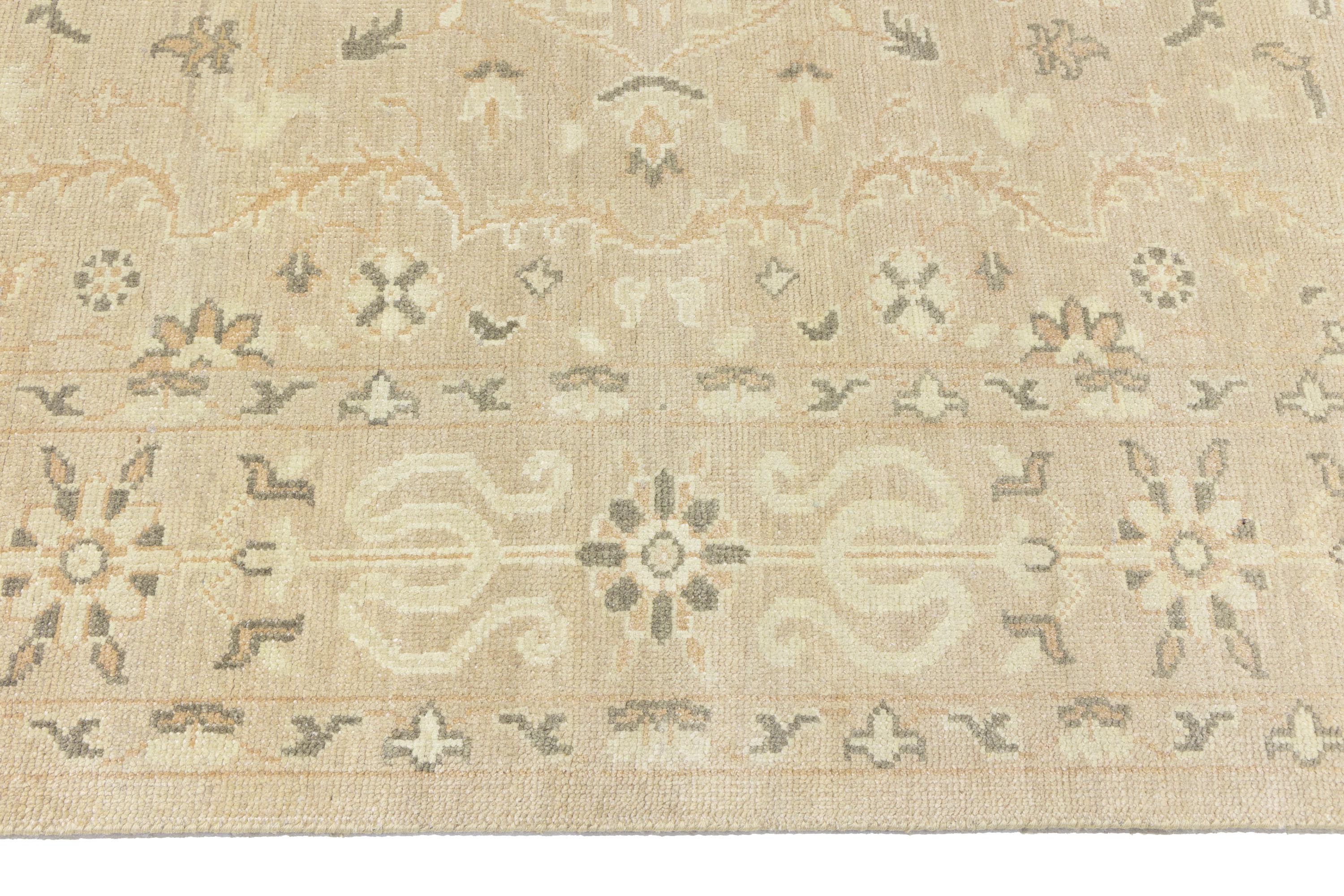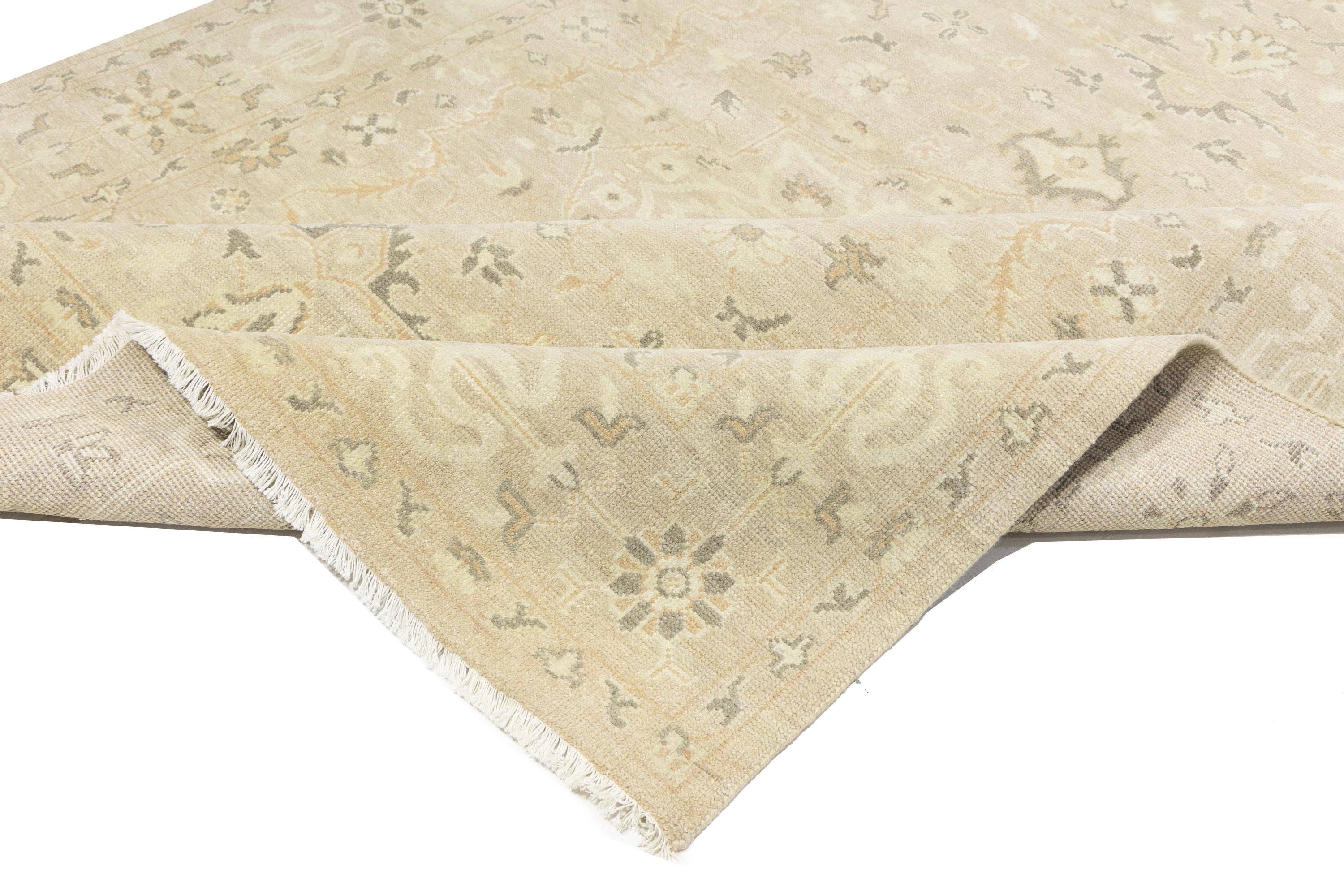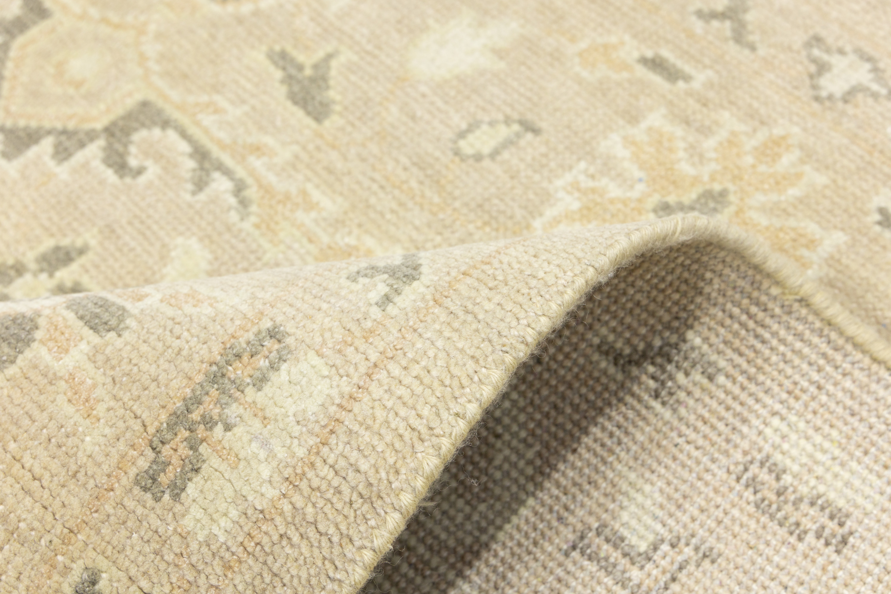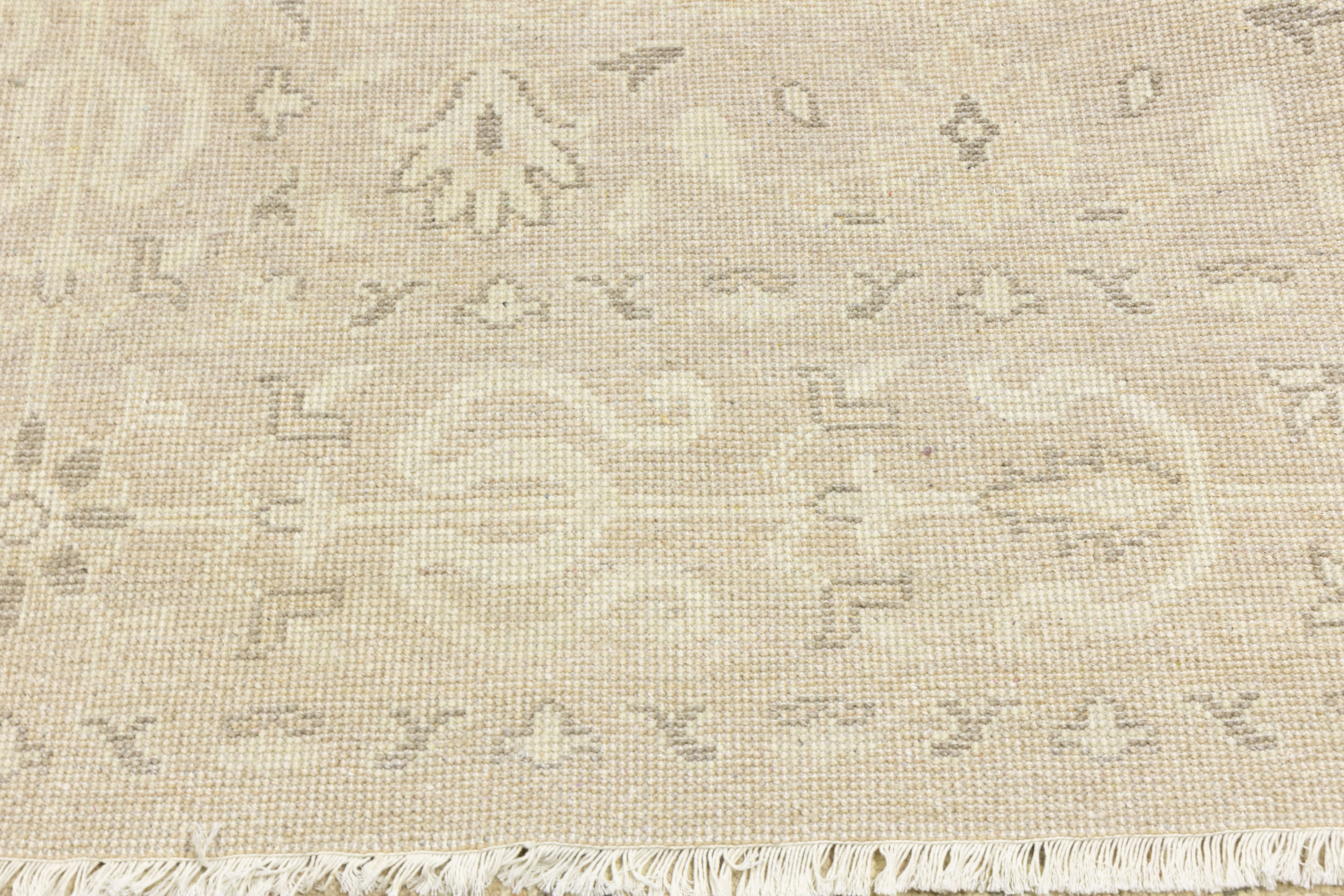This genuine 8X10 muted beige new Oriental rug was made by the hands of gifted weavers inspired by a variety of spectacular artistic designs, to recreate the aged look of the original piece with a richness of color and ornately patterned background field. What set this vintage style Oriental area rug from the others are the material and dye used (wool pile and cotton foundation), knot count, ancient designs, fantastic grades, and its regional historical connection: it has deep roots, from the story of the people who produced it to the meaning of the symbols and colors displayed across its canvas that have been praised for centuries. This Indian home décor carpet will be completely cozy and inviting that never will go out of style! Also, this Oriental rug would be among your most valuable treasures, it is a great investment that accrues value over time, and it will last for generations because was woven with high-quality, all-natural wool. Environmentally friendly, opulent yet affordable; this rug will give you a thorough amount of character to help define your living space with elegance and warmth that will capture the eyes and attention of your audience (homeowners, designers, decorators, family and friends). OT-12025