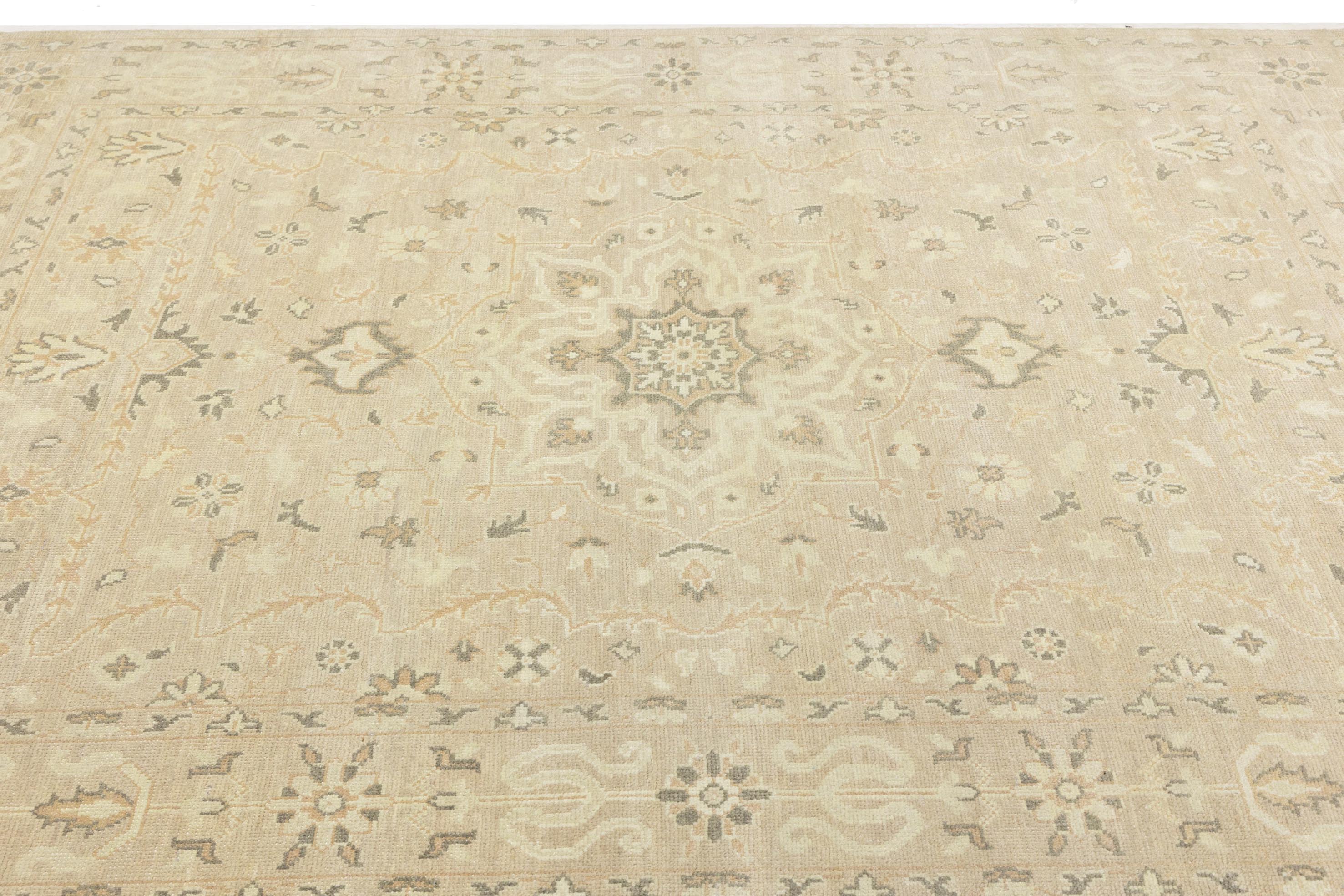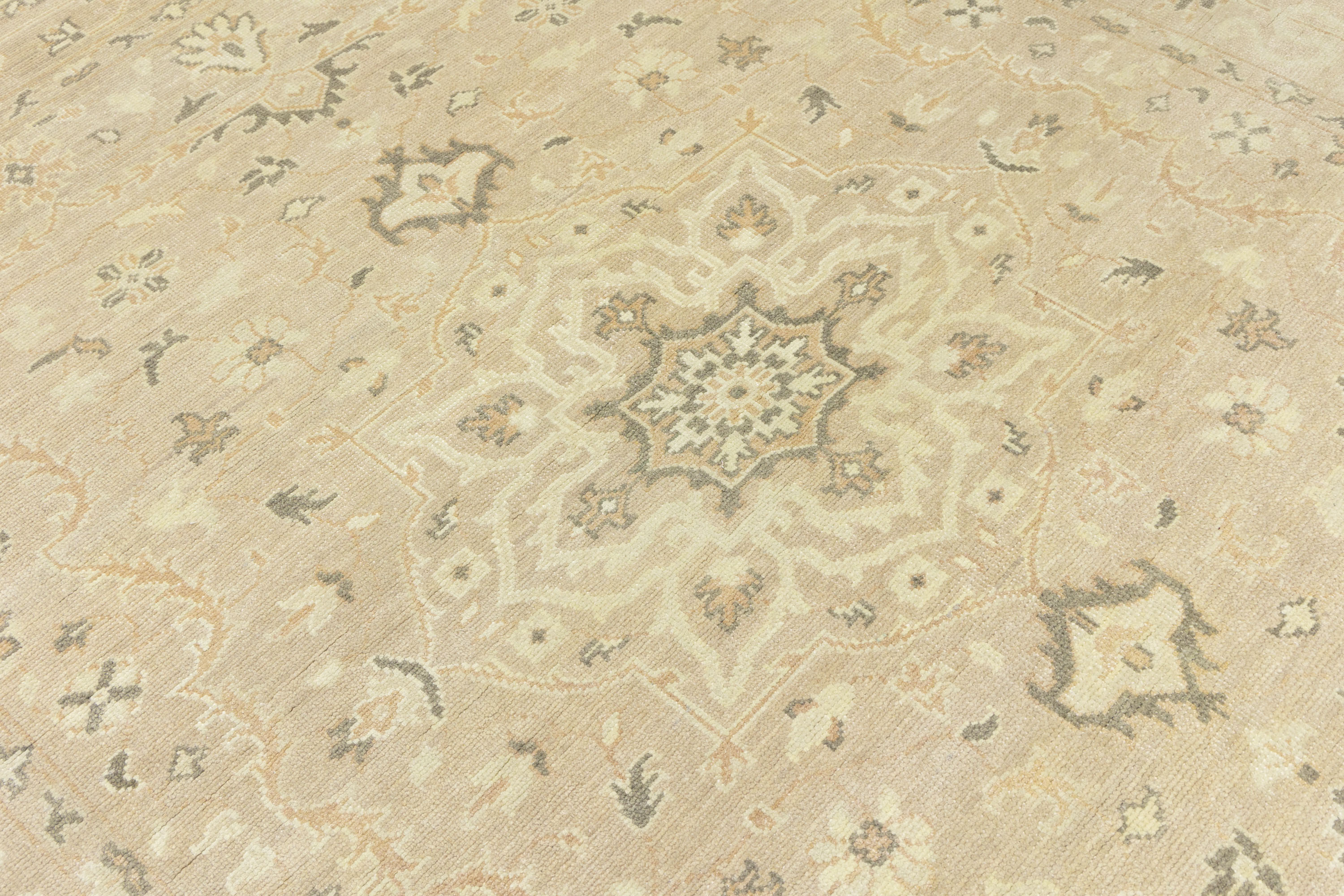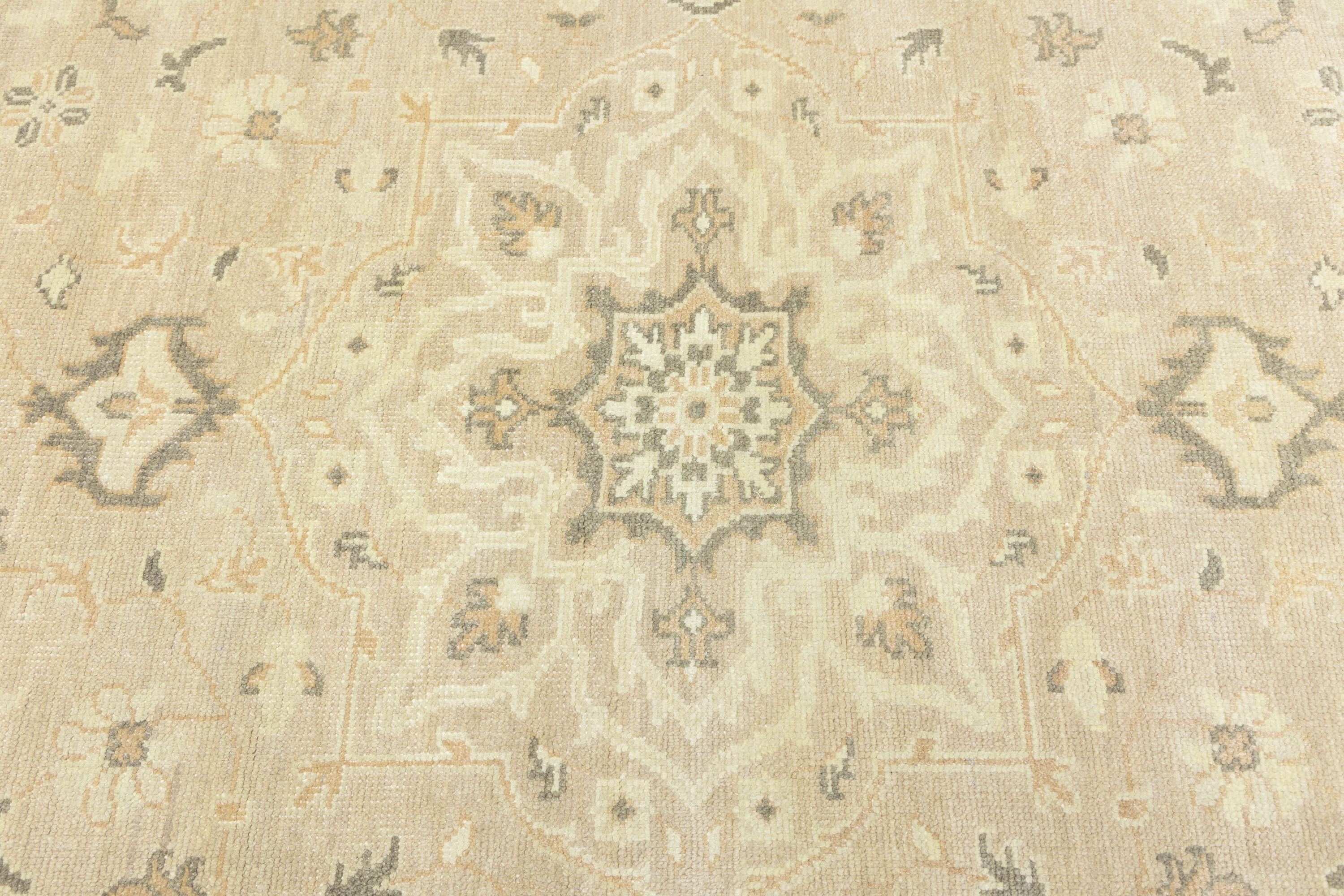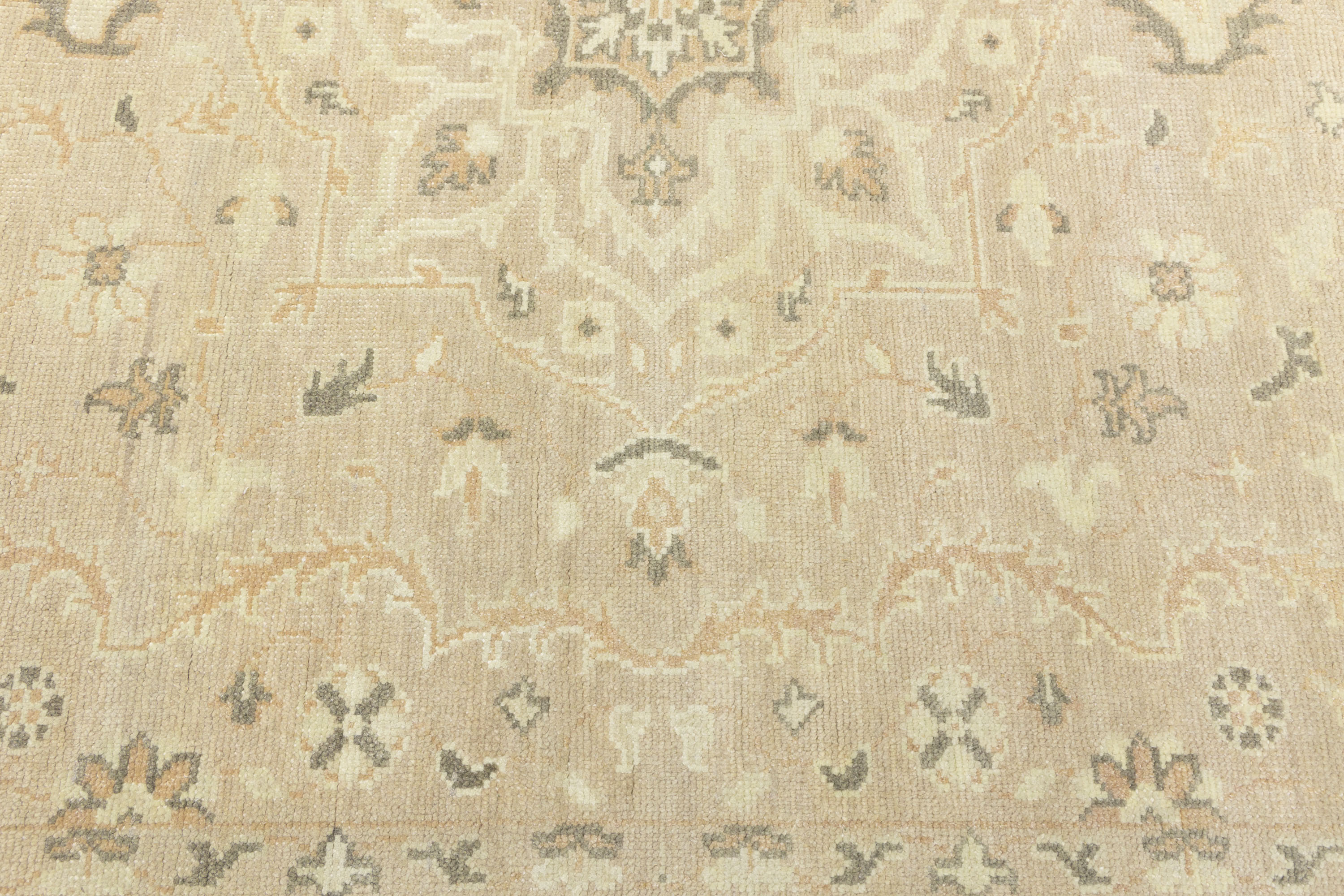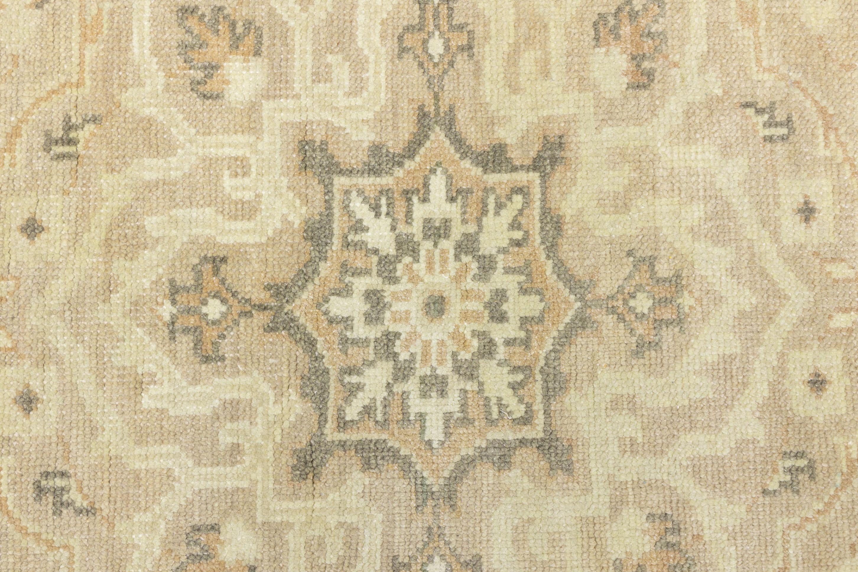 This genuine 8X10 muted beige new Oriental rug was made by the hands of gifted weavers inspired by a variety of spectacular artistic designs, to recreate the aged look of the original piece with a richness of color and ornately patterned background field. What set this vintage style Oriental area rug from the others are the material and dye used (wool pile and cotton foundation), knot count, ancient designs, fantastic grades, and its regional historical connection: it has deep roots, from the story of the people who produced it to the meaning of the symbols and colors displayed across its canvas that have been praised for centuries. This Indian home décor carpet will be completely cozy and inviting that never will go out of style! Also, this Oriental rug would be among your most valuable treasures, it is a great investment that accrues value over time, and it will last for generations because was woven with high-quality, all-natural wool. Environmentally friendly, opulent yet affordable; this rug will give you a thorough amount of character to help define your living space with elegance and warmth that will capture the eyes and attention of your audience (homeowners, designers, decorators, family and friends). OT-12025
