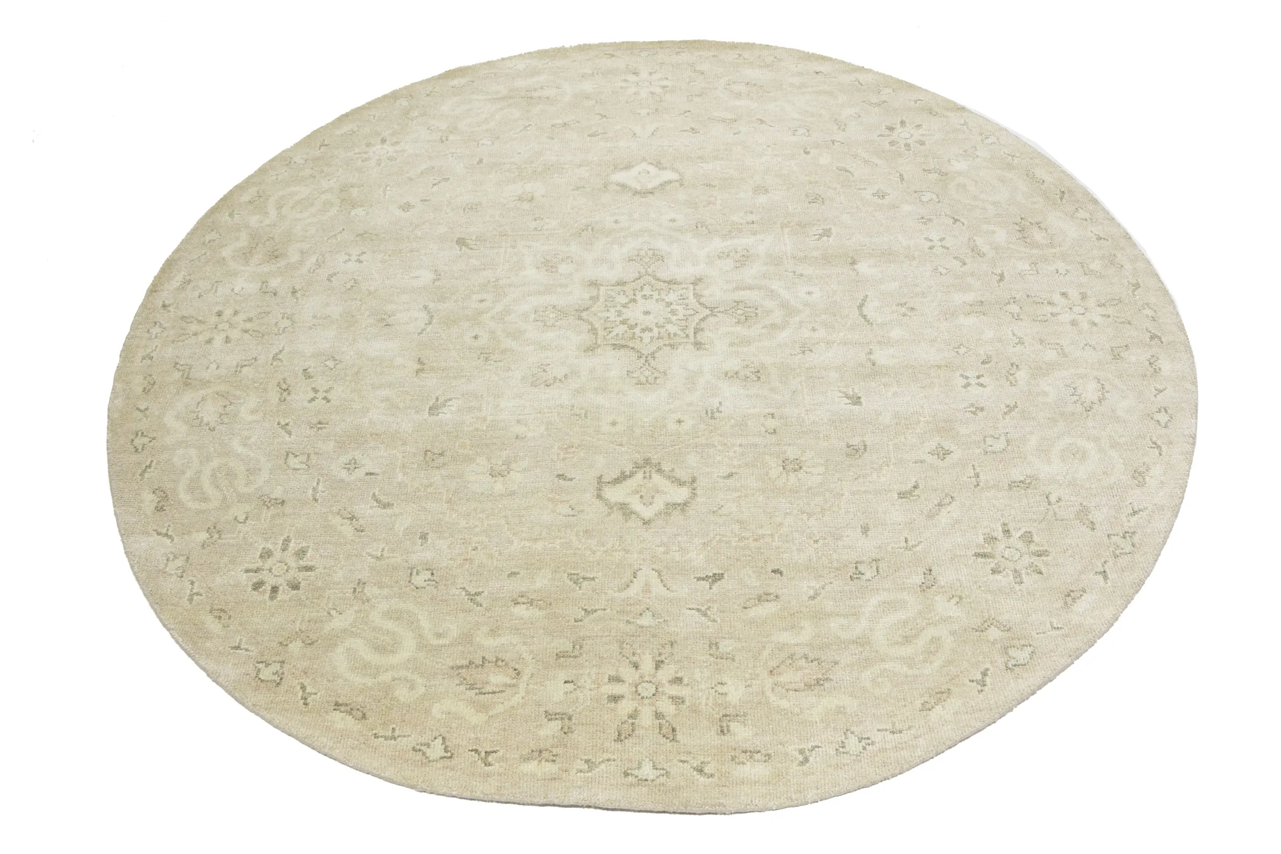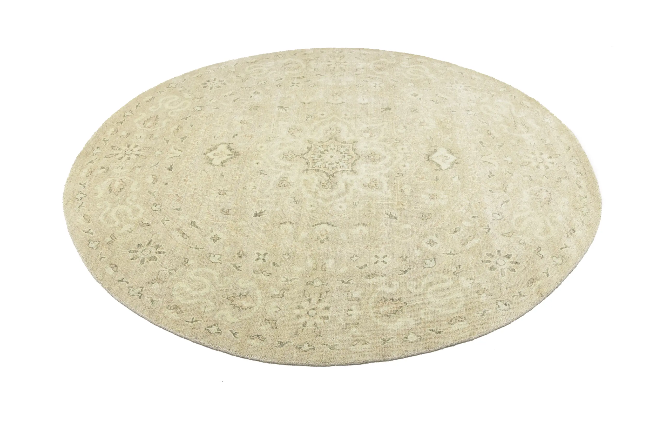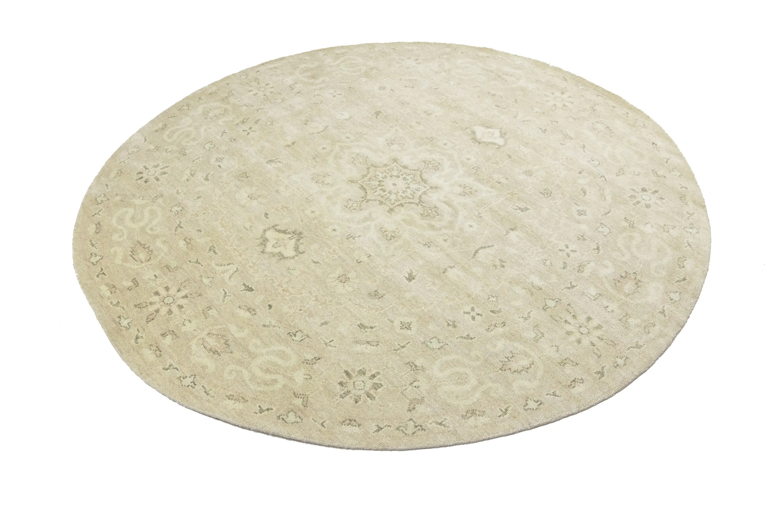 Muted Pinkish Beige Floral 8X8 Transitional Oriental Round Rug