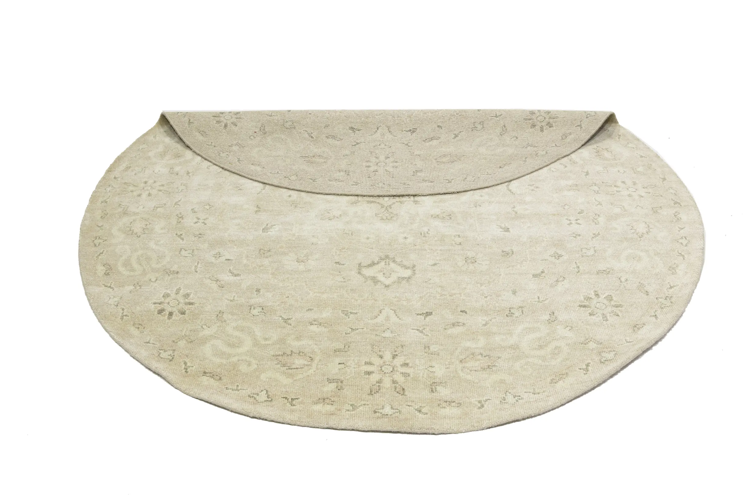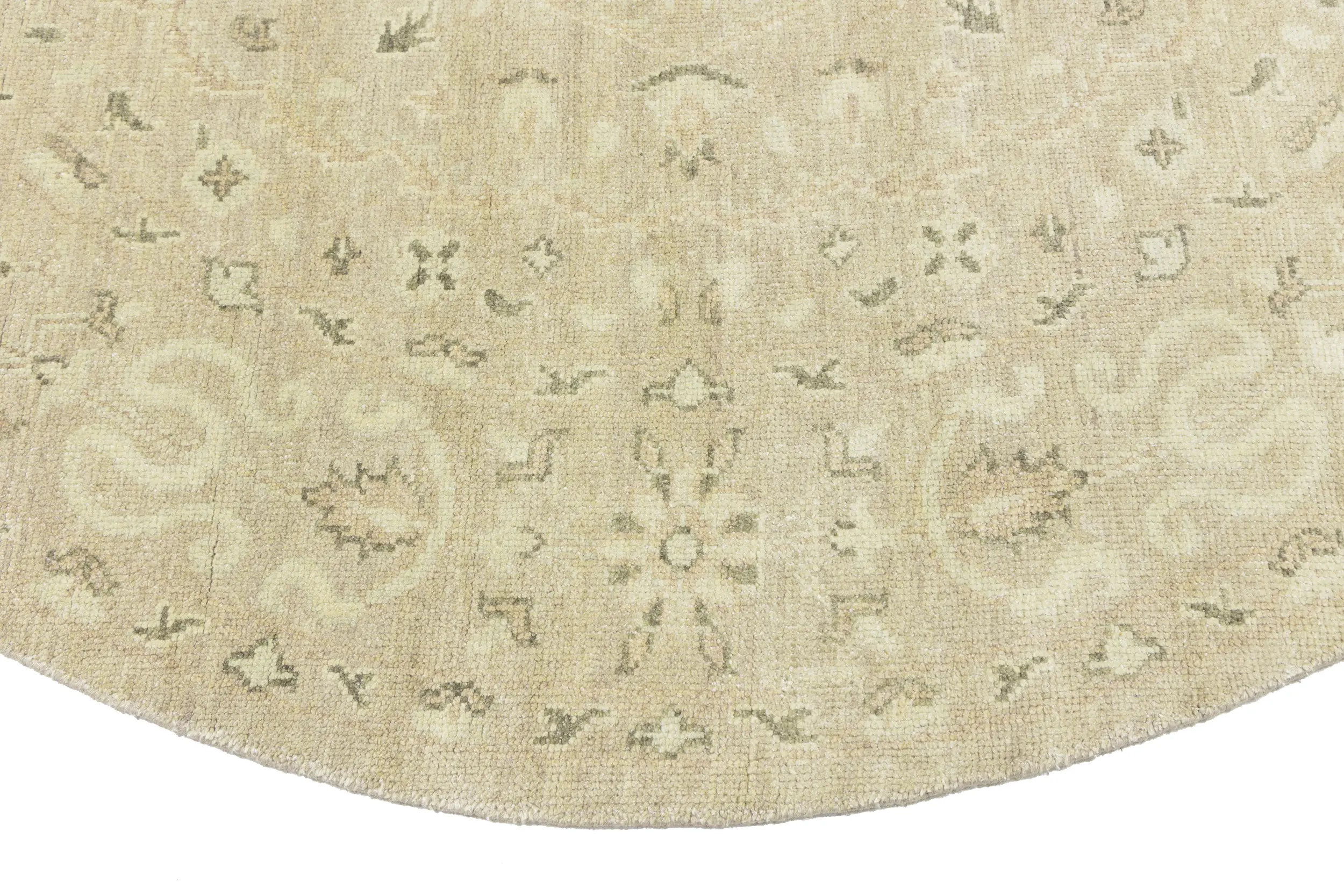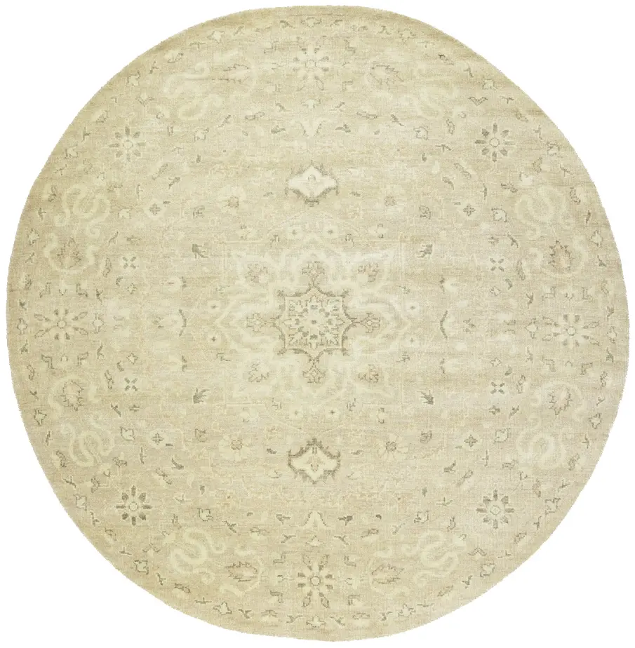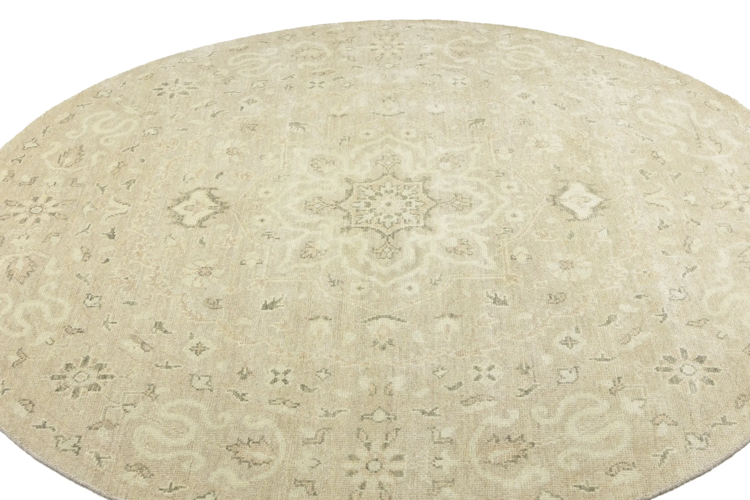 Muted Pinkish Beige Floral 8X8 Transitional Oriental Round Rug