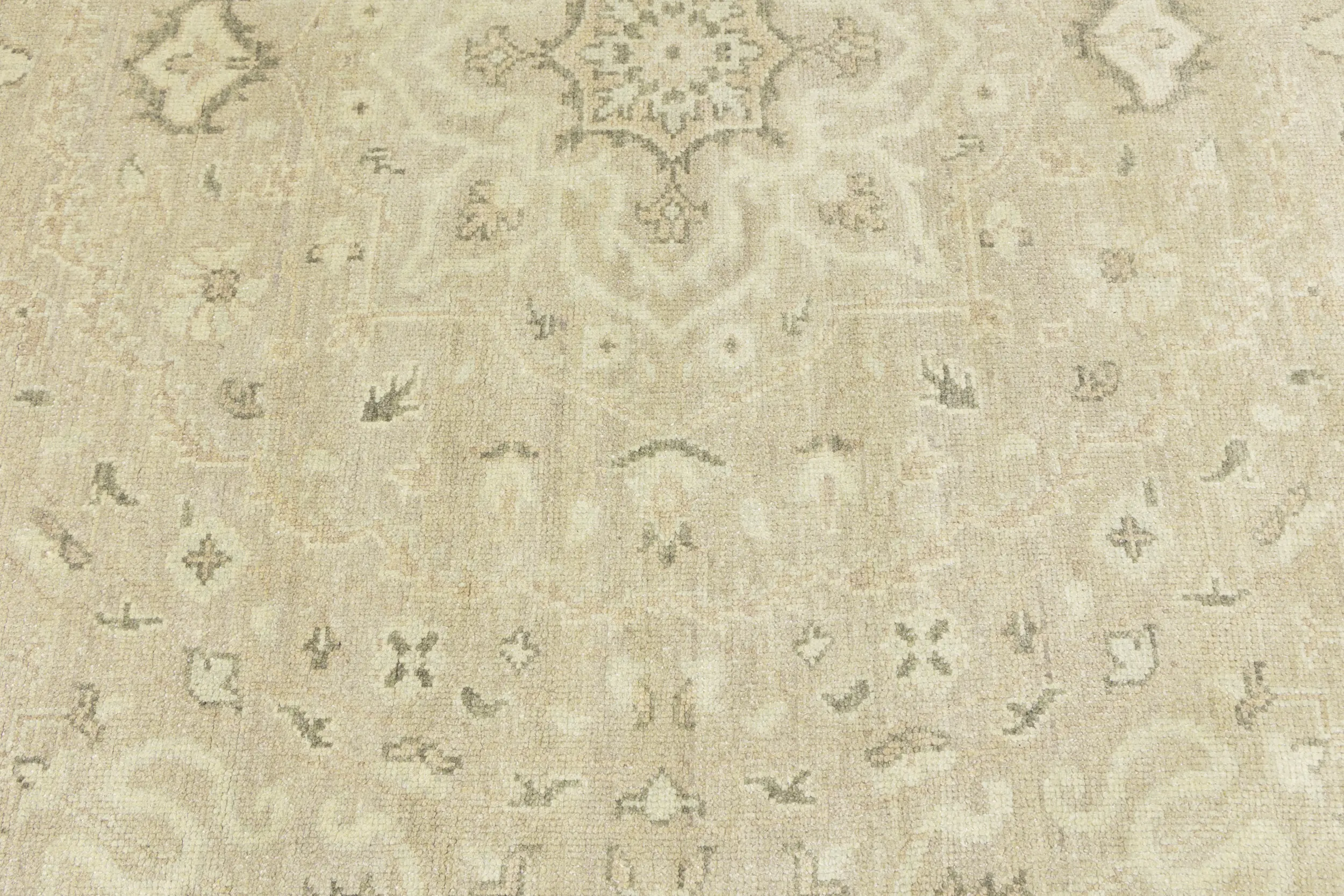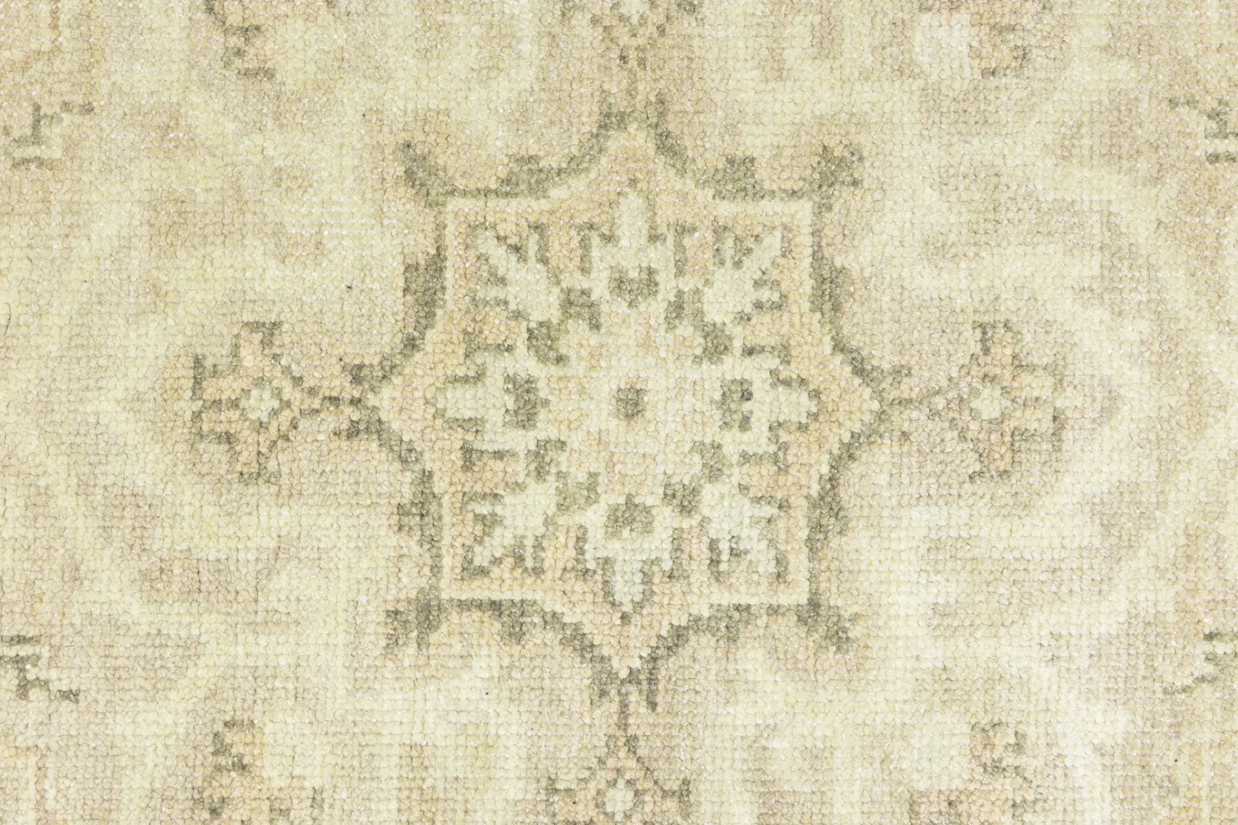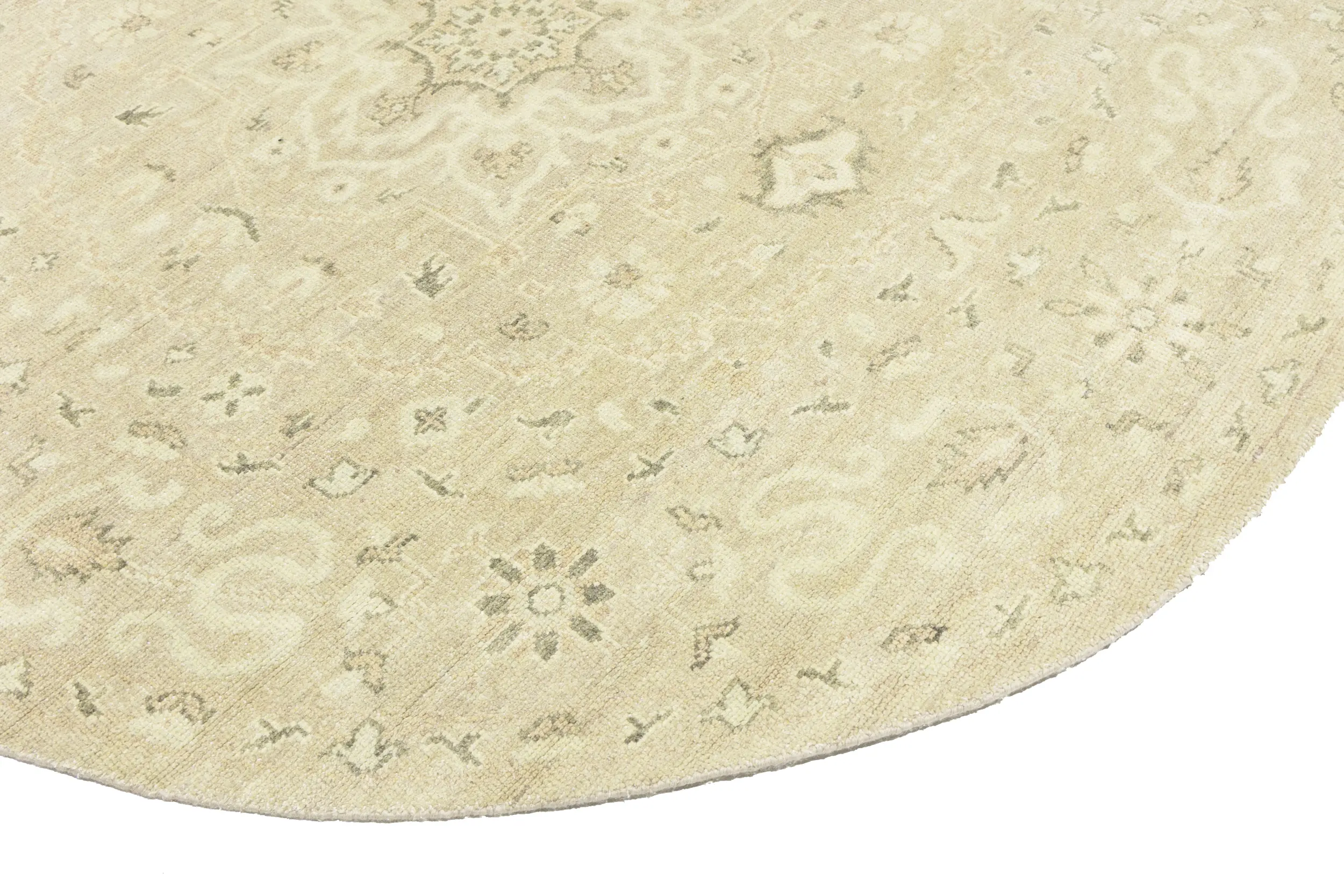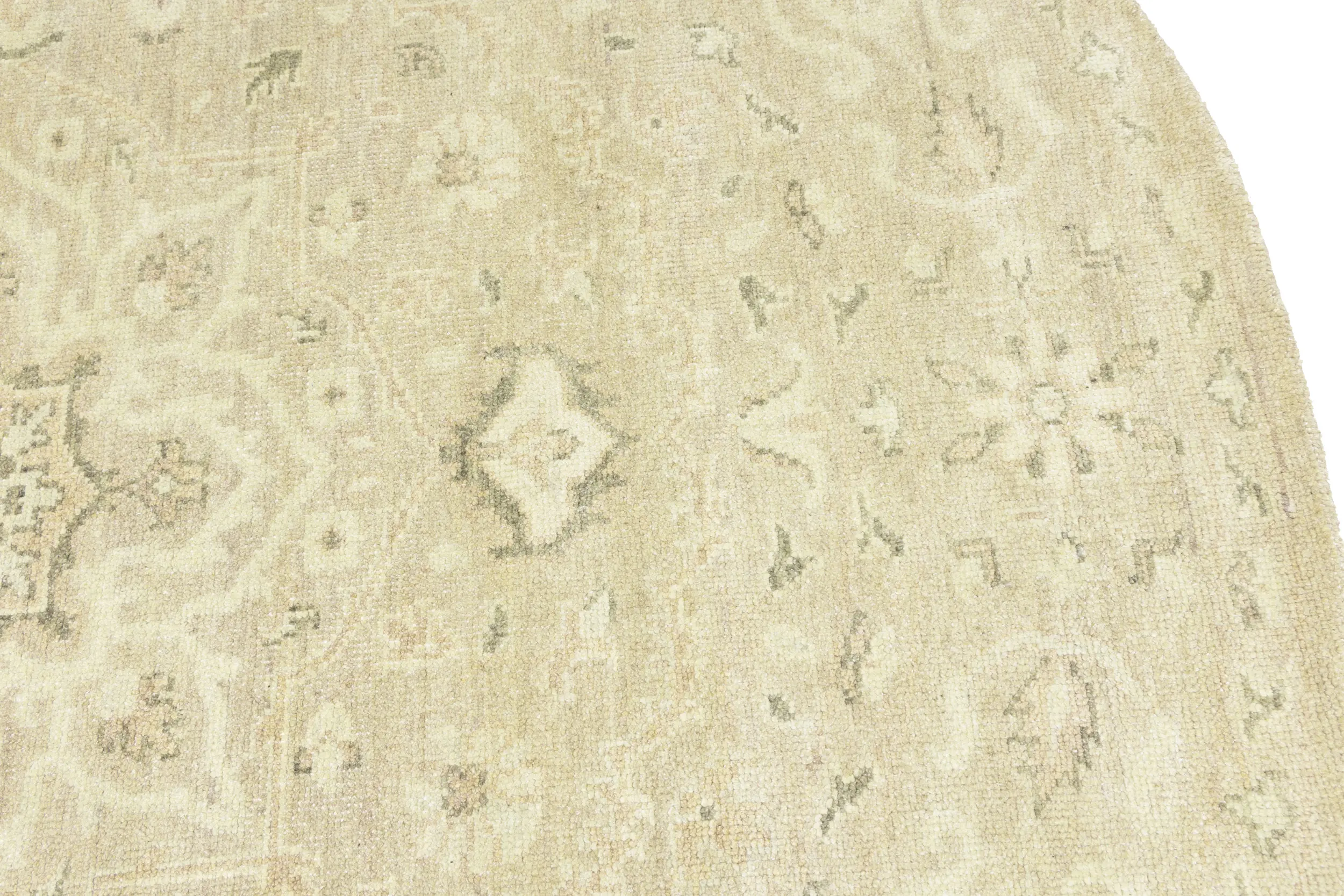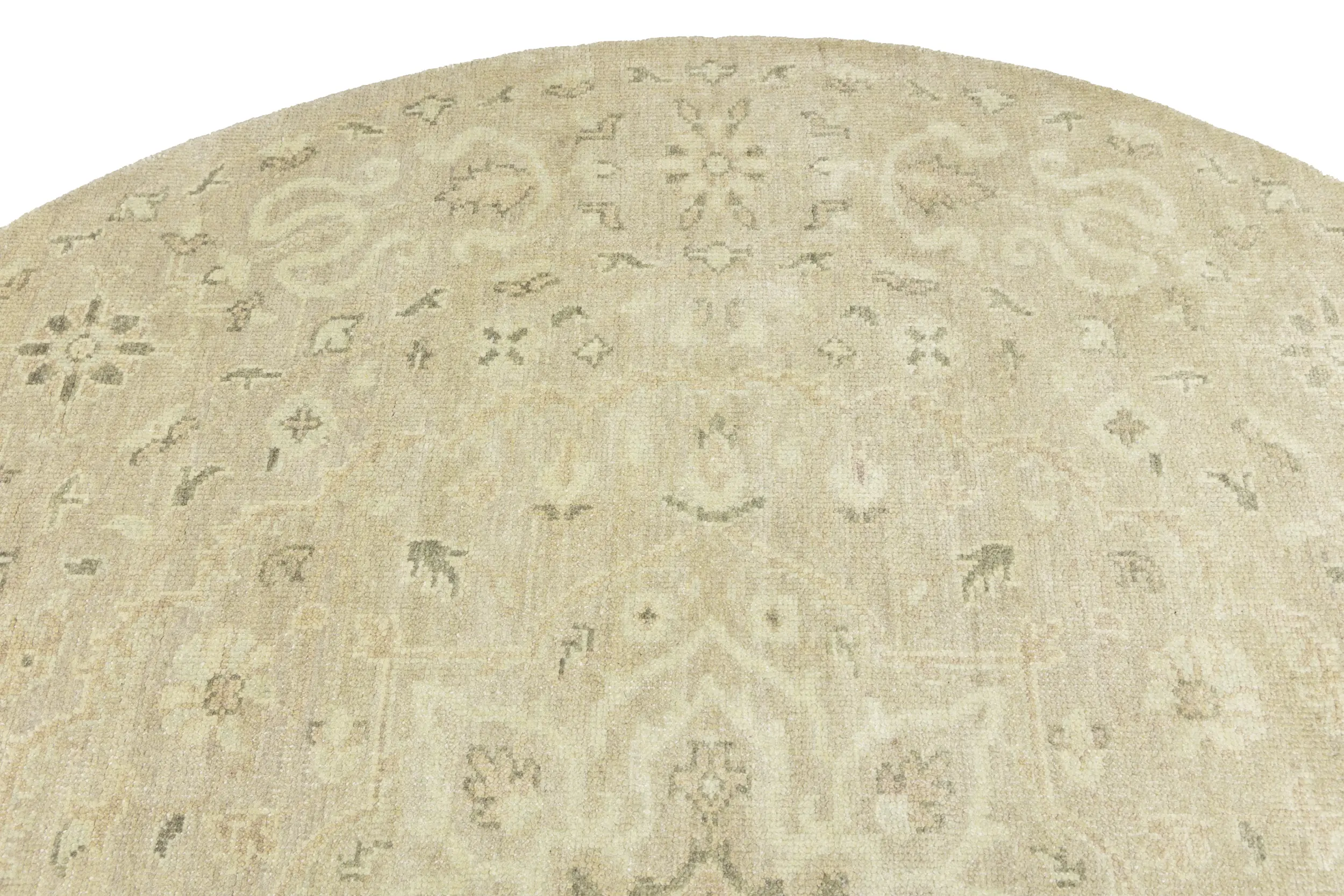 This genuine 8X8 beige new Oriental rug was made by the hands of gifted weavers inspired by a variety of spectacular artistic designs, to recreate the aged look of the original piece with a richness of color and ornately patterned background field. What set this vintage style Oriental area rug from the others are the material and dye used (wool pile and cotton foundation), knot count, ancient designs, fantastic grades, and its regional historical connection: it has deep roots, from the story of the people who produced it to the meaning of the symbols and colors displayed across its canvas that have been praised for centuries. This Indian home décor carpet will be completely cozy and inviting that never will go out of style! Also, this Oriental rug would be among your most valuable treasures, it is a great investment that accrues value over time, and it will last for generations because was woven with high-quality, all-natural wool. Environmentally friendly, opulent yet affordable; this rug will give you a thorough amount of character to help define your living space with elegance and warmth that will capture the eyes and attention of your audience (homeowners, designers, decorators, family and friends).
