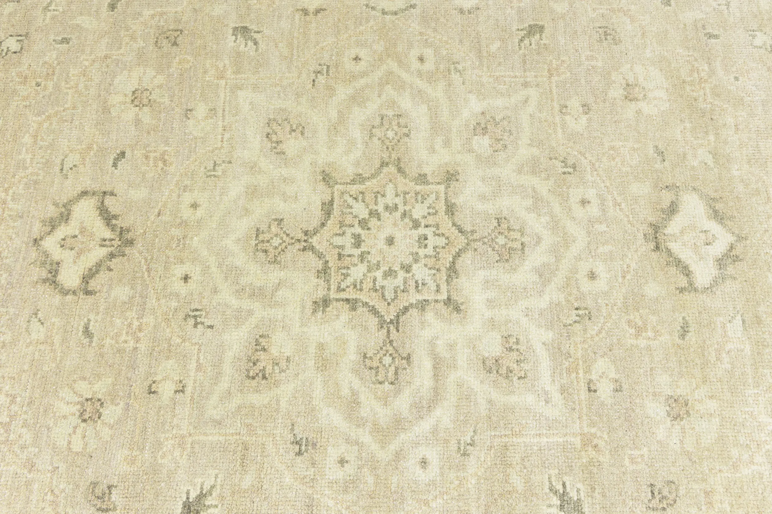 Handmade 8X8 beige oriental rug made with vegetable dyes (fine wool pile and cotton foundation), superior knot count, and appealing ancient designs. This Oriental rug never will go out of style and would be among your most valuable treasures.