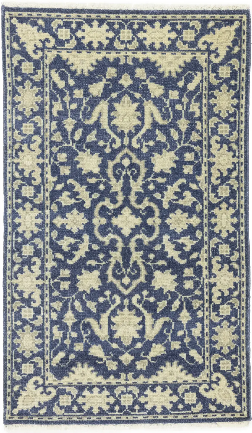 Muted Slate Blue Floral 3X5 Transitional Oriental Rug
