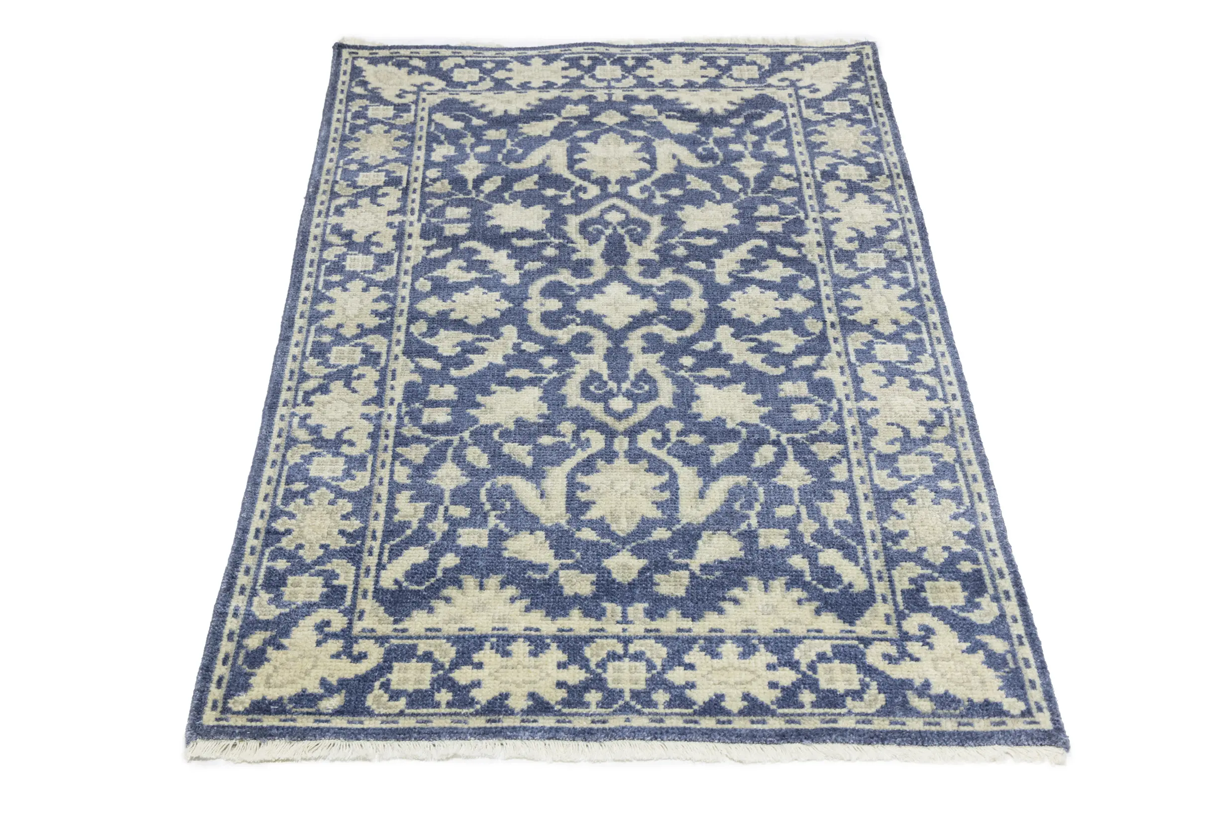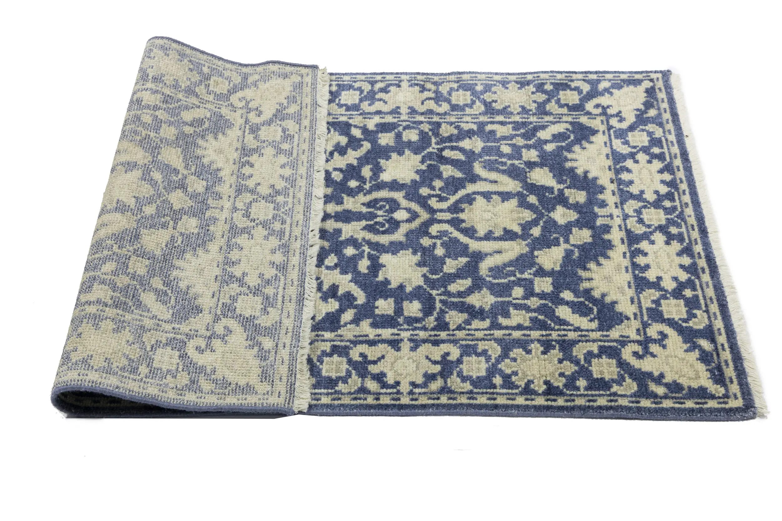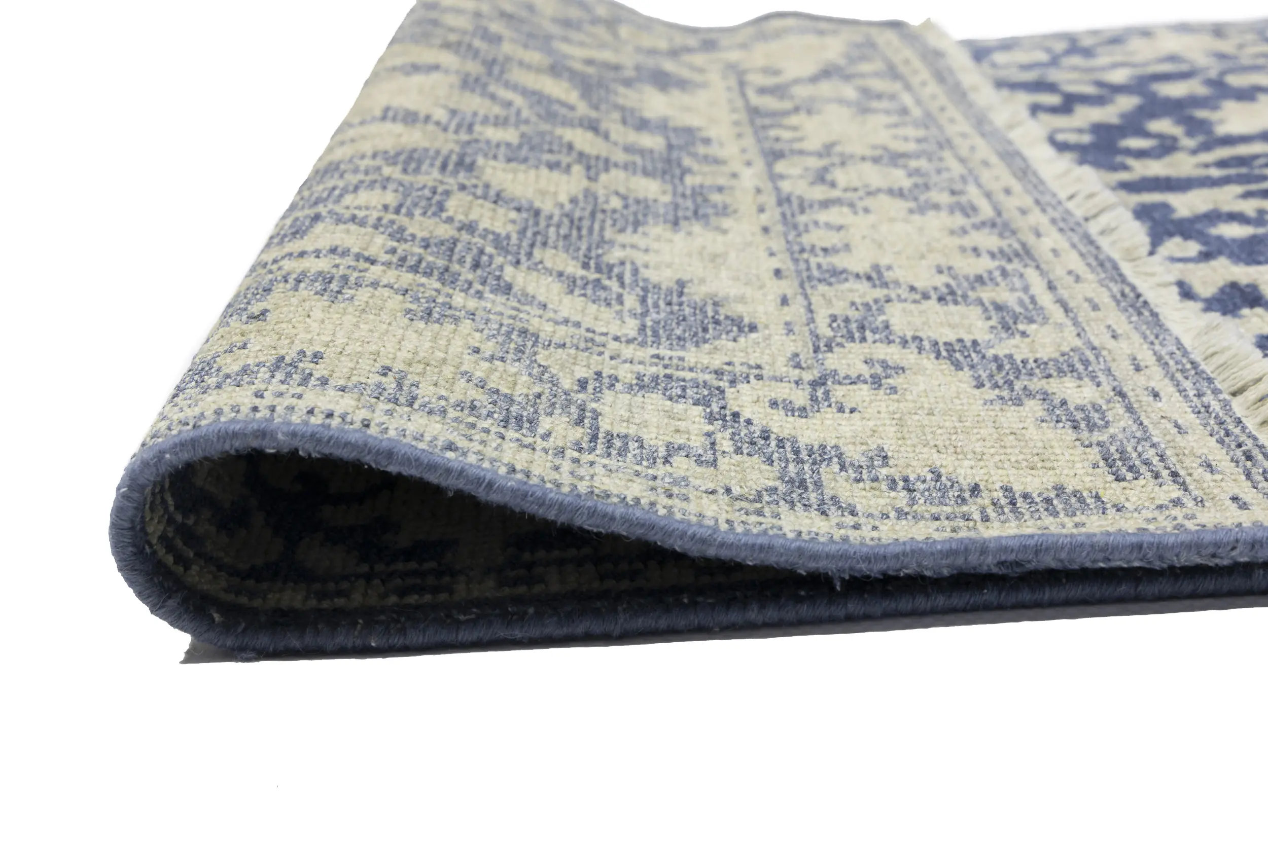 This genuine 3X5 blue new Oriental rug was made by the hands of gifted weavers inspired by a variety of spectacular artistic designs, to recreate the aged look of the original piece with a richness of color and ornately patterned background field. What set this vintage style Oriental area rug from the others are the material and dye used (wool pile and cotton foundation), knot count, ancient designs, fantastic grades, and its regional historical connection: it has deep roots, from the story of the people who produced it to the meaning of the symbols and colors displayed across its canvas that have been praised for centuries. This Indian home décor carpet will be completely cozy and inviting that never will go out of style! Also, this Oriental rug would be among your most valuable treasures, it is a great investment that accrues value over time, and it will last for generations because was woven with high-quality, all-natural wool. Environmentally friendly, opulent yet affordable; this rug will give you a thorough amount of character to help define your living space with elegance and warmth that will capture the eyes and attention of your audience (homeowners, designers, decorators, family and friends).