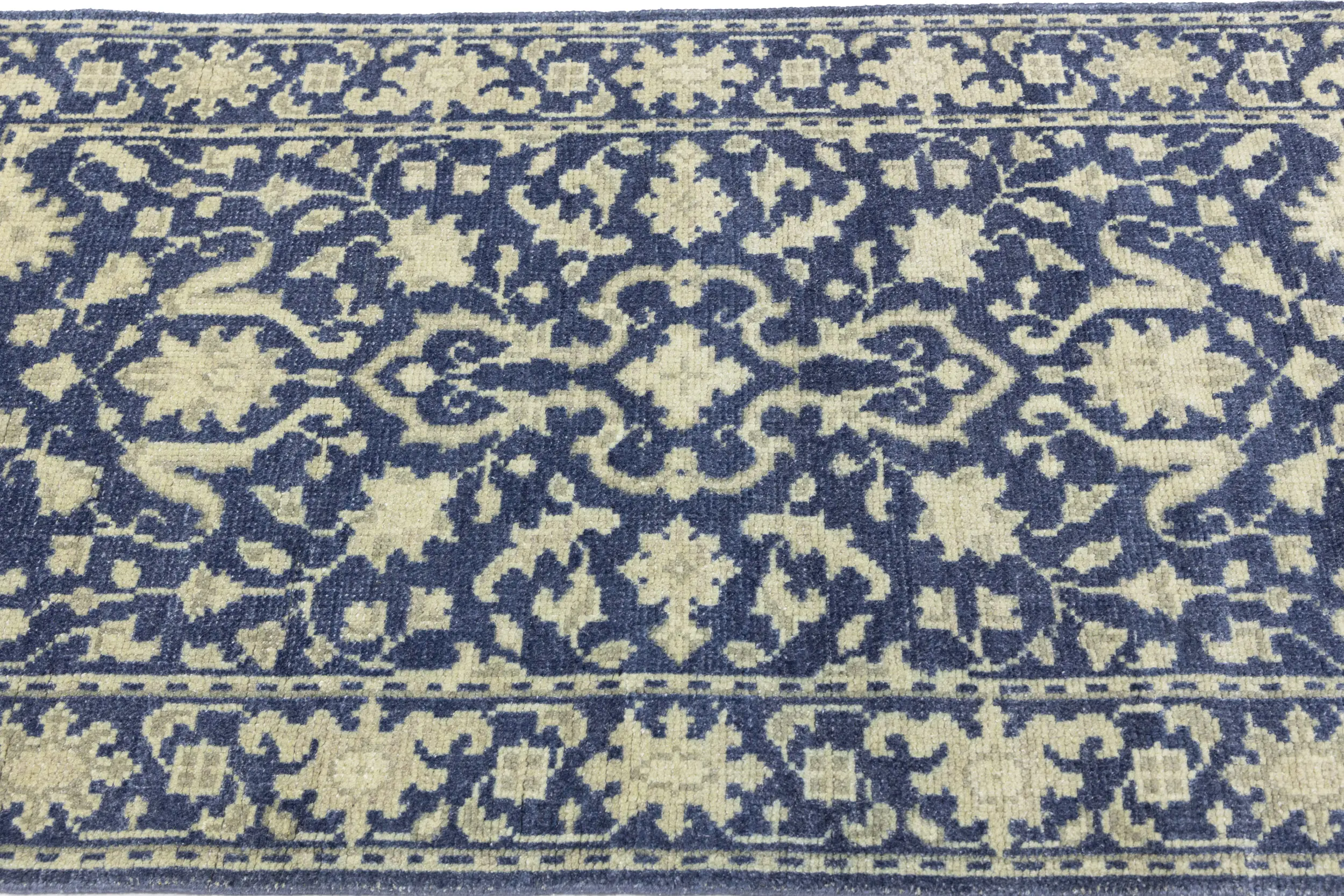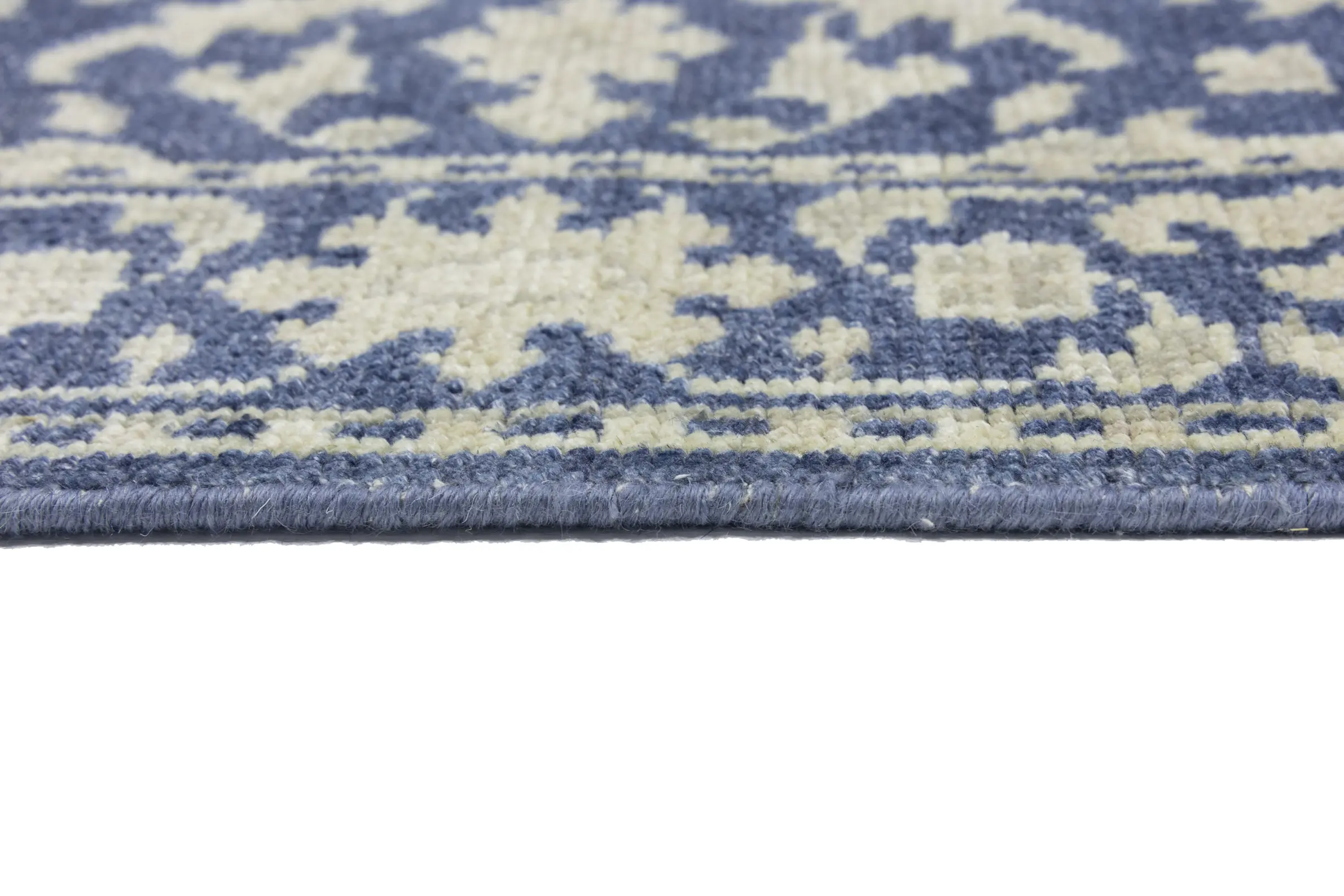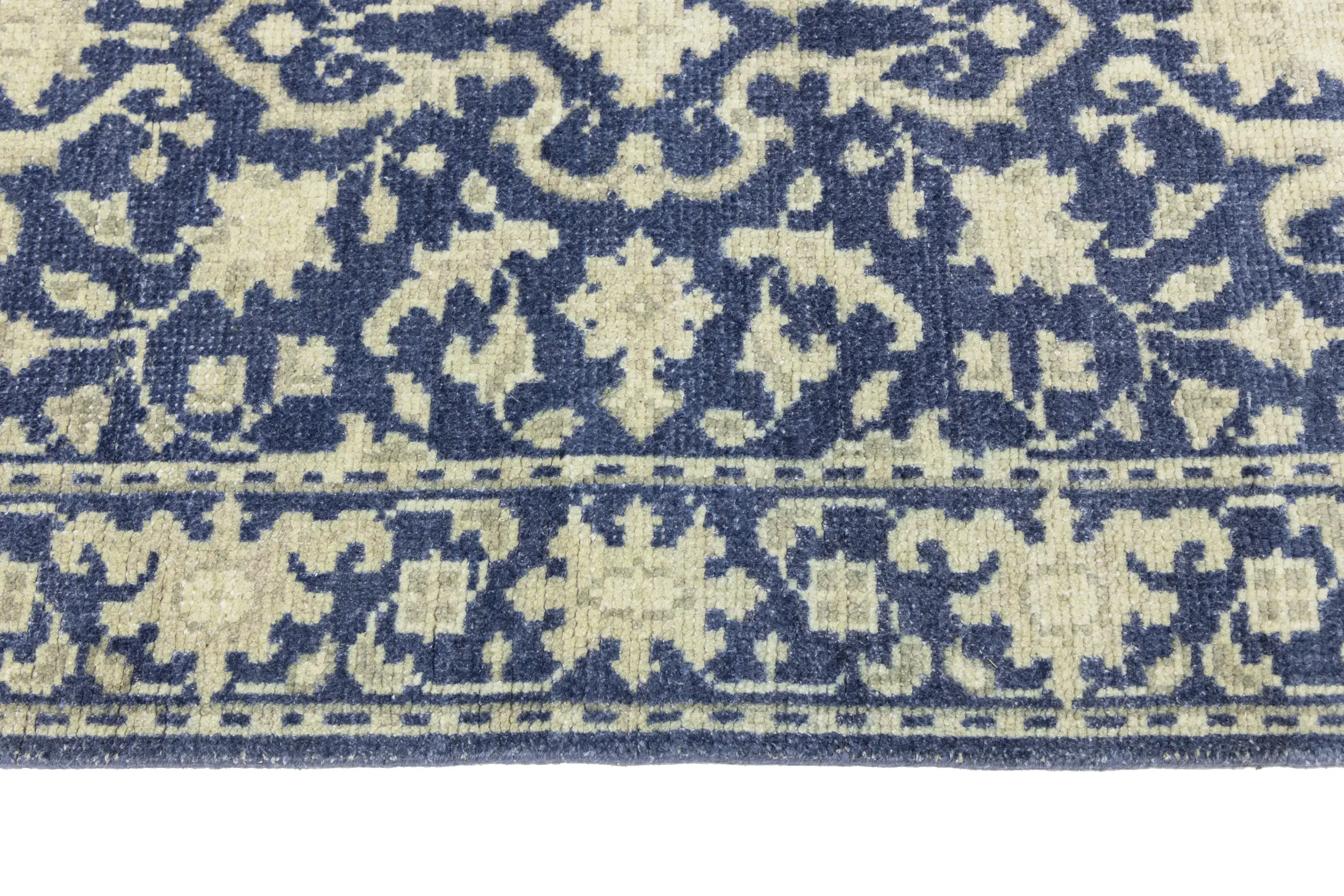 This genuine 3X5 blue new Oriental rug was made by the hands of gifted weavers inspired by a variety of spectacular artistic designs, to recreate the aged look of the original piece with a richness of color and ornately patterned background field. What set this vintage style Oriental area rug from the others are the material and dye used (wool pile and cotton foundation), knot count, ancient designs, fantastic grades, and its regional historical connection: it has deep roots, from the story of the people who produced it to the meaning of the symbols and colors displayed across its canvas that have been praised for centuries. This Indian home décor carpet will be completely cozy and inviting that never will go out of style! Also, this Oriental rug would be among your most valuable treasures, it is a great investment that accrues value over time, and it will last for generations because was woven with high-quality, all-natural wool. Environmentally friendly, opulent yet affordable; this rug will give you a thorough amount of character to help define your living space with elegance and warmth that will capture the eyes and attention of your audience (homeowners, designers, decorators, family and friends).
