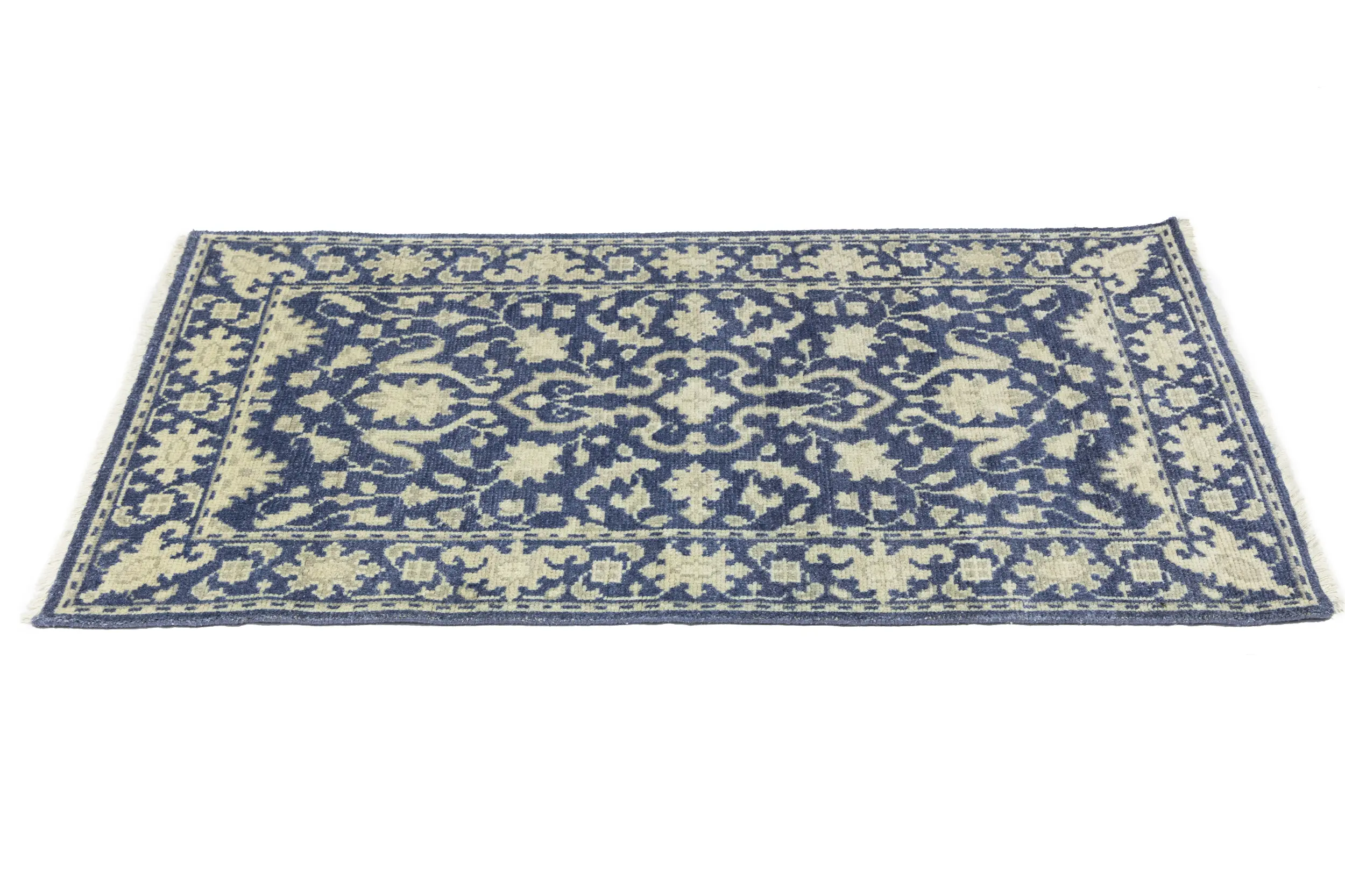 Handmade 3X5 blue oriental rug made with vegetable dyes (fine wool pile and cotton foundation), superior knot count, and appealing ancient designs. This Oriental rug never will go out of style and would be among your most valuable treasures.