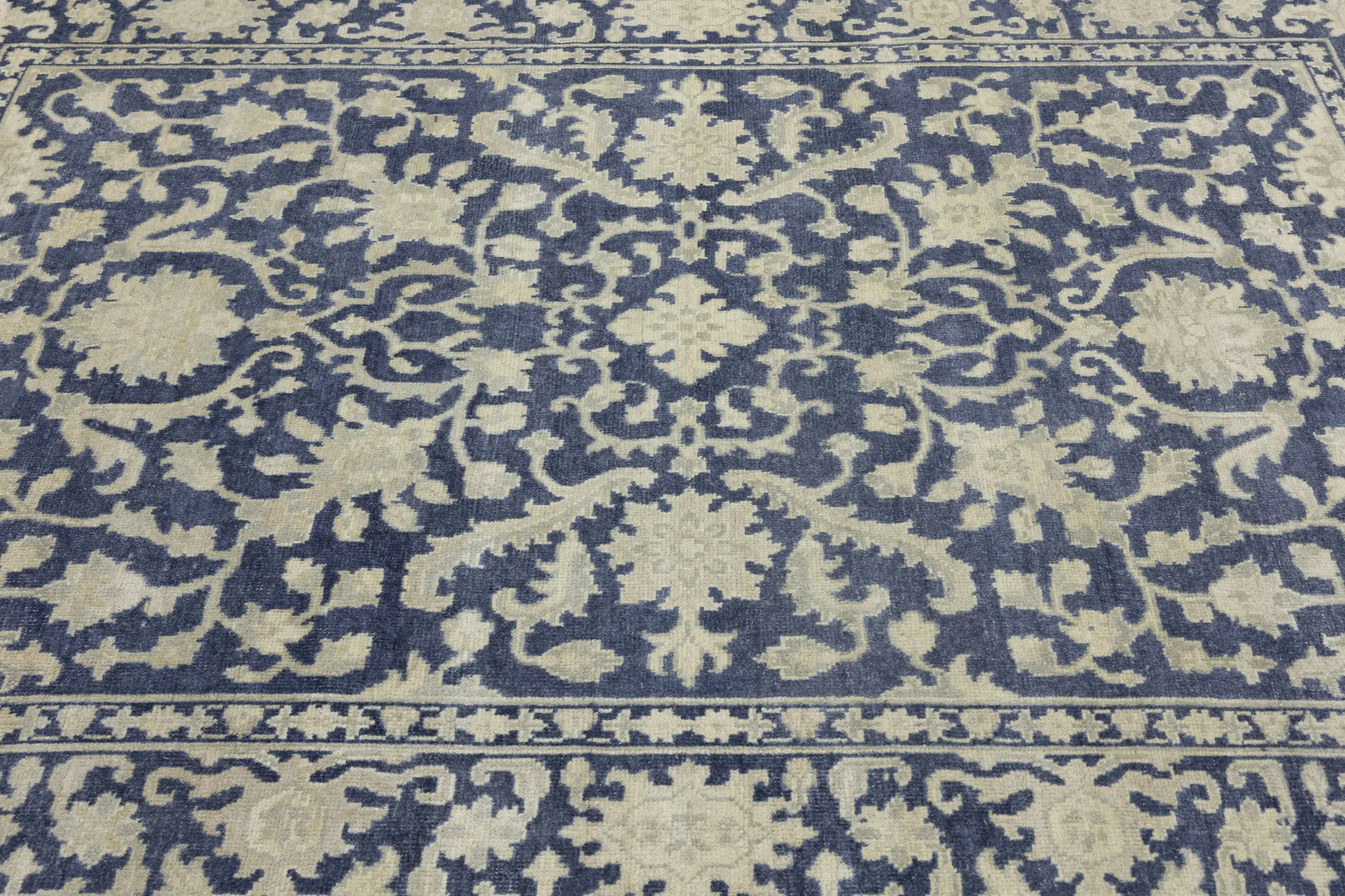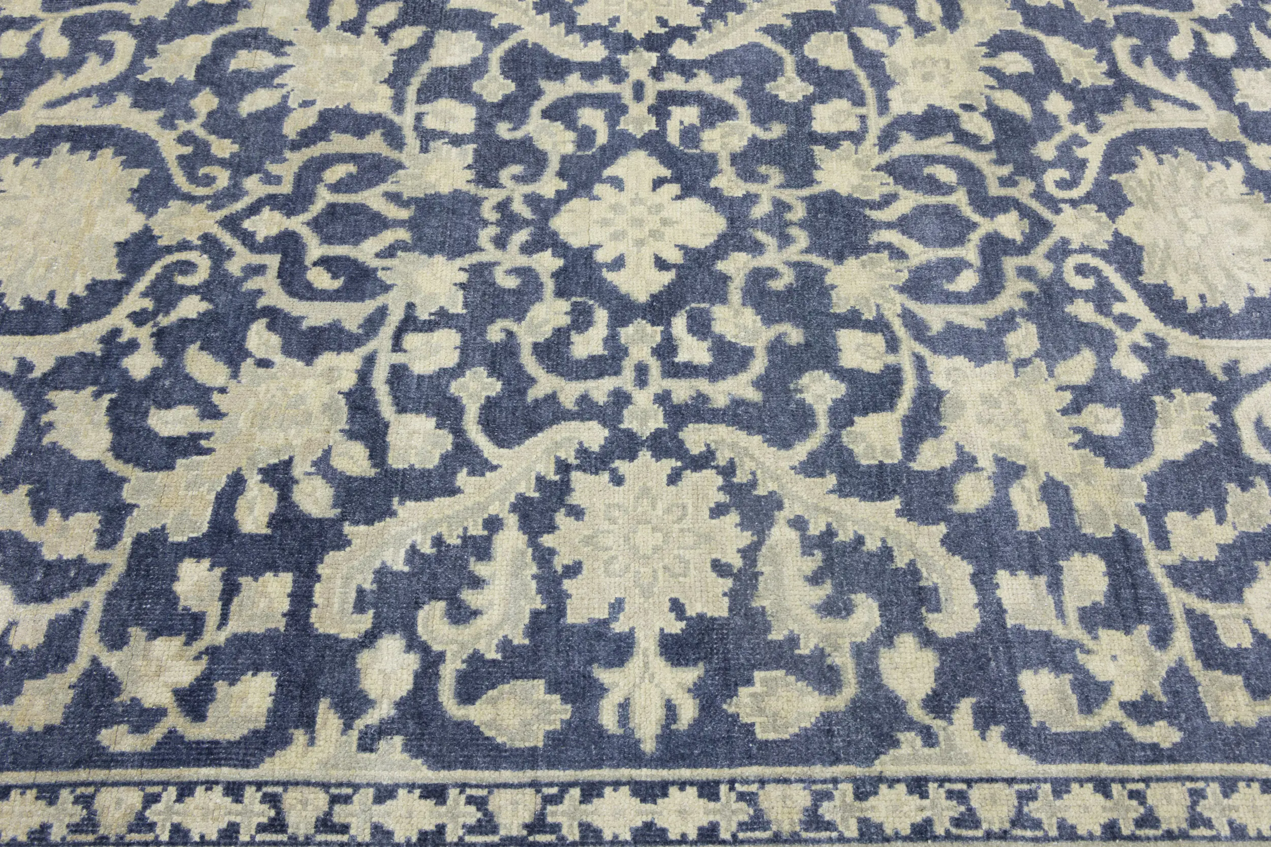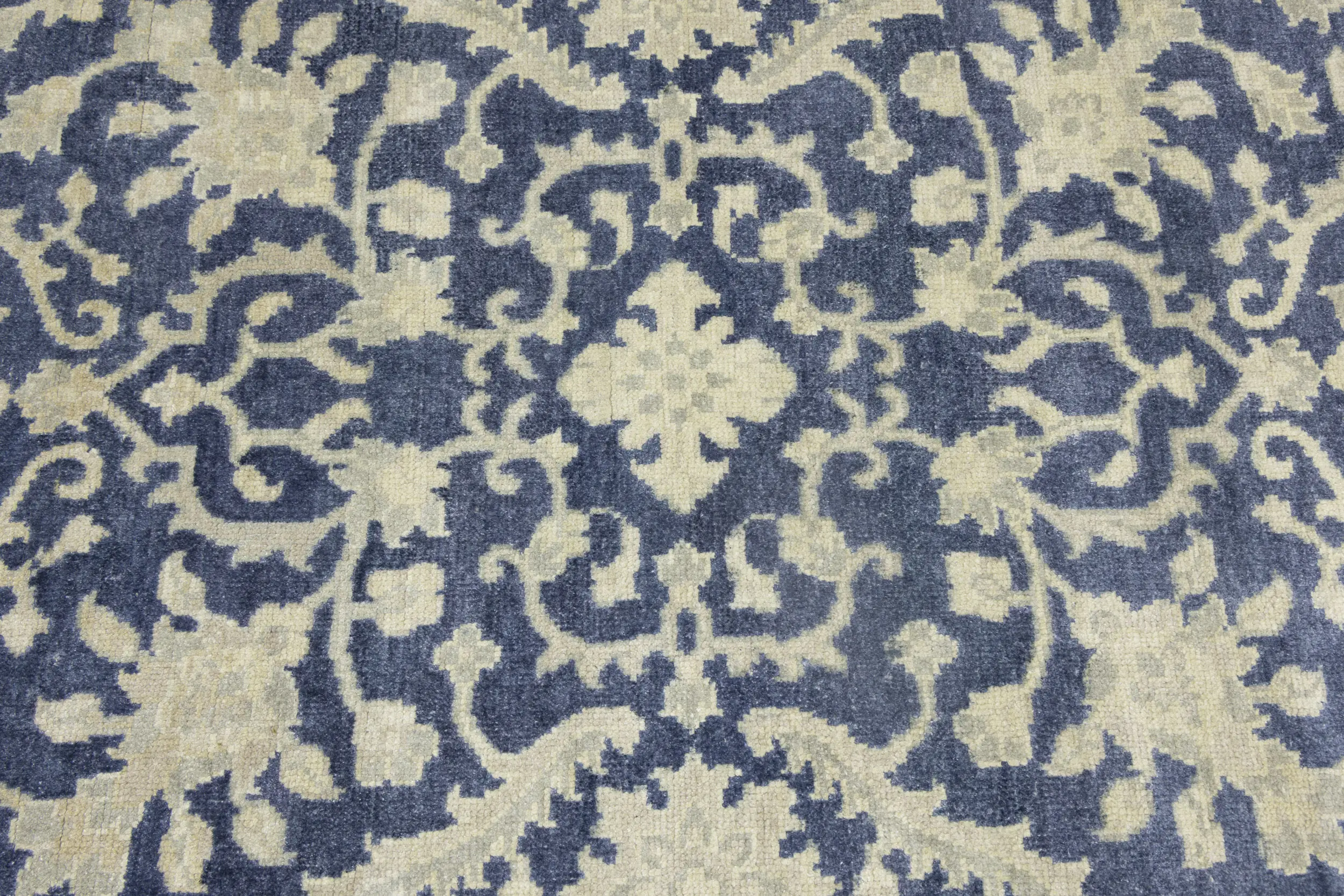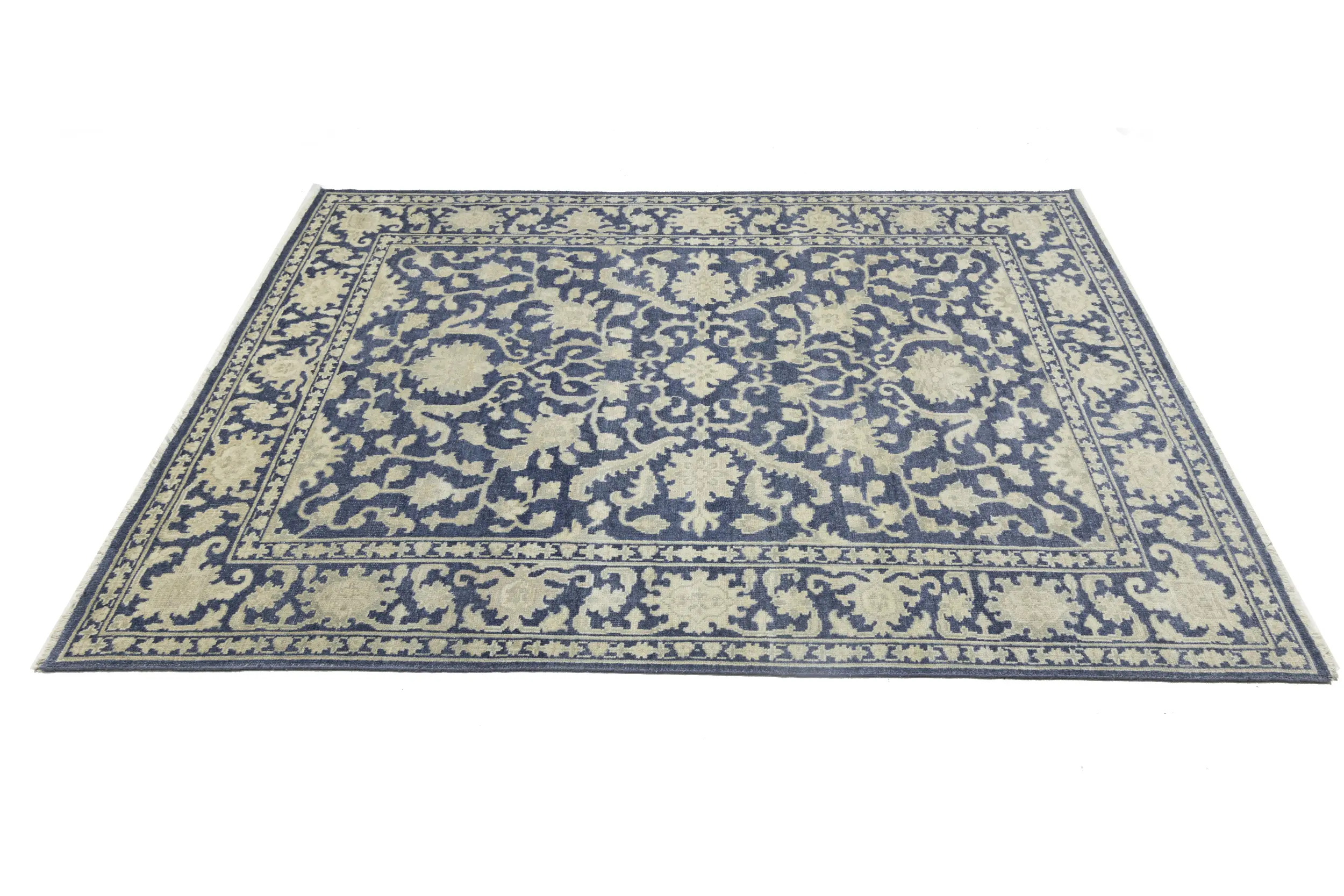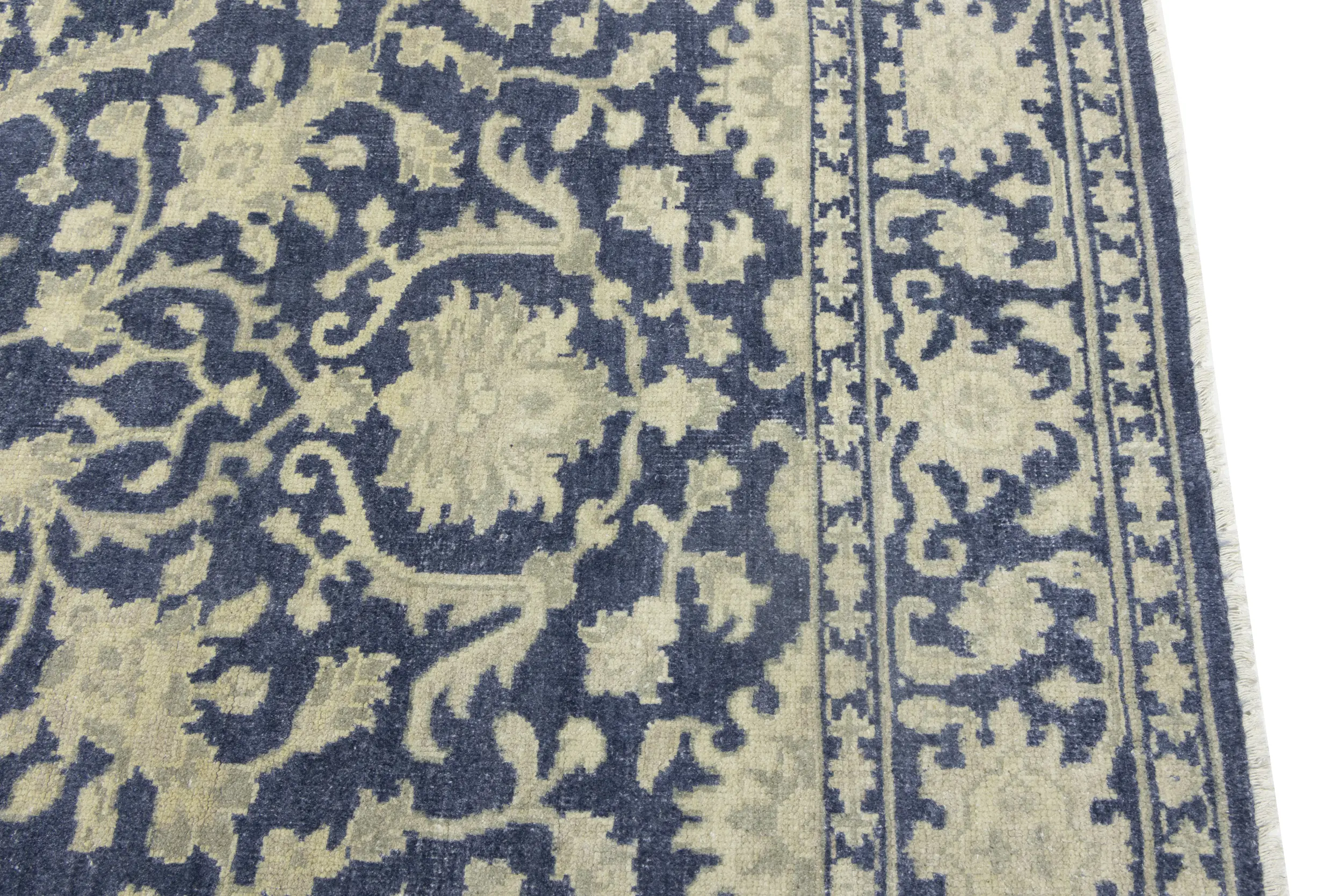 This genuine 8X10 blue new Oriental rug was made by the hands of gifted weavers inspired by a variety of spectacular artistic designs, to recreate the aged look of the original piece with a richness of color and ornately patterned background field. What set this vintage style Oriental area rug from the others are the material and dye used (wool pile and cotton foundation), knot count, ancient designs, fantastic grades, and its regional historical connection: it has deep roots, from the story of the people who produced it to the meaning of the symbols and colors displayed across its canvas that have been praised for centuries. This Indian home décor carpet will be completely cozy and inviting that never will go out of style! Also, this Oriental rug would be among your most valuable treasures, it is a great investment that accrues value over time, and it will last for generations because was woven with high-quality, all-natural wool. Environmentally friendly, opulent yet affordable; this rug will give you a thorough amount of character to help define your living space with elegance and warmth that will capture the eyes and attention of your audience (homeowners, designers, decorators, family and friends).