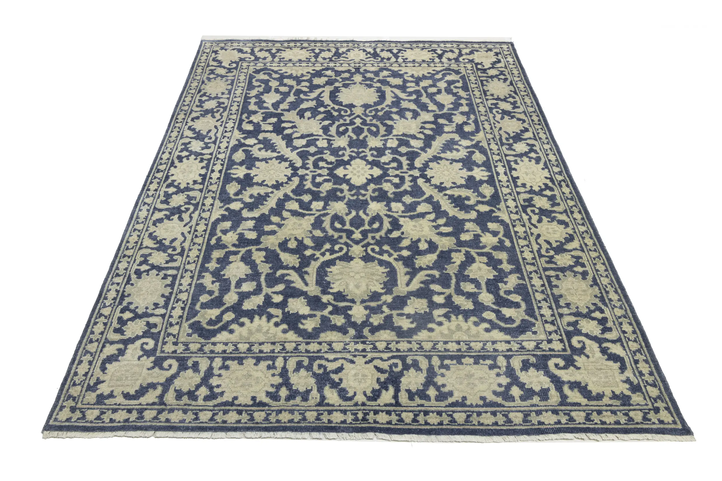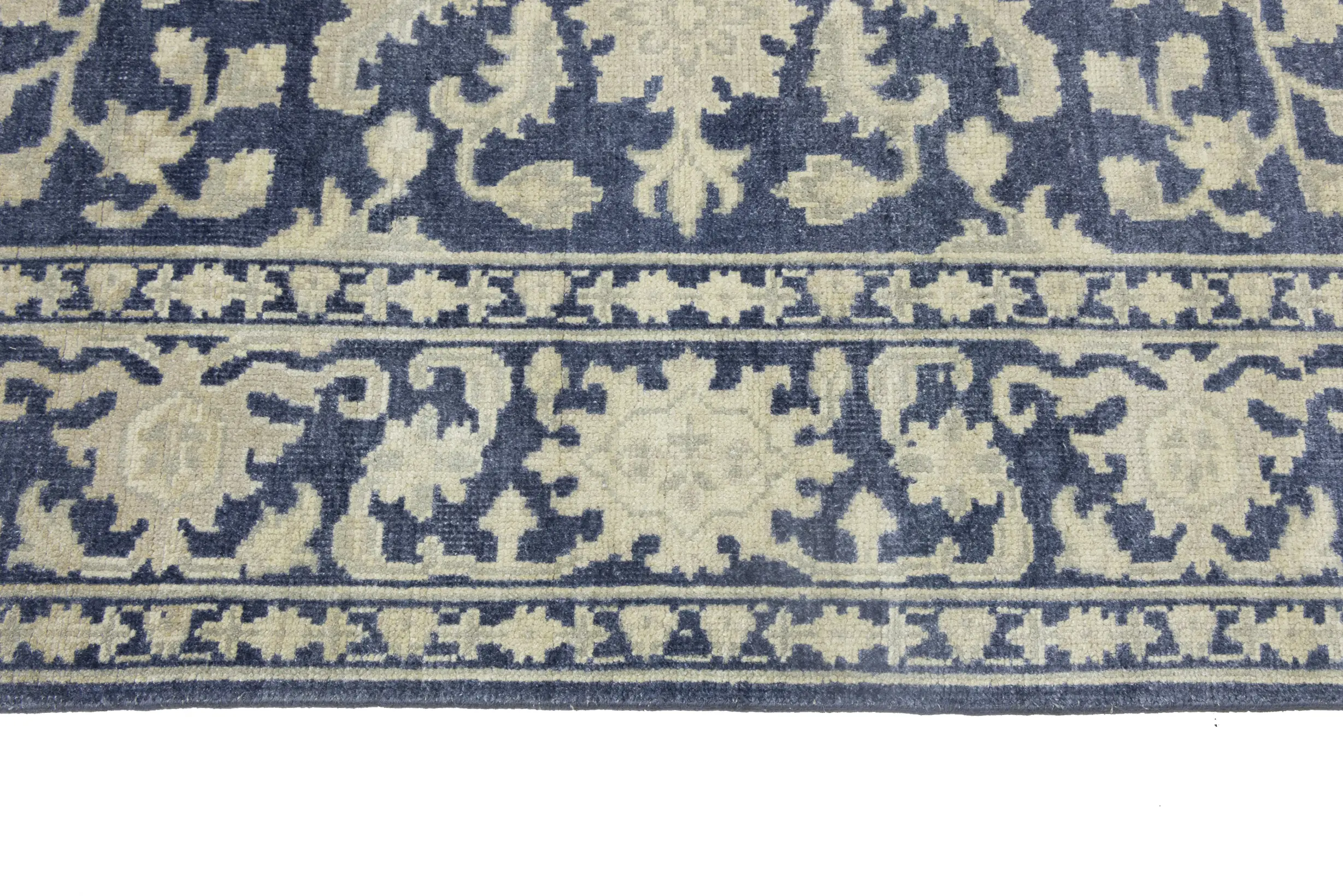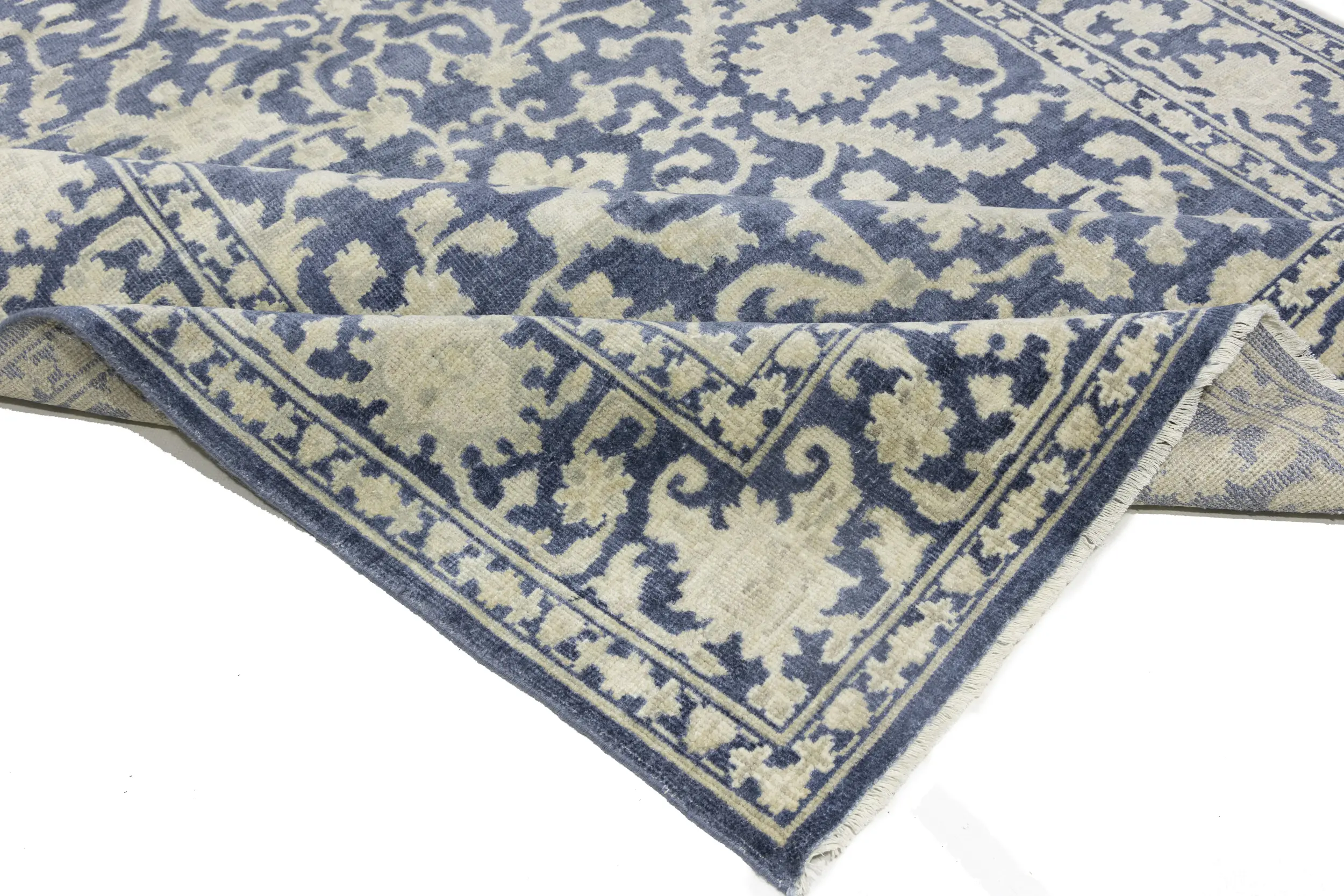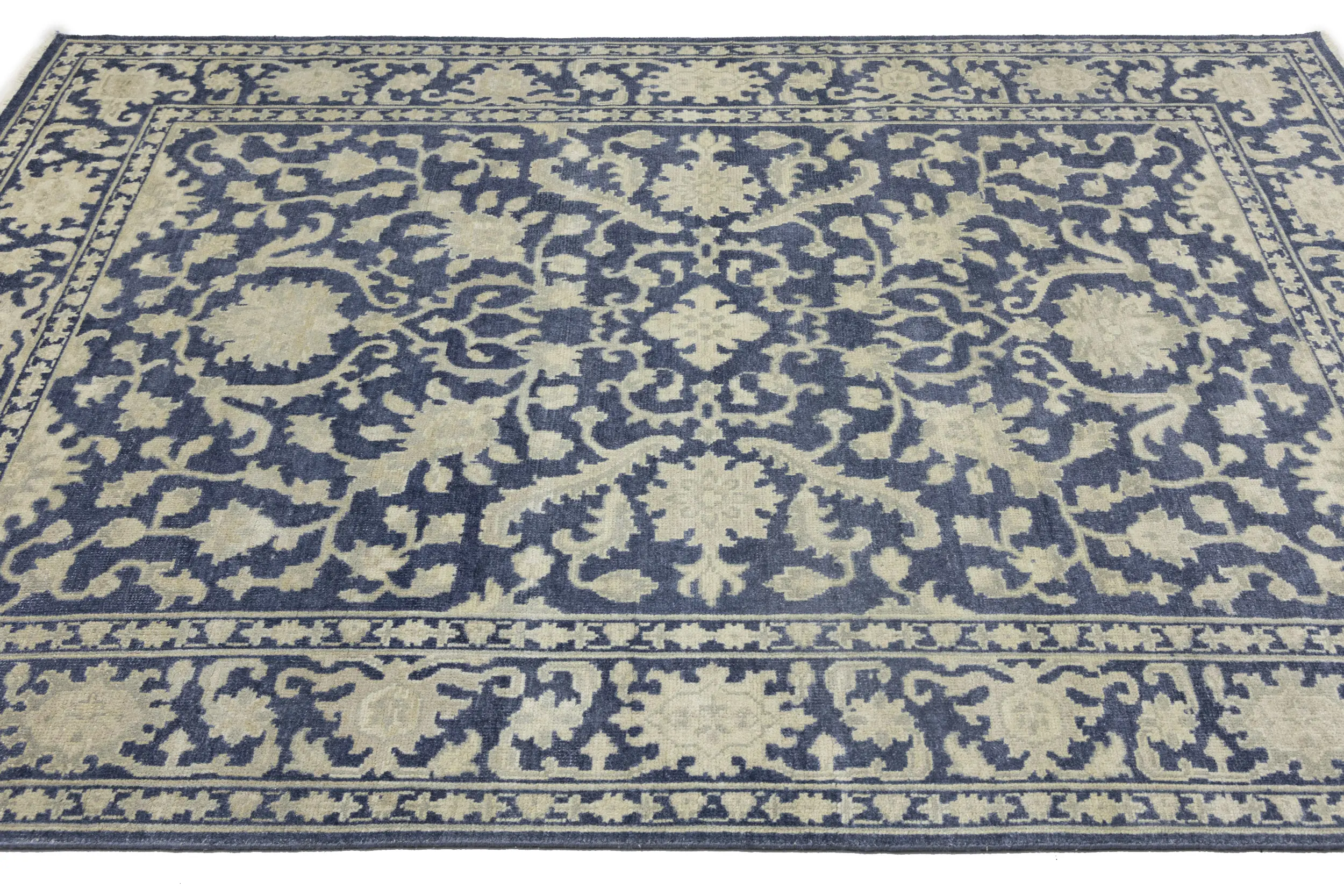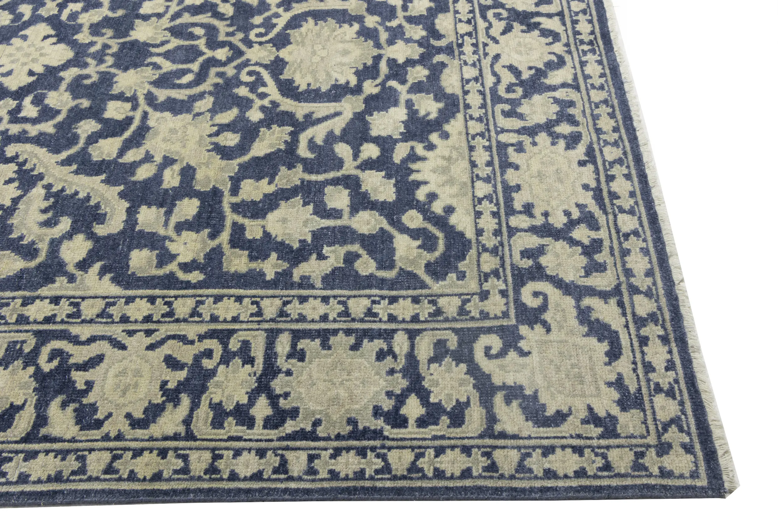 This genuine 8X10 blue new Oriental rug was made by the hands of gifted weavers inspired by a variety of spectacular artistic designs, to recreate the aged look of the original piece with a richness of color and ornately patterned background field. What set this vintage style Oriental area rug from the others are the material and dye used (wool pile and cotton foundation), knot count, ancient designs, fantastic grades, and its regional historical connection: it has deep roots, from the story of the people who produced it to the meaning of the symbols and colors displayed across its canvas that have been praised for centuries. This Indian home décor carpet will be completely cozy and inviting that never will go out of style! Also, this Oriental rug would be among your most valuable treasures, it is a great investment that accrues value over time, and it will last for generations because was woven with high-quality, all-natural wool. Environmentally friendly, opulent yet affordable; this rug will give you a thorough amount of character to help define your living space with elegance and warmth that will capture the eyes and attention of your audience (homeowners, designers, decorators, family and friends).