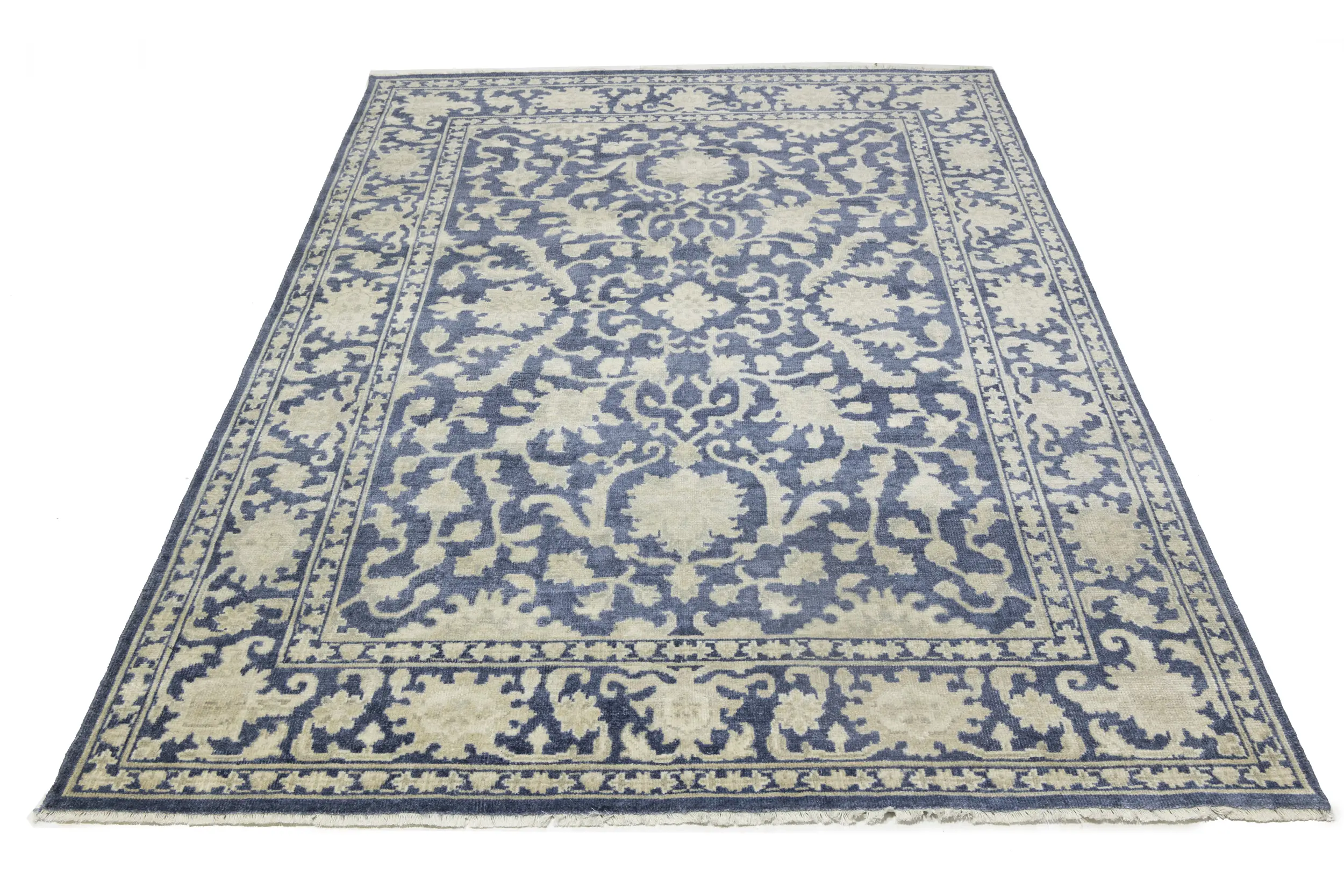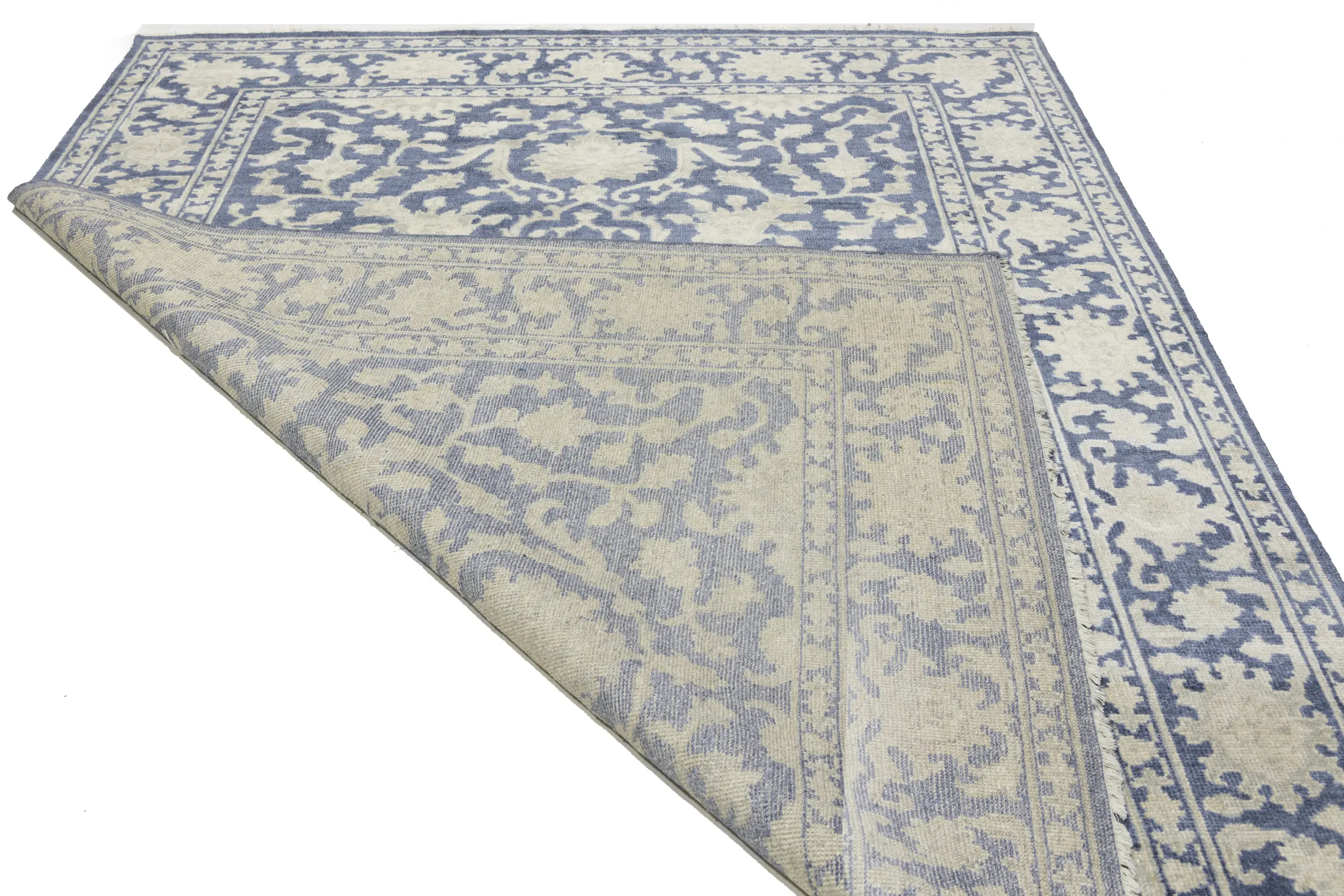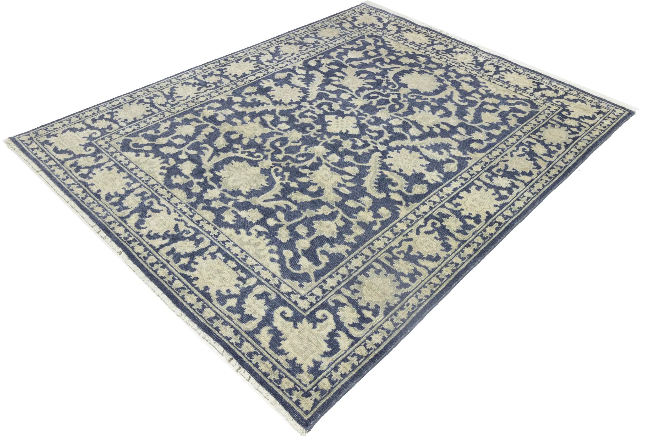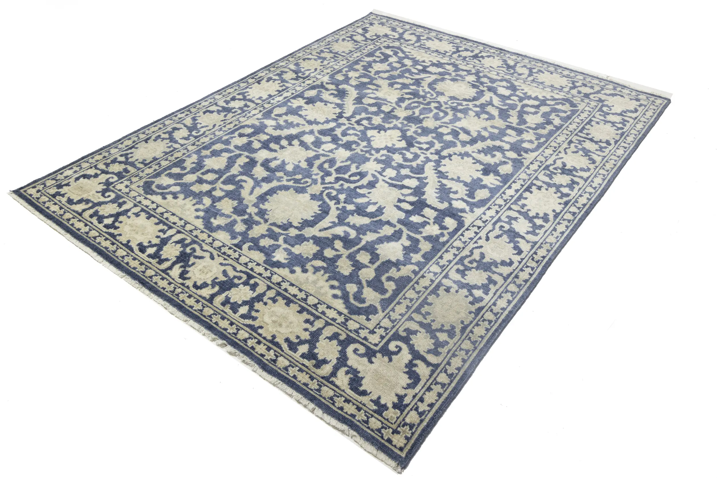 Muted Slate Blue Floral 8X10 Transitional Oriental Rug