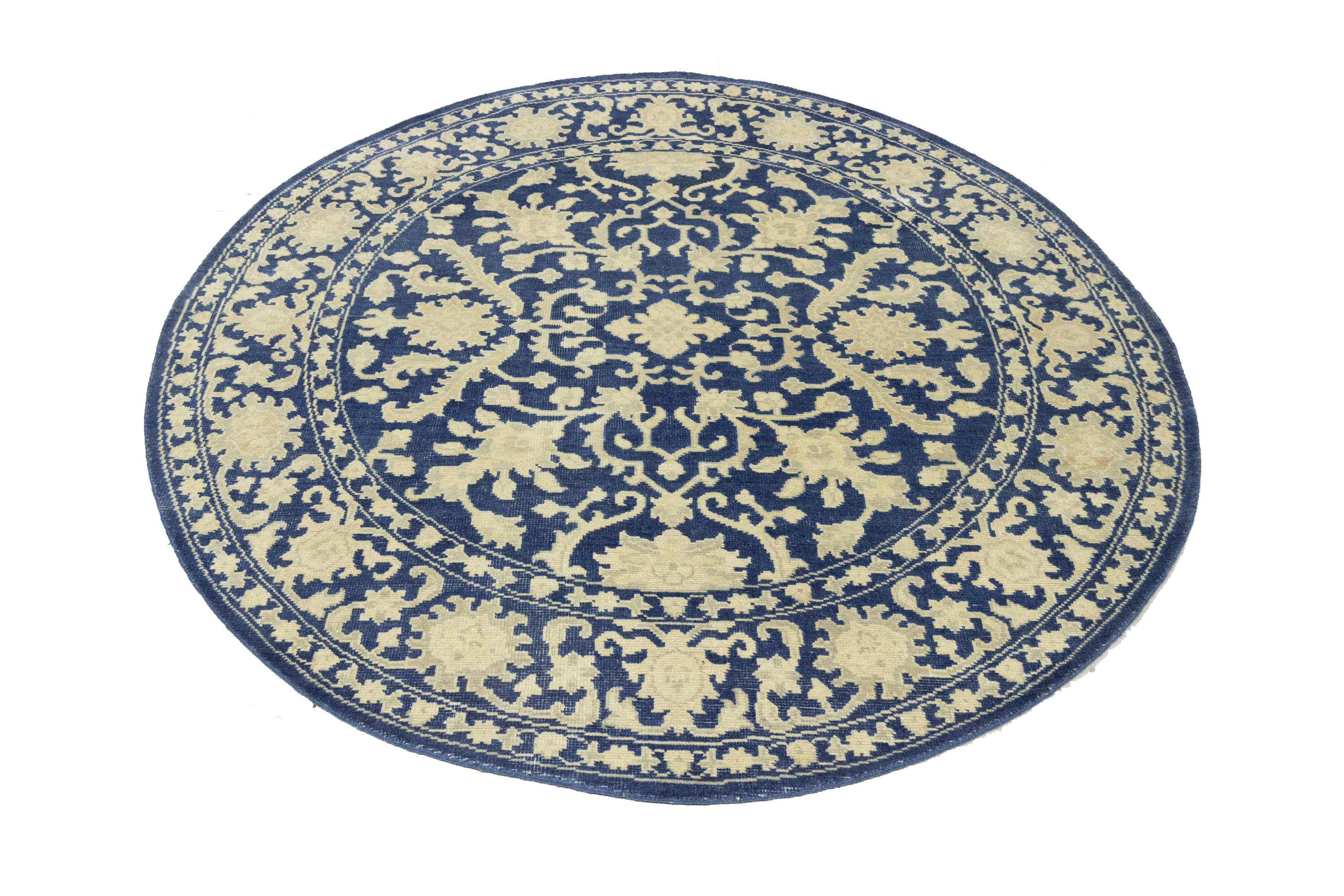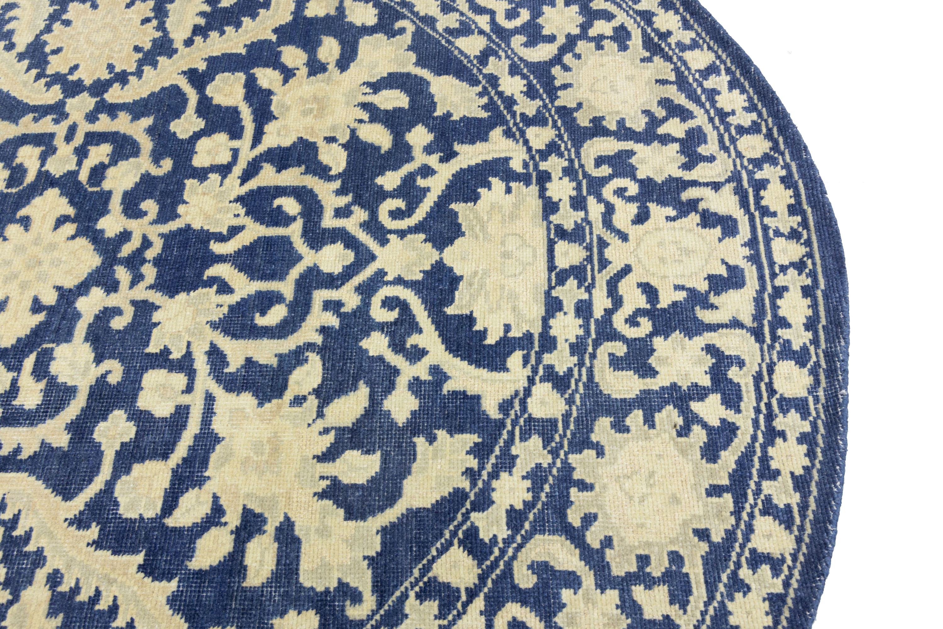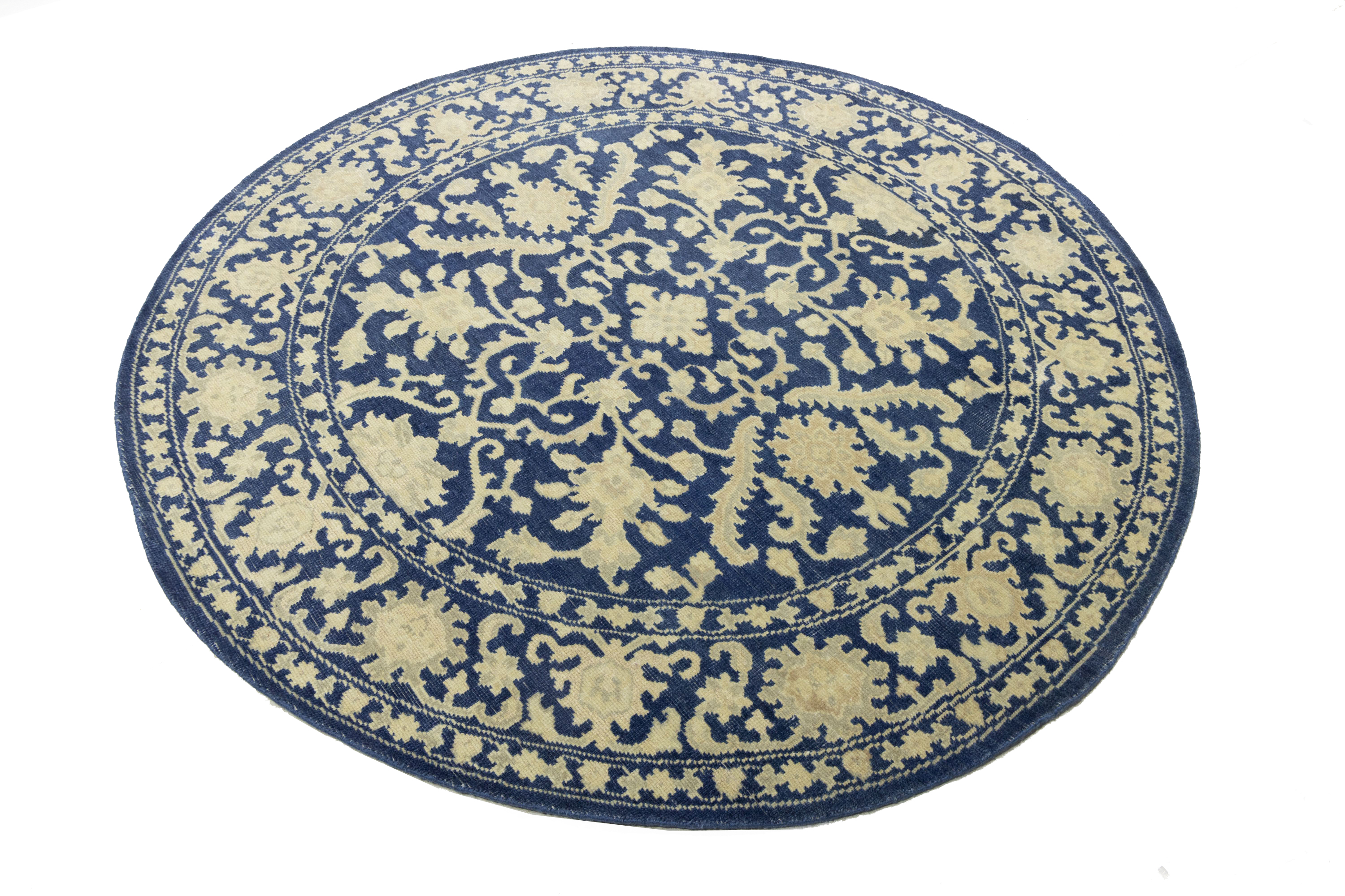 Muted Slate Blue Floral 8x8 Transitional Oriental Round Rug