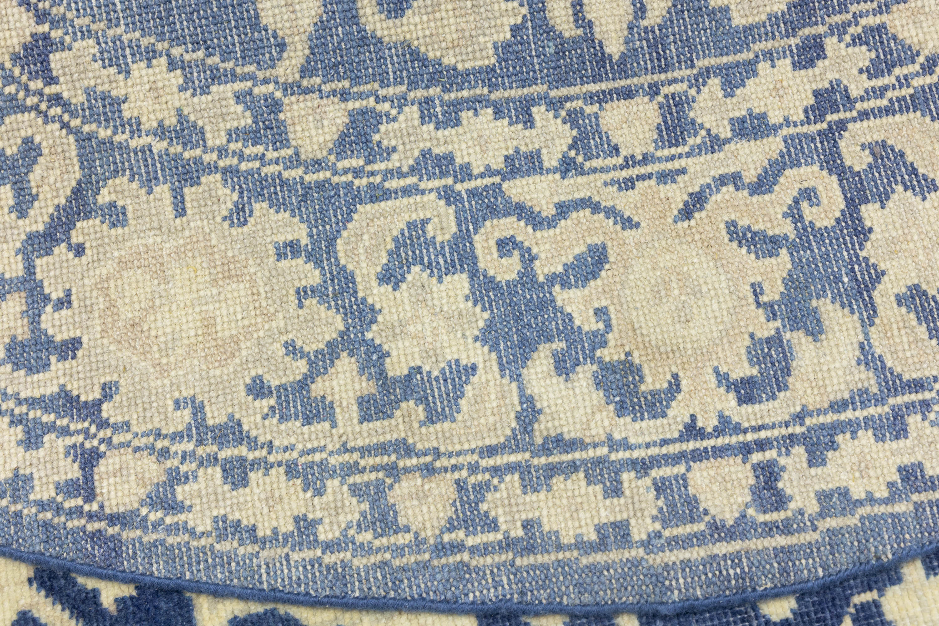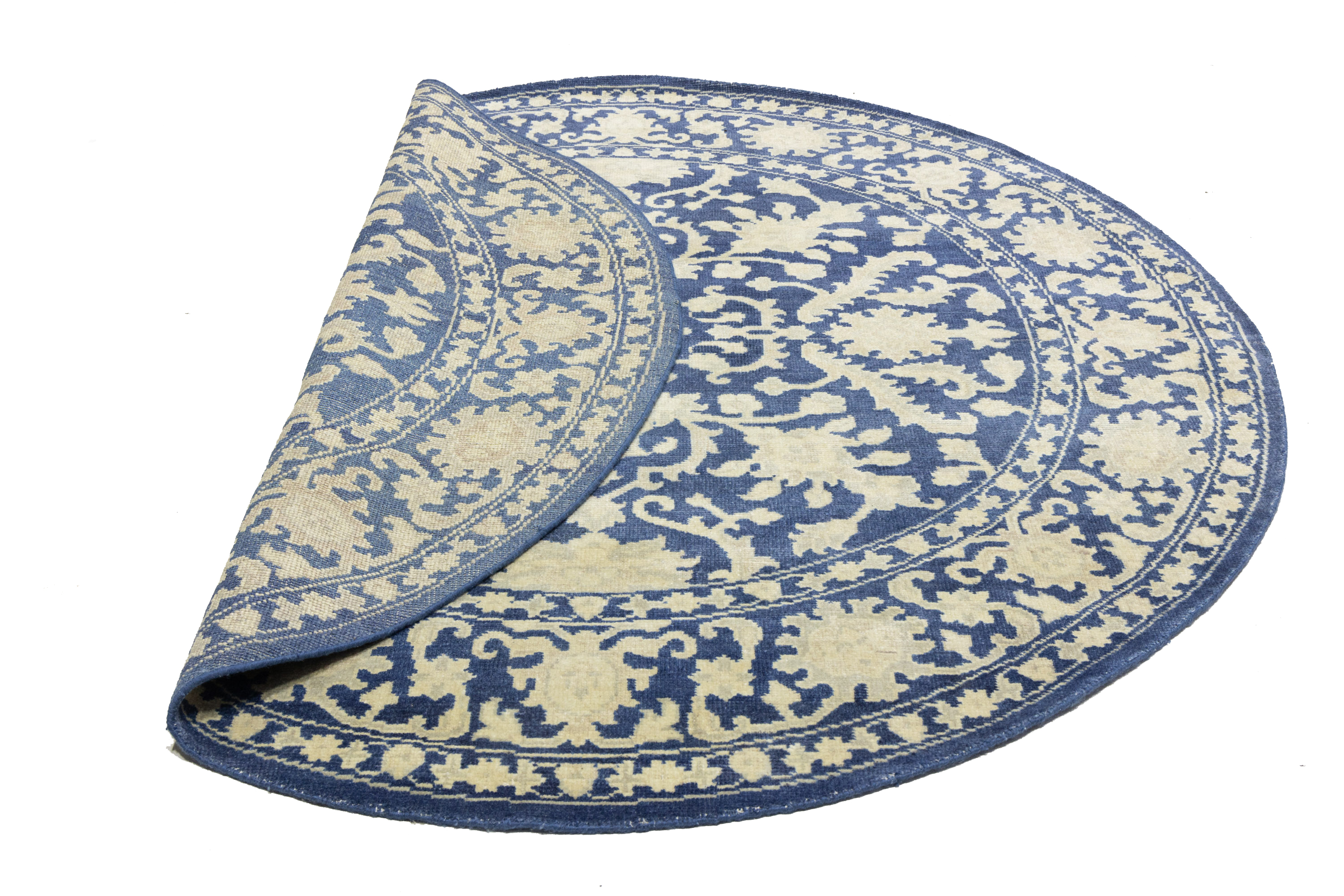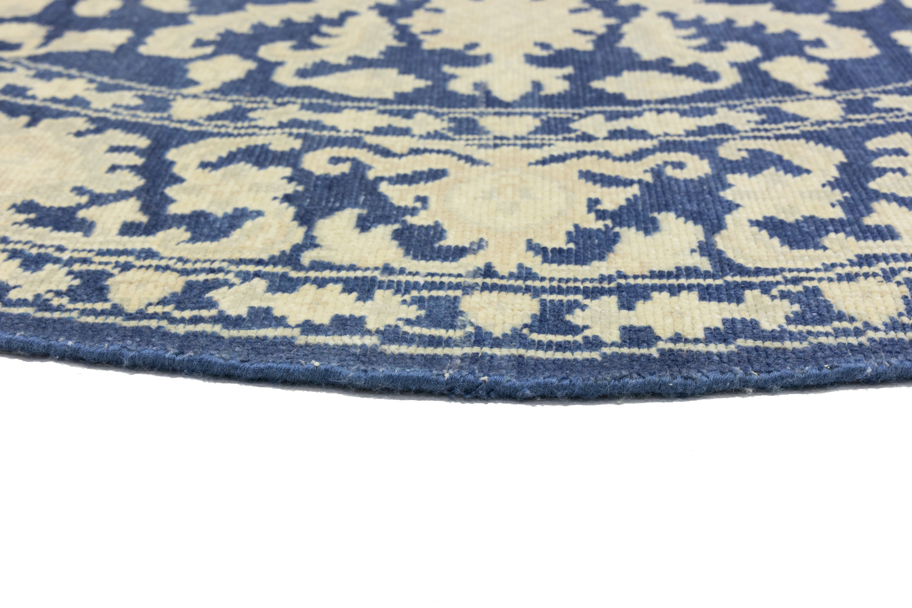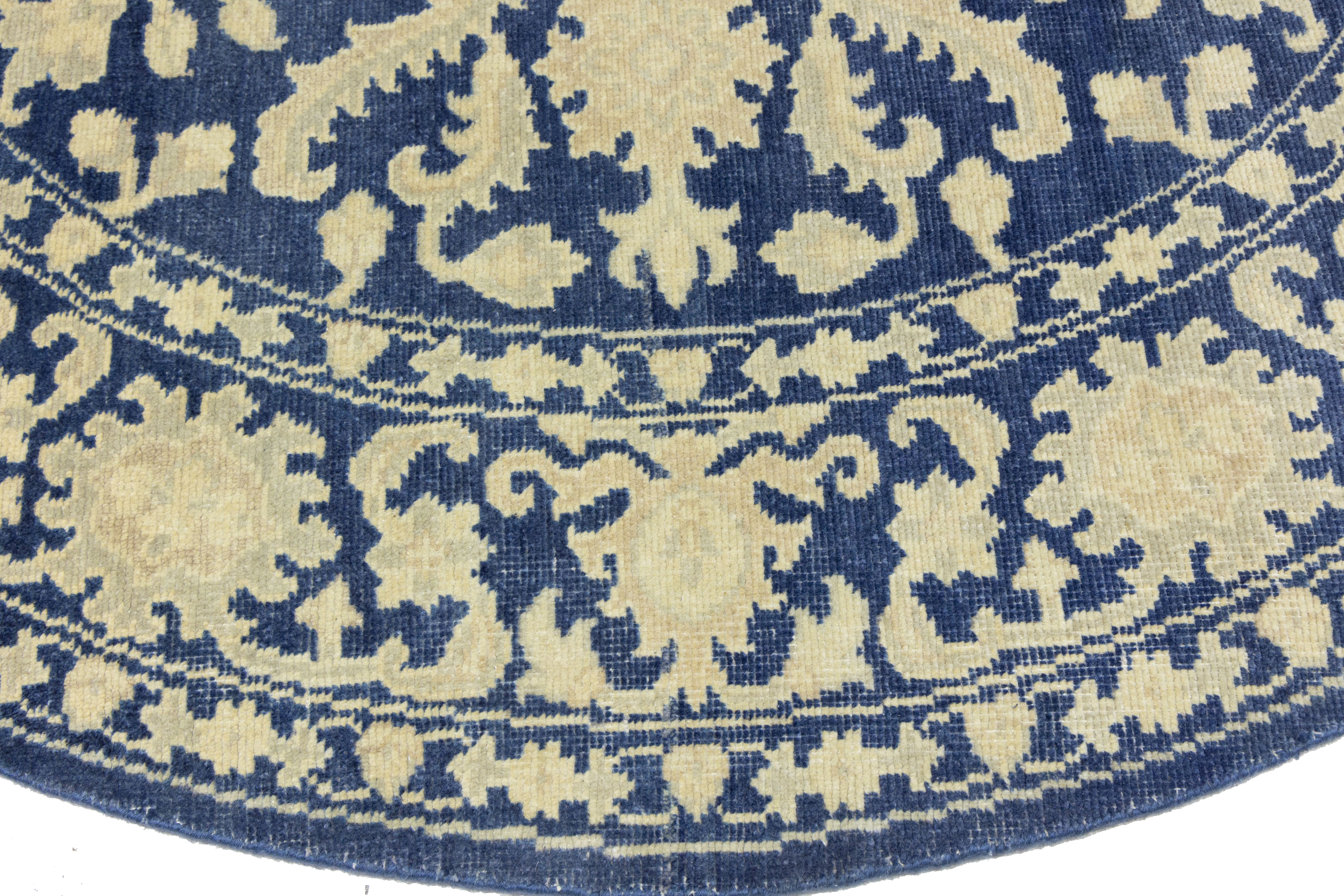 Muted Slate Blue Floral 8x8 Transitional Oriental Round Rug