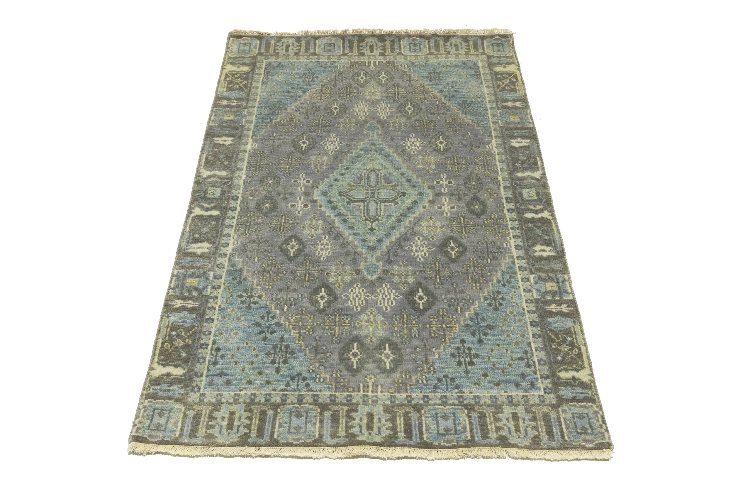 This authentic 3X5 gray new Oriental rug was crafted by the hands of skilled weavers enthused by a variety of lovely artistic designs, to recreate the aged look of the unique piece with a richness of color and beautifully elaborated background field. What set this vintage style Oriental area rug from the others are the material and dye used (wool pile and cotton foundation), knot count, ancient designs, fantastic grades, and its regional historical connection: it has deep roots, from the story of the people who produced it to the meaning of the symbols and colors displayed across its canvas that have been praised for centuries. This Indian home décor carpet will be completely cozy and inviting that never will go out of style! Also, this Oriental rug would be among your most valuable treasures, it is a great investment that increase in value over time, and it will last for generations because was woven with high-quality, all-natural wool. Environmentally friendly, opulent yet affordable; this rug will give you a thorough amount of character to help define your living space with sophistication and warmth that will capture the eyes and attention of your audience (homeowners, designers, decorators, family and friends). OT-11531