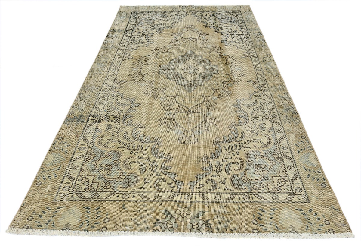 Muted Traditional Floral 5'5X9'5 Distressed Tabriz Persian Rug