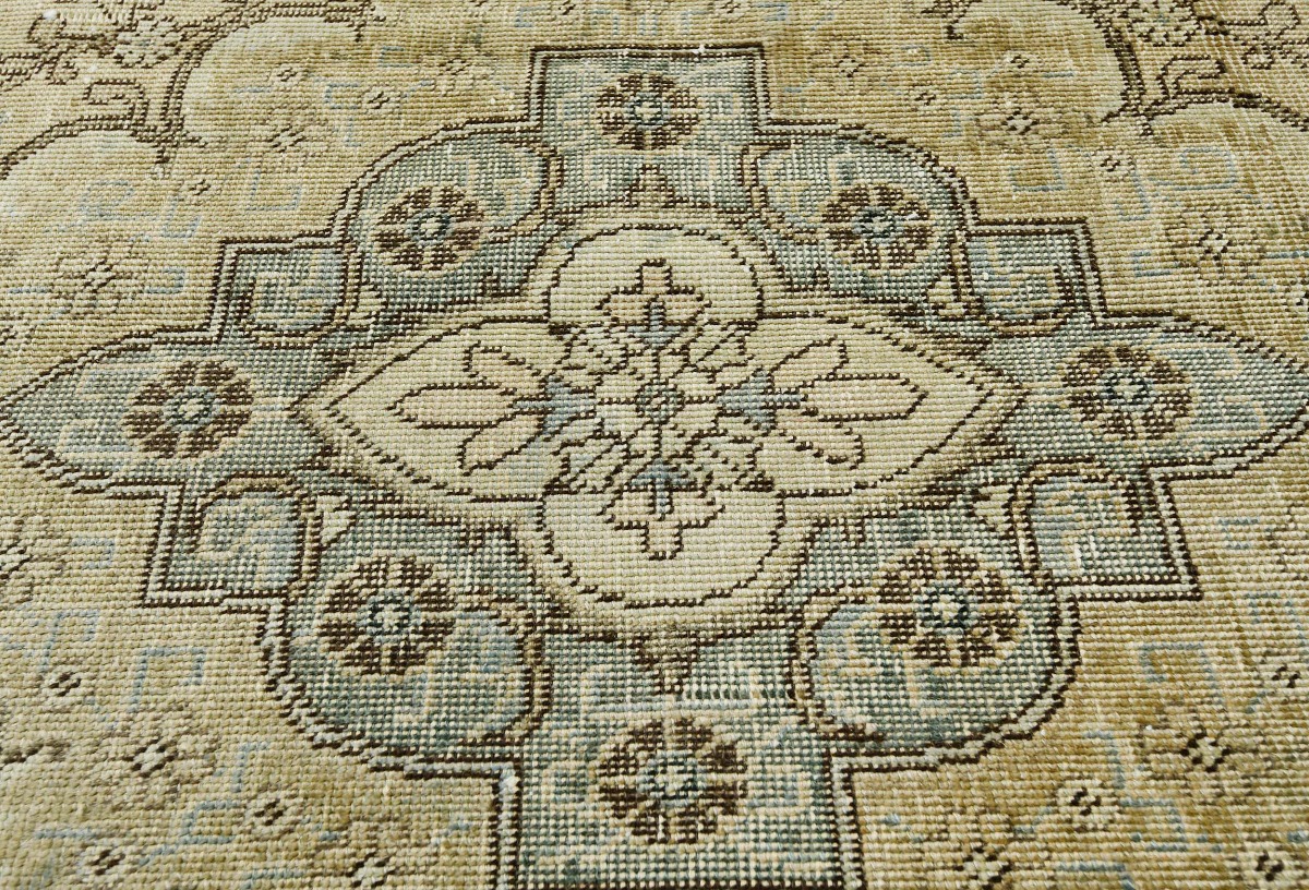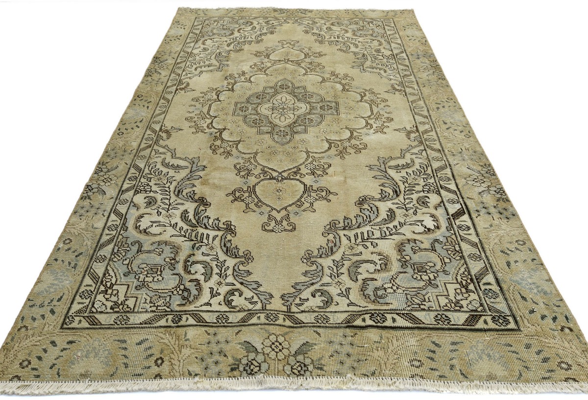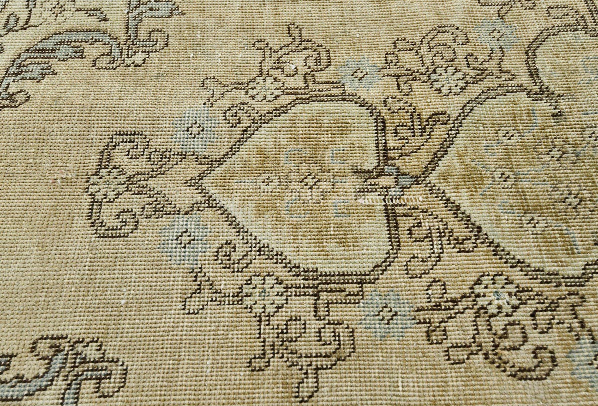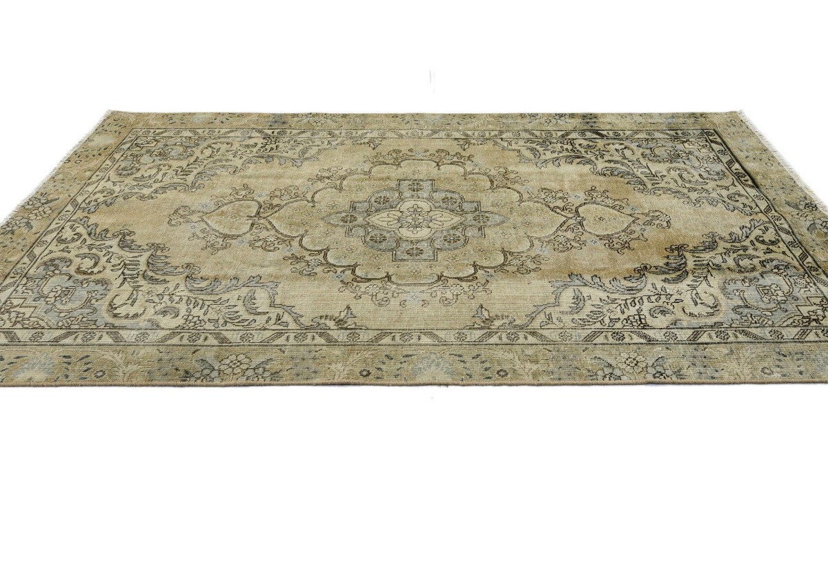 This authentic 5'5X9'5 beige vintage Persian rug was finely knotted by the hands of weavers influenced by a variety of amazing artistic designs, to recreate the aged look of the exceptional piece with a richness of color and embellished floral background field. What set this traditional Oriental area rug from the others are the material and dye used (wool pile and cotton foundation), knot count, antique designs, fantastic grades, and its regional historical connection: it has deep roots, from the story of the people who produced it to the meaning of the symbols and colors displayed across its canvas that have been praised for centuries. This classic home décor carpet will be completely cozy and inviting that never will go out of style! Also, this Oriental rug would be among your most valuable treasures, it is a great investment that increase in value over time, and it will last a lifetime because was woven with high-quality, all-natural wool; it won’t rip, tear, or shed. Eco-friendly, opulent yet affordable; this Persian rug will give you an extra pop of character to help define your home environment with luxury and warmth that will capture the eyes and attention of your audience (homeowners, designers, decorators, family and friends). RT-5503