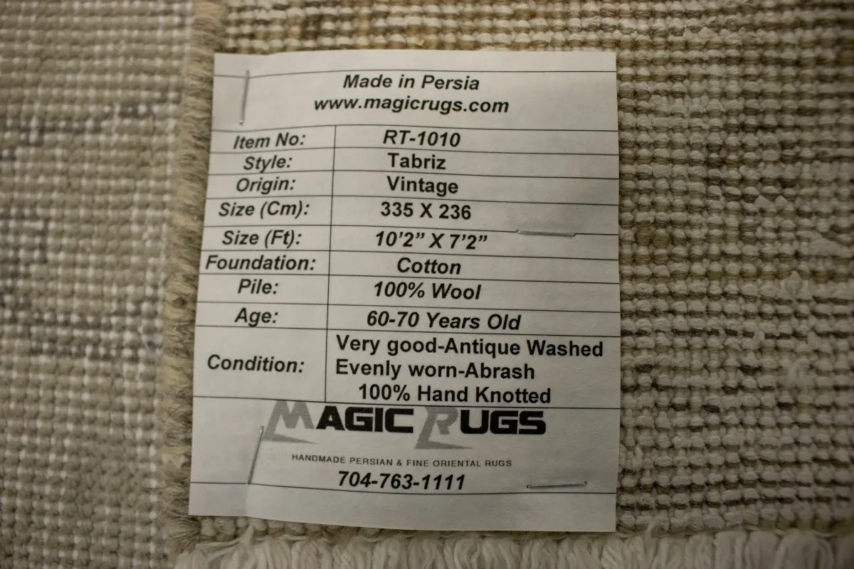 This genuine 7X10 beige vintage Persian rug was made by the hands of gifted weavers inspired by a variety of spectacular artistic designs, to recreate the aged look of the original piece with a richness of color and ornately patterned floral background field. What set this traditional Oriental area rug from the others are the material and dye used (wool pile and cotton foundation), knot count, ancient designs, fantastic grades, and its regional historical connection: it has deep roots, from the story of the people who produced it to the meaning of the symbols and colors displayed across its canvas that have been praised for centuries. This classic home décor carpet will be completely cozy and inviting that never will go out of style! Also, this Oriental rug would be among your most valuable treasures, it is a great investment that accrues value over time, and it will last for generations because was woven with high-quality, all-natural wool; it won’t rip, tear, or shed. Environmentally friendly, opulent yet affordable; this Persian rug will give you a thorough amount of character to help define your living space with elegance and warmth that will capture the eyes and attention of your audience (homeowners, designers, decorators, family and friends). RT-1010