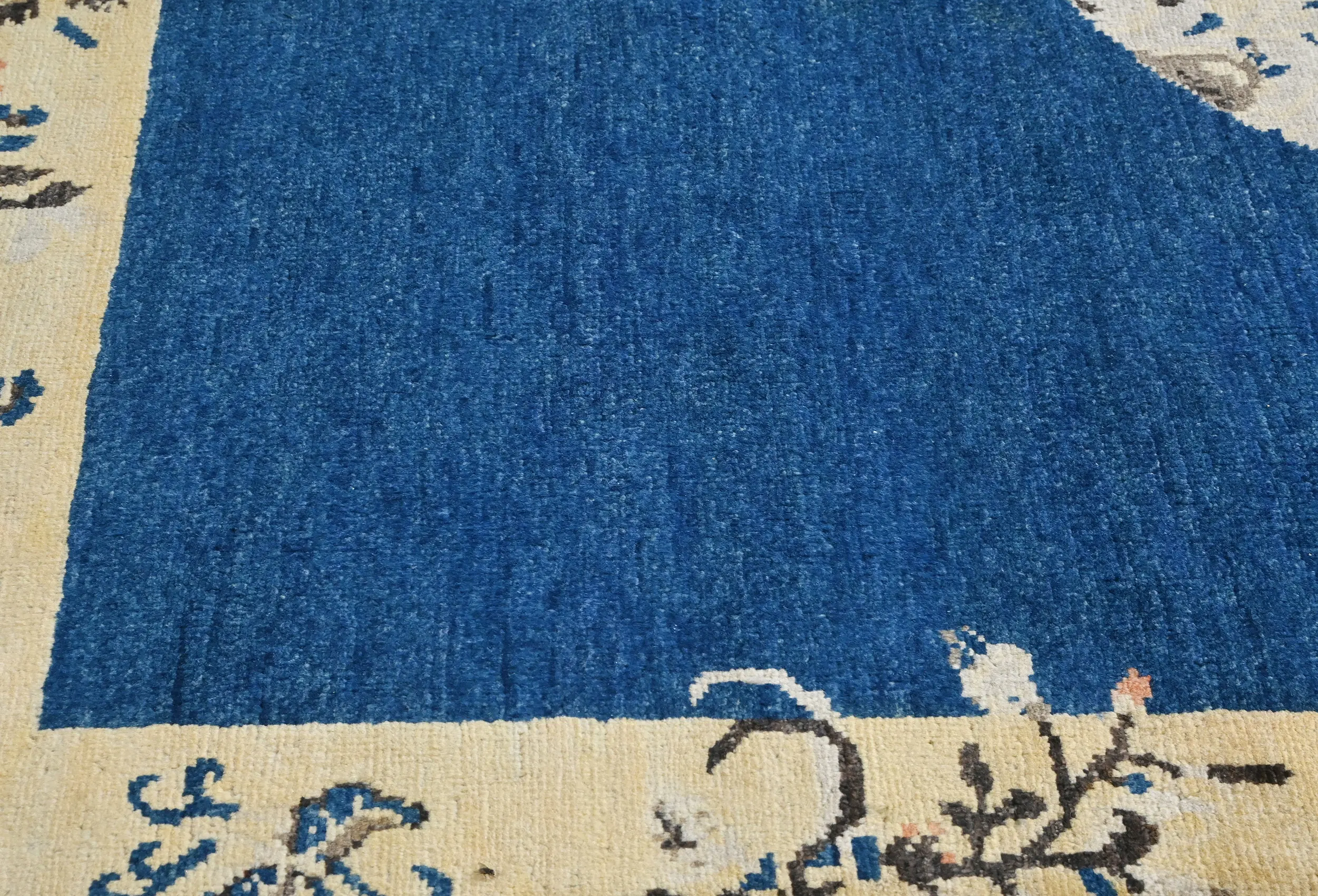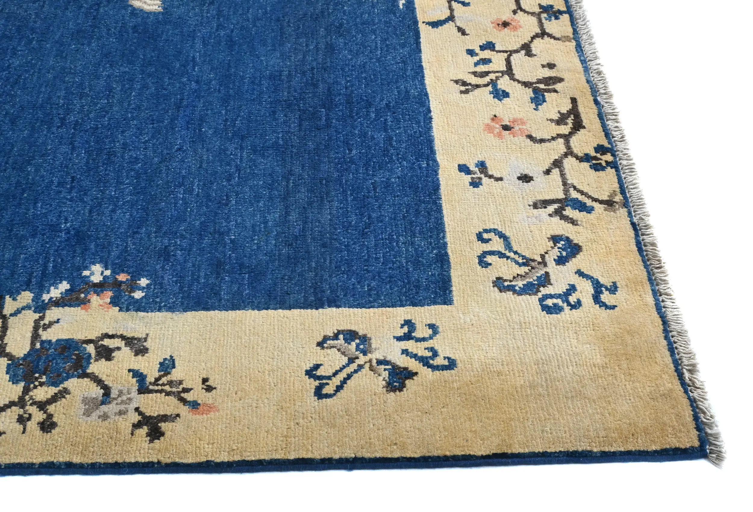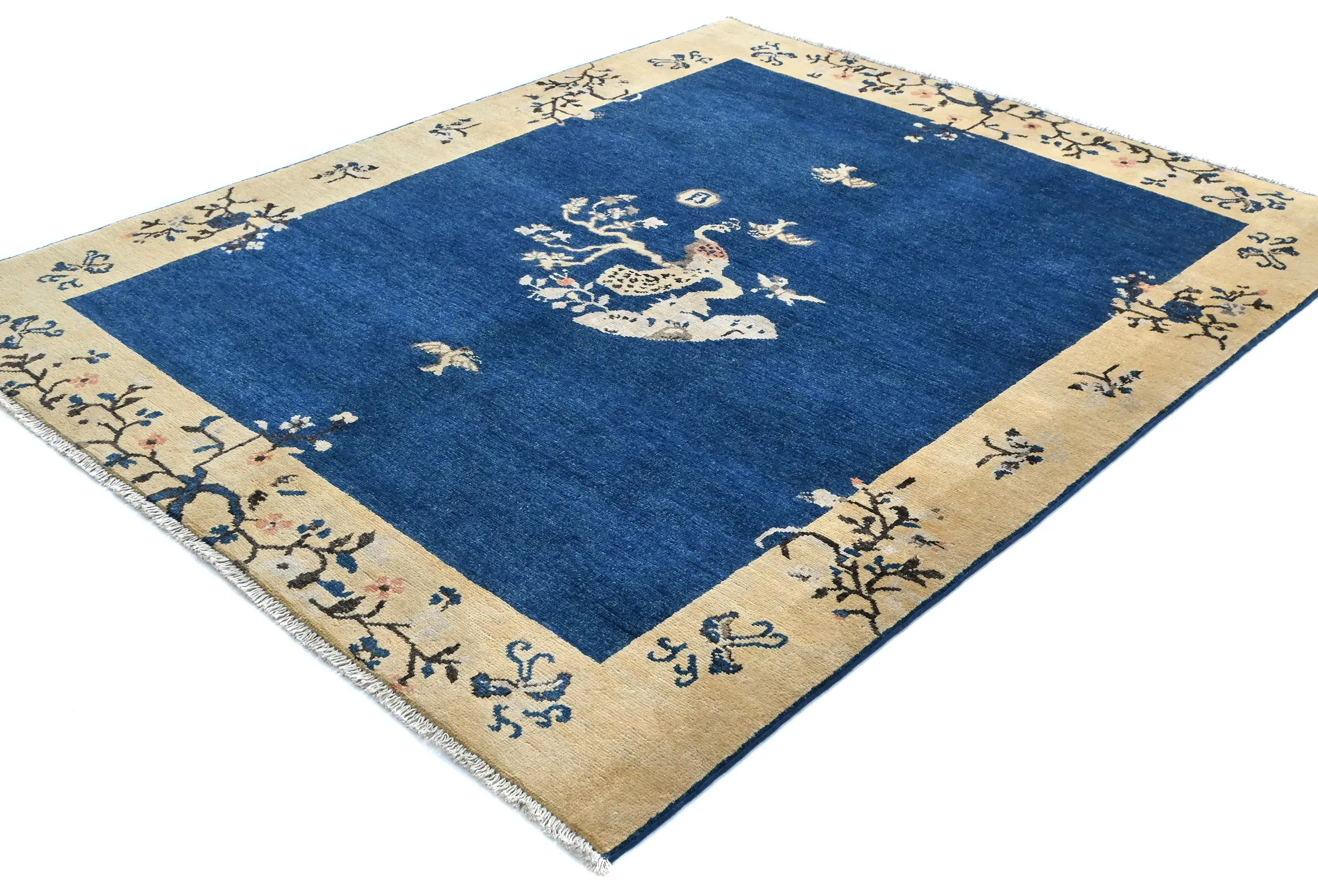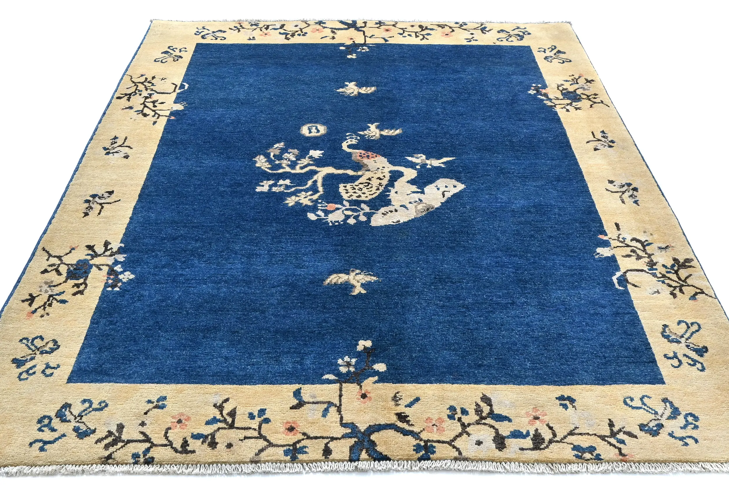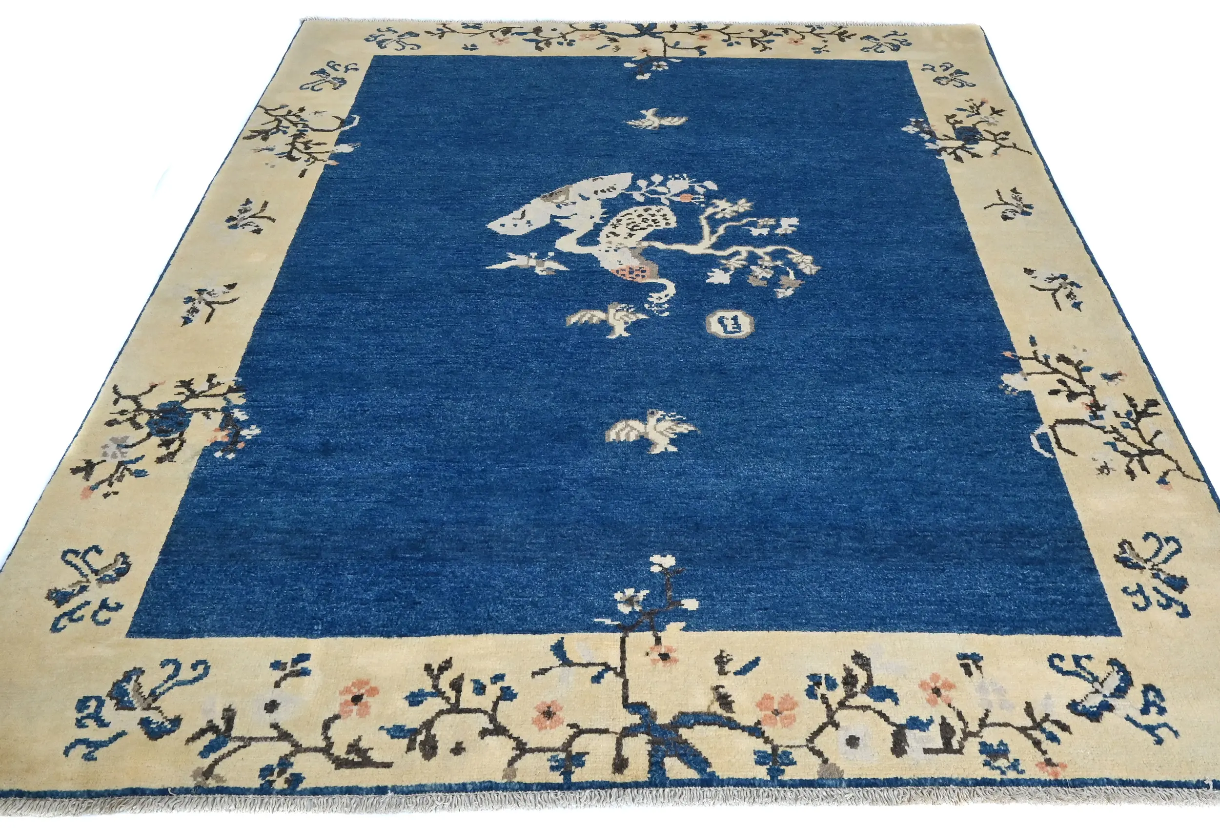 Hand Knotted 5'2X6'5 navy blue Oriental rug made with vegetable dyes (fine wool pile and cotton foundation), exceptional knot count, and appealing ancient designs. This Oriental rug never will go out of style and would be among your most valuable treasures.