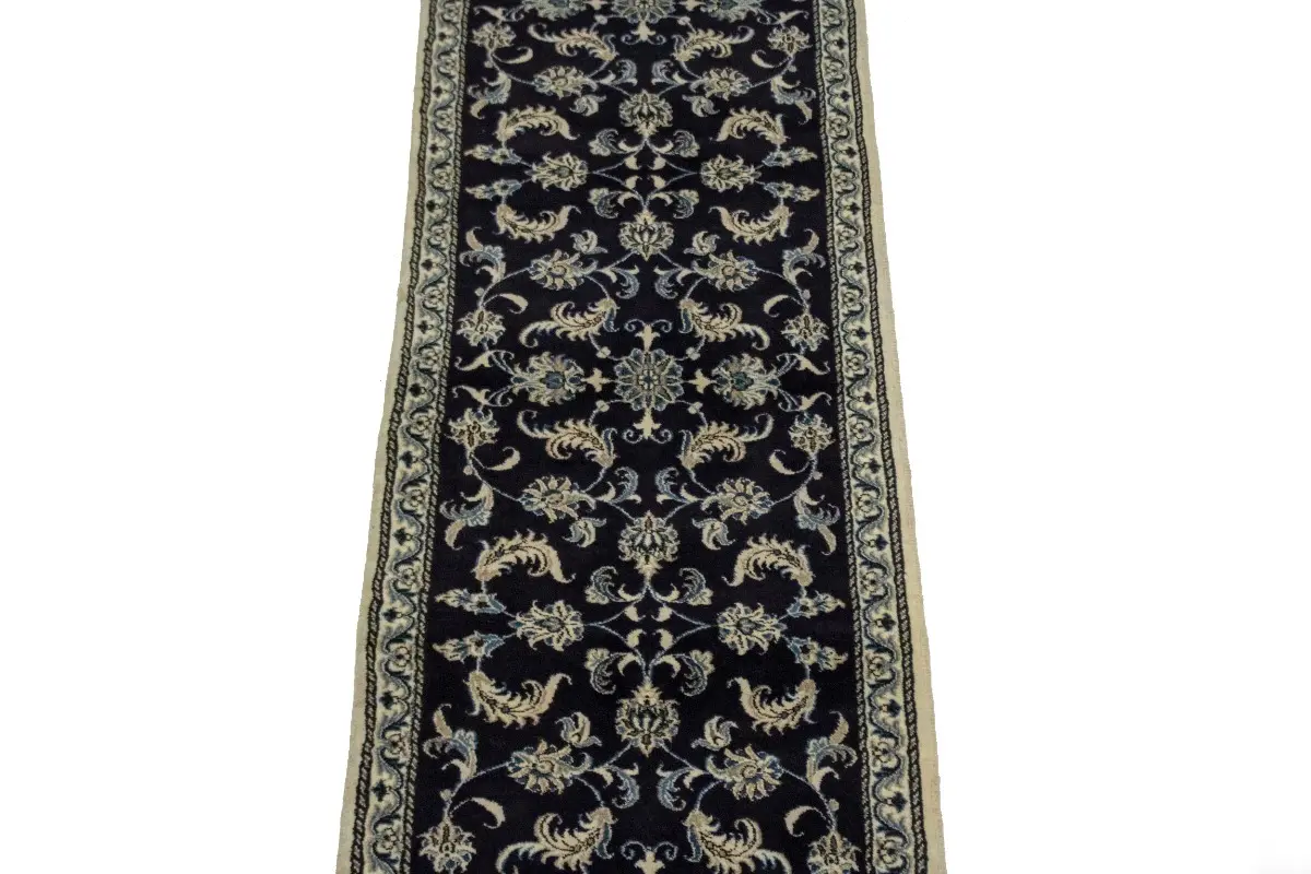Navy Blue Classic 2'5X10 Nain Kashmar Persian Runner Rug