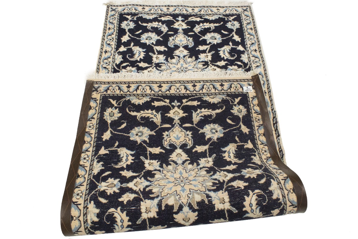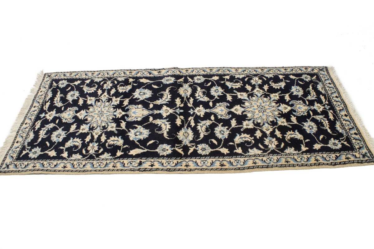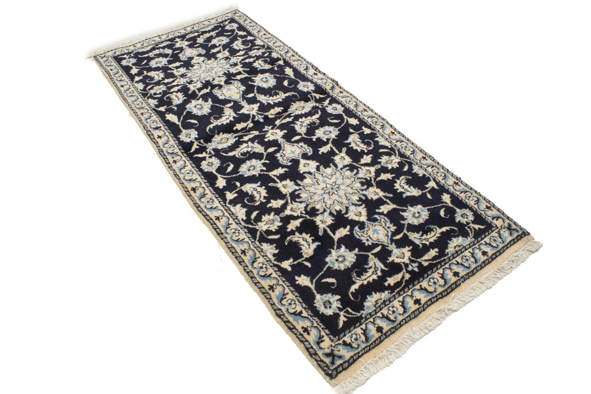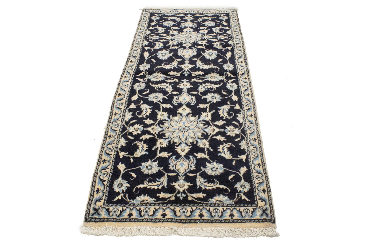 Navy Blue Floral Classic 2'7X6'2 Nain Persian Runner Rug