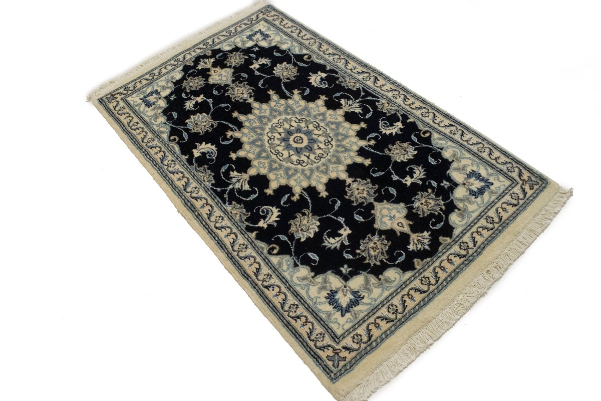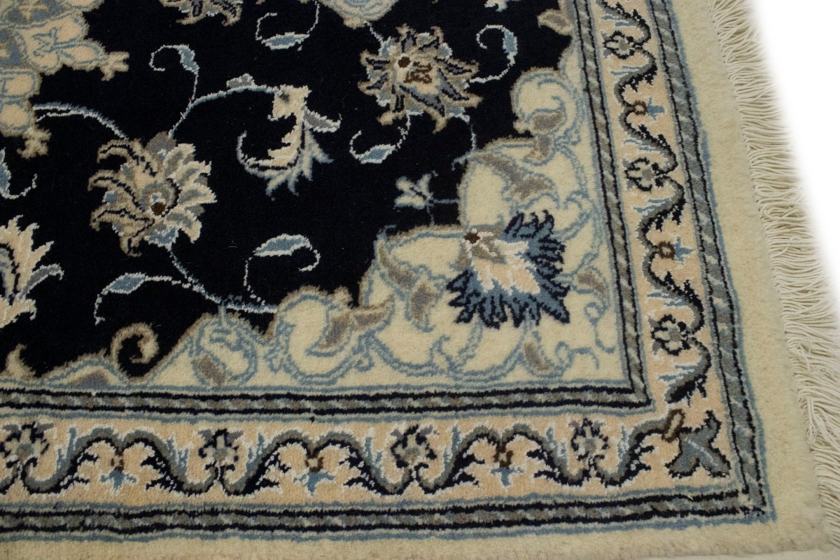 Navy Blue Floral Classic 3X5 Nain Persian Rug