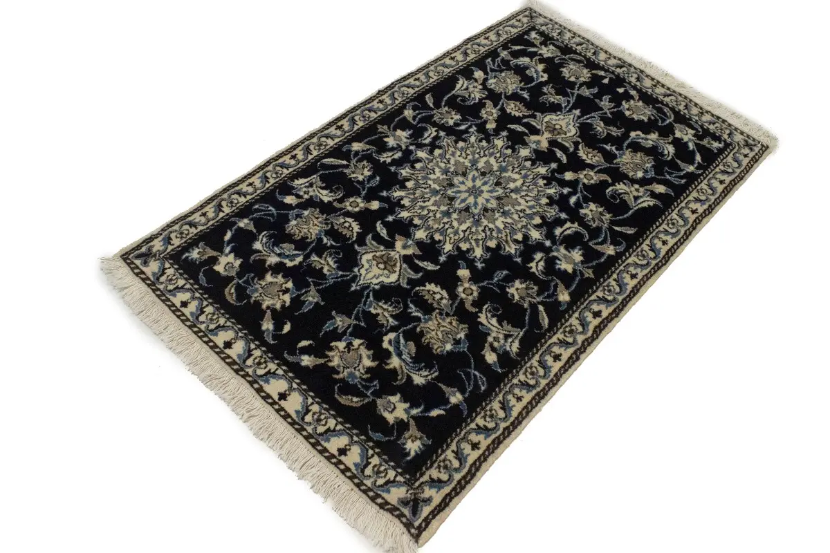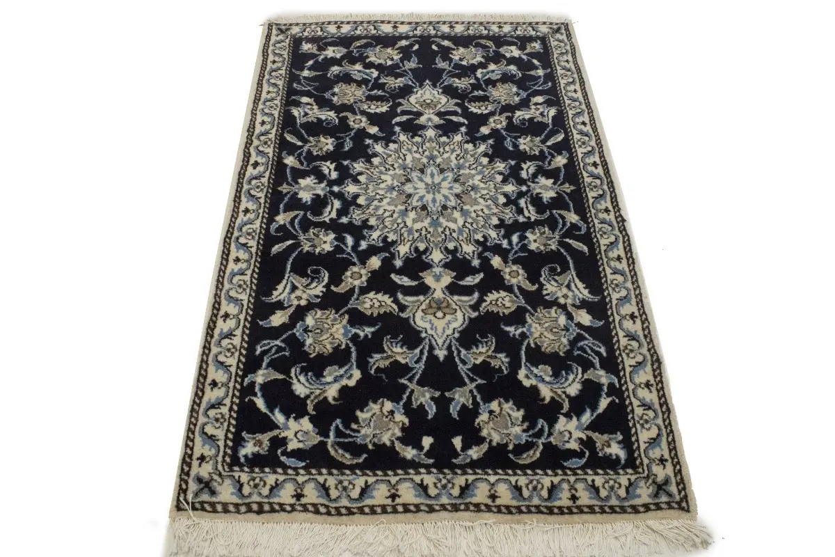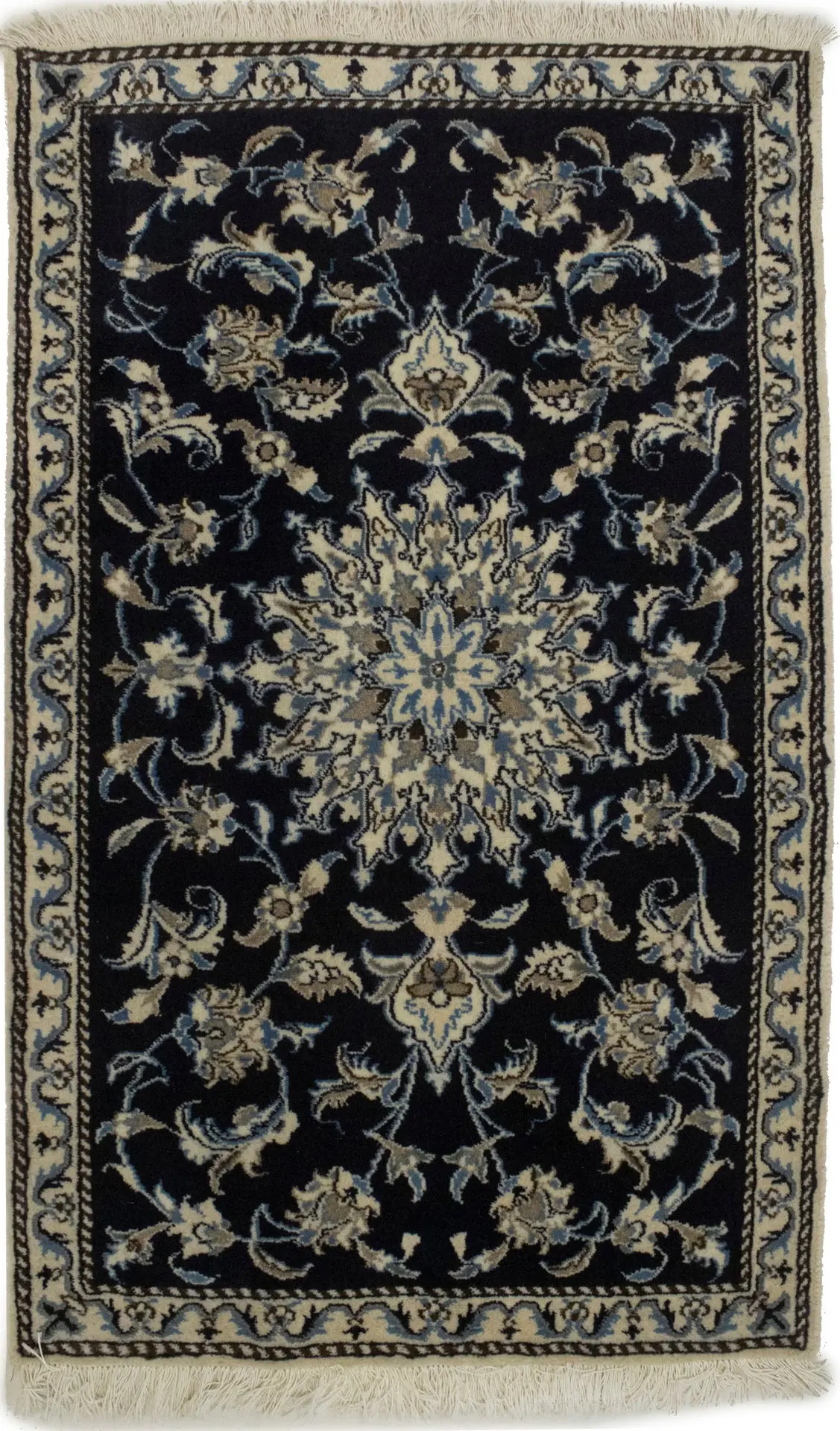 Navy Blue Floral Classic 3X5 Nain Persian Rug