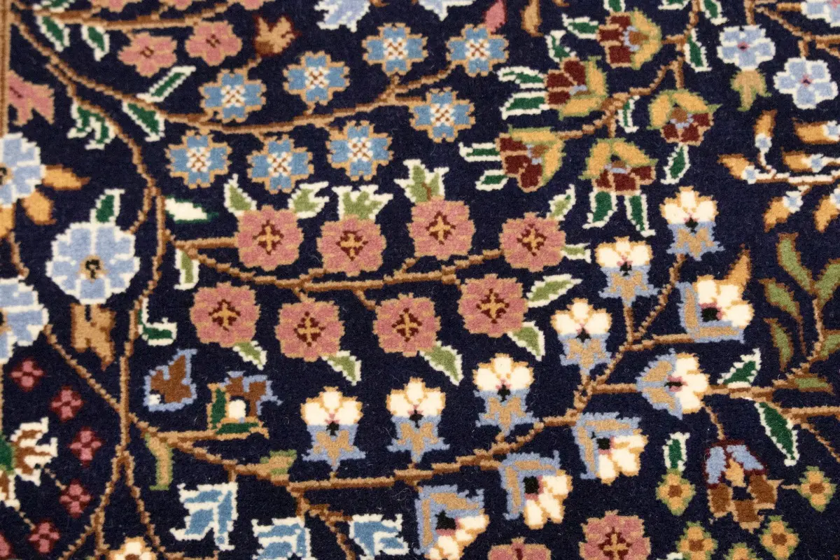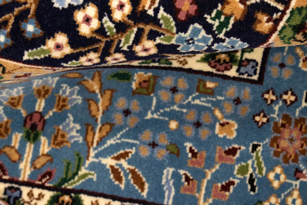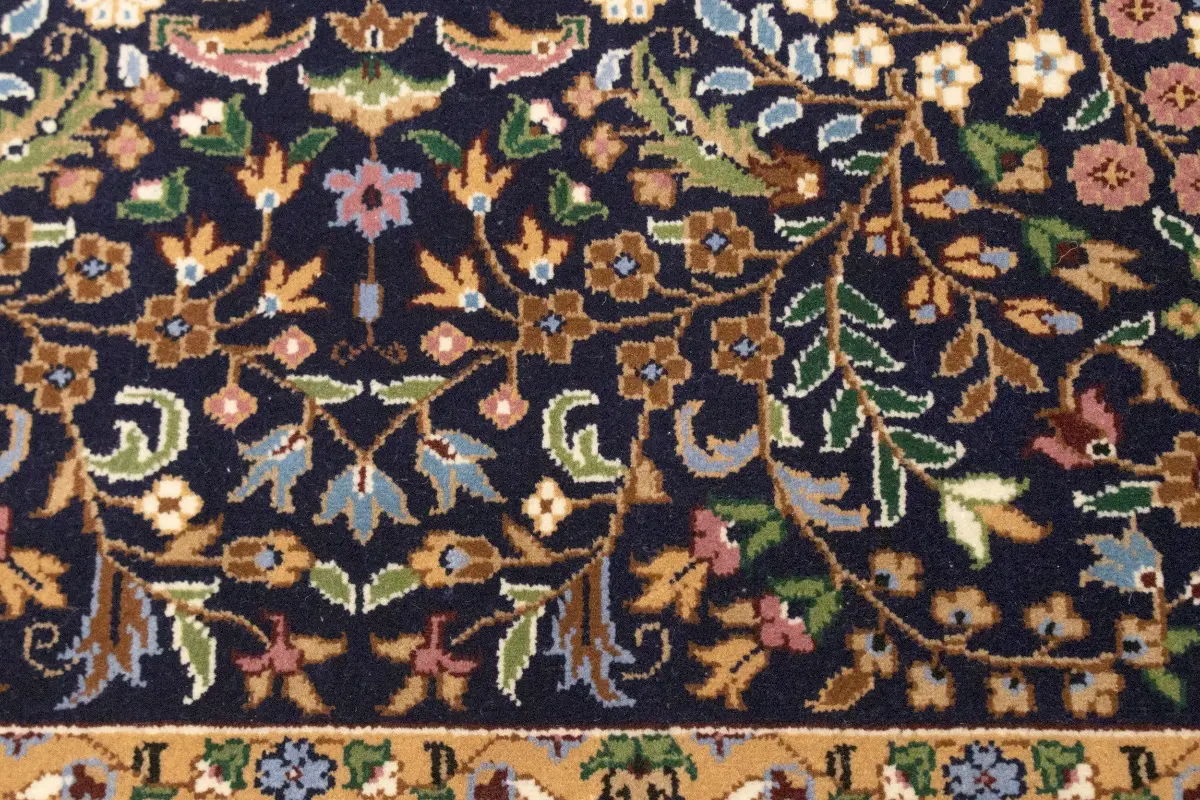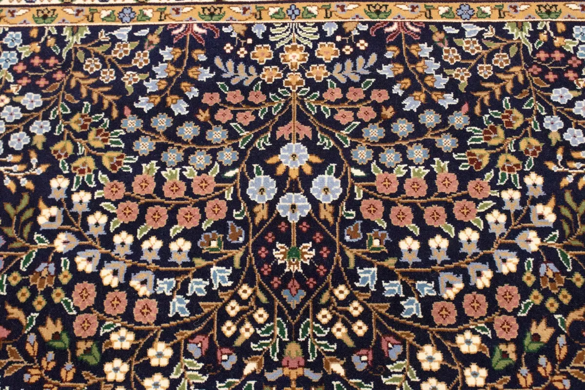 Handmade 6X8 blue Oriental rug made with vegetable dyes (fine wool pile and cotton foundation), exceptional knot count, and appealing ancient designs. This Oriental rug never will go out of style and would be among your most valuable treasures.