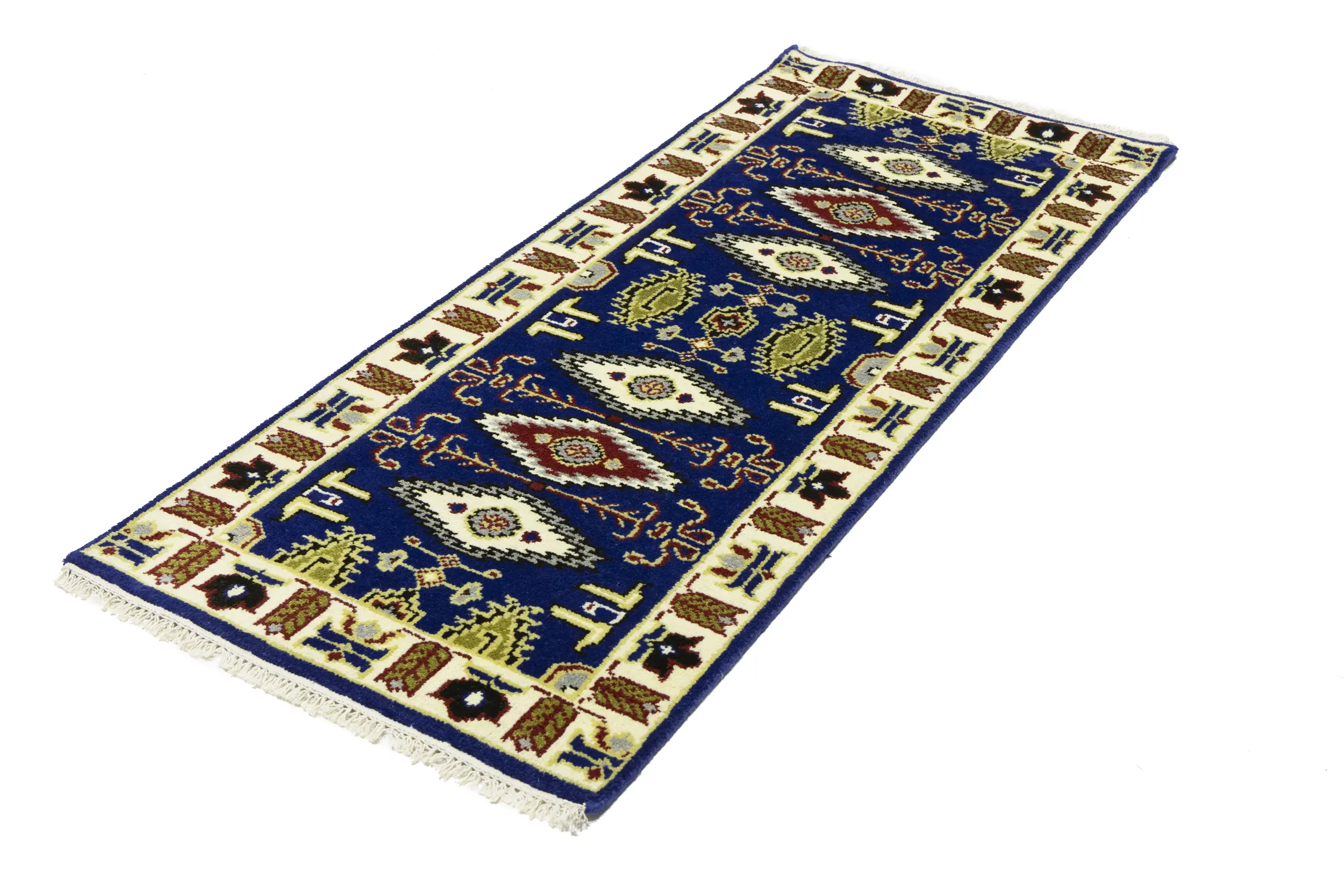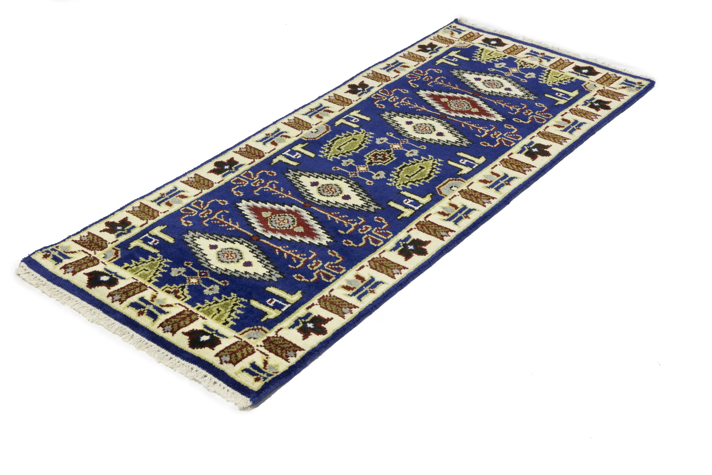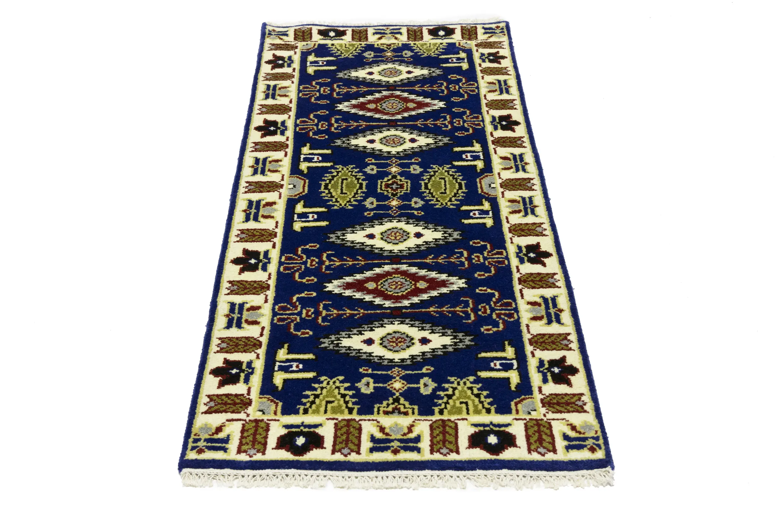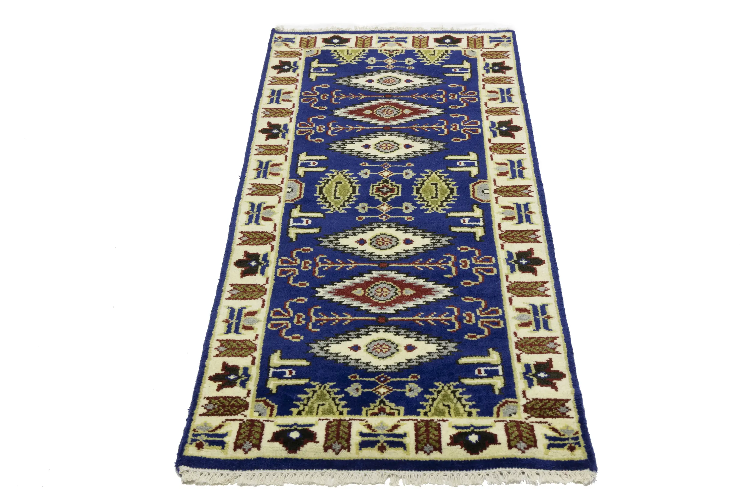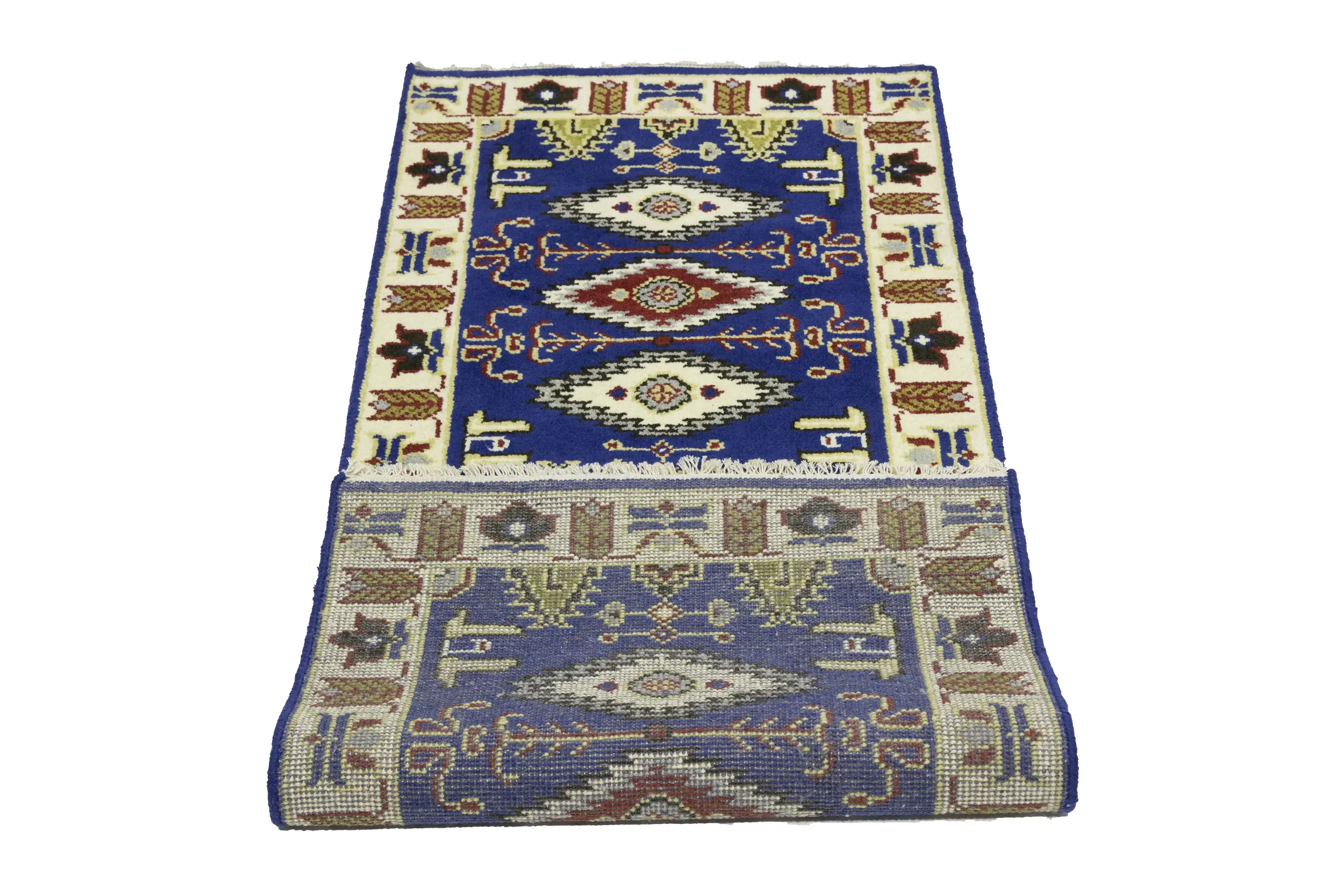 Handmade 3X6 blue oriental rug made with vegetable dyes (fine wool pile and cotton foundation), superior knot count, and appealing ancient designs. This Oriental rug never will go out of style and would be among your most valuable treasures.