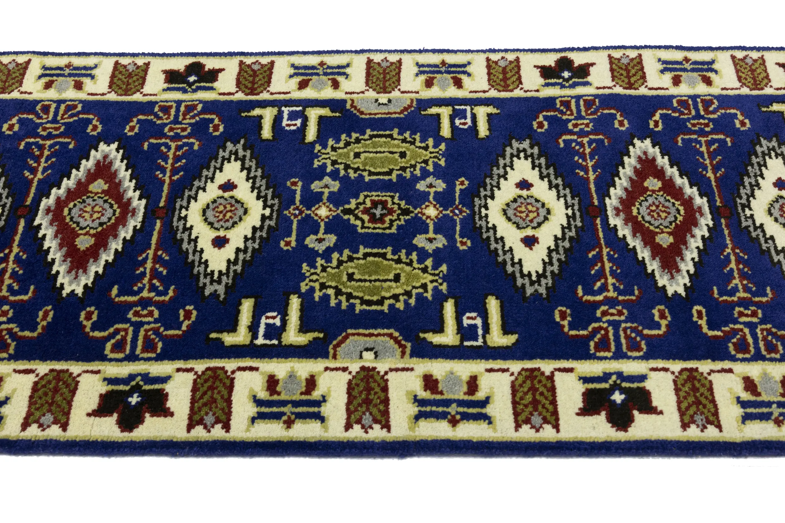 This genuine 3X6 blue new Oriental rug was made by the hands of gifted weavers inspired by a variety of spectacular artistic designs, to recreate the aged look of the original piece with a richness of color and ornately patterned background field. What set this vintage style Oriental area rug from the others are the material and dye used (wool pile and cotton foundation), knot count, ancient designs, fantastic grades, and its regional historical connection: it has deep roots, from the story of the people who produced it to the meaning of the symbols and colors displayed across its canvas that have been praised for centuries. This Indian home décor carpet will be completely cozy and inviting that never will go out of style! Also, this Oriental rug would be among your most valuable treasures, it is a great investment that accrues value over time, and it will last for generations because was woven with high-quality, all-natural wool. Environmentally friendly, opulent yet affordable; this rug will give you a thorough amount of character to help define your living space with elegance and warmth that will capture the eyes and attention of your audience (homeowners, designers, decorators, family and friends).