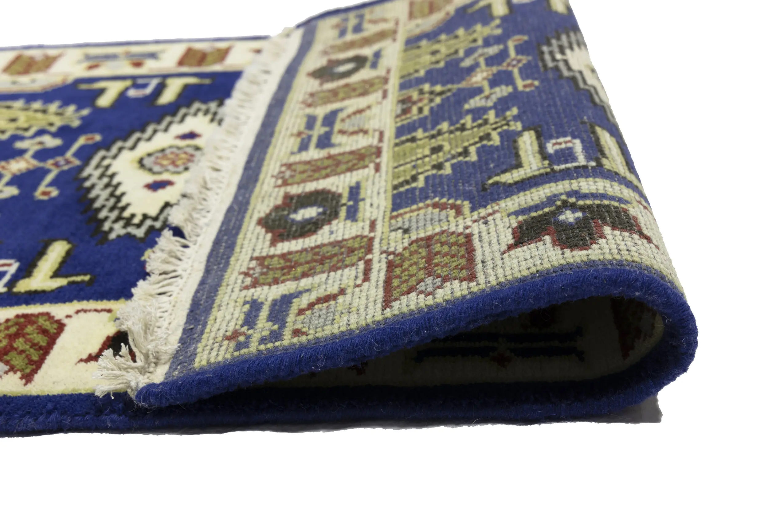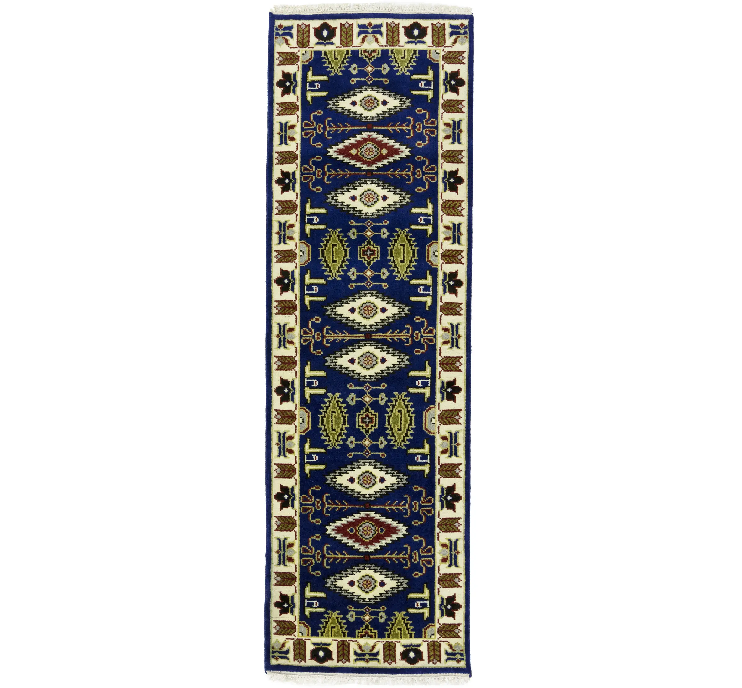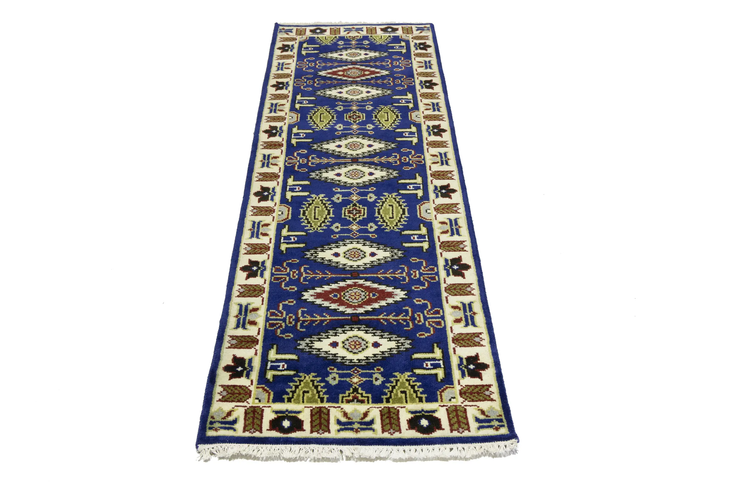 This genuine 3X8 blue new Oriental runner was made by the hands of gifted weavers inspired by a variety of spectacular artistic designs, to recreate the aged look of the original piece with a richness of color and ornately patterned background field. What set this vintage style Oriental area runner from the others are the material and dye used (wool pile and cotton foundation), knot count, ancient designs, fantastic grades, and its regional historical connection: it has deep roots, from the story of the people who produced it to the meaning of the symbols and colors displayed across its canvas that have been praised for centuries. This Indian home décor carpet will be completely cozy and inviting that never will go out of style! Also, this Oriental runner would be among your most valuable treasures, it is a great investment that accrues value over time, and it will last for generations because was woven with high-quality, all-natural wool. Environmentally friendly, opulent yet affordable; this rug will give you a thorough amount of character to help define your living space with elegance and warmth that will capture the eyes and attention of your audience (homeowners, designers, decorators, family and friends).