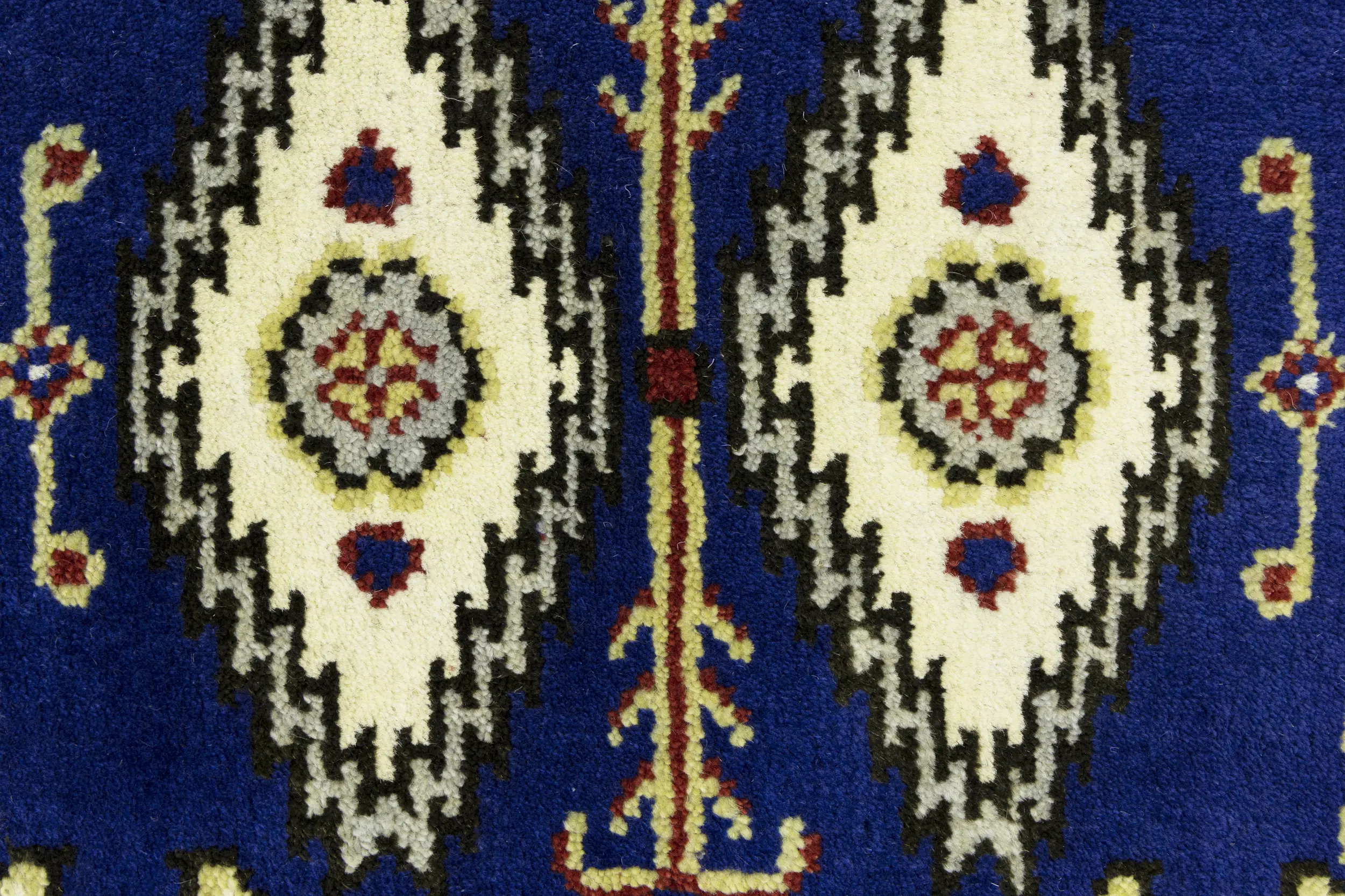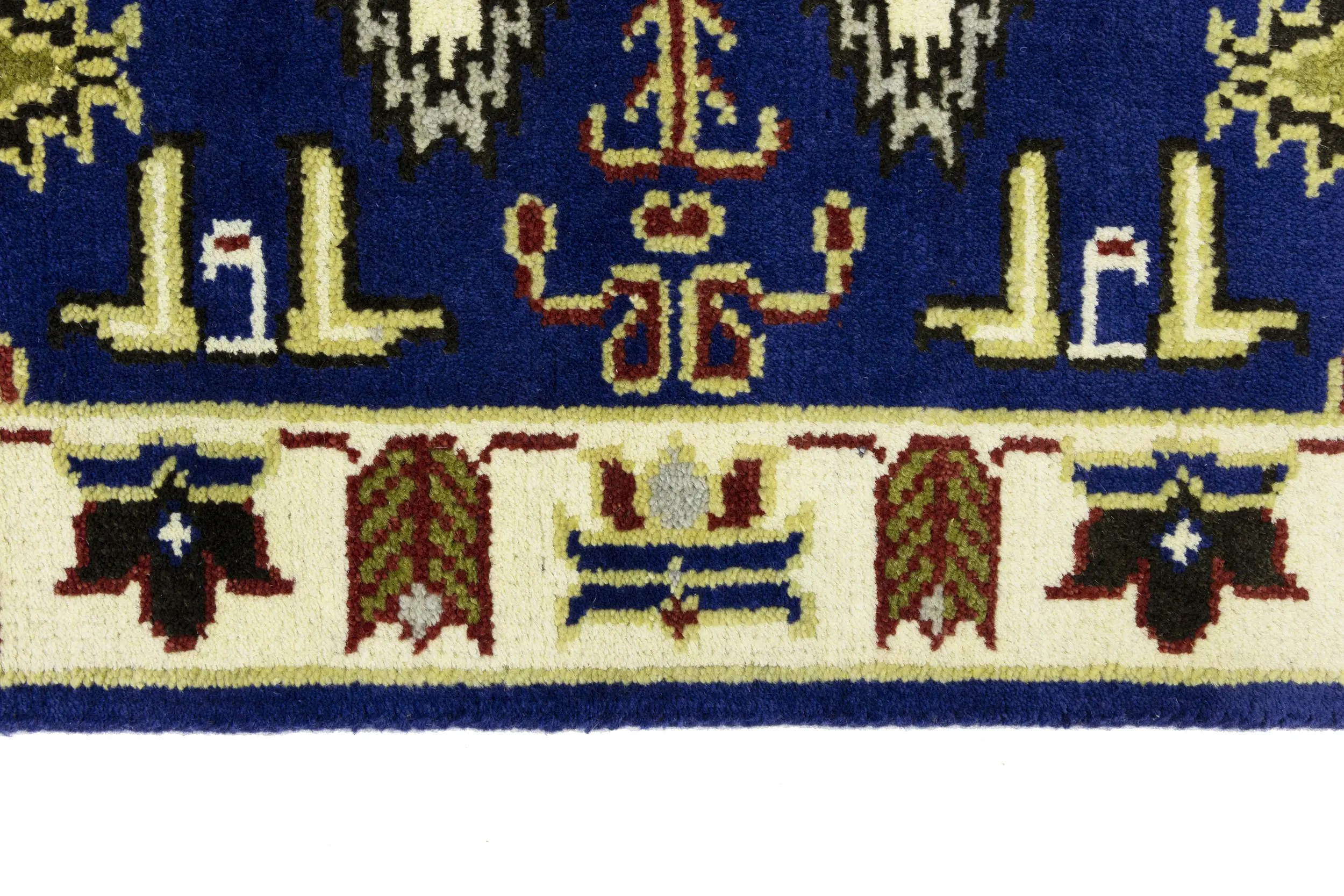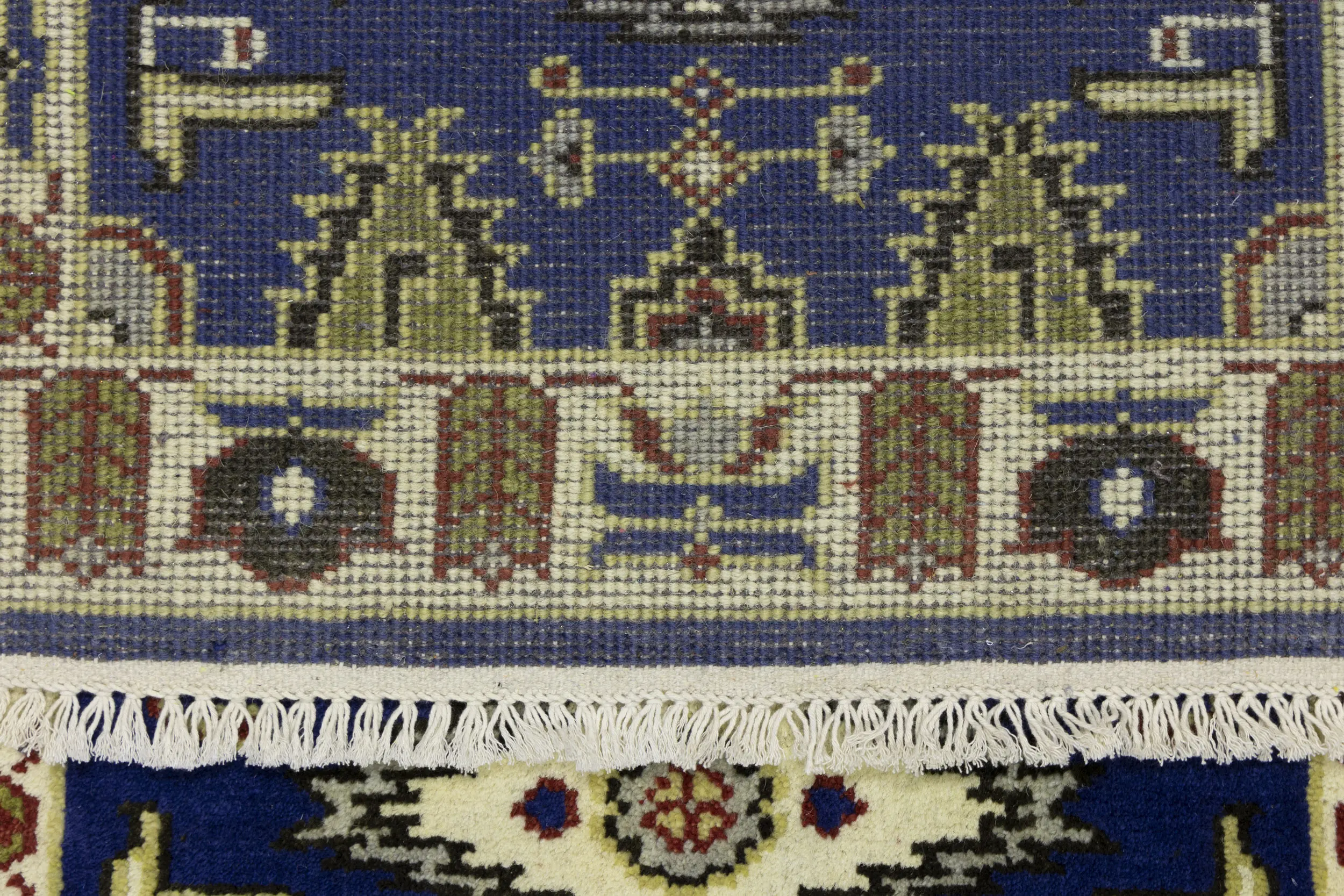 This genuine 3X8 blue new Oriental runner was made by the hands of gifted weavers inspired by a variety of spectacular artistic designs, to recreate the aged look of the original piece with a richness of color and ornately patterned background field. What set this vintage style Oriental area runner from the others are the material and dye used (wool pile and cotton foundation), knot count, ancient designs, fantastic grades, and its regional historical connection: it has deep roots, from the story of the people who produced it to the meaning of the symbols and colors displayed across its canvas that have been praised for centuries. This Indian home décor carpet will be completely cozy and inviting that never will go out of style! Also, this Oriental runner would be among your most valuable treasures, it is a great investment that accrues value over time, and it will last for generations because was woven with high-quality, all-natural wool. Environmentally friendly, opulent yet affordable; this rug will give you a thorough amount of character to help define your living space with elegance and warmth that will capture the eyes and attention of your audience (homeowners, designers, decorators, family and friends).
