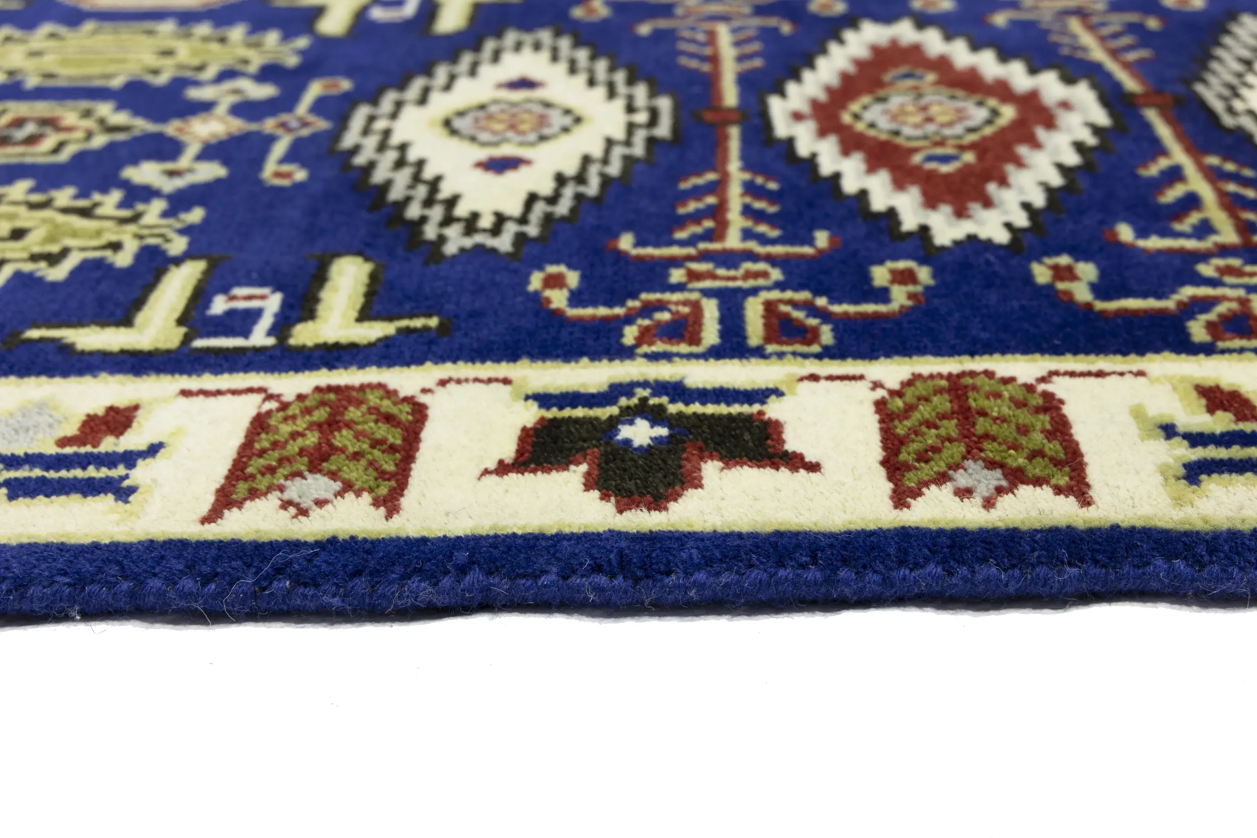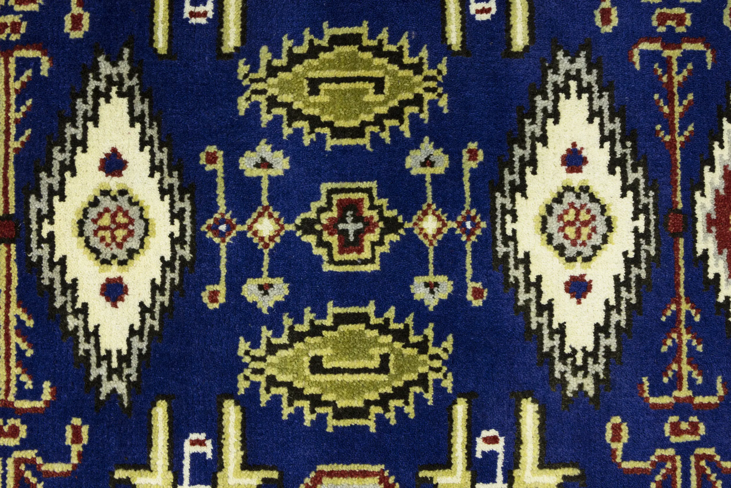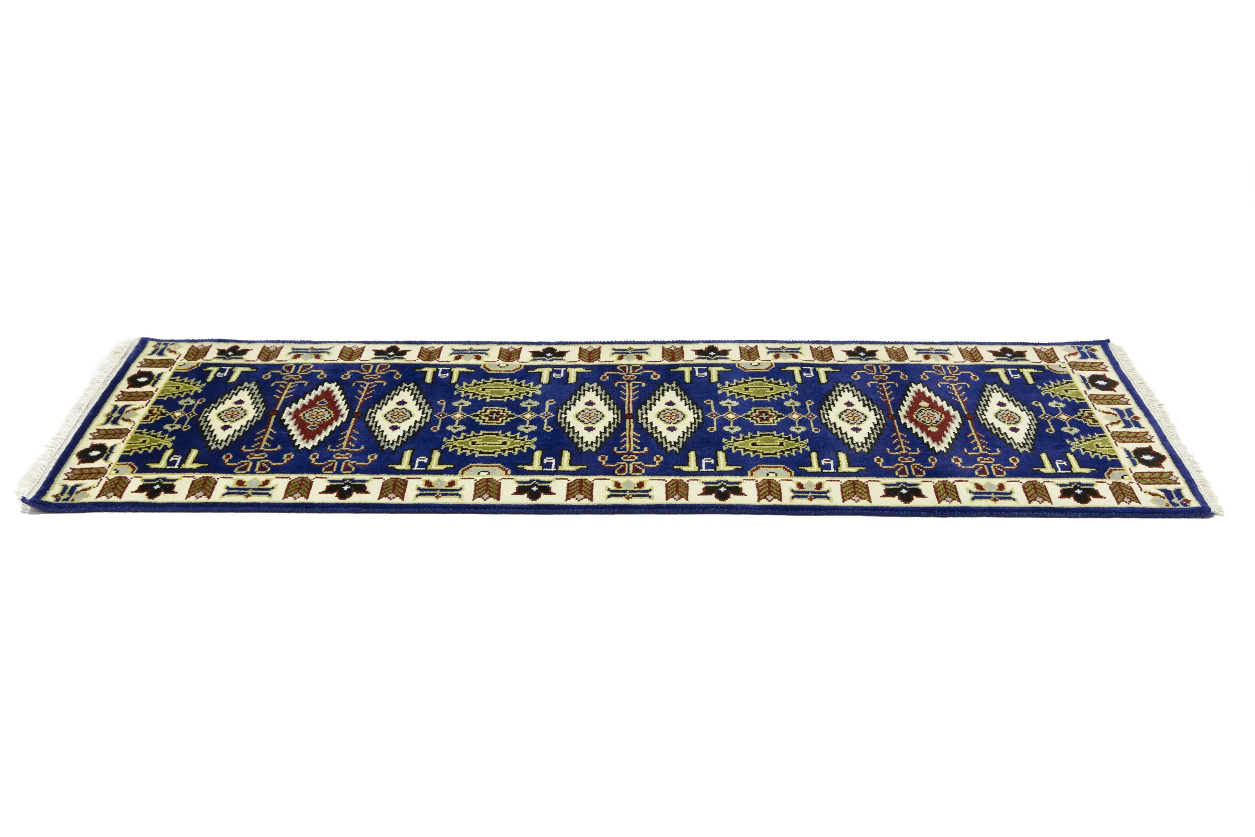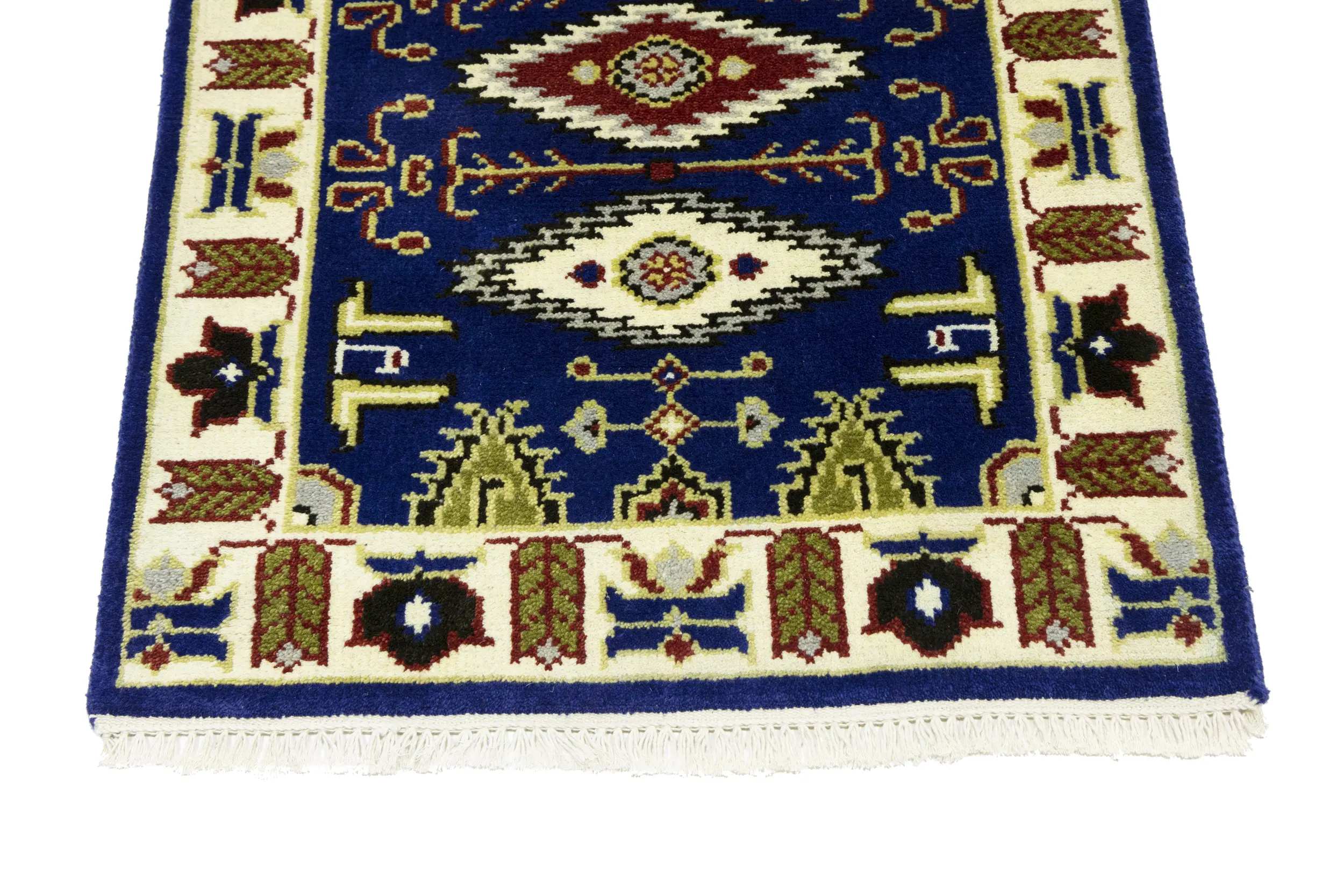Navy Blue Geometric 3X8 Kazak Oriental Runner Rug