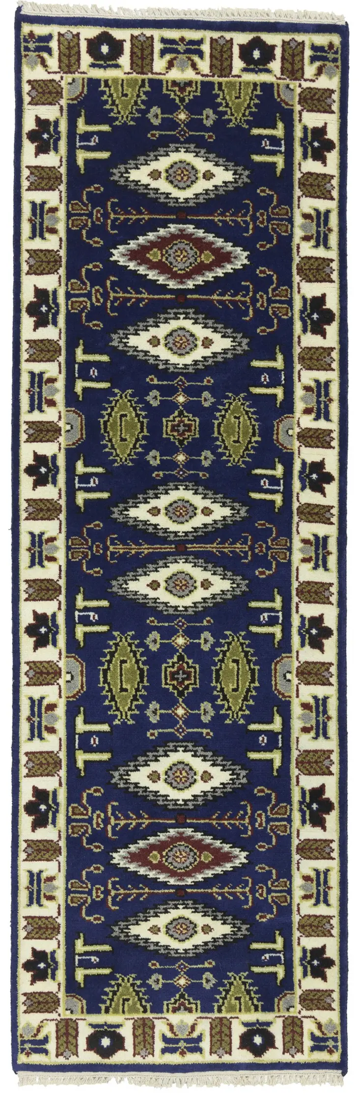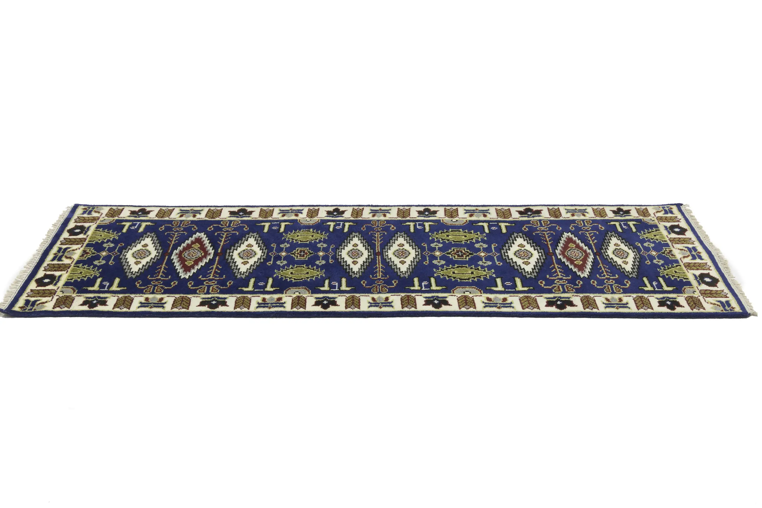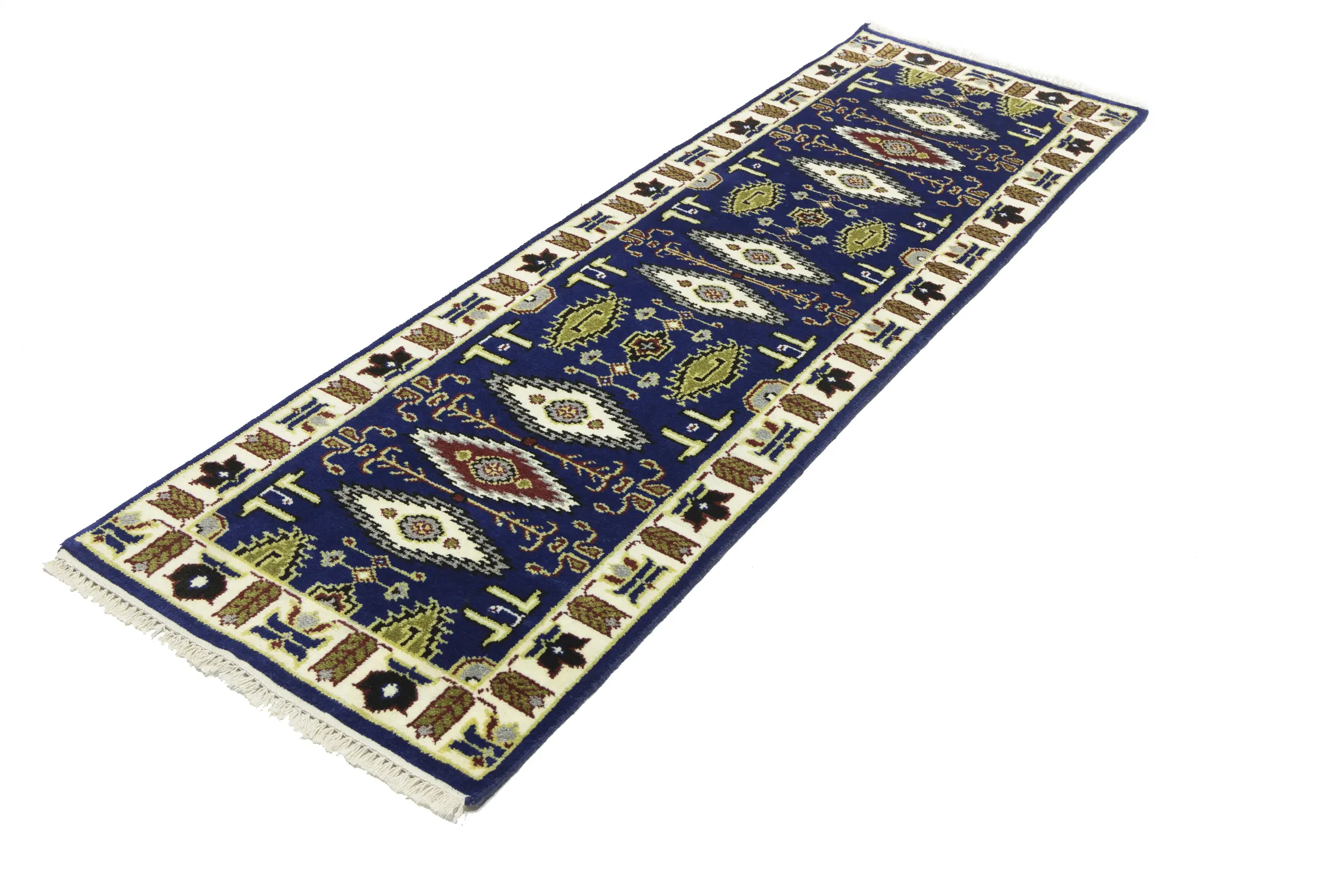 Navy Blue Geometric 3X8 Kazak Oriental Runner Rug