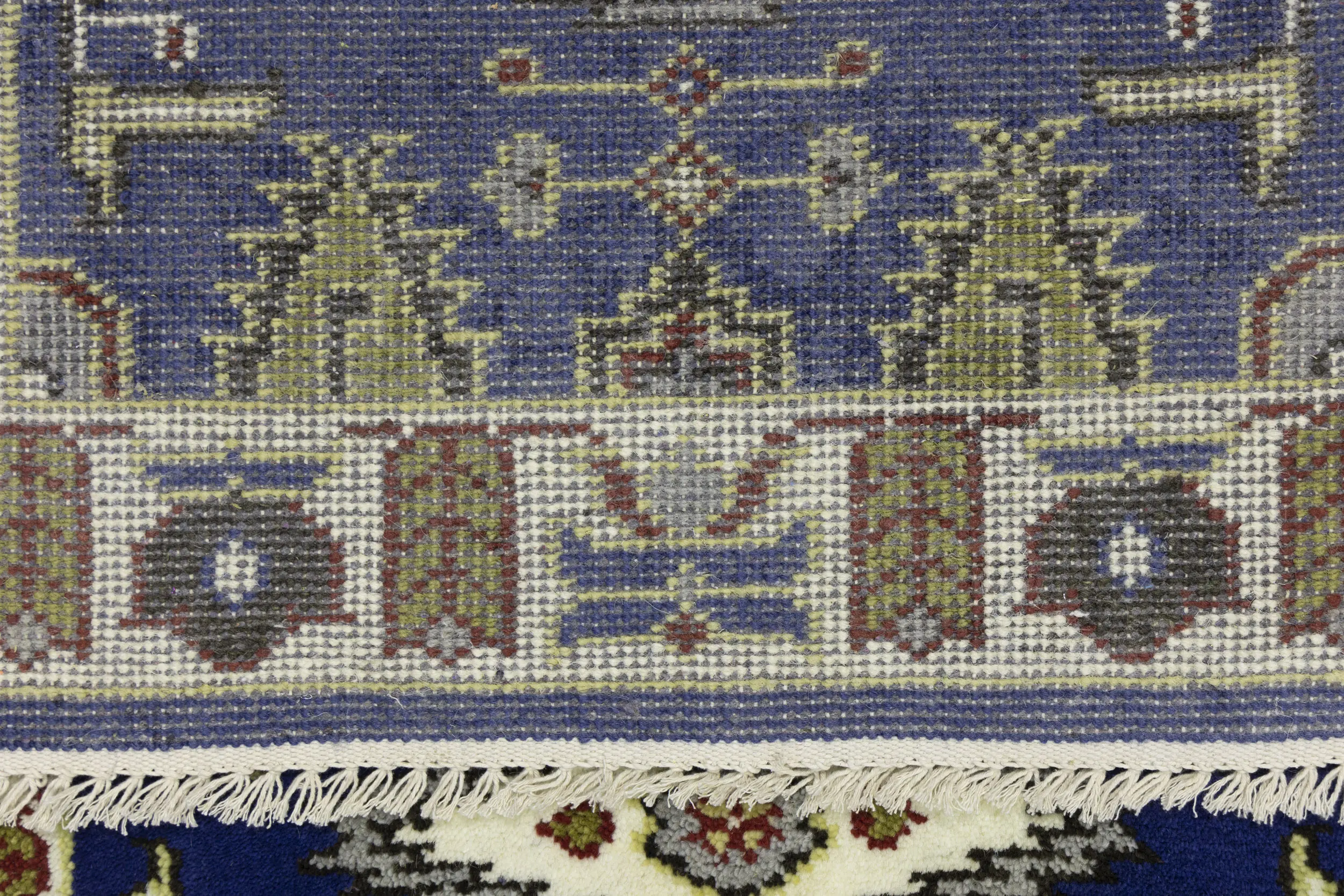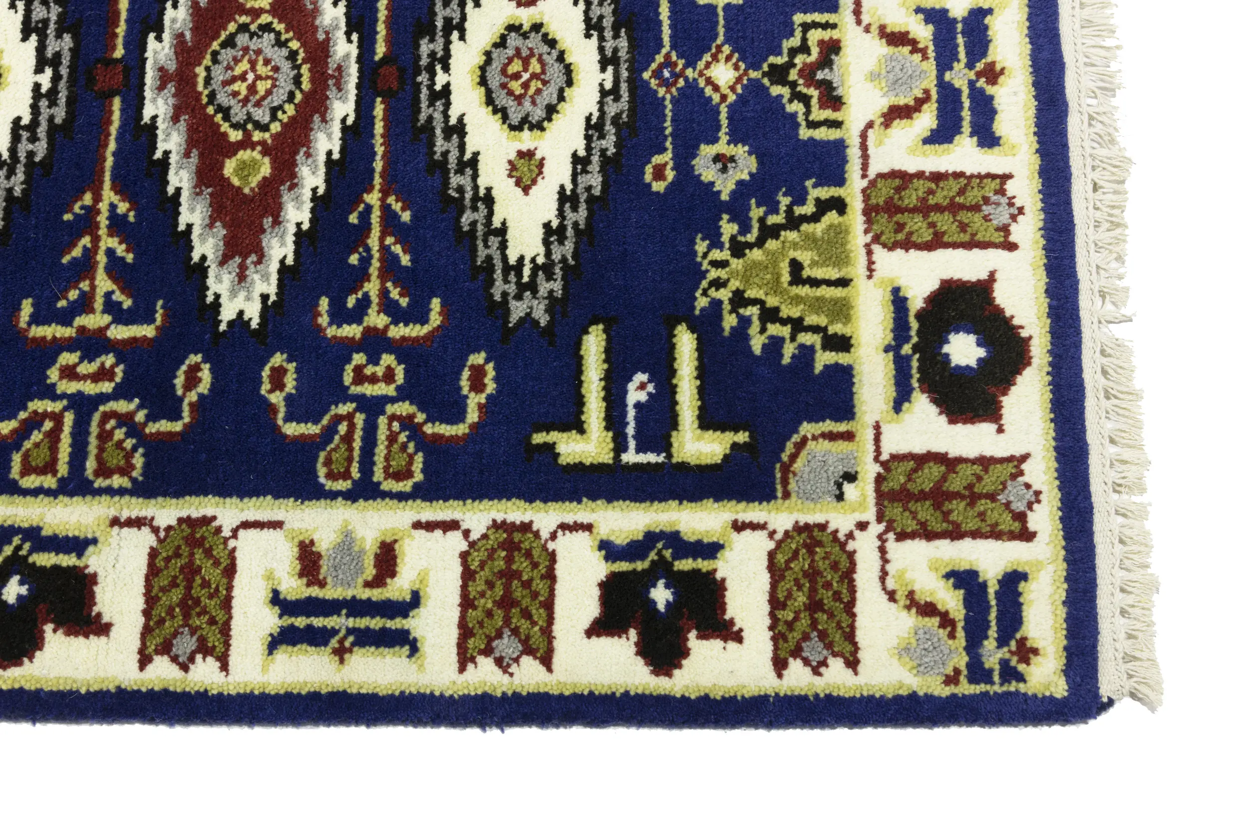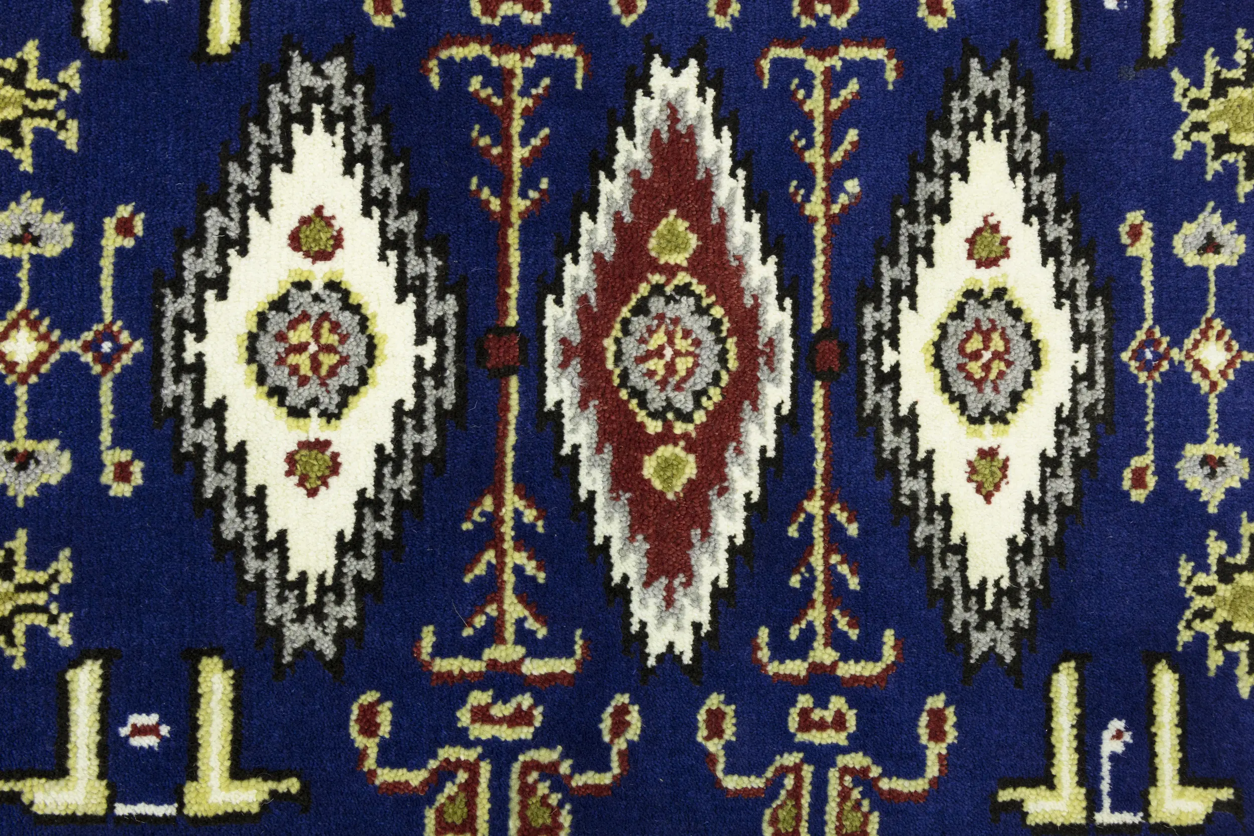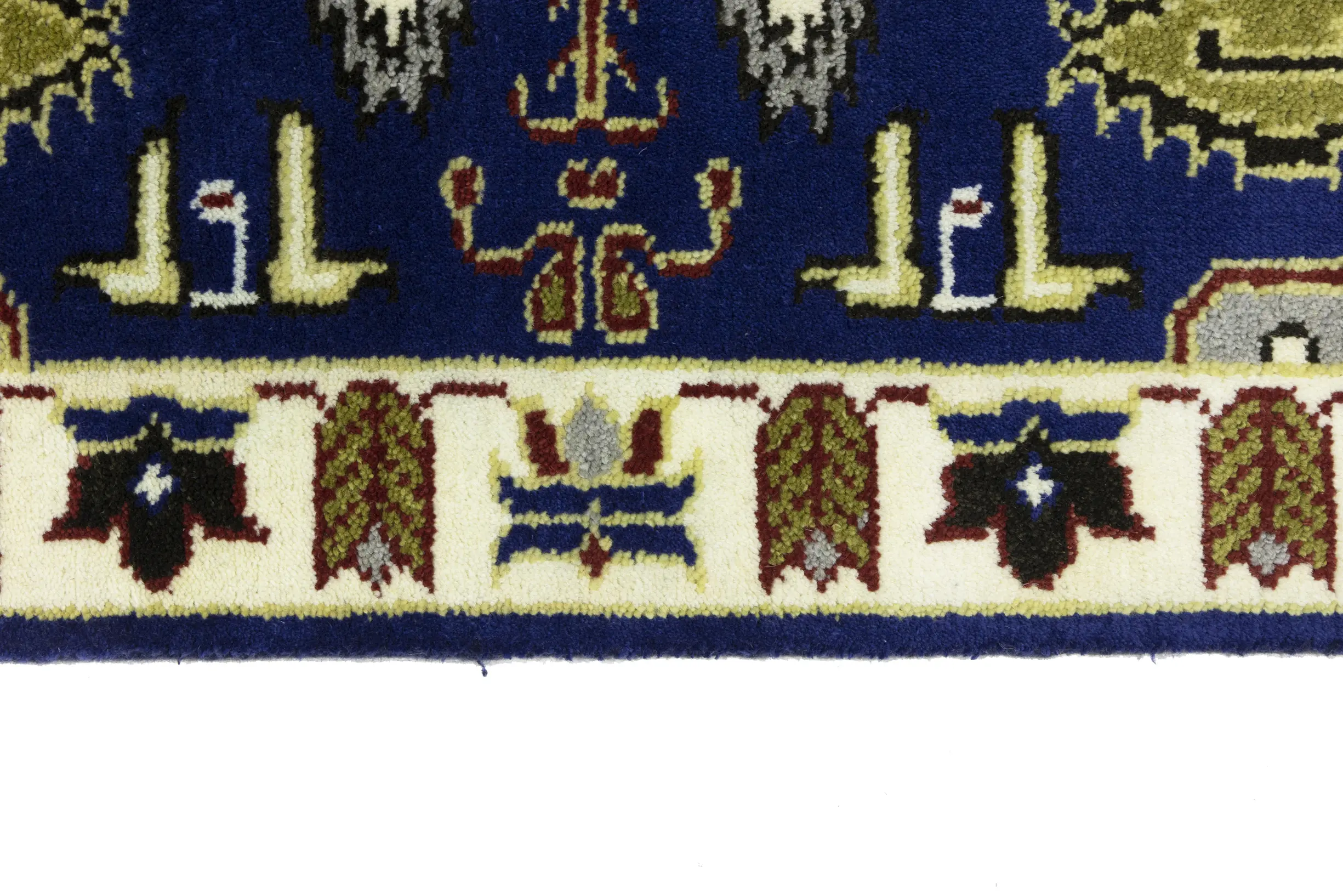 This genuine 3X8 blue new Oriental runner was made by the hands of gifted weavers inspired by a variety of spectacular artistic designs, to recreate the aged look of the original piece with a richness of color and ornately patterned background field. What set this vintage style Oriental area runner from the others are the material and dye used (wool pile and cotton foundation), knot count, ancient designs, fantastic grades, and its regional historical connection: it has deep roots, from the story of the people who produced it to the meaning of the symbols and colors displayed across its canvas that have been praised for centuries. This Indian home décor carpet will be completely cozy and inviting that never will go out of style! Also, this Oriental runner would be among your most valuable treasures, it is a great investment that accrues value over time, and it will last for generations because was woven with high-quality, all-natural wool. Environmentally friendly, opulent yet affordable; this rug will give you a thorough amount of character to help define your living space with elegance and warmth that will capture the eyes and attention of your audience (homeowners, designers, decorators, family and friends).